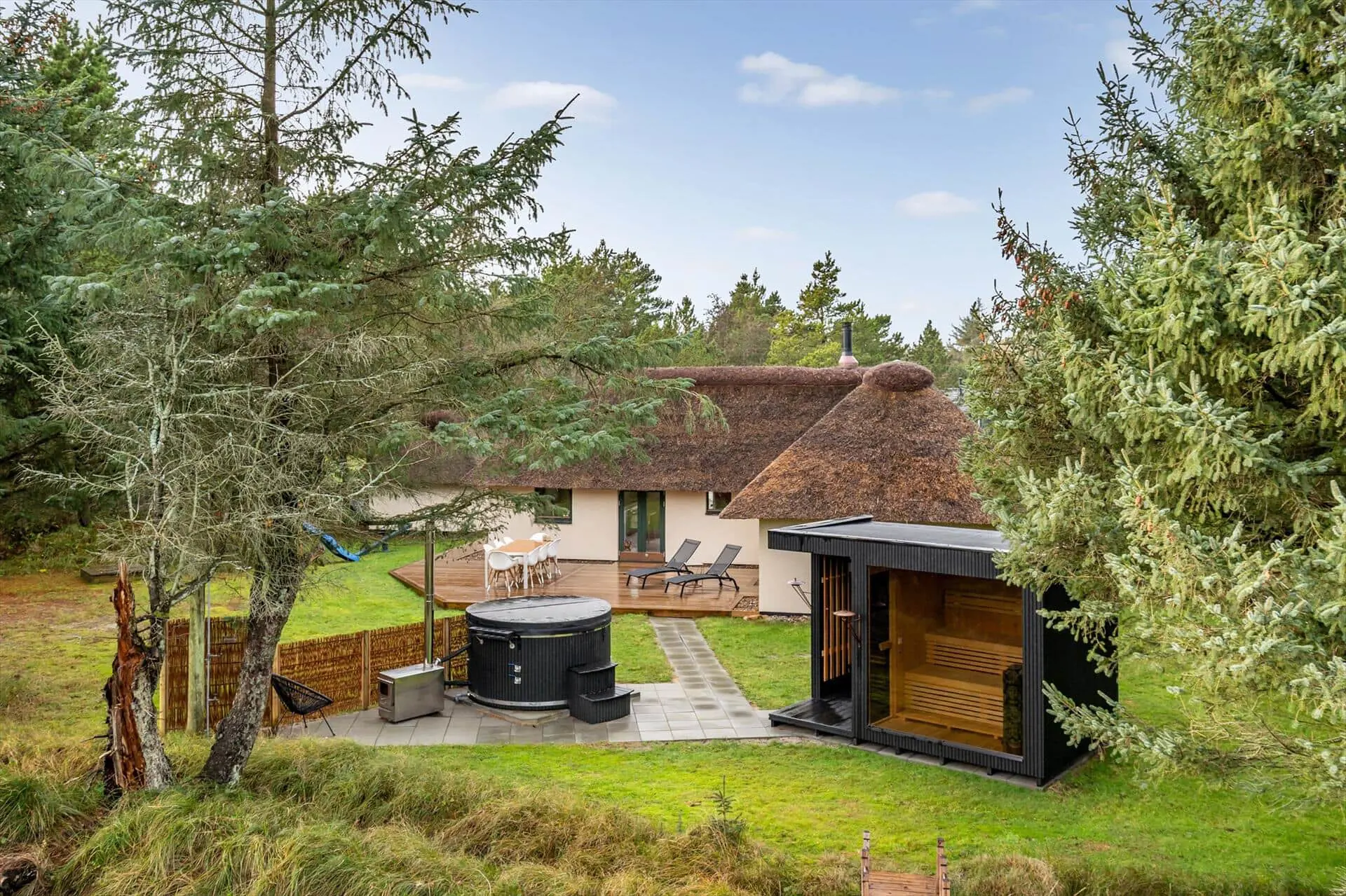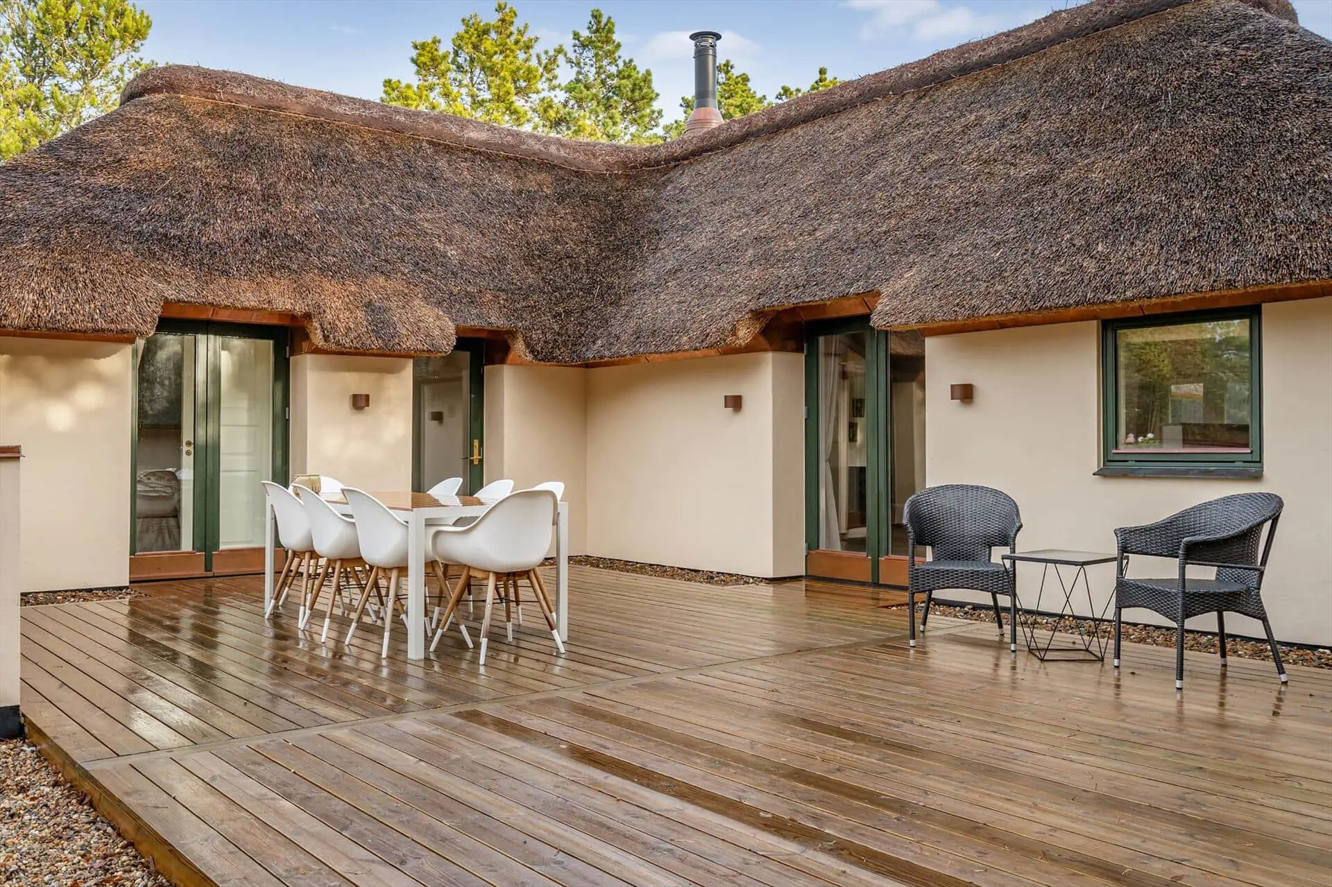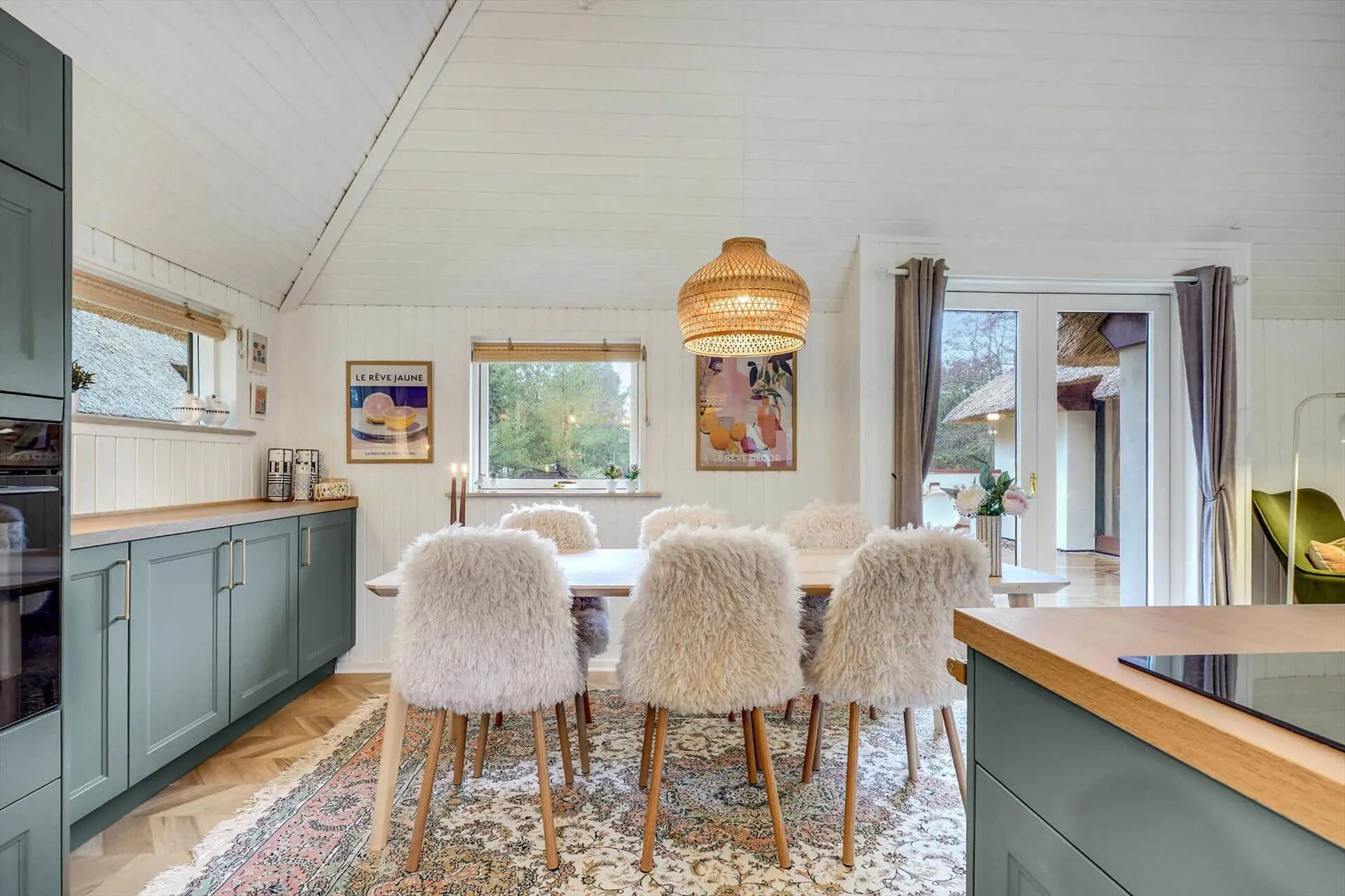 Ein besonderes Ferienhaus mit idyllischem Reetdach und einer einladenden, persönlichen Inneneinrichtung. Du findest hier eine ruhige Basis nahe der Küste von Vejers, in der die detailreiche Ausstattung und der Blick in die Natur zu einem ungewöhnlichen und unvergesslichen Urlaubserlebnis beitragen.