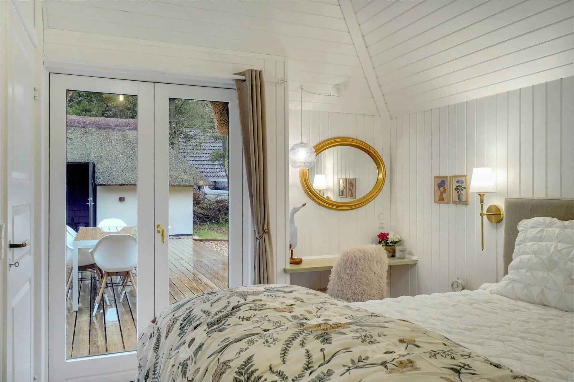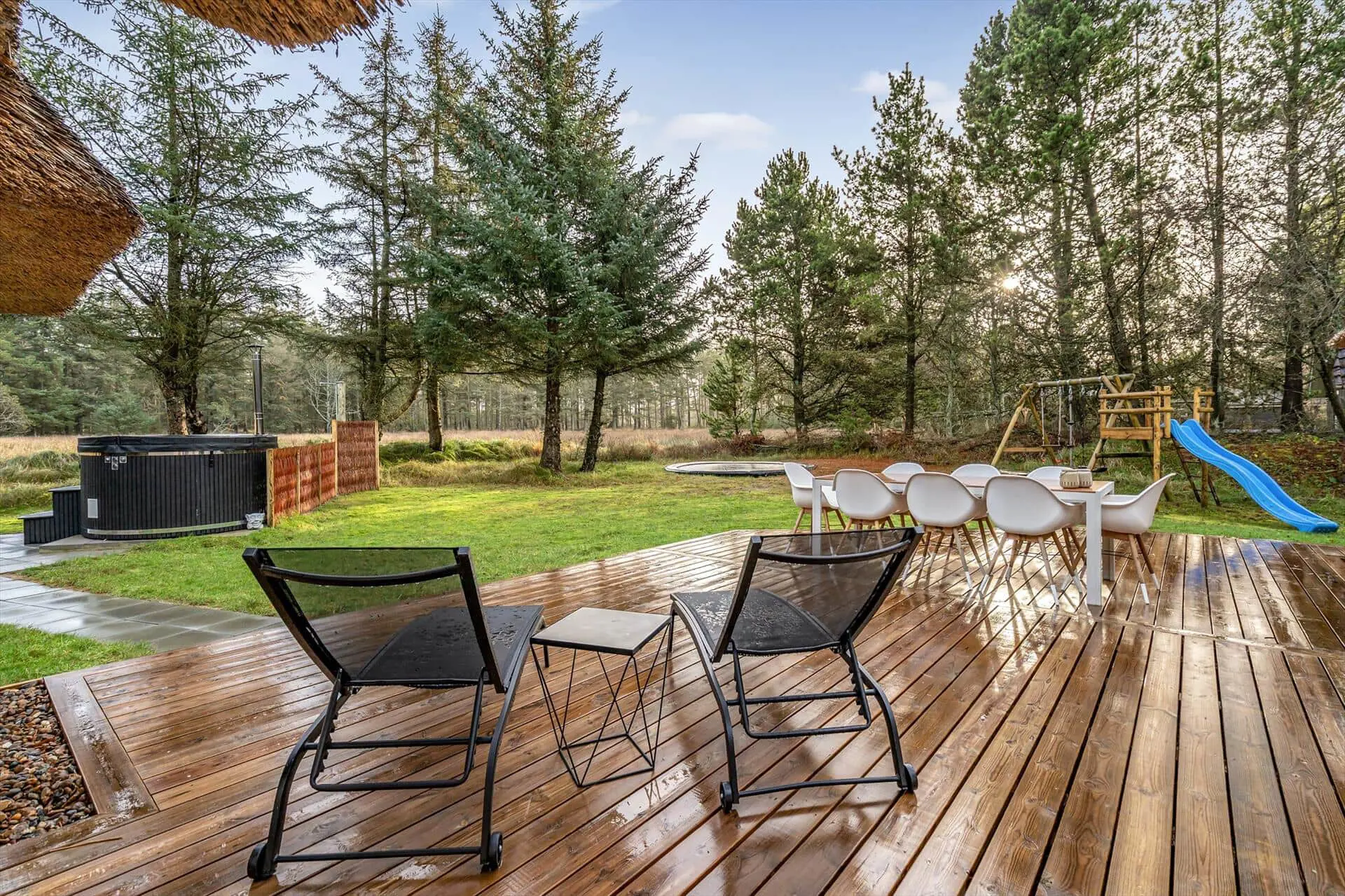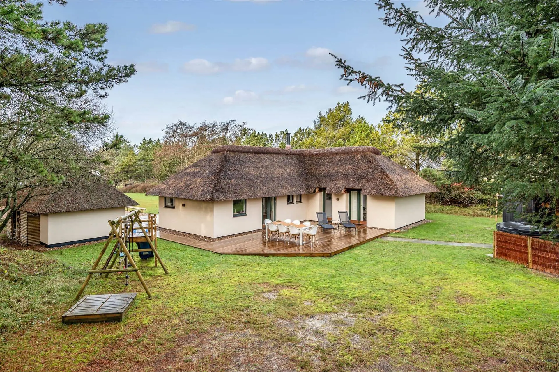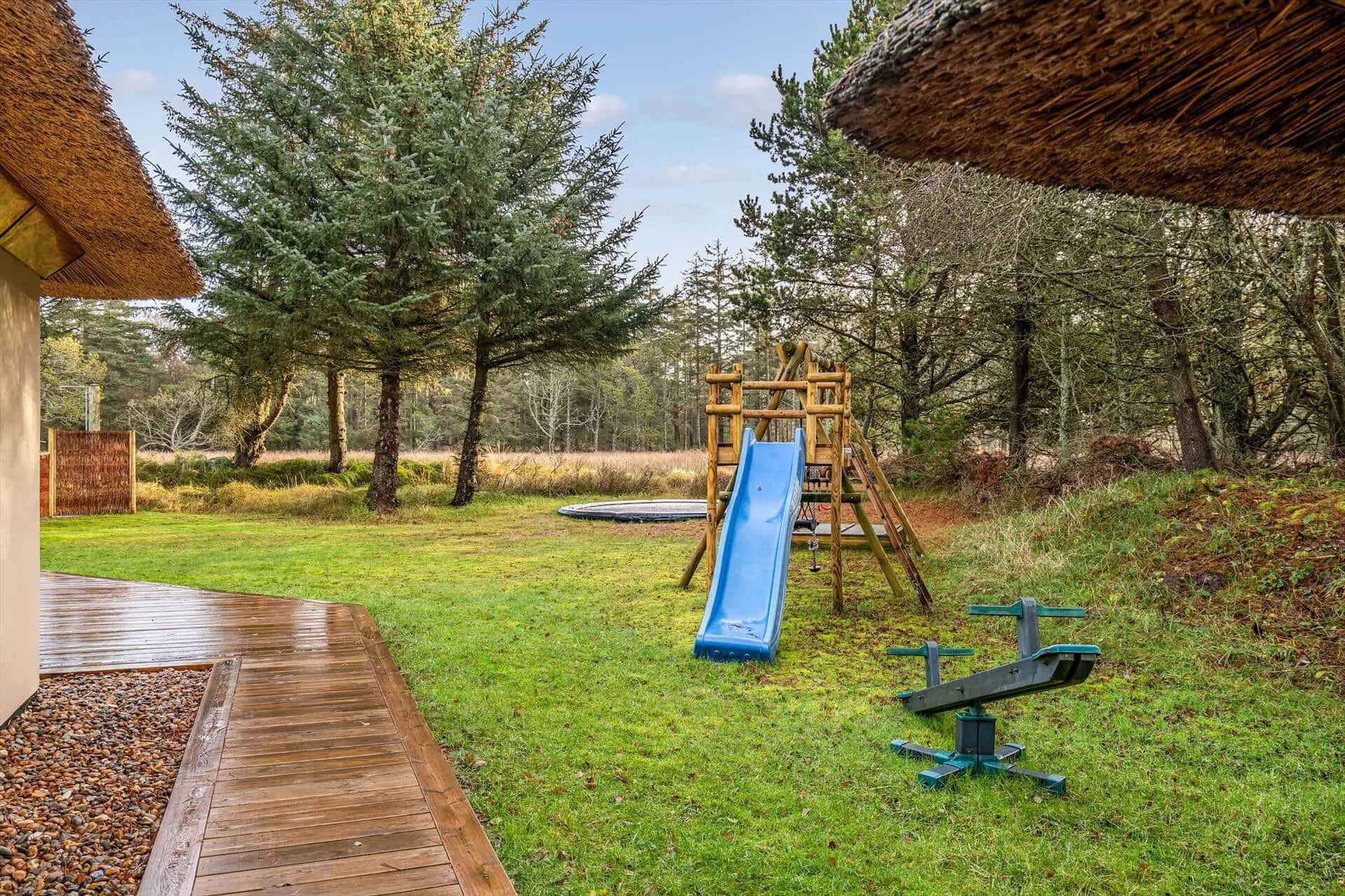 Ein besonderes Ferienhaus mit idyllischem Reetdach und einer einladenden, persönlichen Inneneinrichtung. Du findest hier eine ruhige Basis nahe der Küste von Vejers, in der die detailreiche Ausstattung und der Blick in die Natur zu einem ungewöhnlichen und unvergesslichen Urlaubserlebnis beitragen.