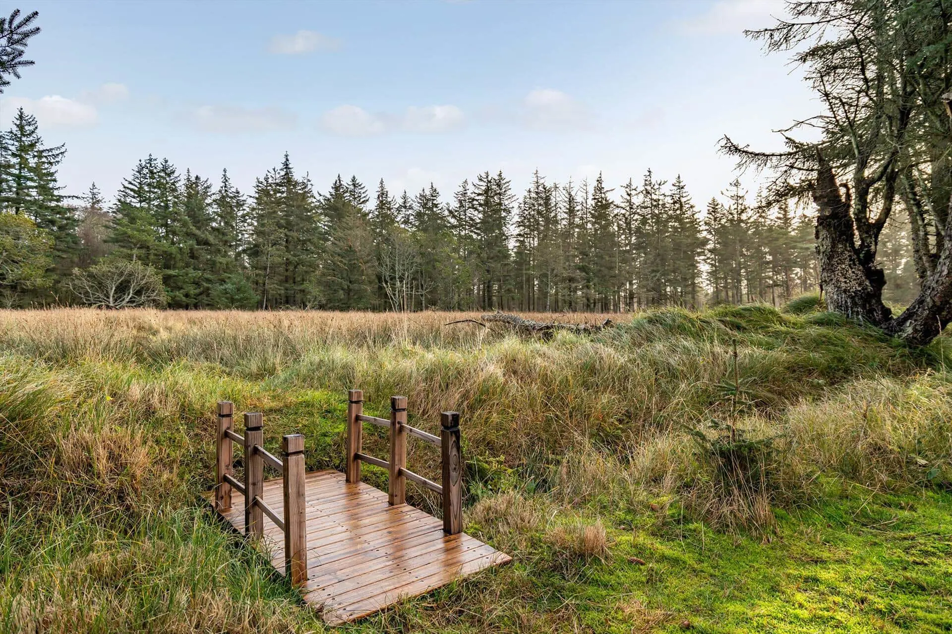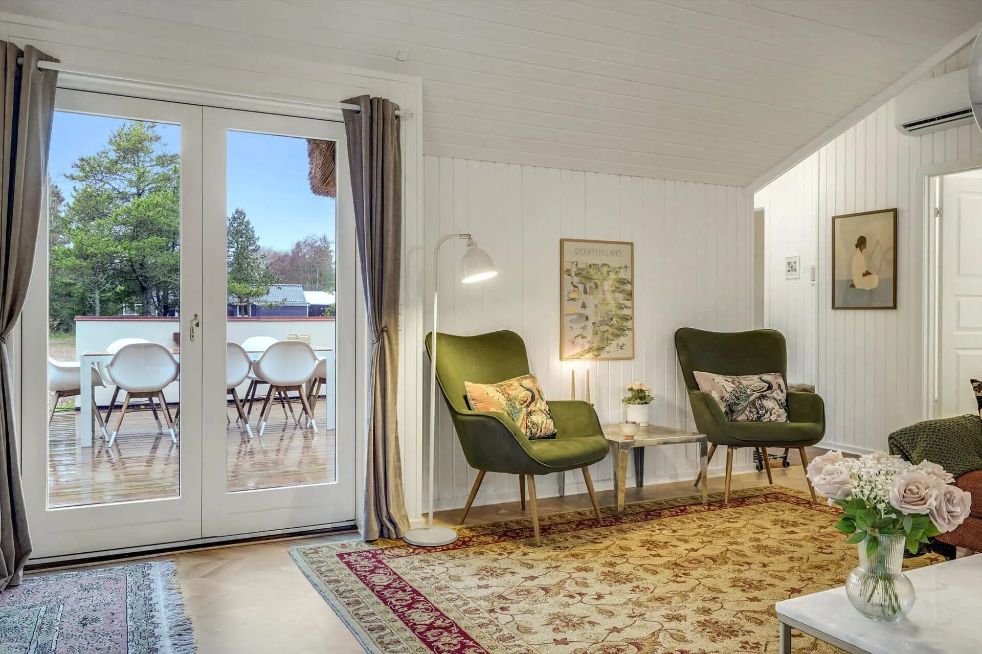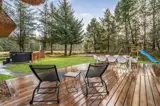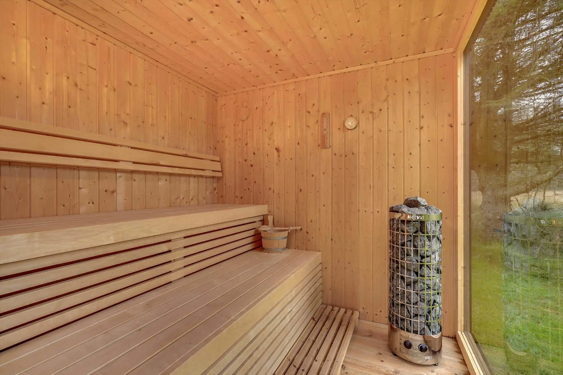 Die Außenanlagen sind sehr durchdacht und bieten Platz für Aktivität und Erholung. Die schöne Terrasse fungiert als Outdoor‑Aufenthaltsraum mit gemütlichen Sitzbereichen, und die gepflegte Rasenfläche mit Spielgeräten bietet Kindern sichere Spielflächen. Eine separat stehende Saunahütte ist ein besonderes Highlight auf dem Grundstück — sie liegt mit herrlichem Blick über den Garten und Richtung des nahegelegenen Waldes, sodass du Wärme und Naturruhe in einem Atemzug genießen kannst. Daneben befindet sich ein Wildnisbad, in dem du ein warmes Bad mit einem kalten Getränk unter dem Sternenhimmel genießen kannst. Die Terrasse und Außenbereiche laden zu morgendlichem Kaffee in der Sonne, Picknicks auf der Wiese oder zum Zusammensitzen und Plaudern ein — hier ist Raum für Spiel, Besinnlichkeit und gemütliche Gespräche unter dem offenen Himmel.