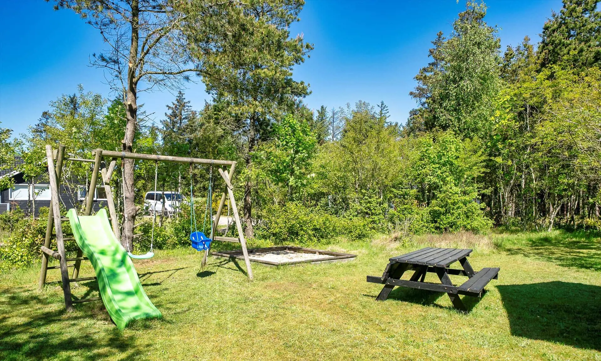 Diese Unterkunft hat eine Fläche von 73 m² und befindet sich auf einem 2.191 m² Grundstück, u.a. mit Schaukel und Sandkasten.