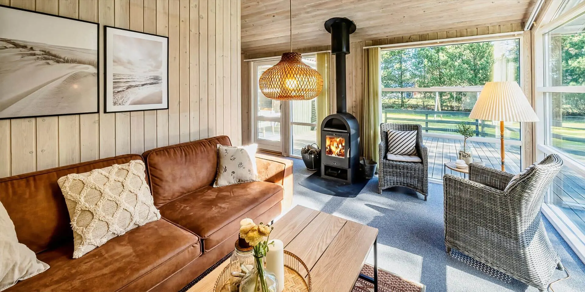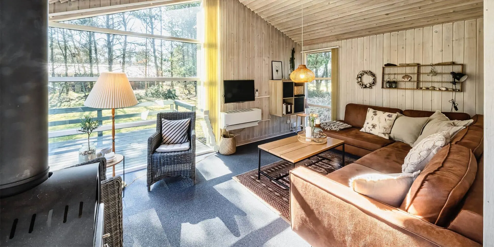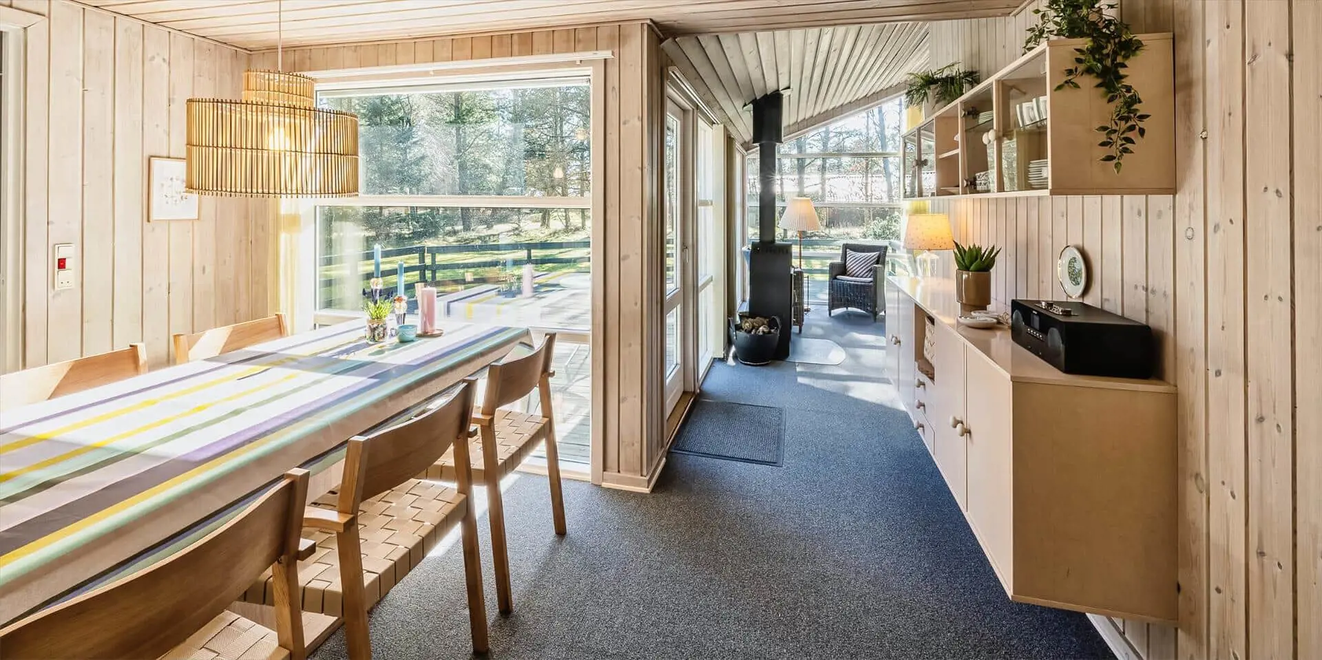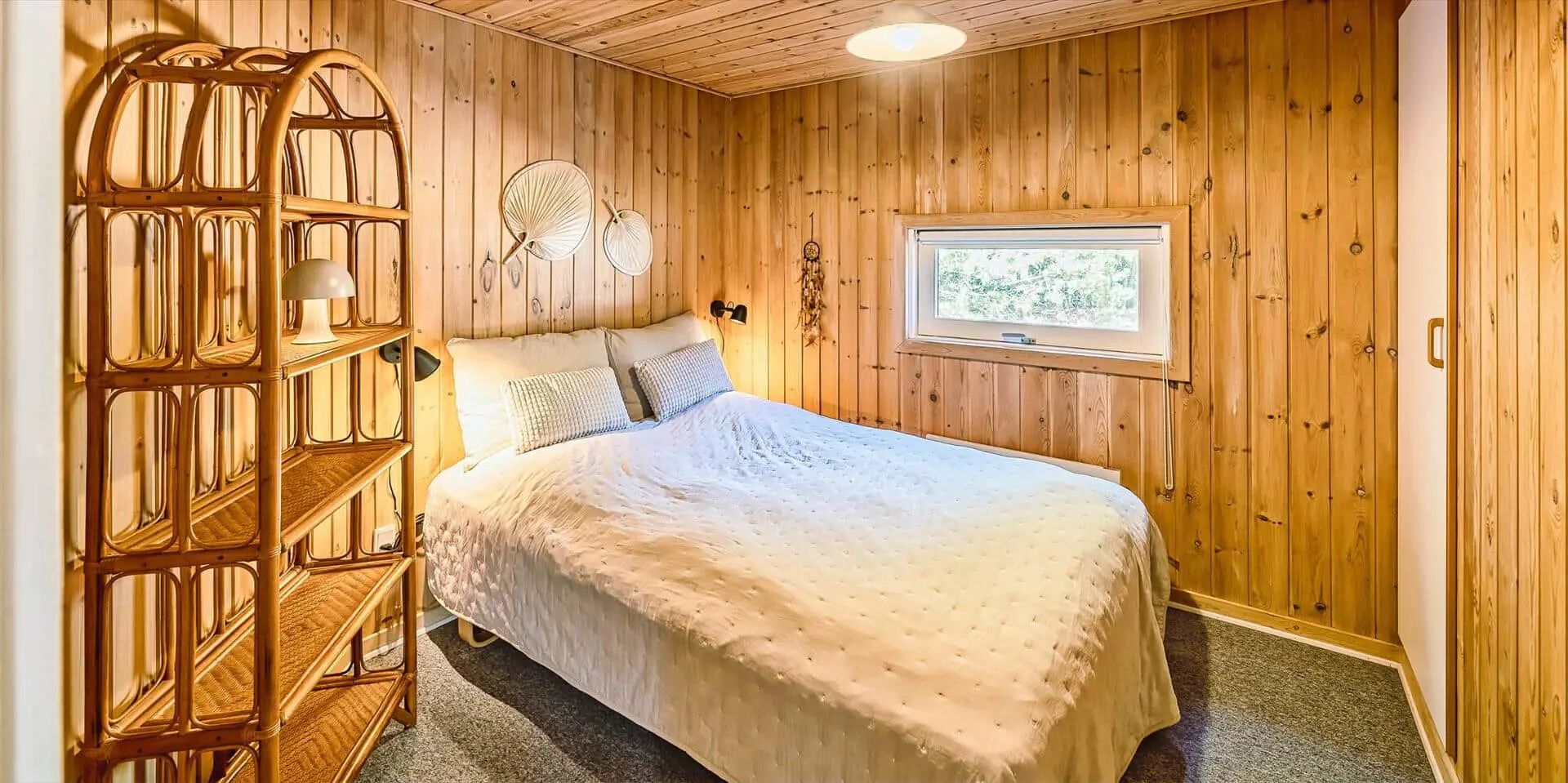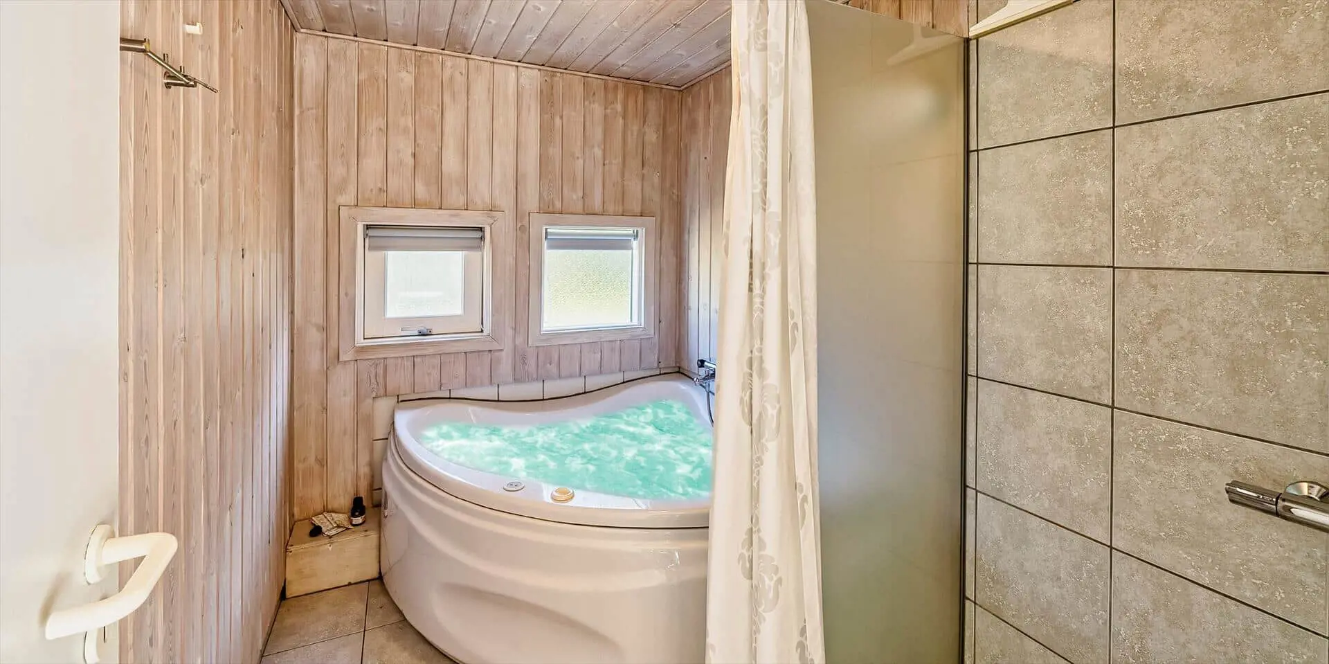 Das Haus liegt auf einem großzügigem Natur- und Waldgrundstück gelegen. Es bietet Platz für 6 bis 8 Personen. Das Ferienhaus ist ca. 1 Km vom Strand entfernt. Das Wohnzimmer ist nett eingerichtet und verfügt über eine gemütliche Rundsitzecke mit Kamin. Das deutsche Fernsehprogramm empfangen Sie über Stofa, dadurch empfangen Sie nur 5-8 deutsche Kanäle oder über Google Chromecast. DVD-Spieler. Es befindet sich eine Warmepumpe im Ferienhaus. Mit dieser Warmepumpe haben sie die Möglichkeit die Stromkosten zu senken, denn die Warmepumpe ist energiesparend. Der Küchenbereich ist zur Essecke offen gehalten, sozusagen eine Wohnküche. Die Kochinsel verfügt über einen Herd mit Platten und einem Backofen. Desweiteren ist die Küche mit einer Geschirrspülmaschine, einer Mikrowelle und einer Kühl- und Gefrierkombination ausgestattet. Das Badezimmer beinhaltet ein WC, ein Handwaschbecken und eine Dusche. Die Waschmaschine und der Trockner sind ebenfalls im Badezimmer untergebracht. In einen separate Badezimmer befindet sich der Whirlpool, eine Sauna und zusätzlich eine Dusche. Es gibt insgesamt 4 Schlafzimmer im Ferienhaus. Zwei der Schlafzimmer verfügen über je einem Doppelbett und die beiden anderen Schlafzimmer haben je ein Etagenbett. Ein gemütlicher Terrassenbereich steht am Haus ebenfalls zur Verfügung. Das Ferienhaus verfügt über einen Internetanschluss (W-Lan). Es sind max. drei Haustiere erlaubt. Für die Kleinen Gäste steht ein Schaukelstativ auf dem Grundstück zur Verfügung. Das Ferienhaus ist in 1968 erbaut worden und in 1991 renoviert. Rauchen im Haus ist nicht erlaubt.
