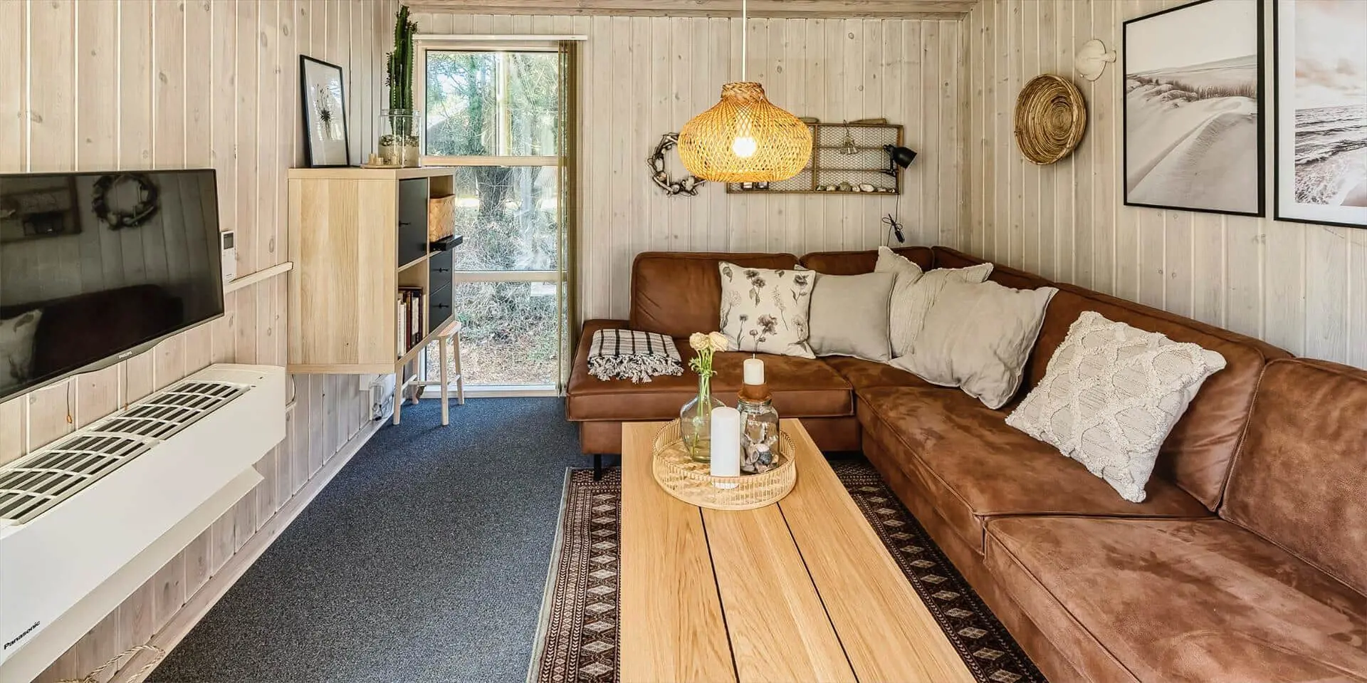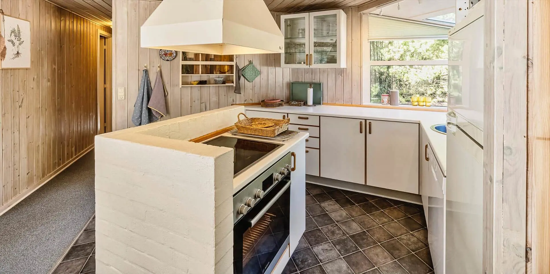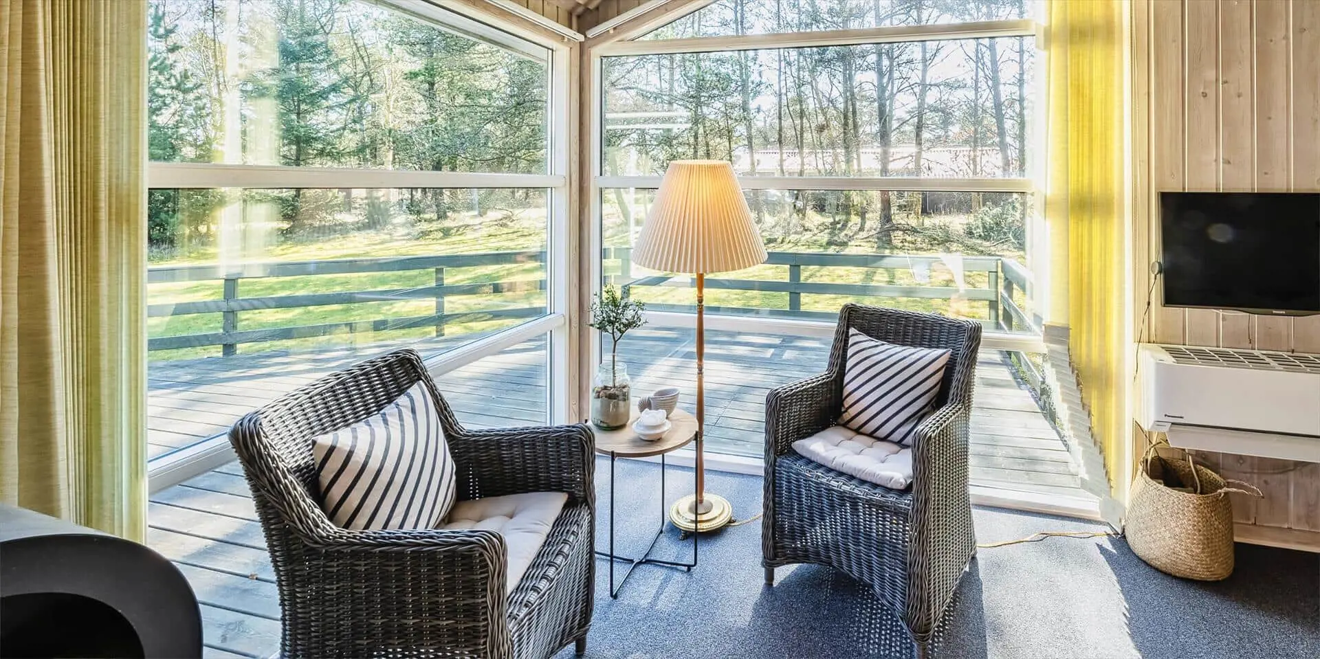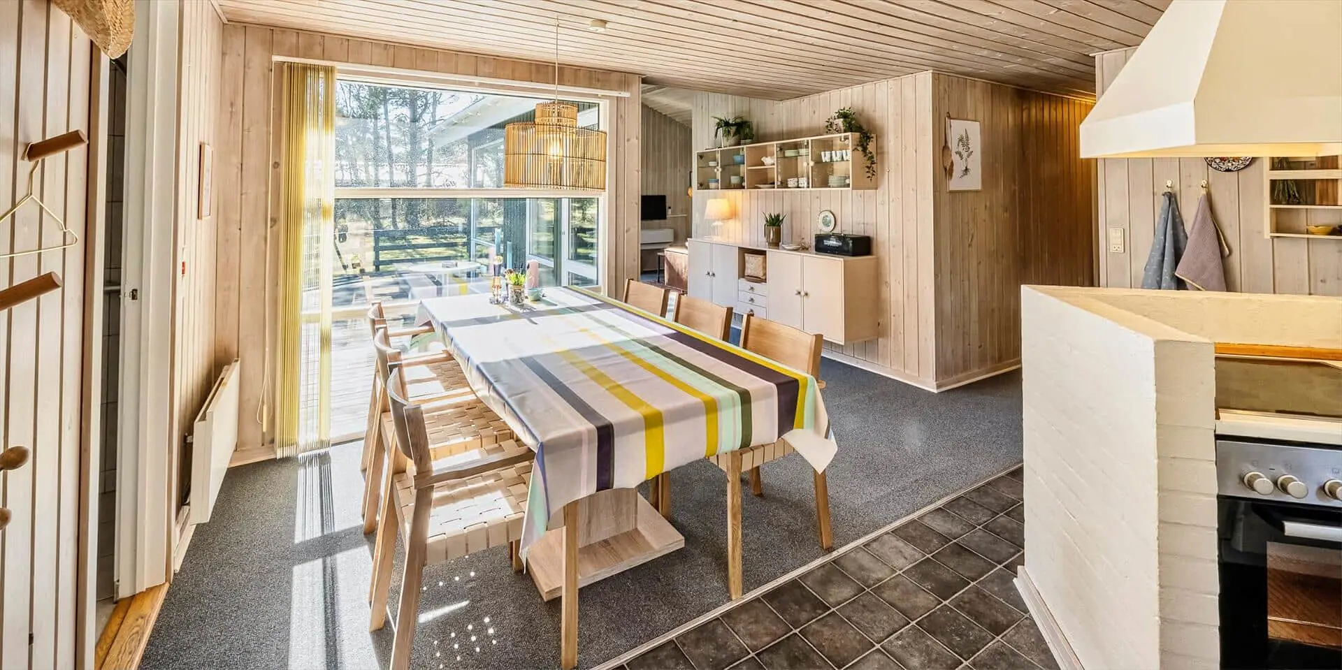 Das Haus liegt auf einem großzügigem Natur- und Waldgrundstück gelegen. Es bietet Platz für 6 bis 8 Personen. Das Ferienhaus ist ca. 1 Km vom Strand entfernt. Das Wohnzimmer ist nett eingerichtet und verfügt über eine gemütliche Rundsitzecke mit Kamin. Das deutsche Fernsehprogramm empfangen Sie über Stofa, dadurch empfangen Sie nur 5-8 deutsche Kanäle oder über Google Chromecast. DVD-Spieler. Es befindet sich eine Warmepumpe im Ferienhaus. Mit dieser Warmepumpe haben sie die Möglichkeit die Stromkosten zu senken, denn die Warmepumpe ist energiesparend. Der Küchenbereich ist zur Essecke offen gehalten, sozusagen eine Wohnküche. Die Kochinsel verfügt über einen Herd mit Platten und einem Backofen. Desweiteren ist die Küche mit einer Geschirrspülmaschine, einer Mikrowelle und einer Kühl- und Gefrierkombination ausgestattet. Das Badezimmer beinhaltet ein WC, ein Handwaschbecken und eine Dusche. Die Waschmaschine und der Trockner sind ebenfalls im Badezimmer untergebracht. In einen separate Badezimmer befindet sich der Whirlpool, eine Sauna und zusätzlich eine Dusche. Es gibt insgesamt 4 Schlafzimmer im Ferienhaus. Zwei der Schlafzimmer verfügen über je einem Doppelbett und die beiden anderen Schlafzimmer haben je ein Etagenbett. Ein gemütlicher Terrassenbereich steht am Haus ebenfalls zur Verfügung. Das Ferienhaus verfügt über einen Internetanschluss (W-Lan). Es sind max. drei Haustiere erlaubt. Für die Kleinen Gäste steht ein Schaukelstativ auf dem Grundstück zur Verfügung. Das Ferienhaus ist in 1968 erbaut worden und in 1991 renoviert. Rauchen im Haus ist nicht erlaubt.