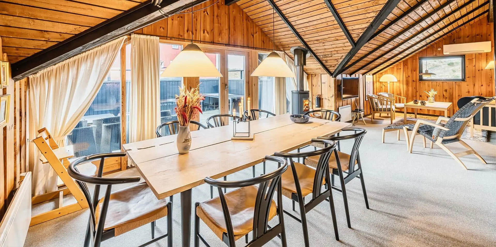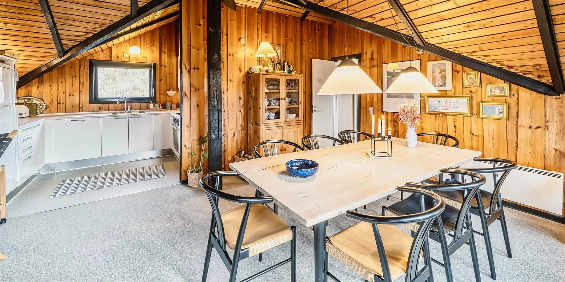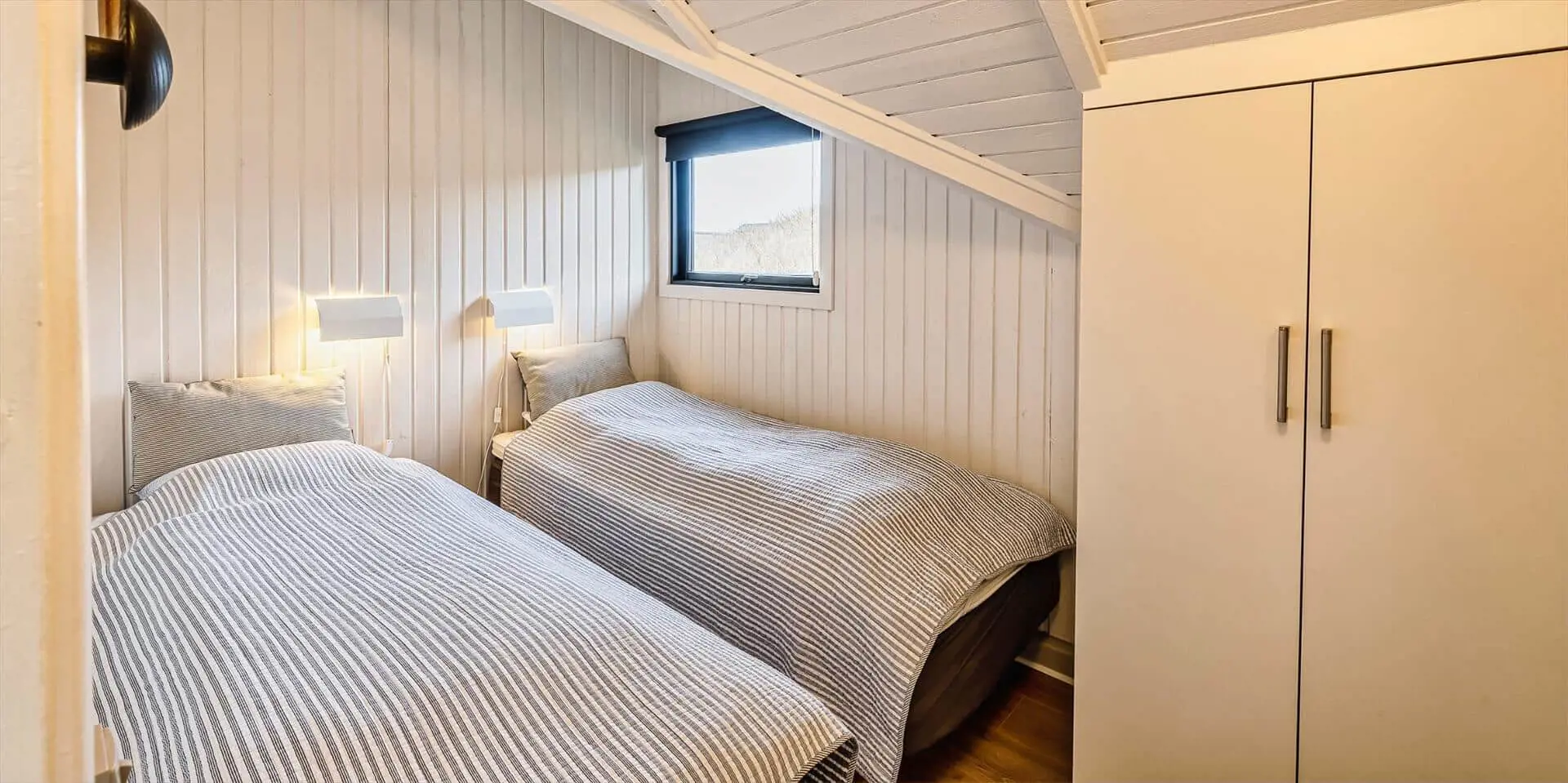 Dieses gemütliche Ferienhaus ist auf einem kleinen Naturgrundstück gelegen, in Mitten der Dünen, etwa 100 Meter vom Strand entfernt. Wohnbereich mit Kaminofen, Fernseher mit 5-8 deutsche Kanäle und Radio. Internetanschluss (W-Lan). Essbereich mit Blick auf die Terrasse. Helle Wohnküche mit Geschirrspüler, Mikrowelle und Kühl-/Gefrierkombination. Badezimmer mit Du/Wc und Fußbodenheizung. 1 Schlafzimmer mit 2 Einzelbetten, 1 Schlafzimmer mit 1 Doppelbett und 1 Schlafzimmer mit 1 Etagenbett. Warmepumpe. Geschlossene Terrasse und teilweise überdachte Terrasse. Ein kleiner Schuppen. Waschmaschine und Trockner. Rauchen und Haustiere sind nicht erlaubt. Baujahr 1975, renoviert 2016.