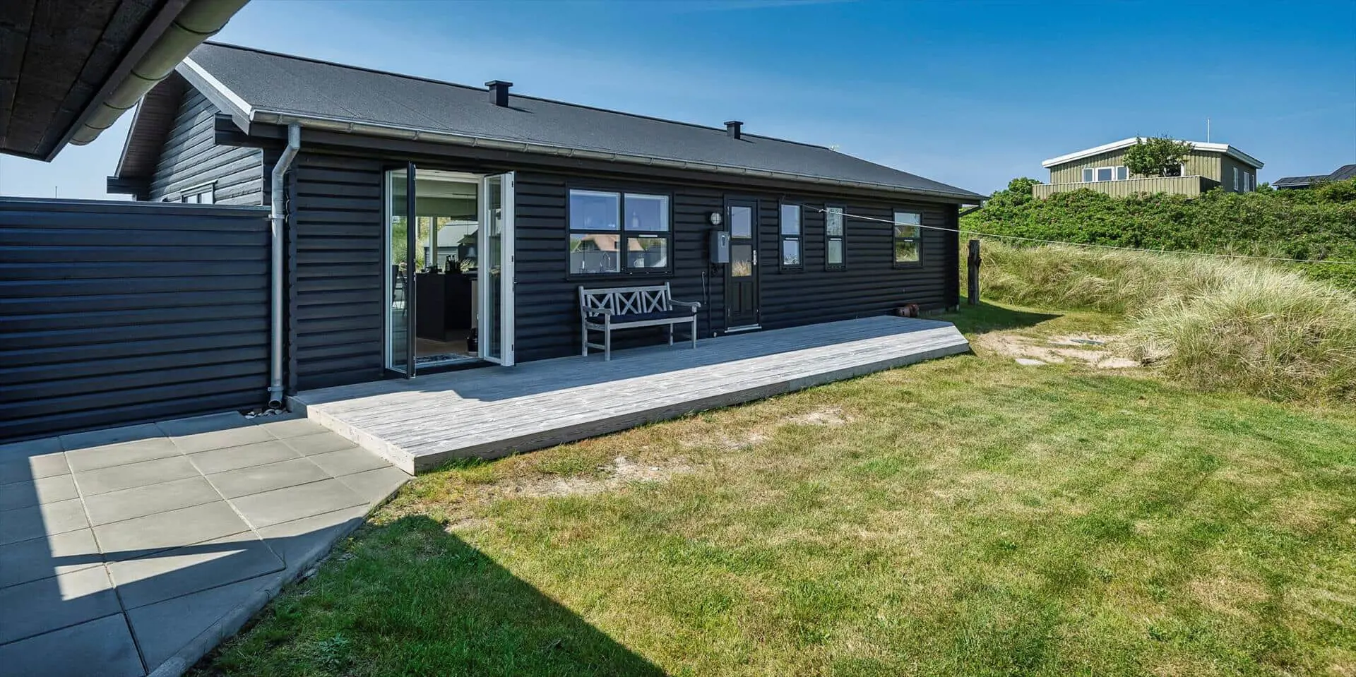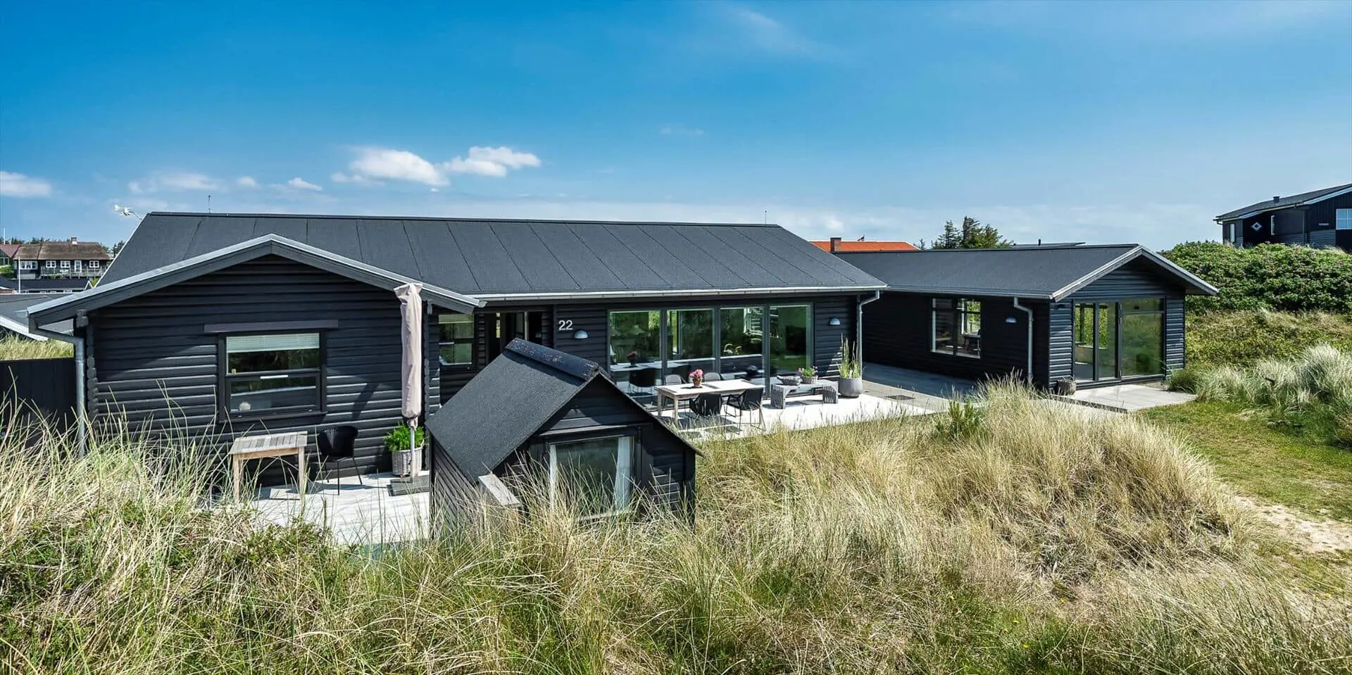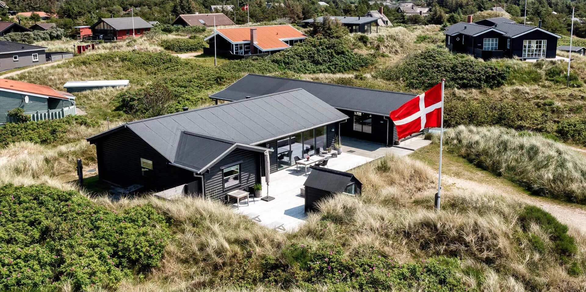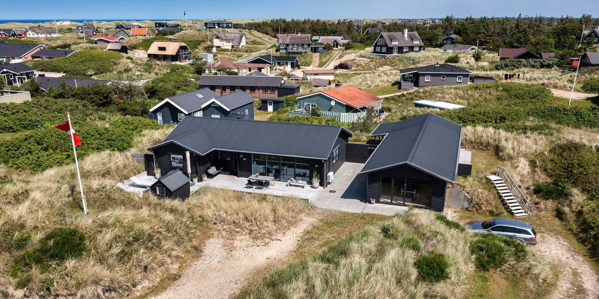 Das Ferienhaus wurde mit hochwertigen Materialien renoviert und in einem modernen und trendigen Design gestaltet, das sich gut in die Umgebung einfügt. Das Ferienhaus ist insgesamt 185 m2 groß, einschließlich Nebengebäude. Das Ferienhaus bietet eine wunderbare Atmosphäre im modernen, nordischen Stil und mit großen Panoramafenstern zur Natur. Die Außenanlagen bieten wunderschöne Sonnenuntergänge, die von den umliegenden Terrassen aus genossen werden können. Das Ferienhaus liegt auf einem Dünengrundstück, ca. 200 Meter vom Strand entfernt und in kurzer Entfernung zu Einkaufsmöglichkeiten und Restaurants. Das Haus enthält: Eingangshalle und Hauswirtschaftsraum mit Waschmaschine. 4 gute Schlafzimmer, davon 2 Schlafzimmer im Nebengebäude. 3 Schlafzimmer mit jeweils 1 Doppelbett (2 x 180 cm x 200 cm und 1 x 160 cm x 200 cm) und 1 Schlafzimmer mit 2 Etagenbetten (80 x 200 cm). Ein Hauptbadezimmer mit Dusche, Wäscherei und Toilette. Im Nebengebäude befindet sich ein Badezimmer mit Dusche, WC und Waschgelegenheit. Die Küche ist mit allem Komfort ausgestattet und verfügt über Backofen, Herd, Dunstabzugshaube, Mikrowelle, Kühlschrank mit Gefrierfach und Geschirrspüler. Der Essbereich und das Wohnzimmer sind offen mit der Küche verbunden. Das Zimmer verfügt über große Panoramafenster, durch die Sie die Umgebung genießen können. Im Anbau befindet sich ein großer Aktivitätsraum mit Tischtennis und Bop-Tisch sowie Fernseher für Chromecast. Küchenzeile mit Spüle und Kühl-/Gefrierkombination. Das Haus hat eine schöne große Terrassenumgebung auf allen Seiten des Hauses. Im Haupthaus befindet sich ein Fernseher mit Stofa Ferienhauspaket. WLAN-Internetzugang und Bluetooth-Lautsprecher. Das Haus wird mit Elektroradiatoren und Wärmepumpe beheizt: einer im Haupthaus und einer im Nebengebäude. In beiden Bädern gibt es Fußbodenheizung. Kleiner Carport für kleinere Autos (maximale Länge 4,75 Meter). Haustiere und Rauchen sind nicht erlaubt. Das Haus wurde 2020 renoviert.