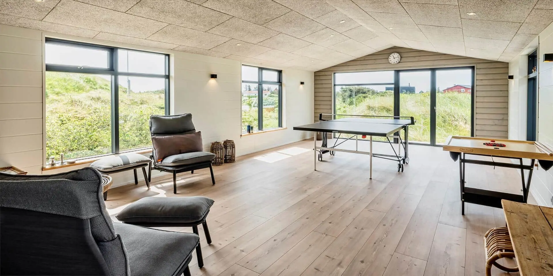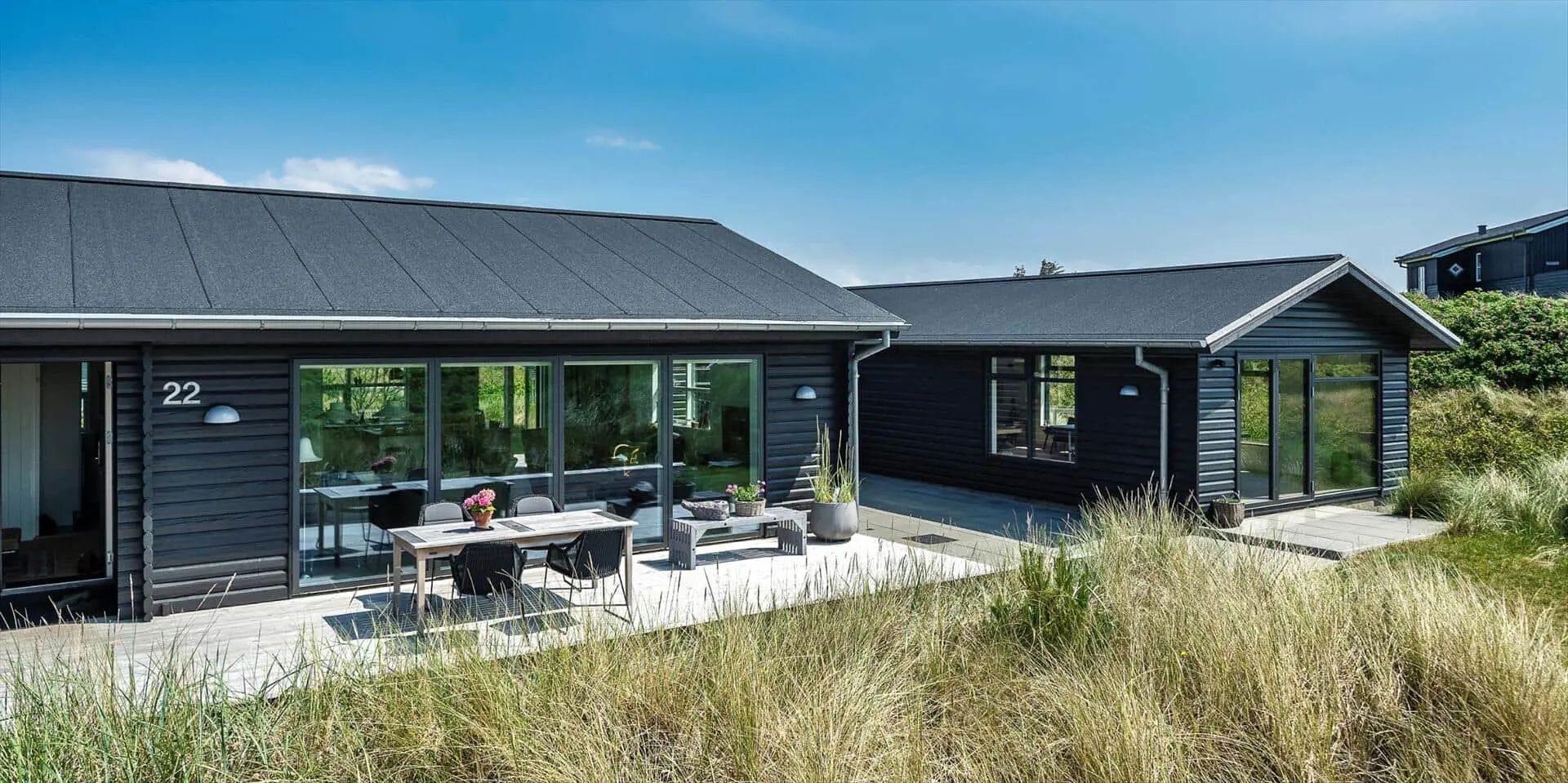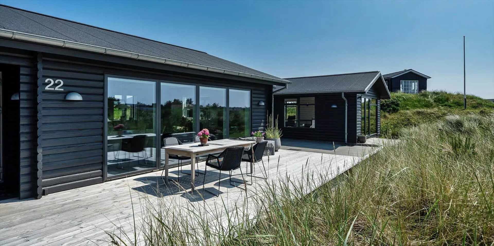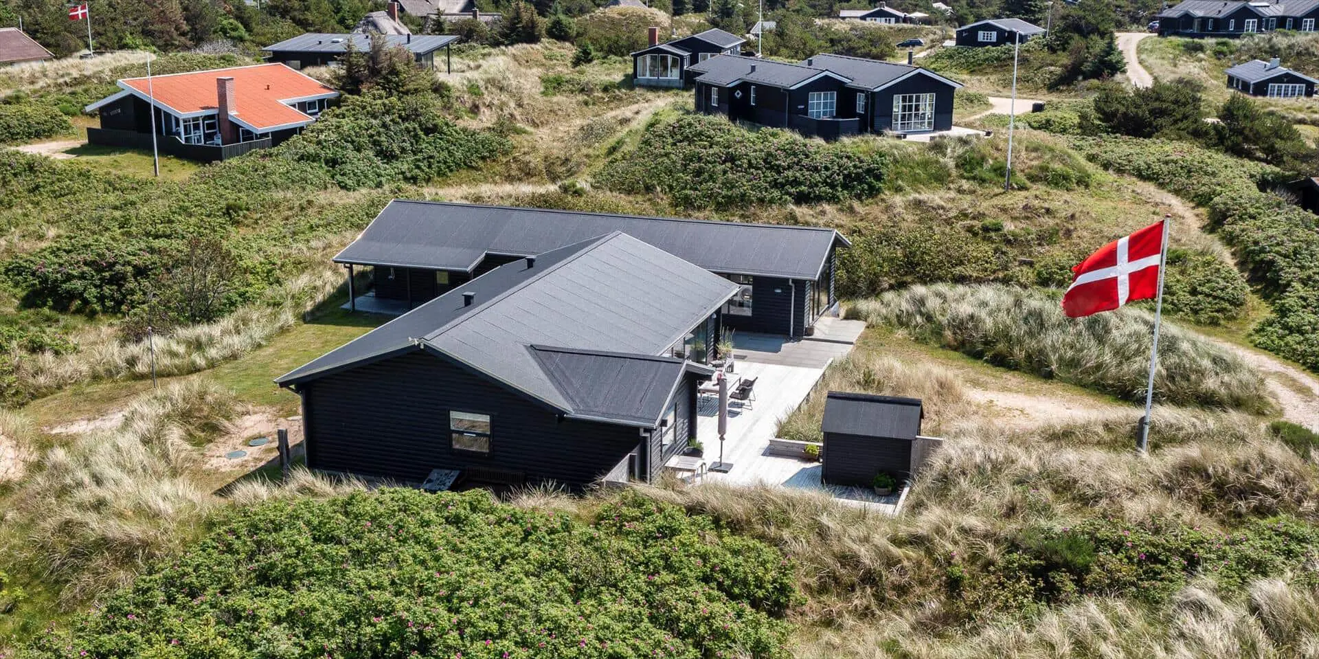 Das Ferienhaus wurde mit hochwertigen Materialien renoviert und in einem modernen und trendigen Design gestaltet, das sich gut in die Umgebung einfügt. Das Ferienhaus ist insgesamt 185 m2 groß, einschließlich Nebengebäude. Das Ferienhaus bietet eine wunderbare Atmosphäre im modernen, nordischen Stil und mit großen Panoramafenstern zur Natur. Die Außenanlagen bieten wunderschöne Sonnenuntergänge, die von den umliegenden Terrassen aus genossen werden können. Das Ferienhaus liegt auf einem Dünengrundstück, ca. 200 Meter vom Strand entfernt und in kurzer Entfernung zu Einkaufsmöglichkeiten und Restaurants. Das Haus enthält: Eingangshalle und Hauswirtschaftsraum mit Waschmaschine. 4 gute Schlafzimmer, davon 2 Schlafzimmer im Nebengebäude. 3 Schlafzimmer mit jeweils 1 Doppelbett (2 x 180 cm x 200 cm und 1 x 160 cm x 200 cm) und 1 Schlafzimmer mit 2 Etagenbetten (80 x 200 cm). Ein Hauptbadezimmer mit Dusche, Wäscherei und Toilette. Im Nebengebäude befindet sich ein Badezimmer mit Dusche, WC und Waschgelegenheit. Die Küche ist mit allem Komfort ausgestattet und verfügt über Backofen, Herd, Dunstabzugshaube, Mikrowelle, Kühlschrank mit Gefrierfach und Geschirrspüler. Der Essbereich und das Wohnzimmer sind offen mit der Küche verbunden. Das Zimmer verfügt über große Panoramafenster, durch die Sie die Umgebung genießen können. Im Anbau befindet sich ein großer Aktivitätsraum mit Tischtennis und Bop-Tisch sowie Fernseher für Chromecast. Küchenzeile mit Spüle und Kühl-/Gefrierkombination. Das Haus hat eine schöne große Terrassenumgebung auf allen Seiten des Hauses. Im Haupthaus befindet sich ein Fernseher mit Stofa Ferienhauspaket. WLAN-Internetzugang und Bluetooth-Lautsprecher. Das Haus wird mit Elektroradiatoren und Wärmepumpe beheizt: einer im Haupthaus und einer im Nebengebäude. In beiden Bädern gibt es Fußbodenheizung. Kleiner Carport für kleinere Autos (maximale Länge 4,75 Meter). Haustiere und Rauchen sind nicht erlaubt. Das Haus wurde 2020 renoviert.