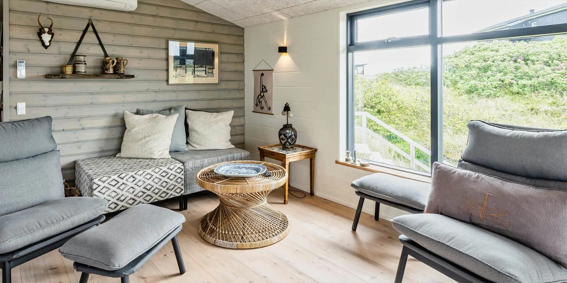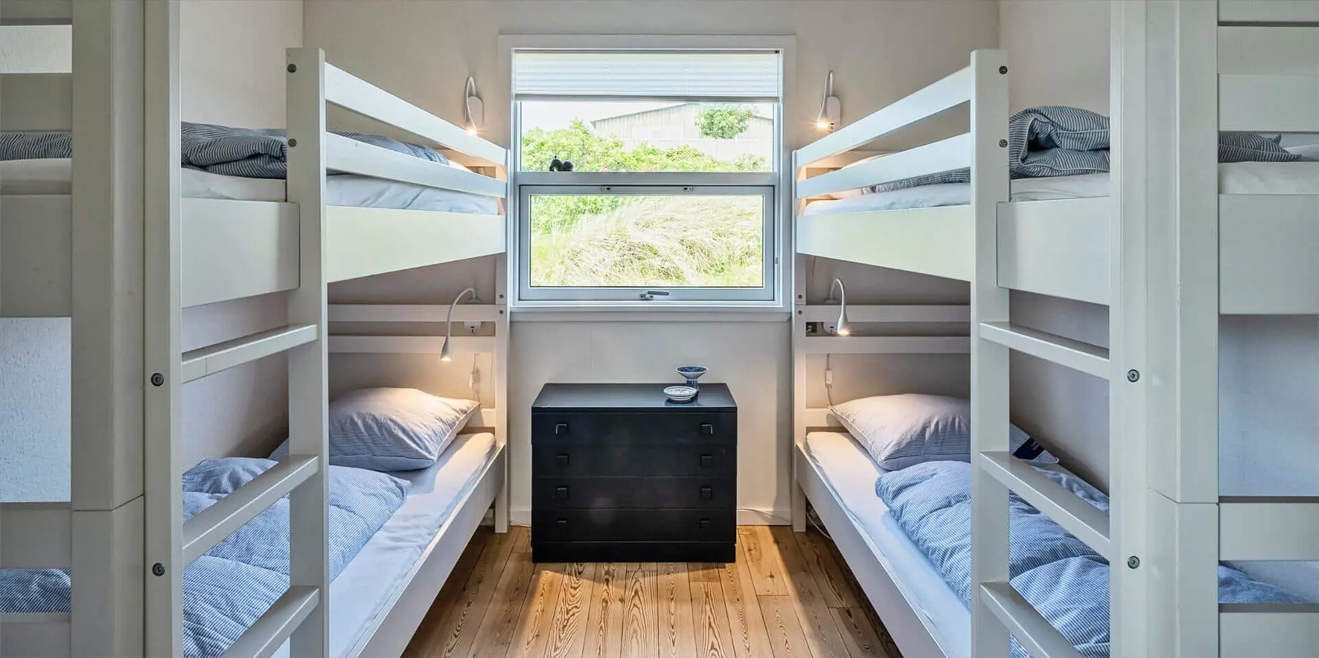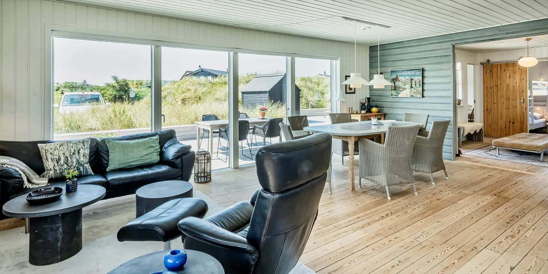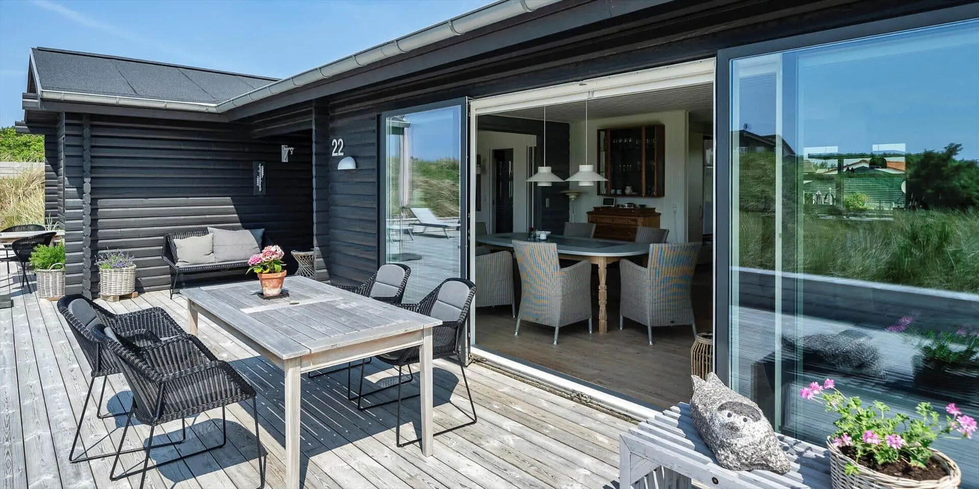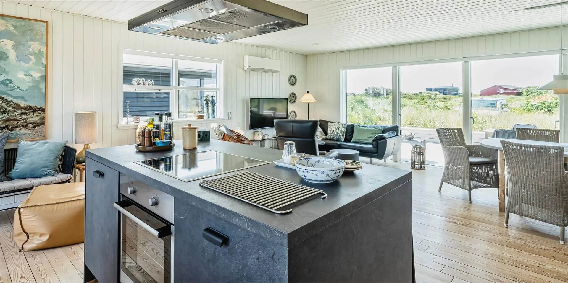 Das Ferienhaus wurde mit hochwertigen Materialien renoviert und in einem modernen und trendigen Design gestaltet, das sich gut in die Umgebung einfügt. Das Ferienhaus ist insgesamt 185 m2 groß, einschließlich Nebengebäude. Das Ferienhaus bietet eine wunderbare Atmosphäre im modernen, nordischen Stil und mit großen Panoramafenstern zur Natur. Die Außenanlagen bieten wunderschöne Sonnenuntergänge, die von den umliegenden Terrassen aus genossen werden können. Das Ferienhaus liegt auf einem Dünengrundstück, ca. 200 Meter vom Strand entfernt und in kurzer Entfernung zu Einkaufsmöglichkeiten und Restaurants. Das Haus enthält: Eingangshalle und Hauswirtschaftsraum mit Waschmaschine. 4 gute Schlafzimmer, davon 2 Schlafzimmer im Nebengebäude. 3 Schlafzimmer mit jeweils 1 Doppelbett (2 x 180 cm x 200 cm und 1 x 160 cm x 200 cm) und 1 Schlafzimmer mit 2 Etagenbetten (80 x 200 cm). Ein Hauptbadezimmer mit Dusche, Wäscherei und Toilette. Im Nebengebäude befindet sich ein Badezimmer mit Dusche, WC und Waschgelegenheit. Die Küche ist mit allem Komfort ausgestattet und verfügt über Backofen, Herd, Dunstabzugshaube, Mikrowelle, Kühlschrank mit Gefrierfach und Geschirrspüler. Der Essbereich und das Wohnzimmer sind offen mit der Küche verbunden. Das Zimmer verfügt über große Panoramafenster, durch die Sie die Umgebung genießen können. Im Anbau befindet sich ein großer Aktivitätsraum mit Tischtennis und Bop-Tisch sowie Fernseher für Chromecast. Küchenzeile mit Spüle und Kühl-/Gefrierkombination. Das Haus hat eine schöne große Terrassenumgebung auf allen Seiten des Hauses. Im Haupthaus befindet sich ein Fernseher mit Stofa Ferienhauspaket. WLAN-Internetzugang und Bluetooth-Lautsprecher. Das Haus wird mit Elektroradiatoren und Wärmepumpe beheizt: einer im Haupthaus und einer im Nebengebäude. In beiden Bädern gibt es Fußbodenheizung. Kleiner Carport für kleinere Autos (maximale Länge 4,75 Meter). Haustiere und Rauchen sind nicht erlaubt. Das Haus wurde 2020 renoviert.