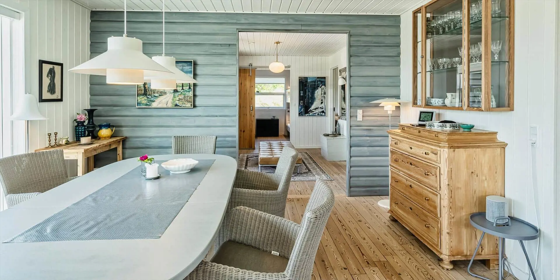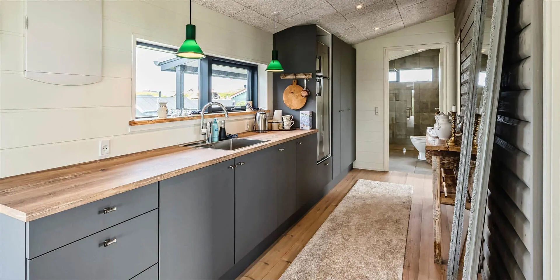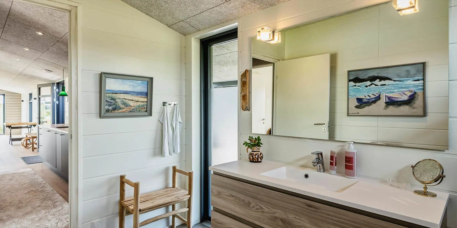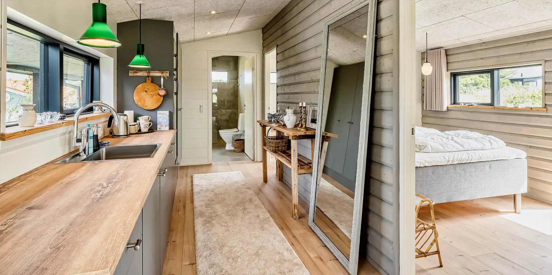 Das Ferienhaus wurde mit hochwertigen Materialien renoviert und in einem modernen und trendigen Design gestaltet, das sich gut in die Umgebung einfügt. Das Ferienhaus ist insgesamt 185 m2 groß, einschließlich Nebengebäude. Das Ferienhaus bietet eine wunderbare Atmosphäre im modernen, nordischen Stil und mit großen Panoramafenstern zur Natur. Die Außenanlagen bieten wunderschöne Sonnenuntergänge, die von den umliegenden Terrassen aus genossen werden können. Das Ferienhaus liegt auf einem Dünengrundstück, ca. 200 Meter vom Strand entfernt und in kurzer Entfernung zu Einkaufsmöglichkeiten und Restaurants. Das Haus enthält: Eingangshalle und Hauswirtschaftsraum mit Waschmaschine. 4 gute Schlafzimmer, davon 2 Schlafzimmer im Nebengebäude. 3 Schlafzimmer mit jeweils 1 Doppelbett (2 x 180 cm x 200 cm und 1 x 160 cm x 200 cm) und 1 Schlafzimmer mit 2 Etagenbetten (80 x 200 cm). Ein Hauptbadezimmer mit Dusche, Wäscherei und Toilette. Im Nebengebäude befindet sich ein Badezimmer mit Dusche, WC und Waschgelegenheit. Die Küche ist mit allem Komfort ausgestattet und verfügt über Backofen, Herd, Dunstabzugshaube, Mikrowelle, Kühlschrank mit Gefrierfach und Geschirrspüler. Der Essbereich und das Wohnzimmer sind offen mit der Küche verbunden. Das Zimmer verfügt über große Panoramafenster, durch die Sie die Umgebung genießen können. Im Anbau befindet sich ein großer Aktivitätsraum mit Tischtennis und Bop-Tisch sowie Fernseher für Chromecast. Küchenzeile mit Spüle und Kühl-/Gefrierkombination. Das Haus hat eine schöne große Terrassenumgebung auf allen Seiten des Hauses. Im Haupthaus befindet sich ein Fernseher mit Stofa Ferienhauspaket. WLAN-Internetzugang und Bluetooth-Lautsprecher. Das Haus wird mit Elektroradiatoren und Wärmepumpe beheizt: einer im Haupthaus und einer im Nebengebäude. In beiden Bädern gibt es Fußbodenheizung. Kleiner Carport für kleinere Autos (maximale Länge 4,75 Meter). Haustiere und Rauchen sind nicht erlaubt. Das Haus wurde 2020 renoviert.