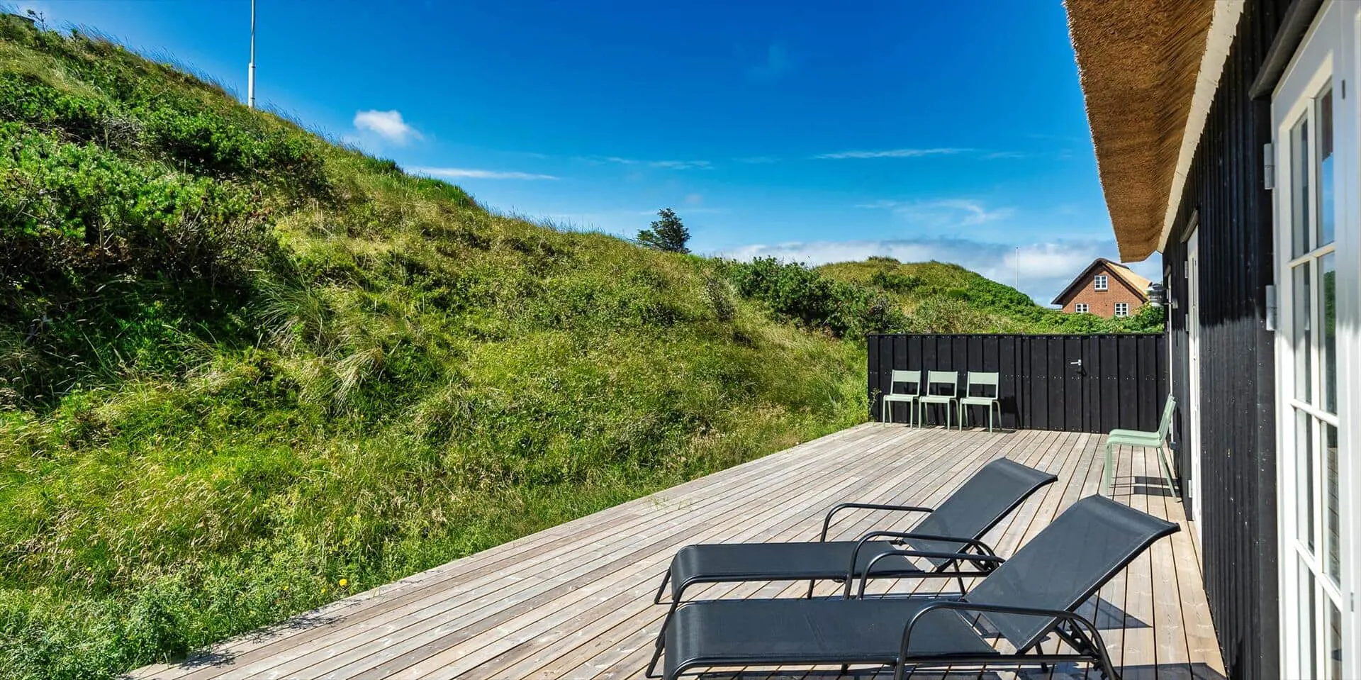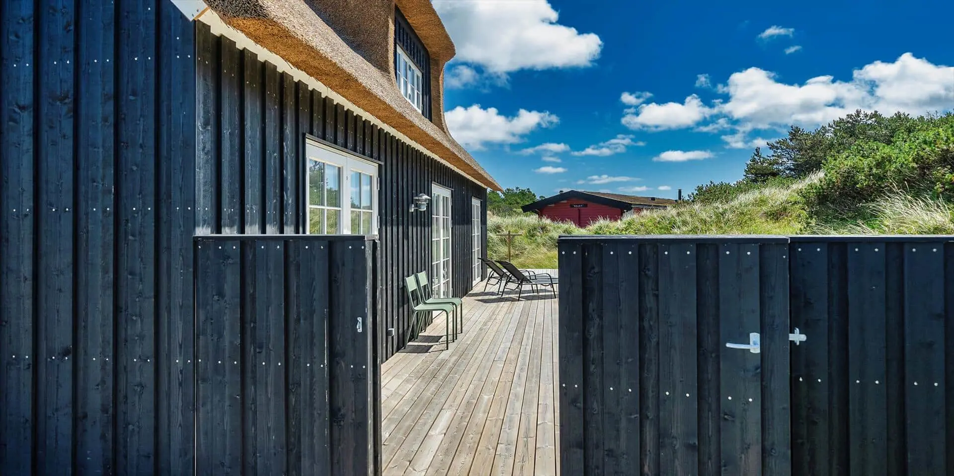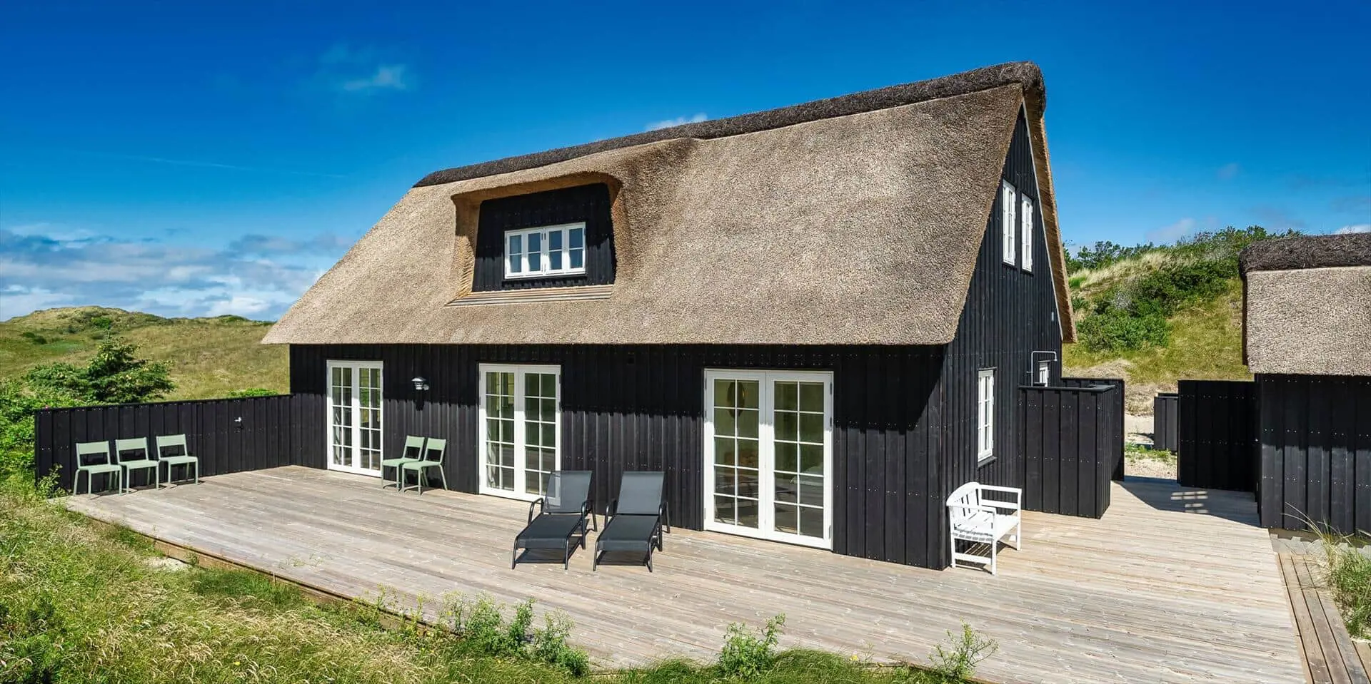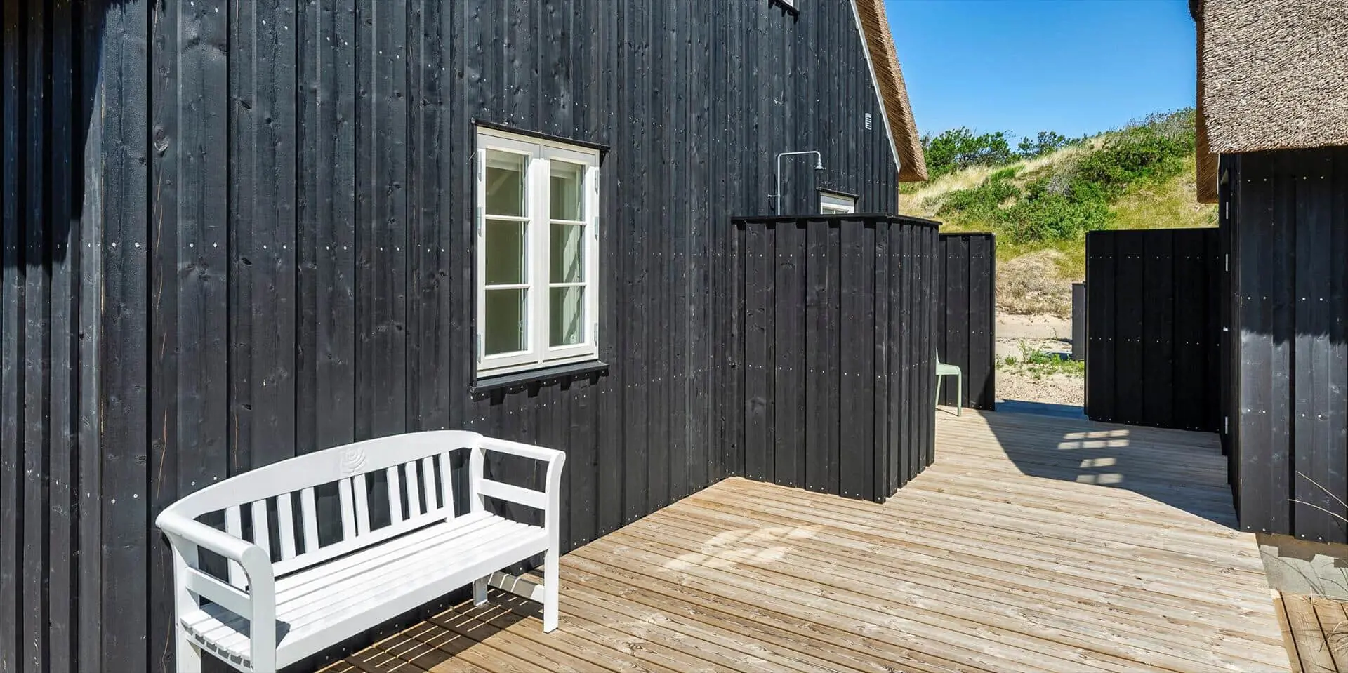 Der Strand ist ca. 400 Meter vom Haus entfernt. Das Ferienhaus selbst ist aus hochwertigen Materialien gebaut worden mit einem trendigen Design, das sich der Umgebung anpasst. Die Wohnfläche beträgt 157 qm2. Das Ferienhaus bietet eine wunderbare Atmosphäre im modernen und nordischen Stil. Im Erdgeschoss befinden sich der Eingangsbereich, der Wohn- und Essbereich und eine offene Küche, ein großes Badezimmer und ein Schlafzimmer. Über eine schöne Holztreppe gelangen Sie dann in das Obergeschoss. Das Ferienhaus wird im Erdgeschoss komplett mit einer Fußbodenheizung / Luft-Wasser-Wärmepumpe beheizt. Im Obergeschoss befinden sich weitere drei Schlafzimmer, ein kleines Gästebad und ein kleiner Flur oder auch Wohnbereich. Das Obergeschoss wird mit Elektroheizkörper geheizt. Das ganze Ferienhaus ist, außer in den Bädern und der Eingangsbereich, mit einem Laminat verlegt. Der Eingangsbereich ist großzügig gehalten und bietet genügend Platz für Garderobe und Schuhe. Der Wohn- und Essbereich ist zum Küchenbereich offengehalten. Das deutsche Fernsehen sollte über eine Parabolantenne empfangen werden können. Die dänischen Programme kommen über Smart TV. In einer Ecke im Wohnbereich ist ein kleiner Alkoven. Hier haben Sie die Möglichkeit zu entspannen und vielleicht oder auch Ihr Buch zu lesen. Die neue und trendige Einbauküche ist in einem tollen Design und bietet alles was Sie zum täglichen kochen benötigen. Die Küche verfügt über einen Herd mit Cerankochfeld, einem Backofen, einer Geschirrspülmaschine, und einer Kühl- und Gefrierkombination. Das große Badezimmer verfügt über eine Handwaschbecken mit reichlich Ablagefläche und Schränken, einem WC, einer Dusche und einer Sauna (wird max 60 Grad). Desweiteren sind die Waschmaschine und der Trockner hier im Bad untergebracht. Eine Tür damit Sie zum Terrassenbereich und der Aussendusche, die aber nur im Sommer genutzt werden kann, gelangen ist auch vorhanden. Das Schlafzimmer im Erdgeschoss verfügt über ein Doppelbett (180 cm x 200 cm). Über die Holztreppe gelangen Sie dann in das Obergeschoss. Hier ist gleich ein großer Bereich, der als weiterer Wohnraum genutzt werden kann. Desweiteren befinden sich hier die drei Schlafzimmer, davon ein Schlafzimmer mit einem Doppelbett (180 cm x 200 cm) und die beiden anderen Schlafzimmer mit je 2 Einzelbetten (90 cm x 200 cm). Ein Gästebad mit WC und Handwaschbecken und Dusche befindet sich auch hier auf der Etage. Das Ferienhaus verfügt über einen Internetanschluss (W-Lan). Das Rauchen im Ferienhaus ist nicht erlaubt. Es sind keine Haustiere erlaubt. Eine private Ladestation für El-Fahrzeuge steht den Gästen auch zur Verfügung. Der Eigentümer stellt einen Holzkohlegrill zur Verfügung. Bitte nach Gebrauch wieder gereinigt zurückstellen, damit der Nachfolgemieter auch noch was davon hat. Die Außenanlagen bieten wunderschöne Sonnenuntergänge, die Sie in vollen Zügen genießen können, oder auch natürlich Ihren Grillabend. Das Baujahr ist 2022.