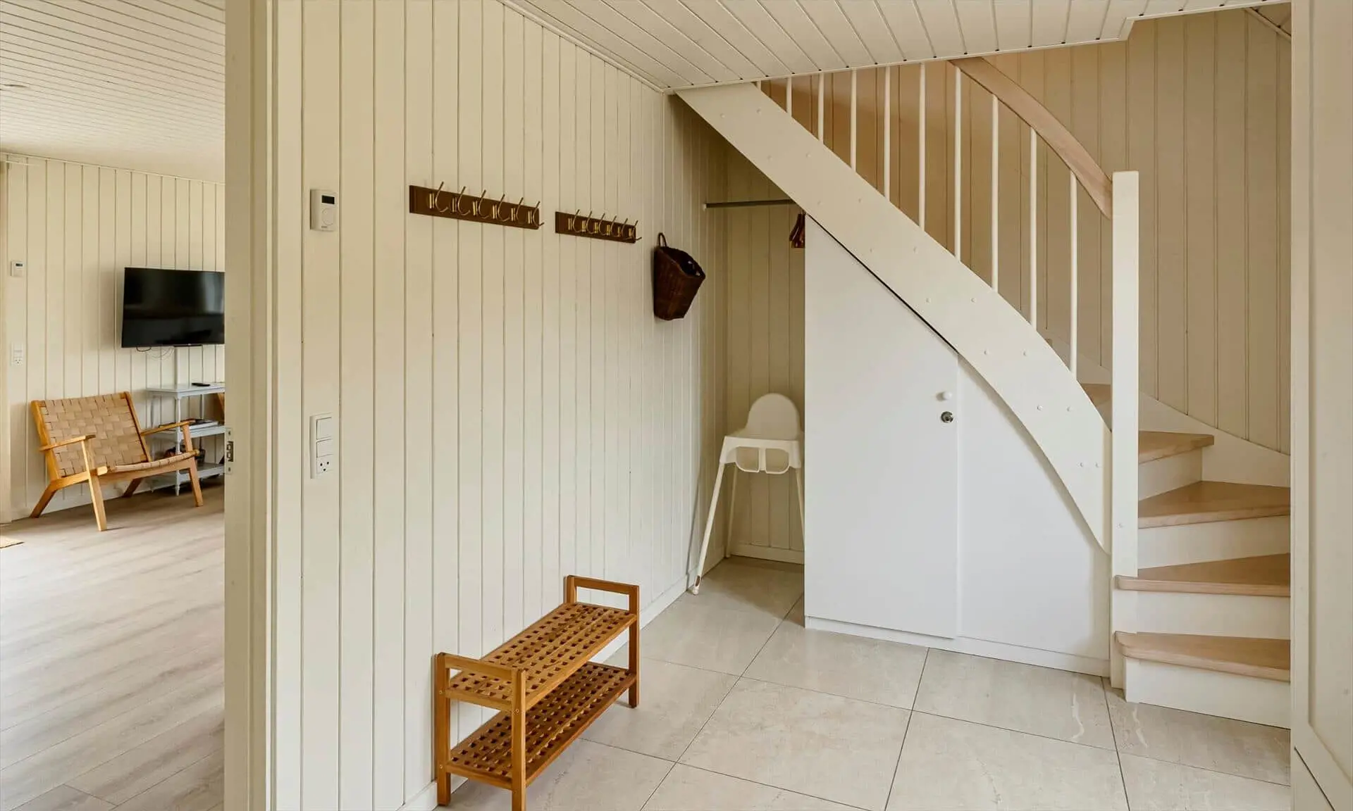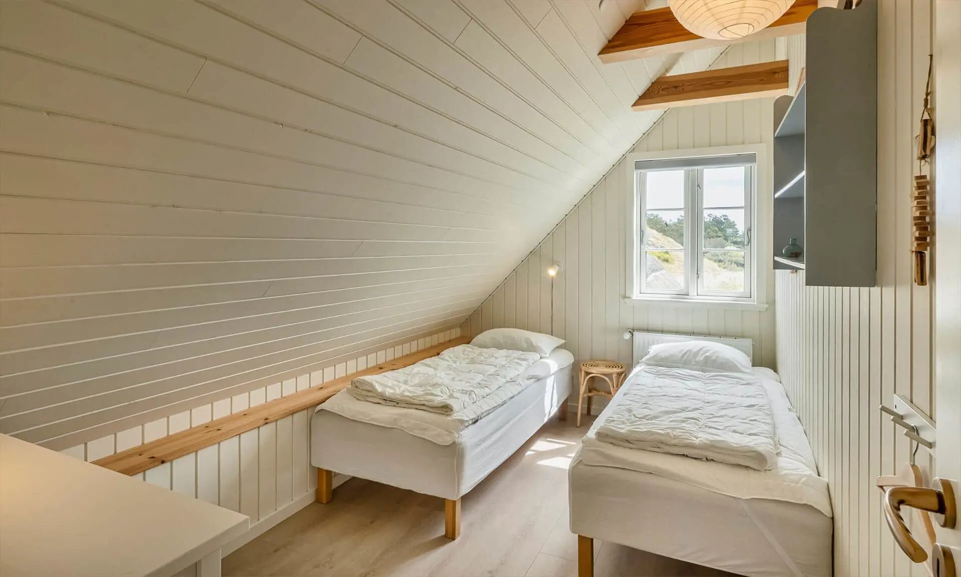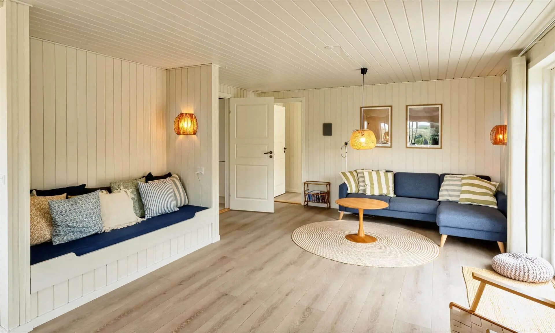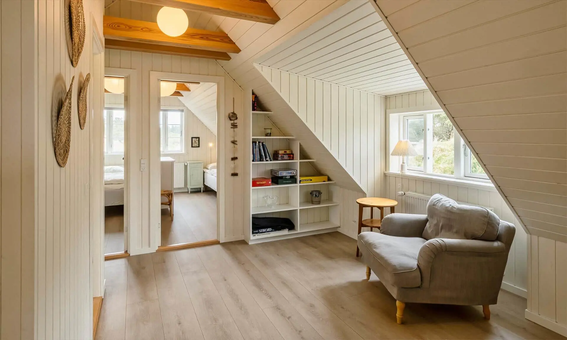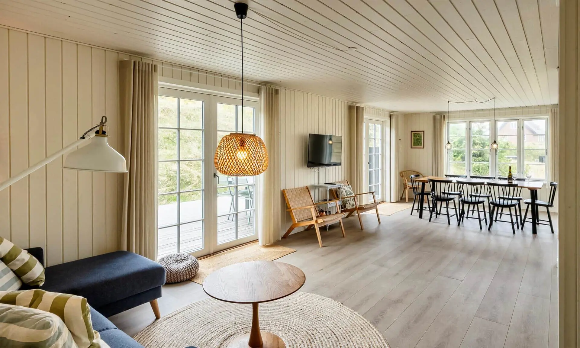 Der Strand ist ca. 400 Meter vom Haus entfernt. Das Ferienhaus selbst ist aus hochwertigen Materialien gebaut worden mit einem trendigen Design, das sich der Umgebung anpasst. Die Wohnfläche beträgt 157 qm2. Das Ferienhaus bietet eine wunderbare Atmosphäre im modernen und nordischen Stil. Im Erdgeschoss befinden sich der Eingangsbereich, der Wohn- und Essbereich und eine offene Küche, ein großes Badezimmer und ein Schlafzimmer. Über eine schöne Holztreppe gelangen Sie dann in das Obergeschoss. Das Ferienhaus wird im Erdgeschoss komplett mit einer Fußbodenheizung / Luft-Wasser-Wärmepumpe beheizt. Im Obergeschoss befinden sich weitere drei Schlafzimmer, ein kleines Gästebad und ein kleiner Flur oder auch Wohnbereich. Das Obergeschoss wird mit Elektroheizkörper geheizt. Das ganze Ferienhaus ist, außer in den Bädern und der Eingangsbereich, mit einem Laminat verlegt. Der Eingangsbereich ist großzügig gehalten und bietet genügend Platz für Garderobe und Schuhe. Der Wohn- und Essbereich ist zum Küchenbereich offengehalten. Das deutsche Fernsehen sollte über eine Parabolantenne empfangen werden können. Die dänischen Programme kommen über Smart TV. In einer Ecke im Wohnbereich ist ein kleiner Alkoven. Hier haben Sie die Möglichkeit zu entspannen und vielleicht oder auch Ihr Buch zu lesen. Die neue und trendige Einbauküche ist in einem tollen Design und bietet alles was Sie zum täglichen kochen benötigen. Die Küche verfügt über einen Herd mit Cerankochfeld, einem Backofen, einer Geschirrspülmaschine, und einer Kühl- und Gefrierkombination. Das große Badezimmer verfügt über eine Handwaschbecken mit reichlich Ablagefläche und Schränken, einem WC, einer Dusche und einer Sauna (wird max 60 Grad). Desweiteren sind die Waschmaschine und der Trockner hier im Bad untergebracht. Eine Tür damit Sie zum Terrassenbereich und der Aussendusche, die aber nur im Sommer genutzt werden kann, gelangen ist auch vorhanden. Das Schlafzimmer im Erdgeschoss verfügt über ein Doppelbett (180 cm x 200 cm). Über die Holztreppe gelangen Sie dann in das Obergeschoss. Hier ist gleich ein großer Bereich, der als weiterer Wohnraum genutzt werden kann. Desweiteren befinden sich hier die drei Schlafzimmer, davon ein Schlafzimmer mit einem Doppelbett (180 cm x 200 cm) und die beiden anderen Schlafzimmer mit je 2 Einzelbetten (90 cm x 200 cm). Ein Gästebad mit WC und Handwaschbecken und Dusche befindet sich auch hier auf der Etage. Das Ferienhaus verfügt über einen Internetanschluss (W-Lan). Das Rauchen im Ferienhaus ist nicht erlaubt. Es sind keine Haustiere erlaubt. Eine private Ladestation für El-Fahrzeuge steht den Gästen auch zur Verfügung. Der Eigentümer stellt einen Holzkohlegrill zur Verfügung. Bitte nach Gebrauch wieder gereinigt zurückstellen, damit der Nachfolgemieter auch noch was davon hat. Die Außenanlagen bieten wunderschöne Sonnenuntergänge, die Sie in vollen Zügen genießen können, oder auch natürlich Ihren Grillabend. Das Baujahr ist 2022.