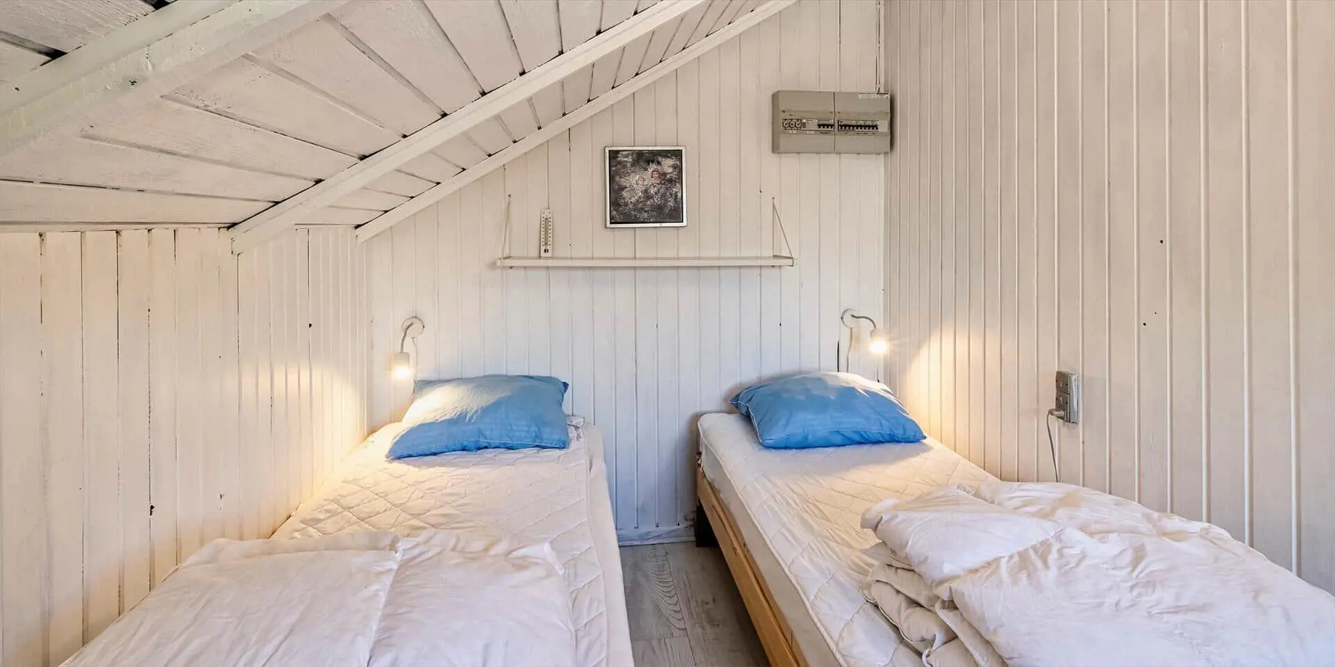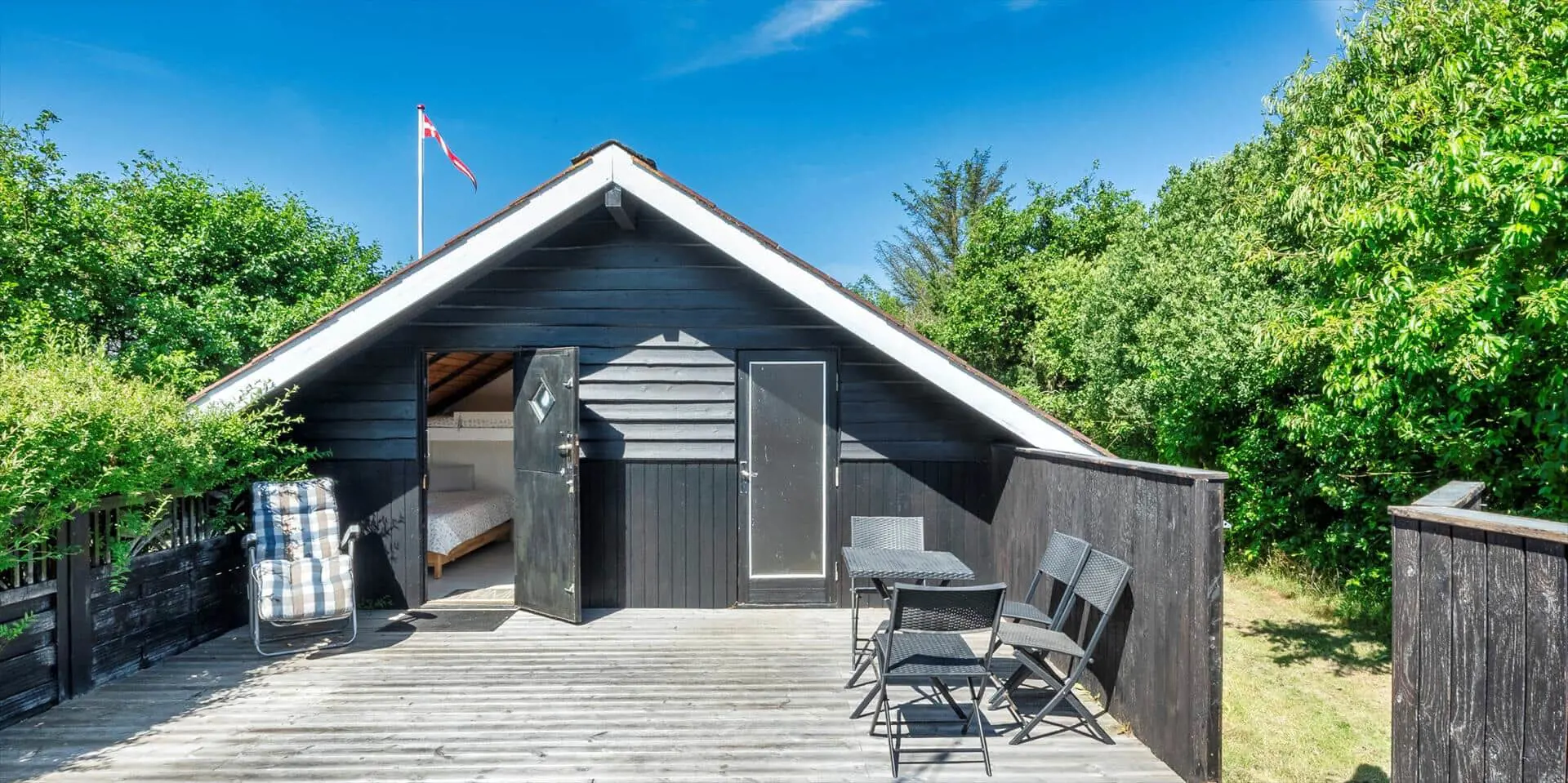 Das Ferienhaus bietet auf 65 m2 wunderbare Atmosphäre und ist für 5 Gäste gedacht. Draußen und drinnen herrscht das ganze Jahr über angenehmer Komfort für die ganze Familie. Das Haus liegt etwa 600 Meter vom Strand entfernt. Die Außenanlagen bieten mehrere Terrassen, darunter eine schöne geschlossene Holzterrasse, die teilweise überdacht ist. Hier können die Abende bis in den Frühling/Herbst hinein verlängert und genossen werden. Das Sommerhaus liegt auf einem schönen großen Naturgrundstück und ist kinderfreundlich. All the Glory liegt nur wenige Autominuten vom Stadtzentrum von Vejer entfernt, das mehrere Restaurants, eine Bäckerei, eine Pizzeria, 2 Lebensmittelgeschäfte, eine Drop-in-Küche mit Eis und Softeis und mehr bietet. Das Ferienhaus: Eingangsbereich mit Platz für eine Garderobe. Das Haus verfügt über 1 schönes Badezimmer. Große Wohnküche und Wohnzimmer in einem, sowie ein guter Essbereich. Das Zimmer ist hell und schön mit guten Fenstern und Zugang zur Terrasse. Diese Terrasse ist teilweise überdacht und geschlossen. Die Küche ist mit allem Komfort wie Geschirrspüler, Mikrowelle, Herd, Dunstabzugshaube und Kühl-/Gefrierschrank ausgestattet. Schönes Wohnzimmer mit Holzofen, Radio, CD-Player, Smart-TV und WLAN. Die dänischen Programme können nur gestreamt werden. Das Haus verfügt insgesamt über 2 Schlafzimmer. 1 Schlafzimmer mit 2 Einzelbetten (2 x 80 x 200) und 1 Schlafzimmer mit 1 Etagenbett und 1 Einzelbett (1 x 80 x 200). Das Ferienhaus verfügt über eine Waschmaschine und einen Wäschetrockner. Neben der geschlossenen Holzterrasse gibt es zwei weitere Terrassen, auf denen Sie die Natur und die Sonne genießen können. Das Haus wird mit elektrischen Heizkörpern und einer Wärmepumpe beheizt. Es darf 1 Haustier mitgebracht werden. Rauchen ist verboten. Baujahr 1977, aber regelmäßig gewartet.