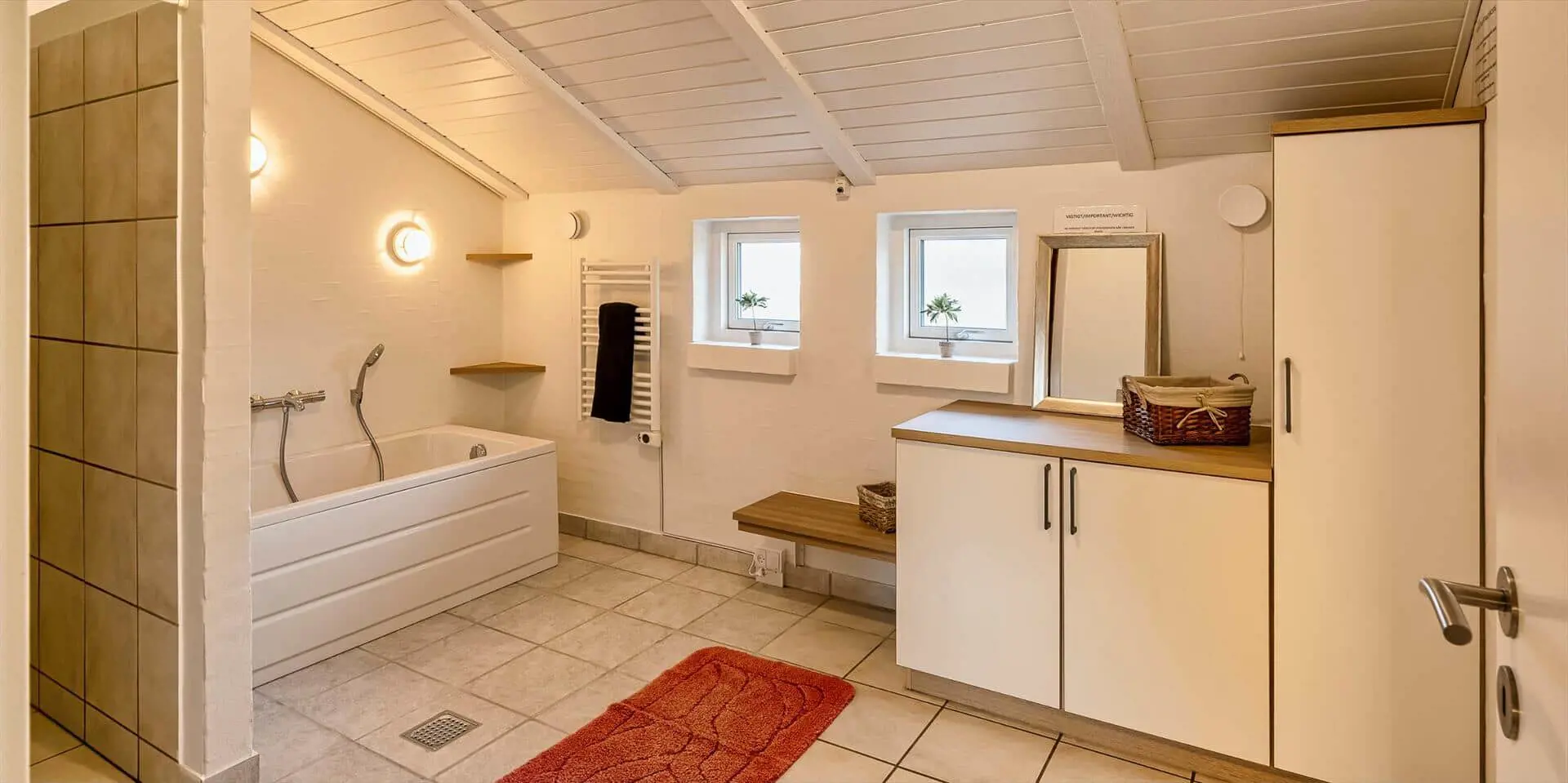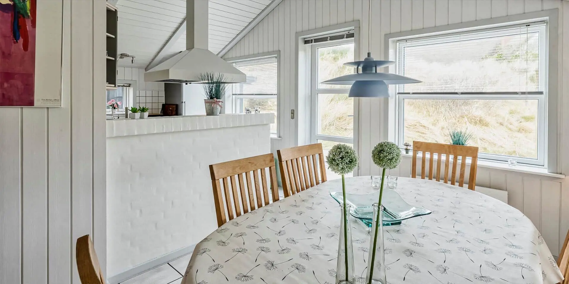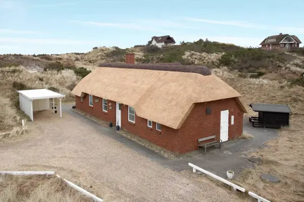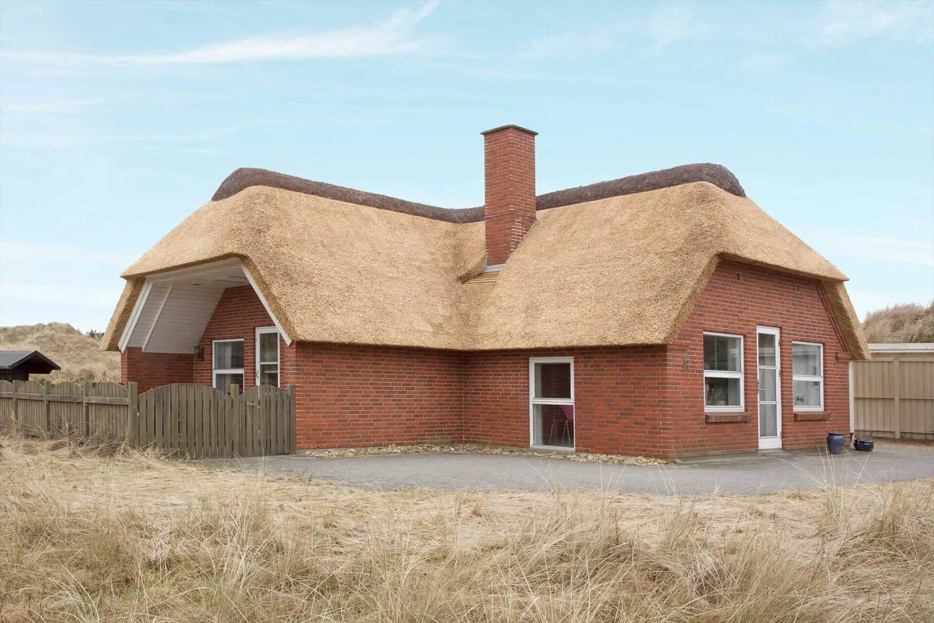 Dieses schöne Ferienhaus liegt auf einem Naturgrundstück in Mitten der Dünenlandschaft gelegen. Das Ferienhaus ist für 6-8 Personen ausgestattet und der Strand ist nur 200 Meter vom Ferienhaus entfernt. Das Wohnzimmer ist nett eingerichtet und mit einem Kamin ausgestattet. Das Fernsehprogramm empfangen Sie über Stofa, daher sind nur 5-8 deutsche Kanäle zu empfangen. In dem kleinen Eingangsbereich haben Sie Platz für Jacken und Schuhe. Der Wohnbereich ist zum Ess- und Küchenbereich offen gehalten. Dieser Bereich ist gefliest. Die Küche ist mit einem Herd mit Cerankochfeld, einem Backofen, einer Mikrowelle, einer Geschirrspülmaschine und einer Kühl- und Gefrierkombination ausgestattet. Das große Badezimmer ist mit einem WC, einem Handwaschbecken, einer Dusche und einer Sauna ausgestattet. Desweiteren befindet sich eine Badewanne hier im Bad. Genügend Ablagefläche für Ihre Badeutensilien ist hier vorhanden. Eine fest installierte Holzsitzbank für Ihre Handtuch und Ihre Wäsche ist hier aufgestellt. Eine Waschmaschine und ein Trockner steht zur Benutzung bereit. Es gibt insgesamt drei Schlafzimmer im Ferienhaus: DB + DB + 4B. Die Etagenbetten sind eher für Kinder als für Erwachsene gedacht. Es befindet sich eine Warmepumpe im Ferienhaus. Mit dieser Warmepumpe haben sie die Möglichkeit die Stromkosten zu senken, denn die Warmepumpe ist energiesparend. Es steht eine großzügiger Terrassenbereich zur Verfügung und eine großer Teil ist sogar eingezäunt und davon sogar auch teilweise überdacht. Das Ferienhaus verfügt über einen Internetanschluss (W-Lan). Für Ihr Fahrzeug, steht das Carport auf dem Grundstück zur Verfügung. Für die Kleinen Gäste ist ein kleines Spielhaus vorhanden. Es ist max. ein Haustier erlaubt. Das Rauchen ist nicht gestattet. Das Ferienhaus ist 1991 erbaut worden.