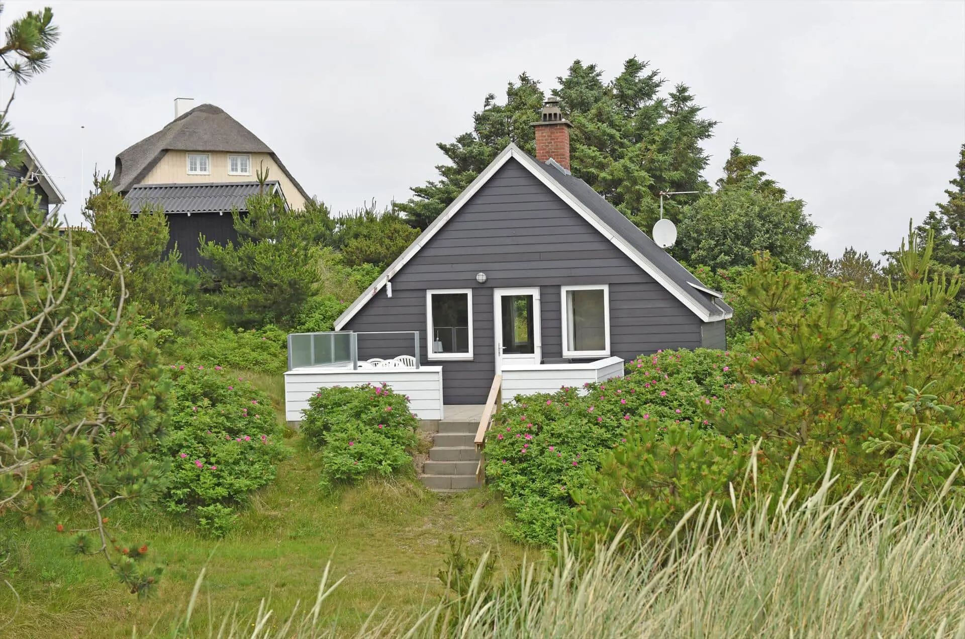 Das Huas liegt auf einem ca. 1600 m2 großem Dünengrundstück. Strand ist ca. 500 Meter entfernt. Wohn/Essbereich mit Kamin und Sat-Tv. Küche mit Geschirrspülmaschine, Mikrowelle und Kühlschrank mit Gefrierfach. Badezimmer mit Du/Wc. 1 Schlafzimmer mit Doppelbett und 1 Schlafzimmer mit Einzelbett. 1 Haustier erlaubt. Das Rauchen im Haus ist nicht erlaubt. Internetanschluss (W-Lan). Geschützte Terrasse. Baujahr 1950, teilweise renoviert in 2016.
