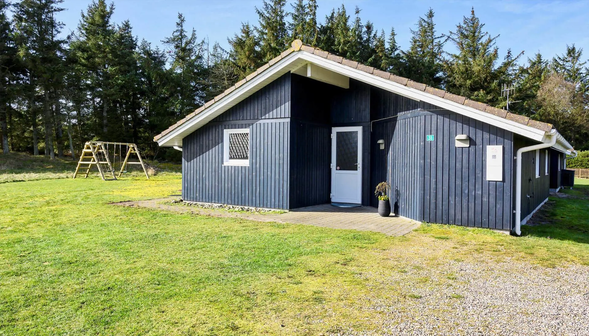 Auf einem schönen großen Rasengrundstück ist dieses Ferienhaus gelegen. Es ist für 8 Personen ausgestattet. Der Strand ist 1,8 Km vom Ferienhaus entfernt. Hier in diesem Gebiet kommen die Hirsche und das Rotwild aus dem anliegenden Waldgebiet. Die Tiere lieben es mit Obst und Gemüse von den Gästen verwöhnt zu werden.