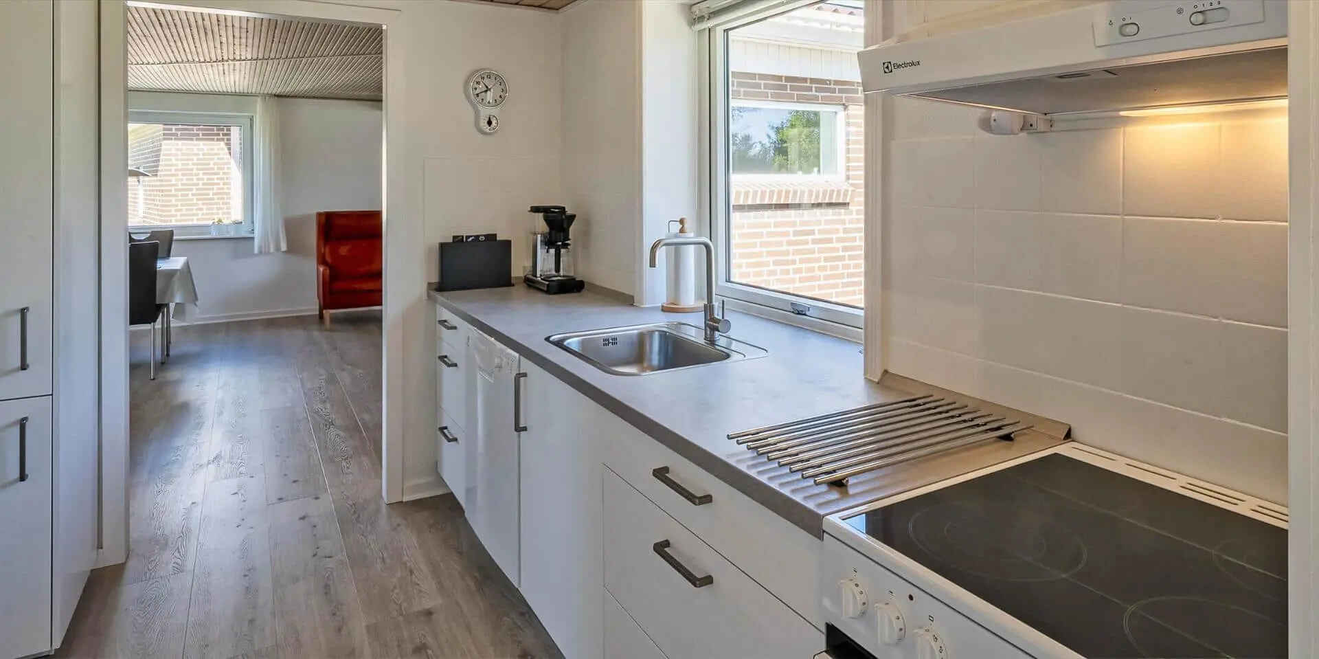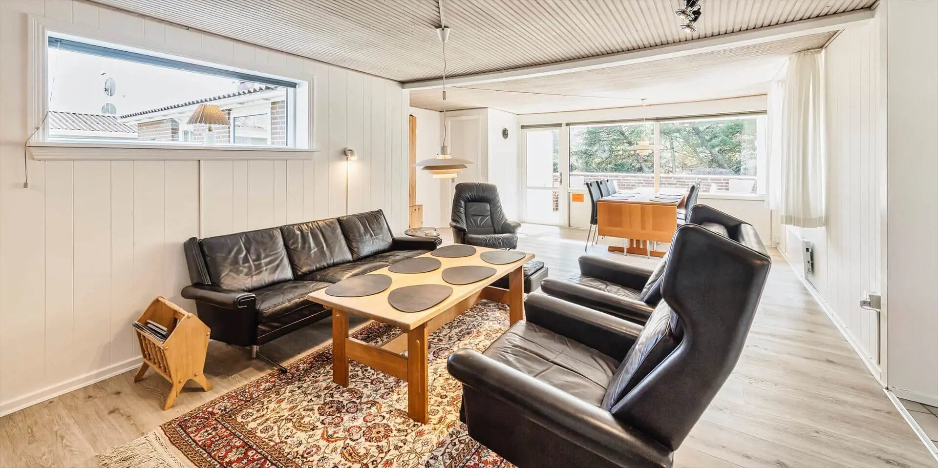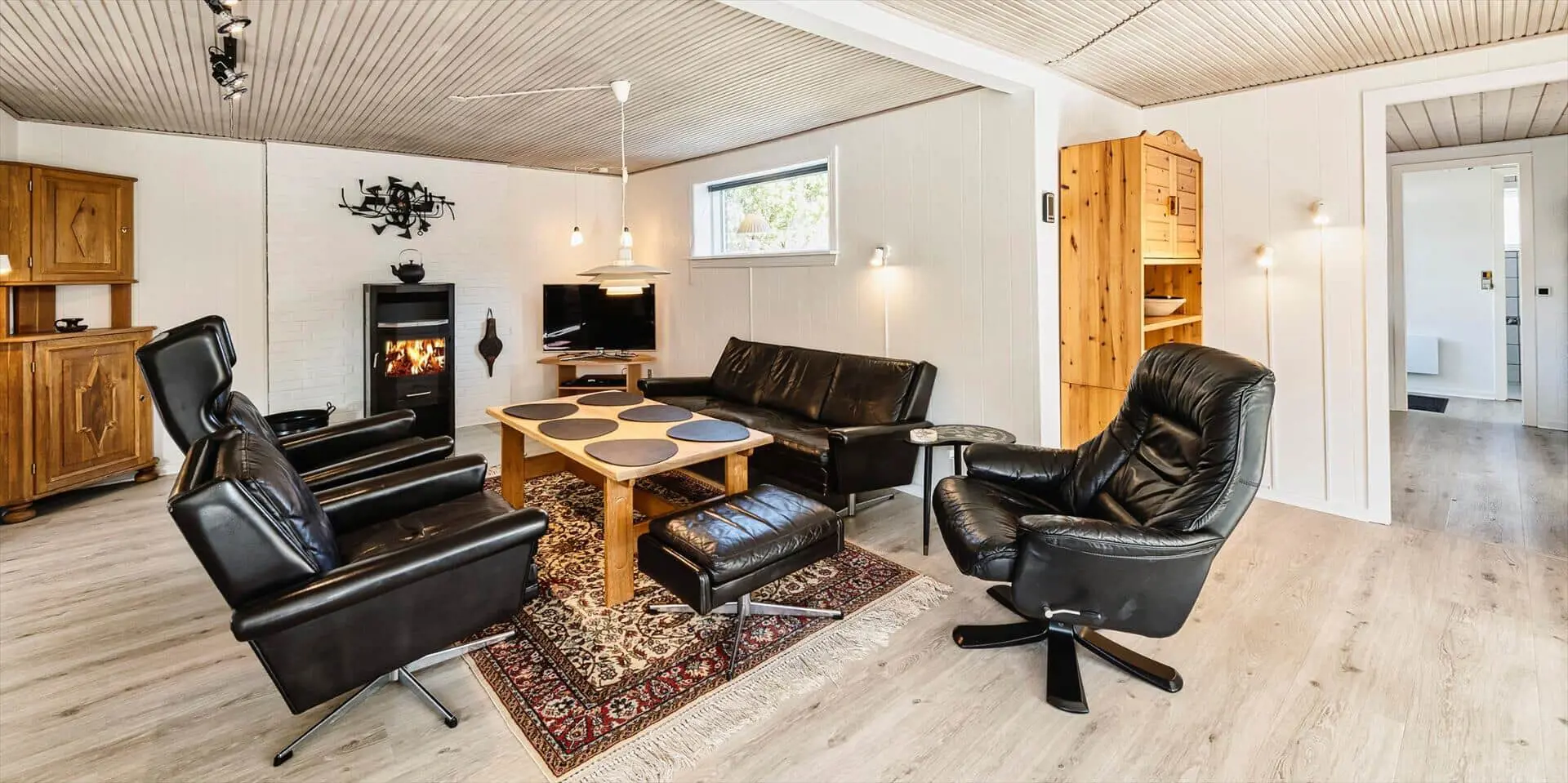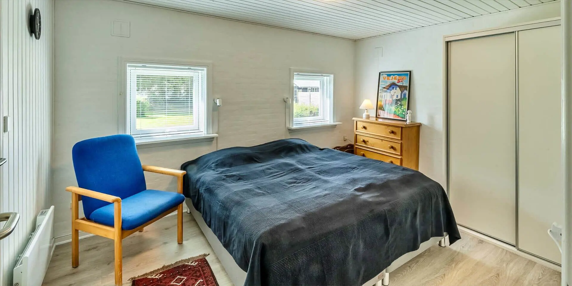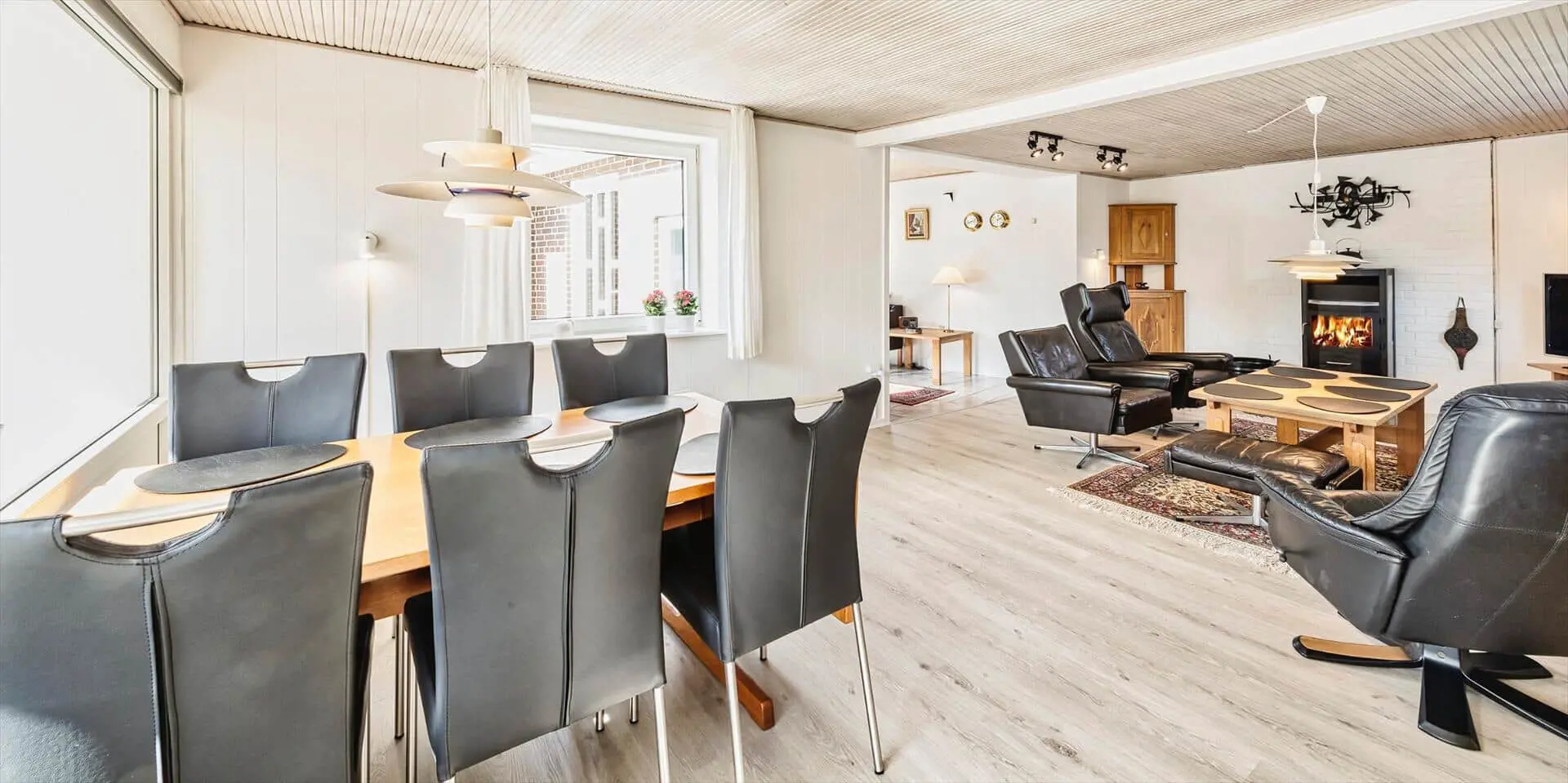 Dieses gemütliches Ferienhaus mit Namen 'Bim Bam' liegt auf einem grossen Rasengrundstück und ist für 6 Personen ausgestattet. Der Strand ist nur 1,5 Km vom Haus entfernt. Der grosszügige Wohn- und Essbereich ist offen gehalten und bietet allen Bewohner genügend Platz. Sie haben von der einen gemütlichn Sitzgruppe einen direkten Blick auf den Kamin, der sich in dem einem Wohnbereich befindet. Hier können Sie dann das Lodern der Flammen beobachten. Der Kamin spendet Ihnen eine gemütliche Atmosphäre und natürlich die Wärme. Das deutsche Fernsehprogramm empfangen Sie über Stofa, dadurch empfangen Sie nur 5-8 deutsche Kanäle. Die Küche ist separat und verfügt über einen Herd mit Ceranfeld, einem Backofen, einer Geschrirrspülmaschine, einer Mikrowelle und einer Kühl- und Gefrierkombination. Es gibt ein Badezimmer und ein Gäste WC im Haus. Das Badezimmer verfügt über eine Dusche, ein Handwaschbecken und ein WC und das Gäste WC über ein Handwaschbecken und ein WC. Ausserdem ist in dem grossen Badezimmer die Waschmaschine unter gebracht. Die Küche und das Badezimmer, sowie das Gäste WC verfügen über eine Fussbodenheizung. Den Gästen stehen insgesamt drei Schlafzimmer zur Verfügung: DB + DB + 2B. Wärmepumpe. Am Ferienhaus befinden sich mehrere Terrassenbereiche, wobei auch ein Terrassenbereich überdacht ist. Das Ferienhaus verfügt über einen Internet-Anschluss (W-Lan). Das Ferienhaus liegt schön bequem in die Nähe von einen Kaufmann sowie ein Mini golf Anlage. Es sind keine Haustiere erlaubt. Das Rauchen im Fereinhaus ist nicht erlaubt. Das Ferienhaus ist 1965 erbaut worden. Es wurde 2024 drinnen renoviert und dann laufend renoviert.