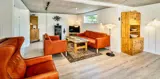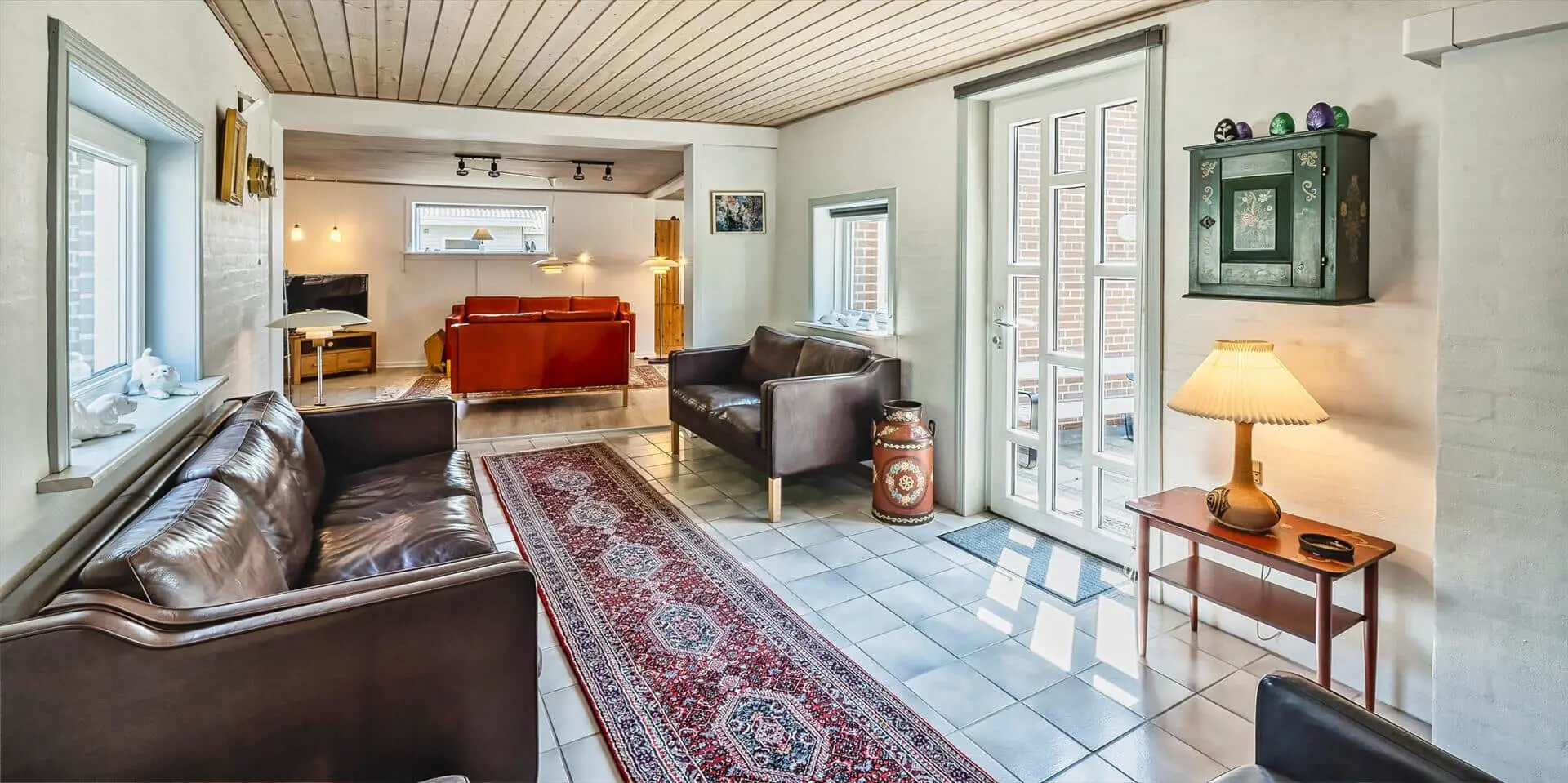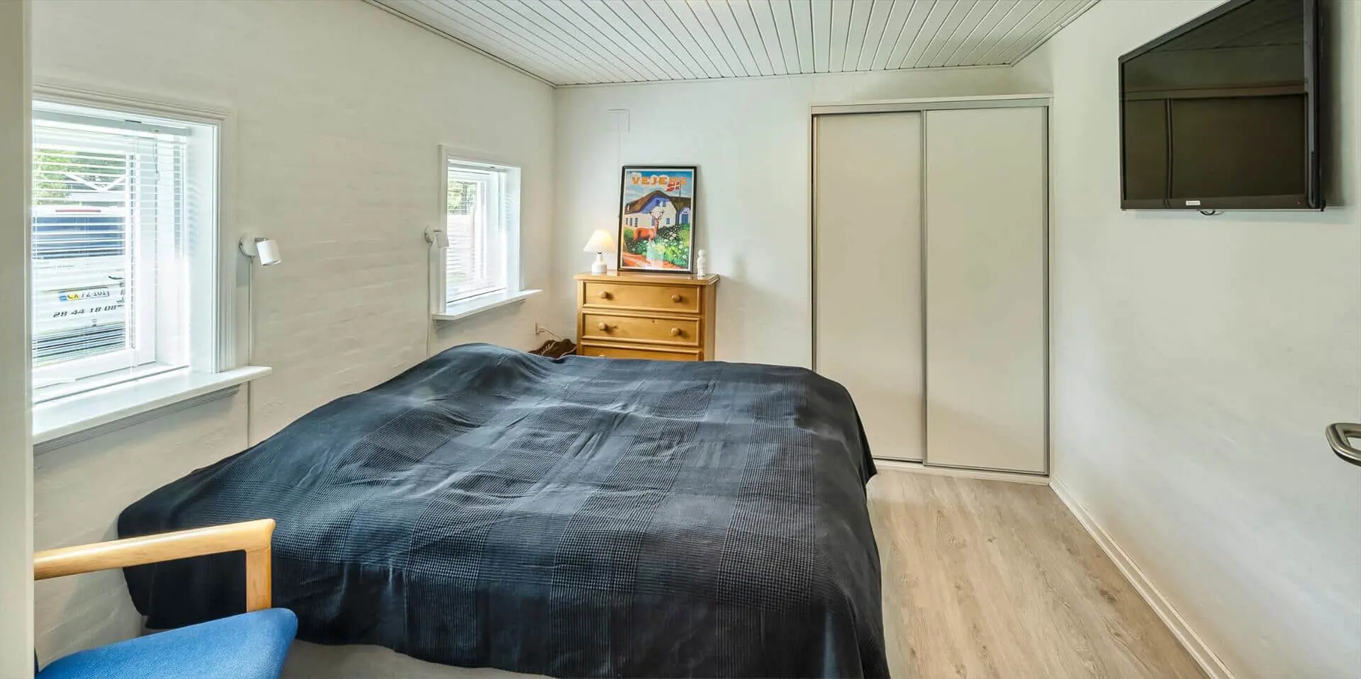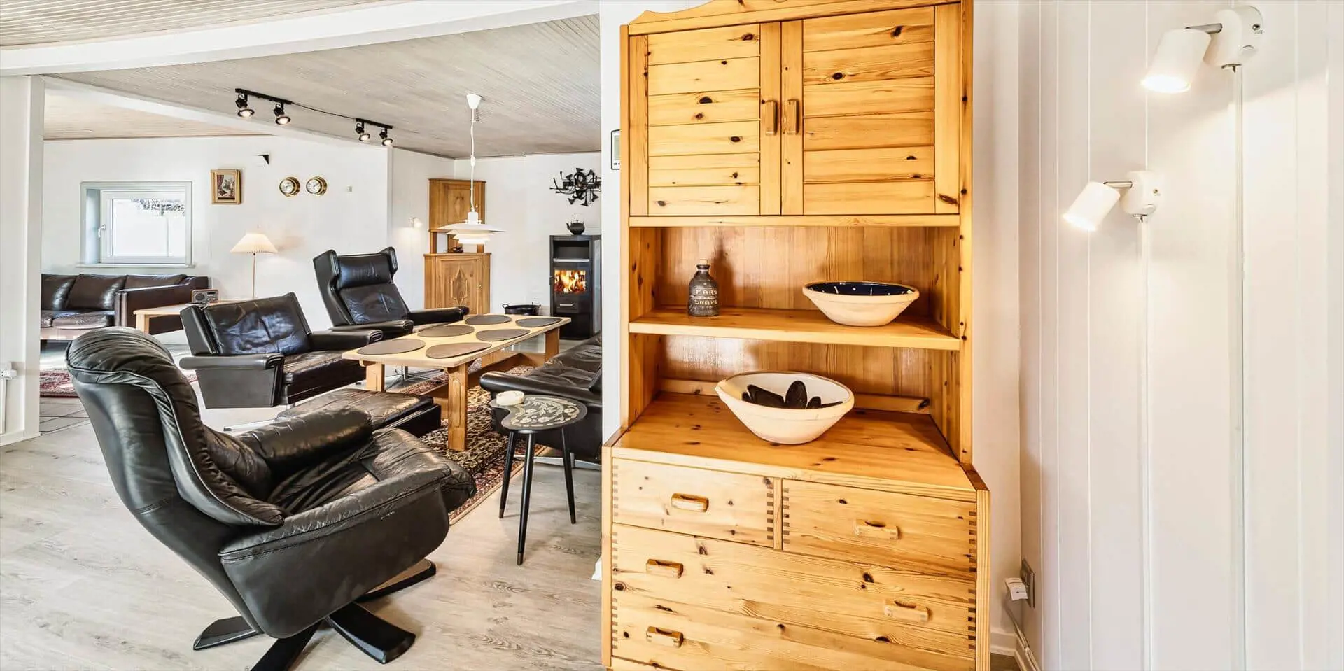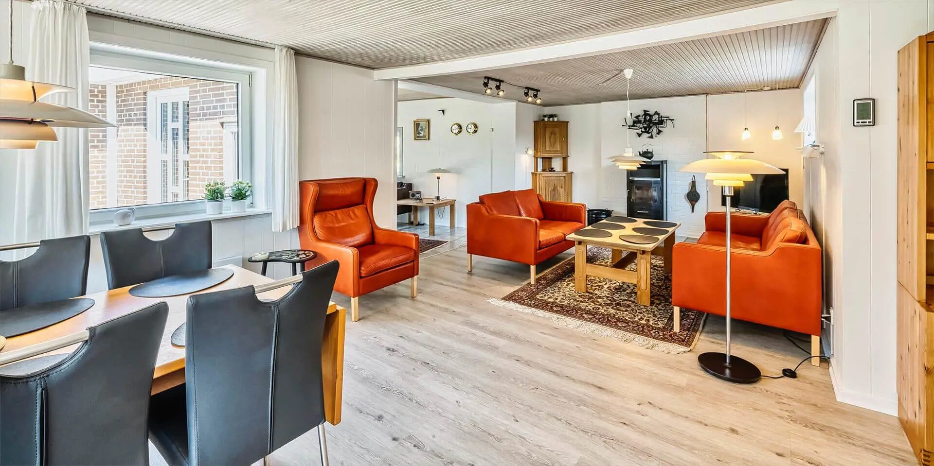 Dieses gemütliches Ferienhaus mit Namen 'Bim Bam' liegt auf einem grossen Rasengrundstück und ist für 6 Personen ausgestattet. Der Strand ist nur 1,5 Km vom Haus entfernt. Der grosszügige Wohn- und Essbereich ist offen gehalten und bietet allen Bewohner genügend Platz. Sie haben von der einen gemütlichn Sitzgruppe einen direkten Blick auf den Kamin, der sich in dem einem Wohnbereich befindet. Hier können Sie dann das Lodern der Flammen beobachten. Der Kamin spendet Ihnen eine gemütliche Atmosphäre und natürlich die Wärme. Das deutsche Fernsehprogramm empfangen Sie über Stofa, dadurch empfangen Sie nur 5-8 deutsche Kanäle. Die Küche ist separat und verfügt über einen Herd mit Ceranfeld, einem Backofen, einer Geschrirrspülmaschine, einer Mikrowelle und einer Kühl- und Gefrierkombination. Es gibt ein Badezimmer und ein Gäste WC im Haus. Das Badezimmer verfügt über eine Dusche, ein Handwaschbecken und ein WC und das Gäste WC über ein Handwaschbecken und ein WC. Ausserdem ist in dem grossen Badezimmer die Waschmaschine unter gebracht. Die Küche und das Badezimmer, sowie das Gäste WC verfügen über eine Fussbodenheizung. Den Gästen stehen insgesamt drei Schlafzimmer zur Verfügung: DB + DB + 2B. Wärmepumpe. Am Ferienhaus befinden sich mehrere Terrassenbereiche, wobei auch ein Terrassenbereich überdacht ist. Das Ferienhaus verfügt über einen Internet-Anschluss (W-Lan). Das Ferienhaus liegt schön bequem in die Nähe von einen Kaufmann sowie ein Mini golf Anlage. Es sind keine Haustiere erlaubt. Das Rauchen im Fereinhaus ist nicht erlaubt. Das Ferienhaus ist 1965 erbaut worden. Es wurde 2024 drinnen renoviert und dann laufend renoviert.