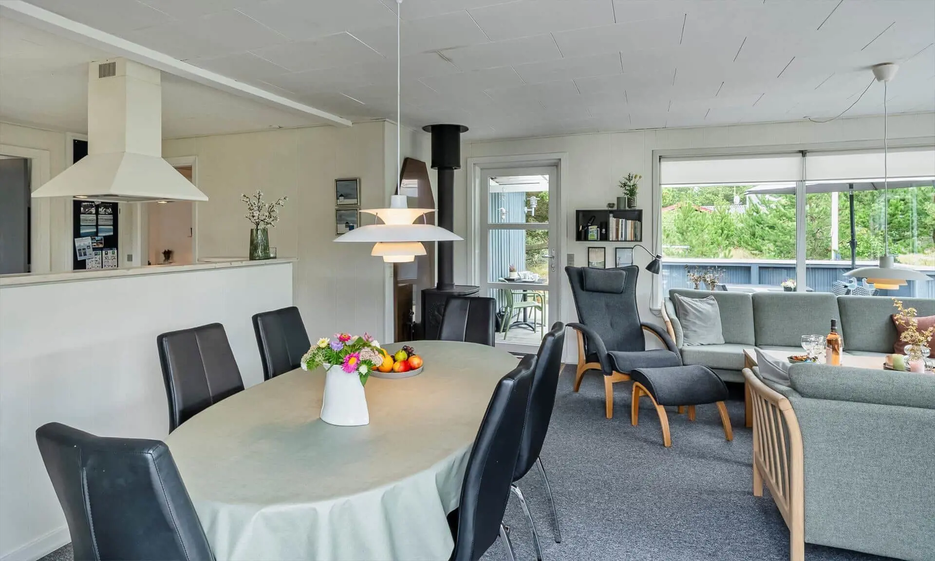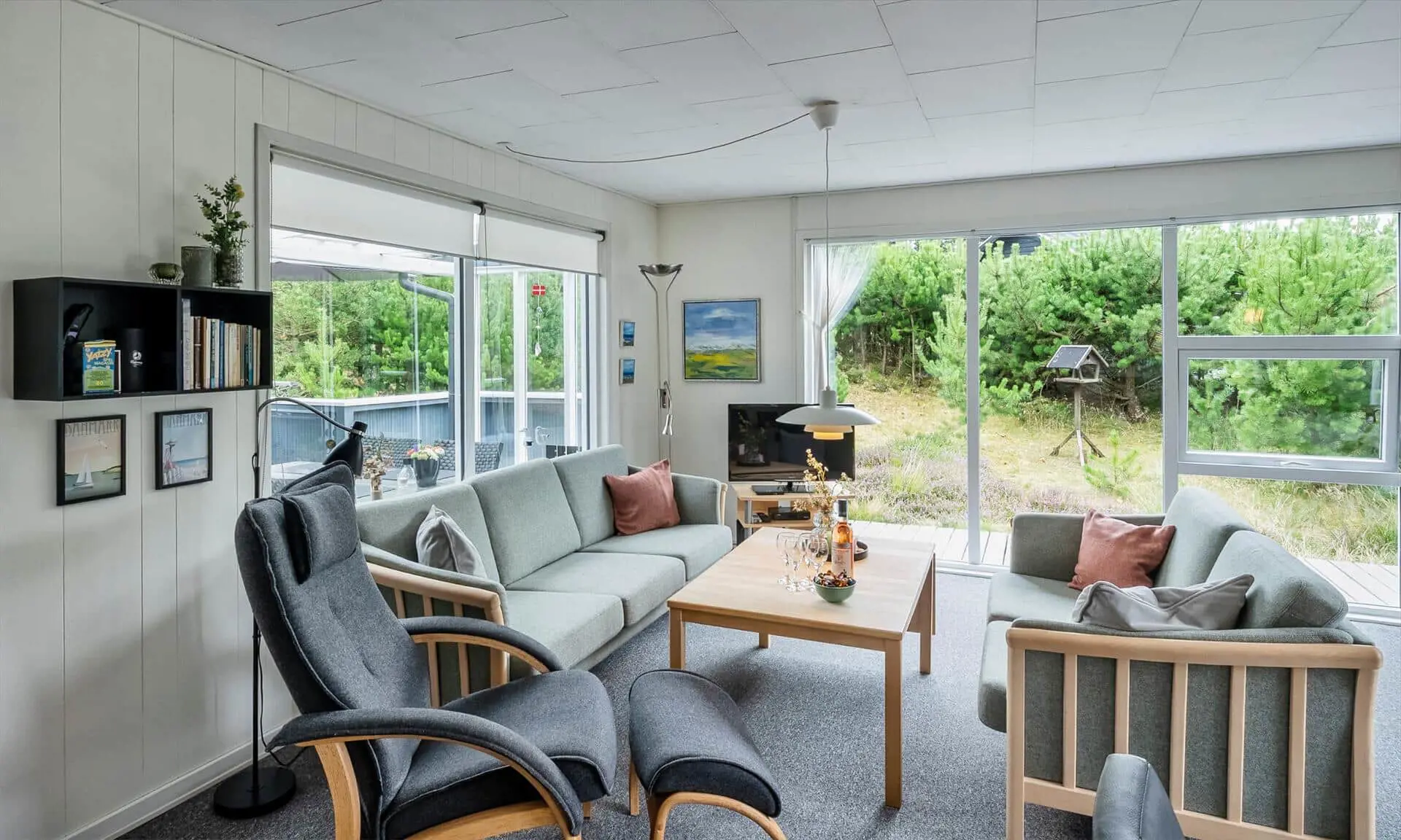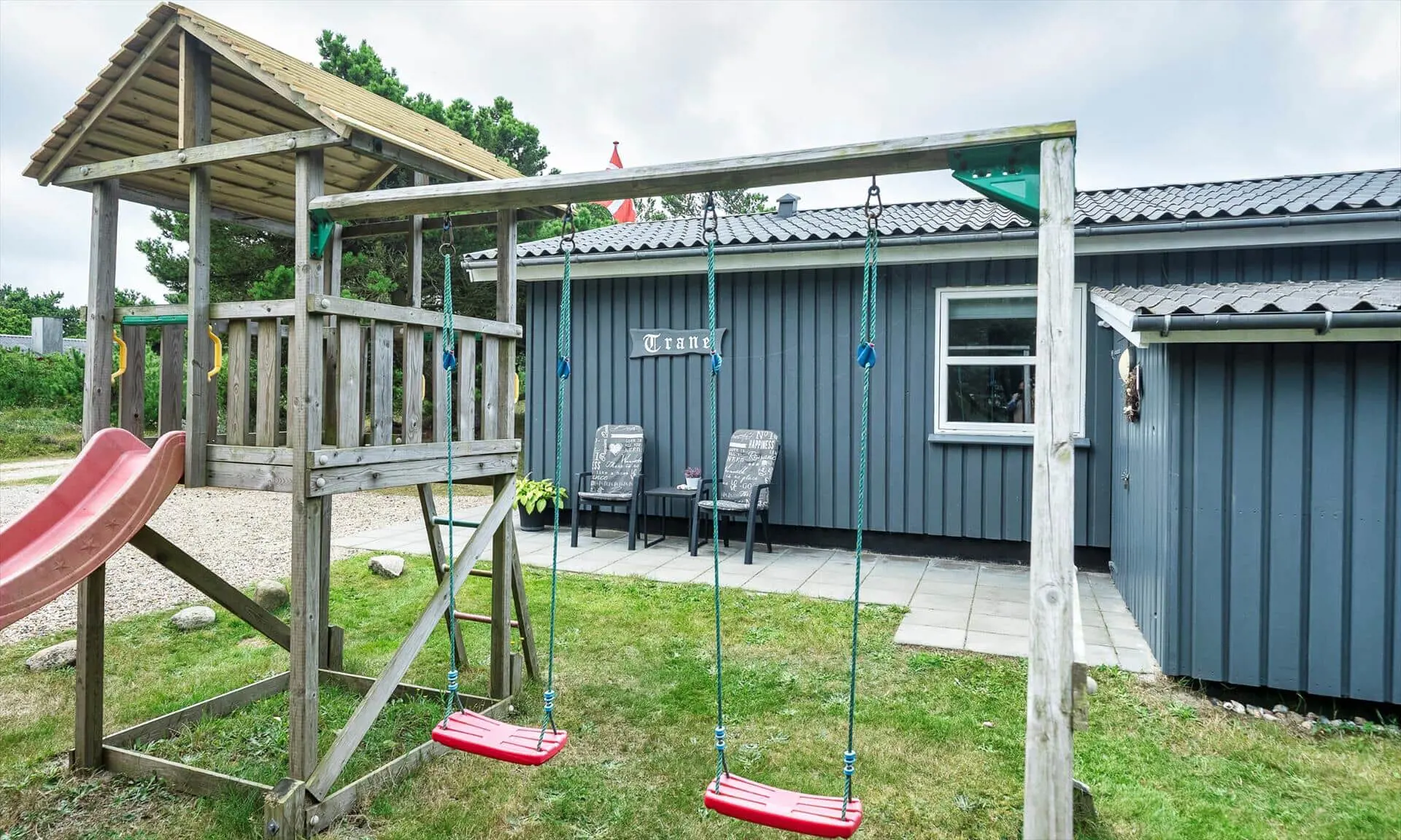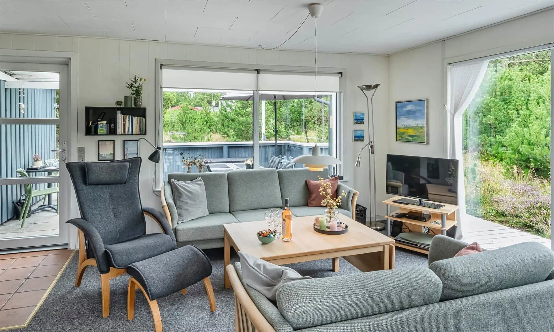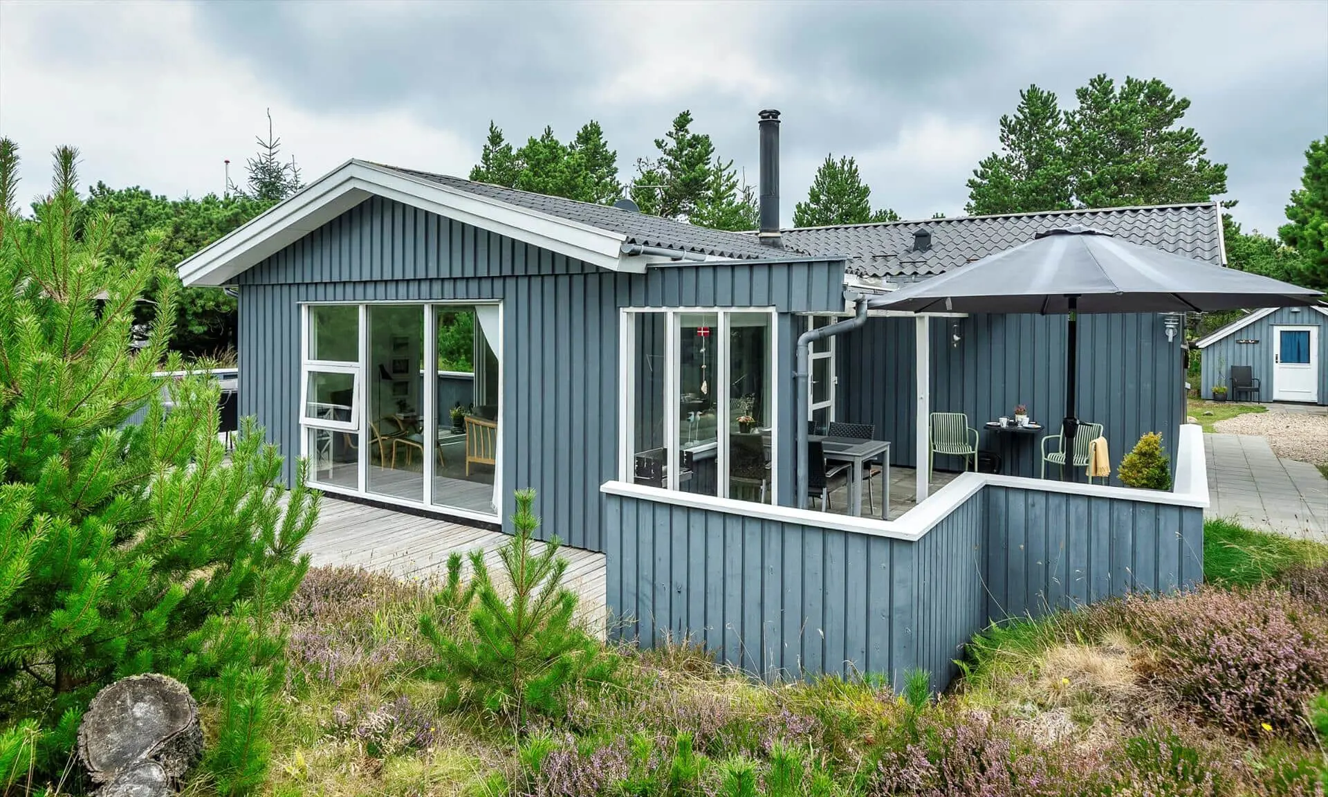 Geschmackvolles Ferienhaus für 6 Personen, gelegen auf einem geschlossenen Naturgrundstück, ca. 800 Meter vom Strand entfernt. Wohnzimmer mit Fernseher mit DR-Programmen, Chromecast, Smart-TV und Satellitenempfang. Helle, funktionale und gut ausgestattete Küche u. a. mit Geschirrspüler und Mikrowelle. Kaminofen und energieeffiziente Wärmepumpe. Badezimmer mit Fußbodenheizung, Dusche, Toilette, Whirlpool und Sauna. Waschmaschine und Trockner. 3 Schlafzimmer: DB + DB + DB. Teilweise geschlossene Terrasse, ein Teil der Terrasse ist überdacht. Schaukel mit Spielturm. WLAN vorhanden.