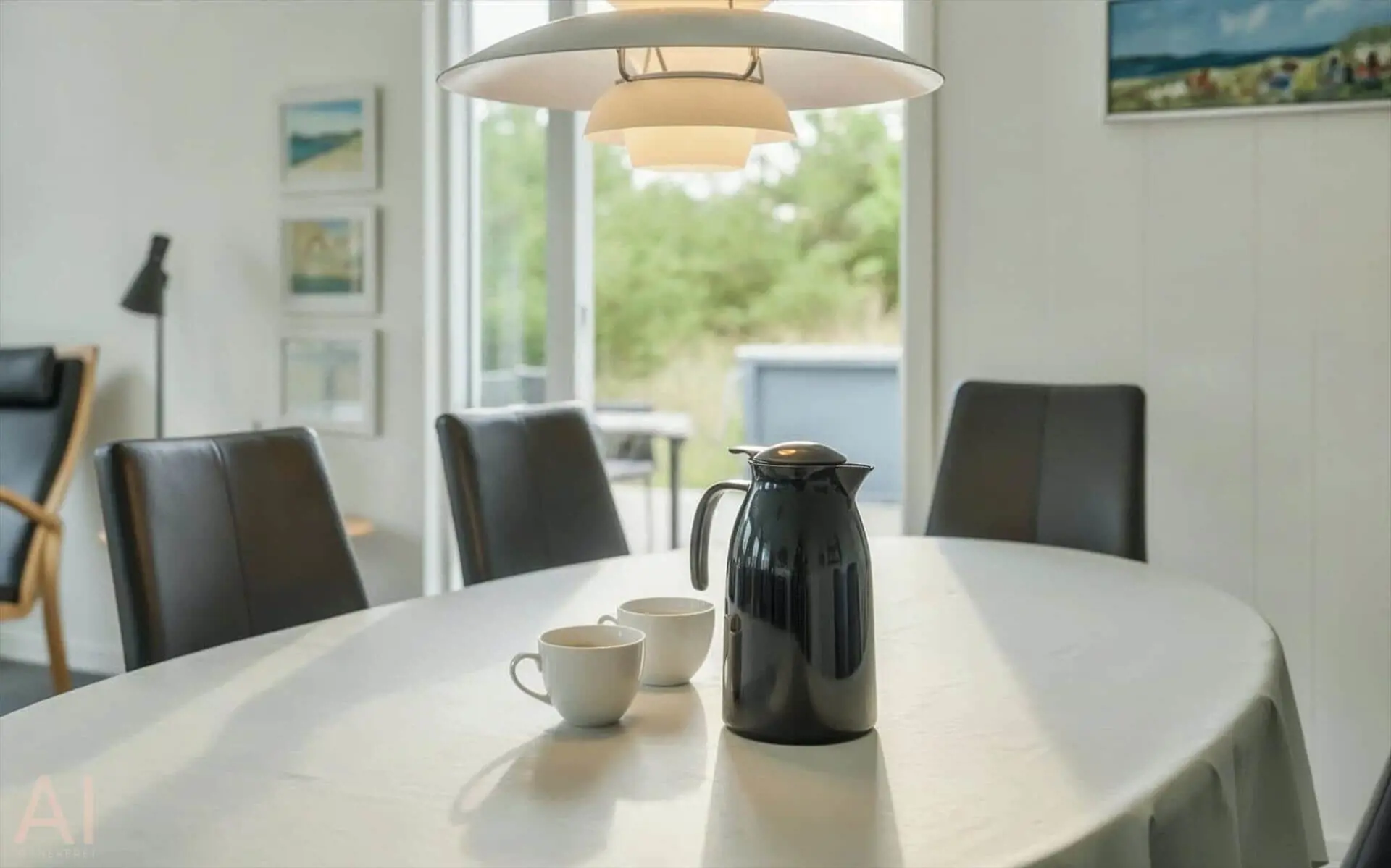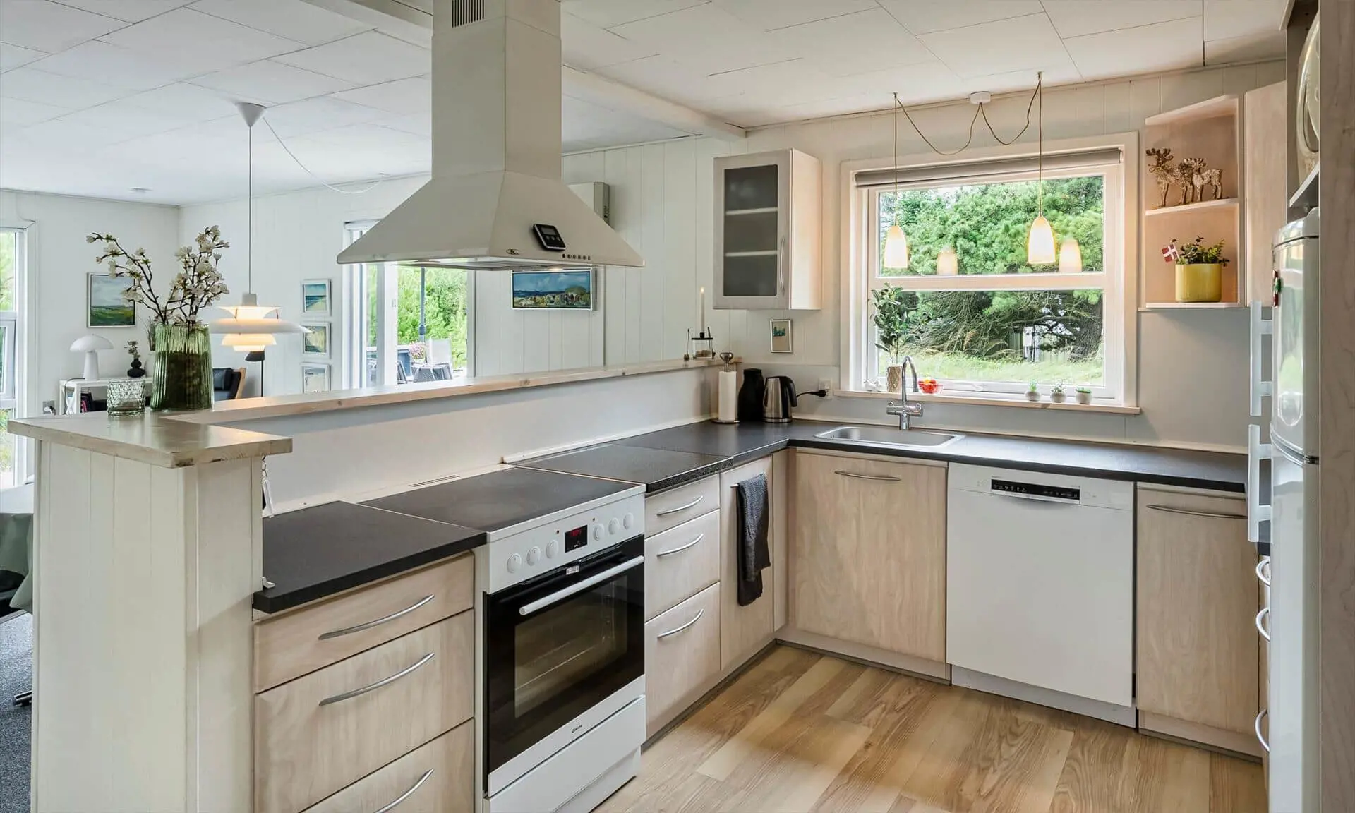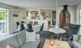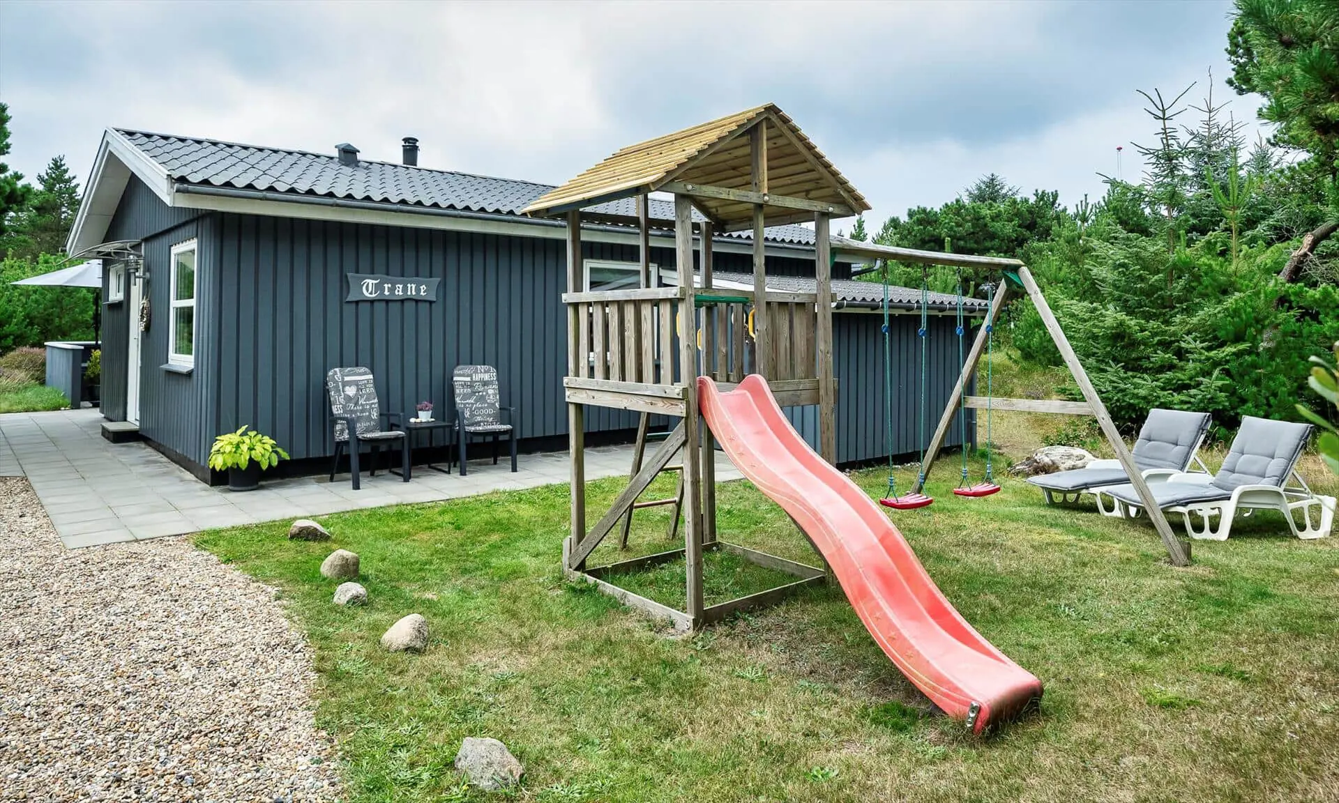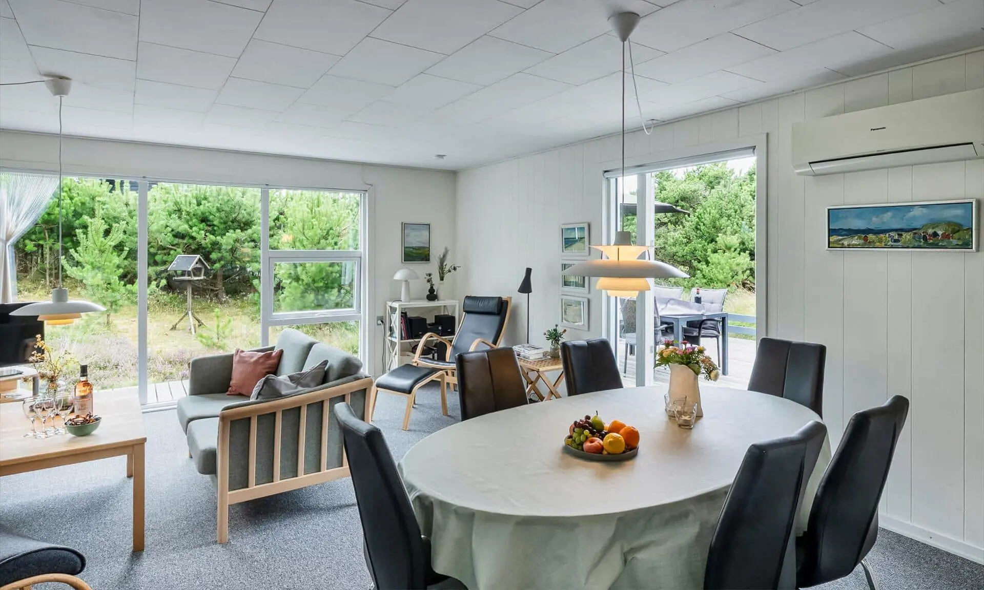 Geschmackvolles Ferienhaus für 6 Personen, gelegen auf einem geschlossenen Naturgrundstück, ca. 800 Meter vom Strand entfernt. Wohnzimmer mit Fernseher mit DR-Programmen, Chromecast, Smart-TV und Satellitenempfang. Helle, funktionale und gut ausgestattete Küche u. a. mit Geschirrspüler und Mikrowelle. Kaminofen und energieeffiziente Wärmepumpe. Badezimmer mit Fußbodenheizung, Dusche, Toilette, Whirlpool und Sauna. Waschmaschine und Trockner. 3 Schlafzimmer: DB + DB + DB. Teilweise geschlossene Terrasse, ein Teil der Terrasse ist überdacht. Schaukel mit Spielturm. WLAN vorhanden.