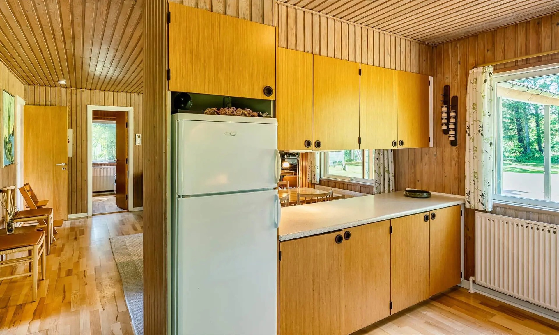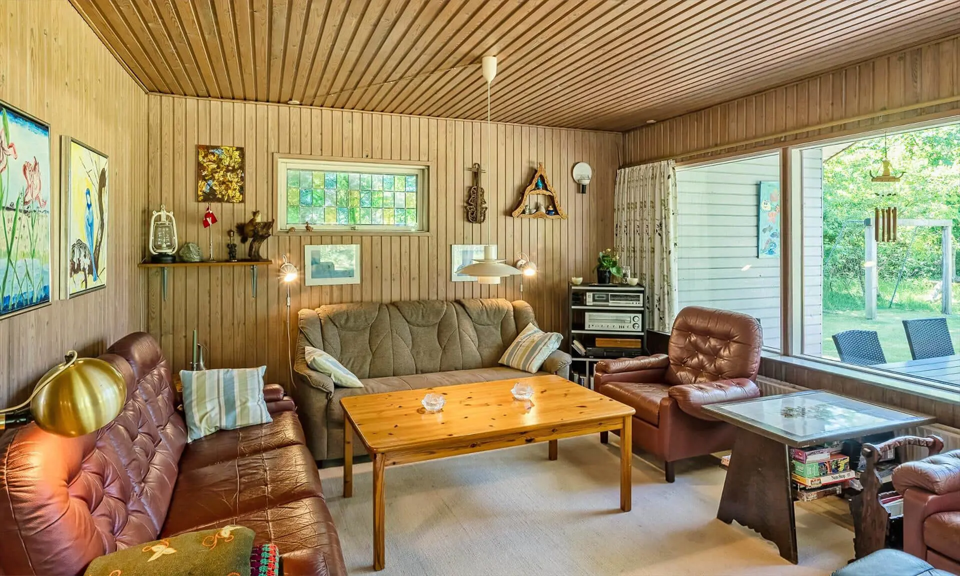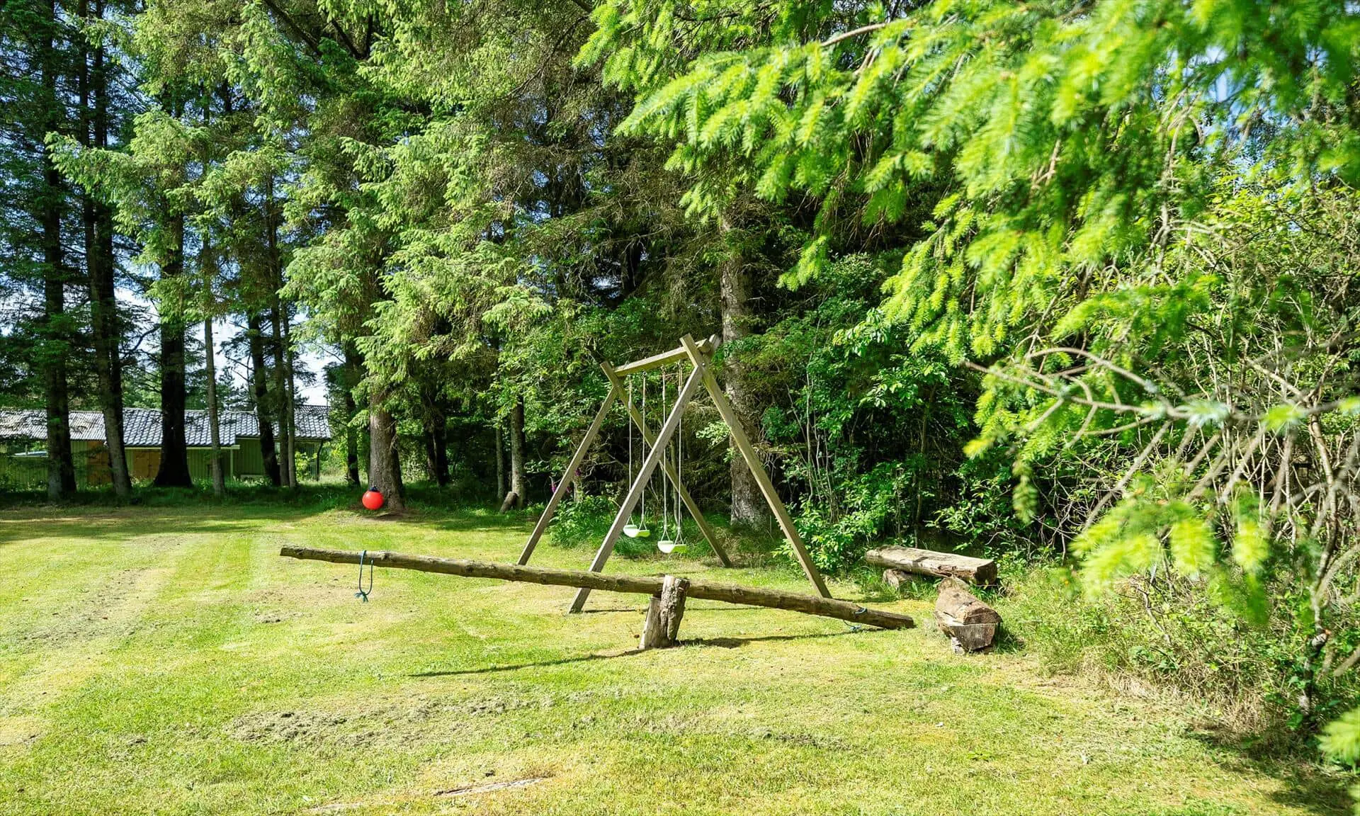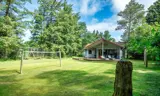 Vom Wohnzimmer gelangen Sie auf eine schöne überdachte Terrasse, auf der Sie Ihren Morgenkaffee oder ein Abendessen im Freien genießen können – bei jedem Wetter. Die Terrasse bietet mehrere gemütliche Ecken mit Blick auf den großen, uneinsehbaren Garten. Im Garten gibt es einen Basketballkorb und ein Volleyballnetz, die zu viel Spaß und Spiel für Kinder und Erwachsene einladen. Das Naturgrundstück lädt zu vielen Stunden im Freien ein, um die Umgebung und die Tierwelt zu entdecken.