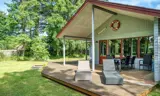 Schöne überdachte Terrasse und aktionsreicher Garten