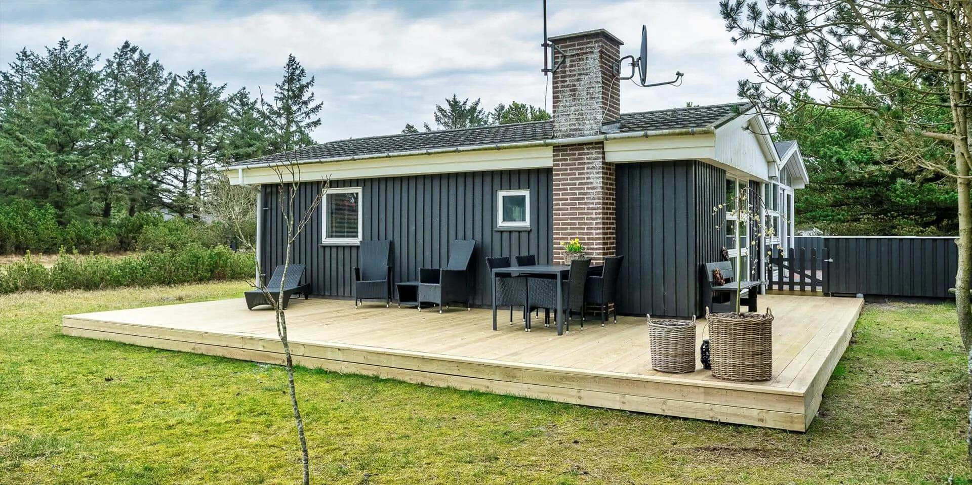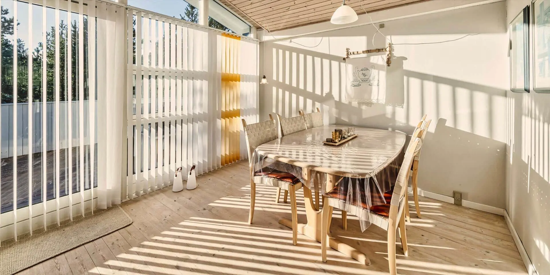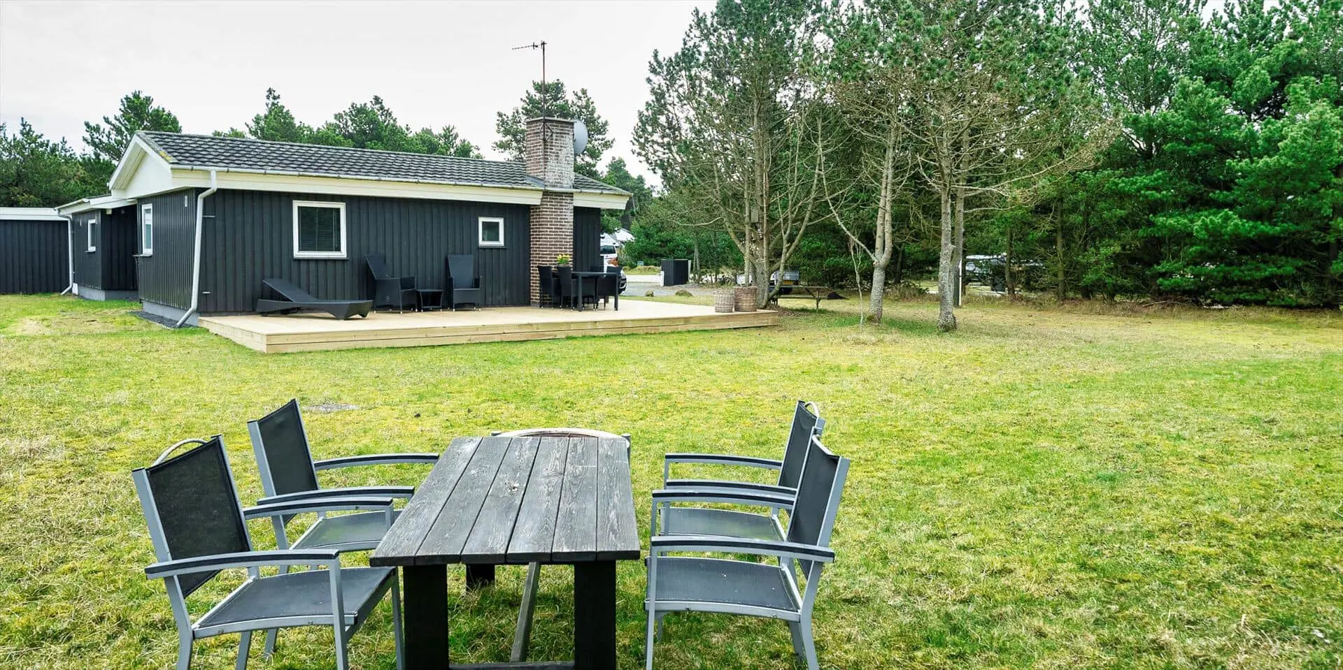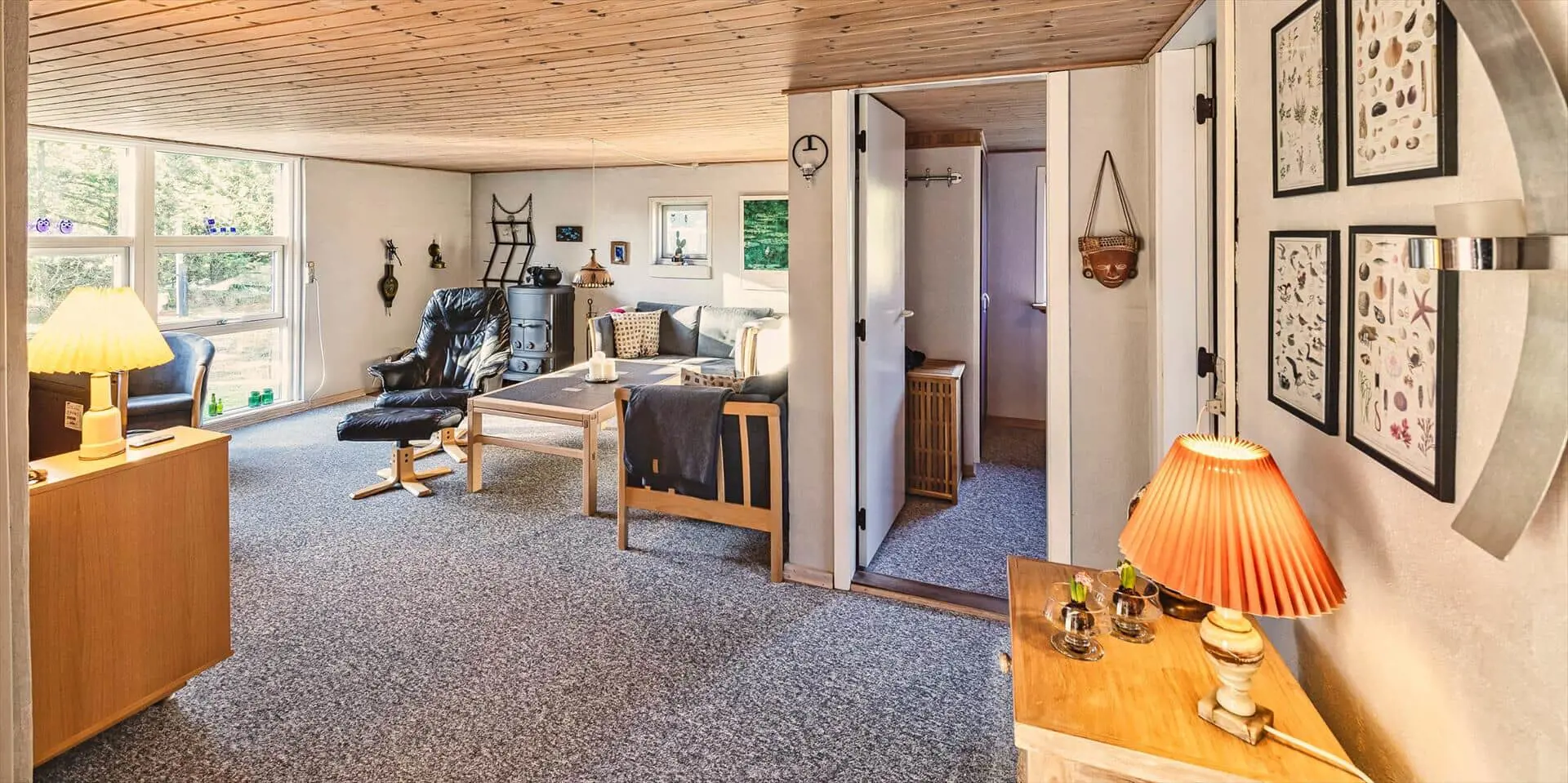 Das Ferienhaus mit Namen 'Tex Bo' befindet sich auf einem großzügigem Rasengrundstück und ist für 6 Personen ausgestattet. Der Strand ist ca. 1,5 Km vom Ferienhaus entfernt. Der Wohnbereich ist mit einem Teppichboden ausgestattet. Von hier haben Sie auch Zugang zu einem der drei Schlafzimmer und ebenso zum Badezimmer. Im Wohnzimmer befindet sich ein Mørso-Kamin. Dieser spendet eine angenehme Wärme und Gemütlichkeit. Das Fernsehprogramm empfangen Sie über Stofa, daher sind nur 5-8 deutsche Kanäle zu empfangen, ausserdem gibt es auch nioch Chromecast. Zu dem schicken und gemütlichen Essbereich gelangen Sie dann über eine Stufe, da dieser Wohnbereich angebaut wurde. Es befindet sich eine Warmepumpe im Ferienhaus. Mit dieser Warmepumpe haben sie die Möglichkeit die Stromkosten zu senken, denn die Warmepumpe ist energiesparend . Essbereich ist mit einer Holzvertäfelung versehen und hat einen PVC-Bodenbelag. Am Esstisch ist genügend Platz für alle Bewohner des Hauses. Von hier gelangen Sie auch in den schönen gemütlichen Wintergarten mit einer großer Fensterfront, Terrassentür und Holzfußboden. Die Kühl- und Gefrierkombination steht hier an der Wand zwischen der Küche und einem Schlafzimmer. Vom Esszimmer gelangen Sie dann in die Küche und in ein weiteres Schlafzimmer. Die Küche wurde 2023 neu gemacht sowie der Eingangsbereicht. Die Küche verfügt über einen Herd mit Cerankochfeld und einem Backofen und eine Geschirrspülmaschine. Eine sogenannten Stalltür öffnet einen Ausgang zu einem kleinen überdachten Terrassenbereich. Das Badezimmer verfügt über ein Handwaschbecken, ein WC und eine Dusche. Es stehen den Gästen insgesamt drei Schlafzimmer zur Verfügung. Ein Schlafzimmer verfügt über ein Doppelbett, das zweite Schlafzimmer über zwei Einzelbetten und das dritte Schlafzimmer verfügt über Etagenbetten. Der Terrassenbereich beim Wintergarten ist teilweise geschlossen. Es sind max. zwei Haustiere erlaubt mit einer max. Rückenhöhe von 40 cm. Das Ferienhaus ist 1967 erbaut worden und in 1996 renoviert.