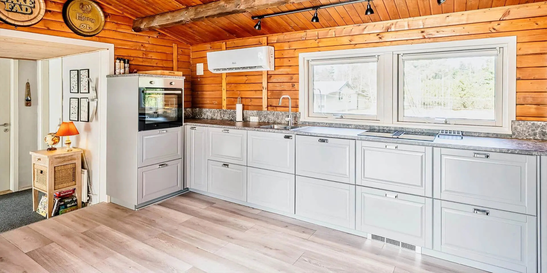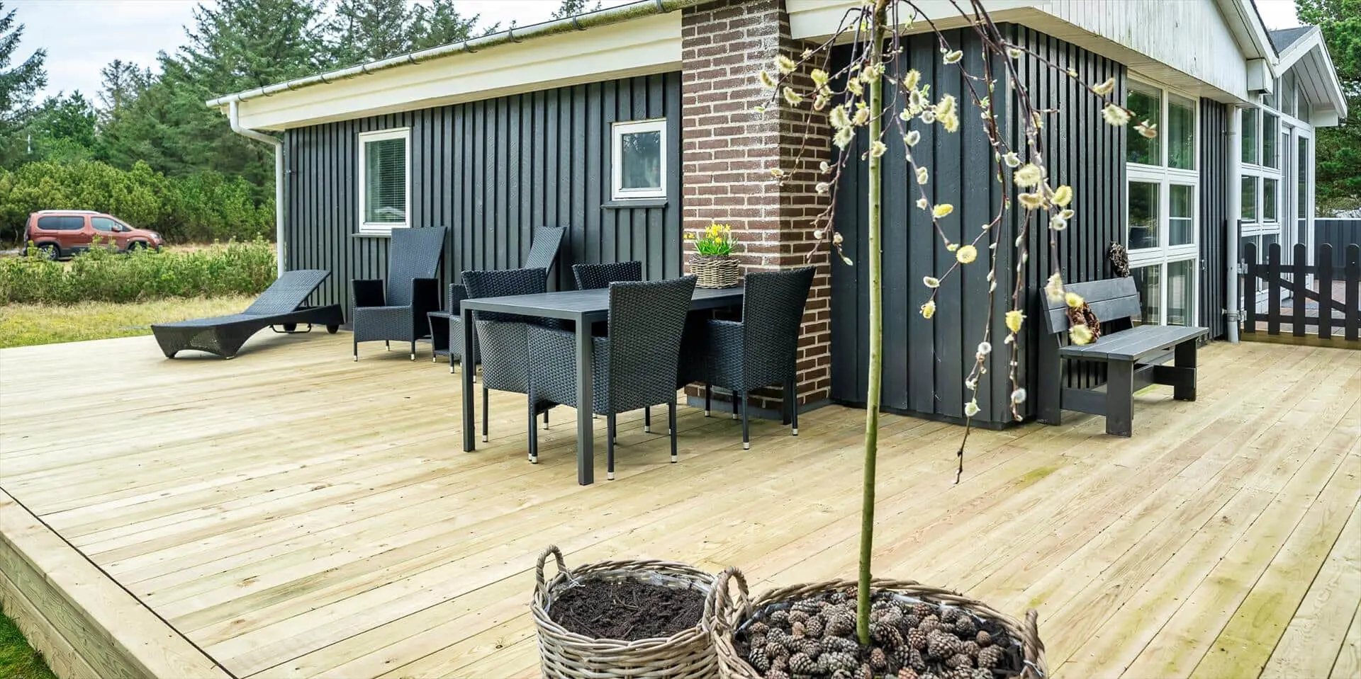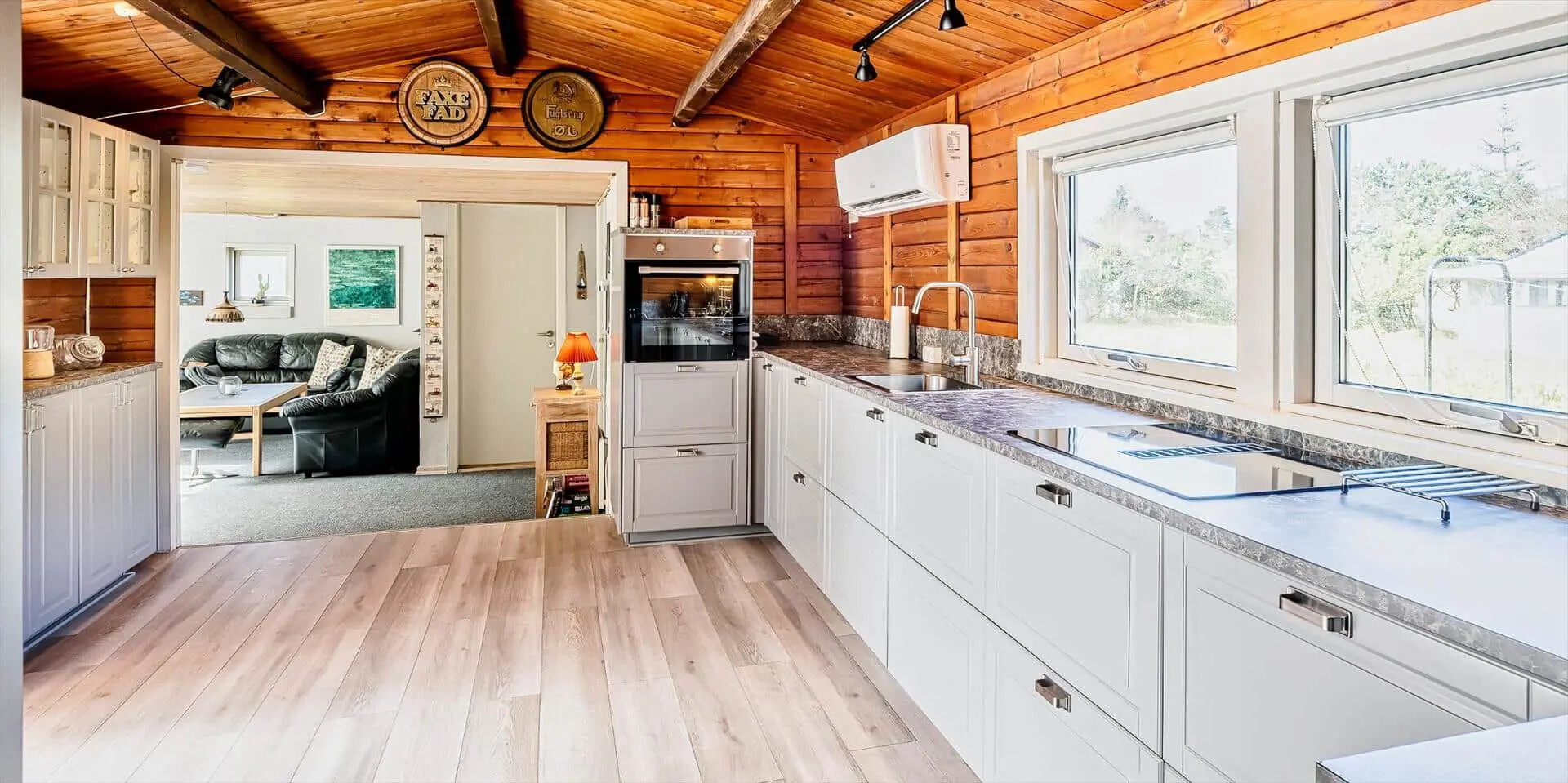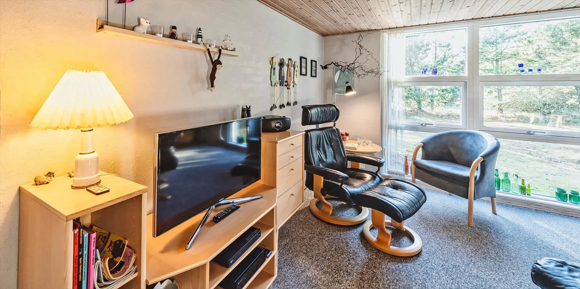 Das Ferienhaus mit Namen 'Tex Bo' befindet sich auf einem großzügigem Rasengrundstück und ist für 6 Personen ausgestattet. Der Strand ist ca. 1,5 Km vom Ferienhaus entfernt. Der Wohnbereich ist mit einem Teppichboden ausgestattet. Von hier haben Sie auch Zugang zu einem der drei Schlafzimmer und ebenso zum Badezimmer. Im Wohnzimmer befindet sich ein Mørso-Kamin. Dieser spendet eine angenehme Wärme und Gemütlichkeit. Das Fernsehprogramm empfangen Sie über Stofa, daher sind nur 5-8 deutsche Kanäle zu empfangen, ausserdem gibt es auch nioch Chromecast. Zu dem schicken und gemütlichen Essbereich gelangen Sie dann über eine Stufe, da dieser Wohnbereich angebaut wurde. Es befindet sich eine Warmepumpe im Ferienhaus. Mit dieser Warmepumpe haben sie die Möglichkeit die Stromkosten zu senken, denn die Warmepumpe ist energiesparend . Essbereich ist mit einer Holzvertäfelung versehen und hat einen PVC-Bodenbelag. Am Esstisch ist genügend Platz für alle Bewohner des Hauses. Von hier gelangen Sie auch in den schönen gemütlichen Wintergarten mit einer großer Fensterfront, Terrassentür und Holzfußboden. Die Kühl- und Gefrierkombination steht hier an der Wand zwischen der Küche und einem Schlafzimmer. Vom Esszimmer gelangen Sie dann in die Küche und in ein weiteres Schlafzimmer. Die Küche wurde 2023 neu gemacht sowie der Eingangsbereicht. Die Küche verfügt über einen Herd mit Cerankochfeld und einem Backofen und eine Geschirrspülmaschine. Eine sogenannten Stalltür öffnet einen Ausgang zu einem kleinen überdachten Terrassenbereich. Das Badezimmer verfügt über ein Handwaschbecken, ein WC und eine Dusche. Es stehen den Gästen insgesamt drei Schlafzimmer zur Verfügung. Ein Schlafzimmer verfügt über ein Doppelbett, das zweite Schlafzimmer über zwei Einzelbetten und das dritte Schlafzimmer verfügt über Etagenbetten. Der Terrassenbereich beim Wintergarten ist teilweise geschlossen. Es sind max. zwei Haustiere erlaubt mit einer max. Rückenhöhe von 40 cm. Das Ferienhaus ist 1967 erbaut worden und in 1996 renoviert.