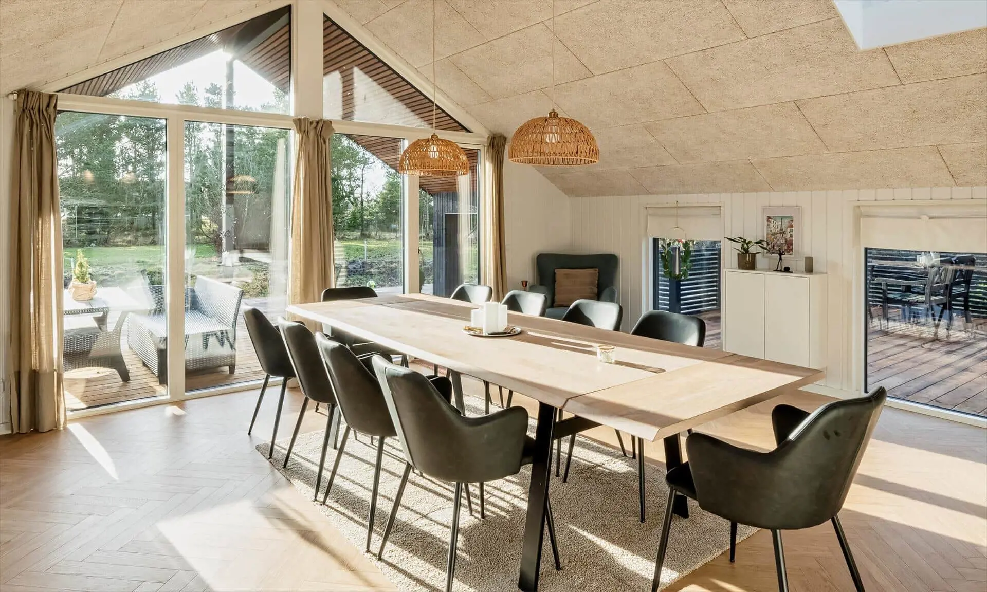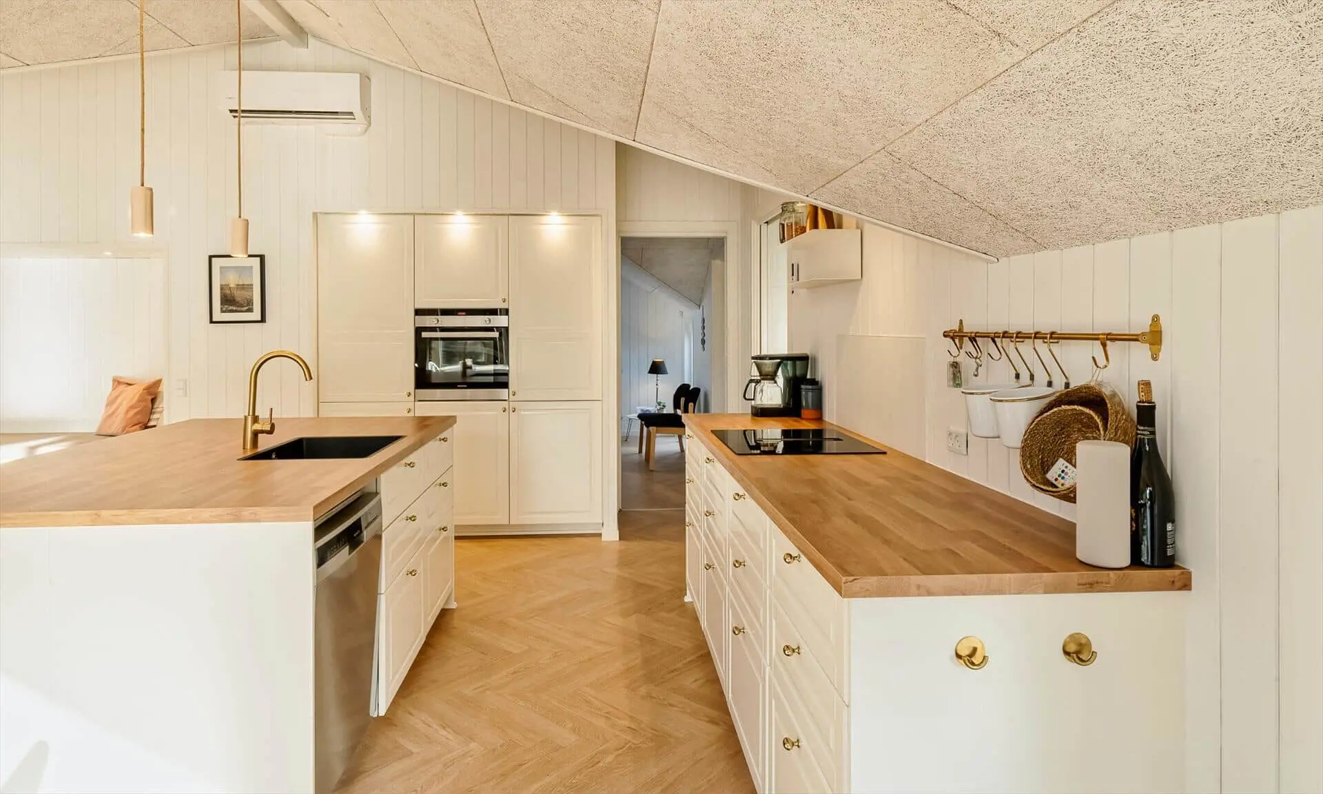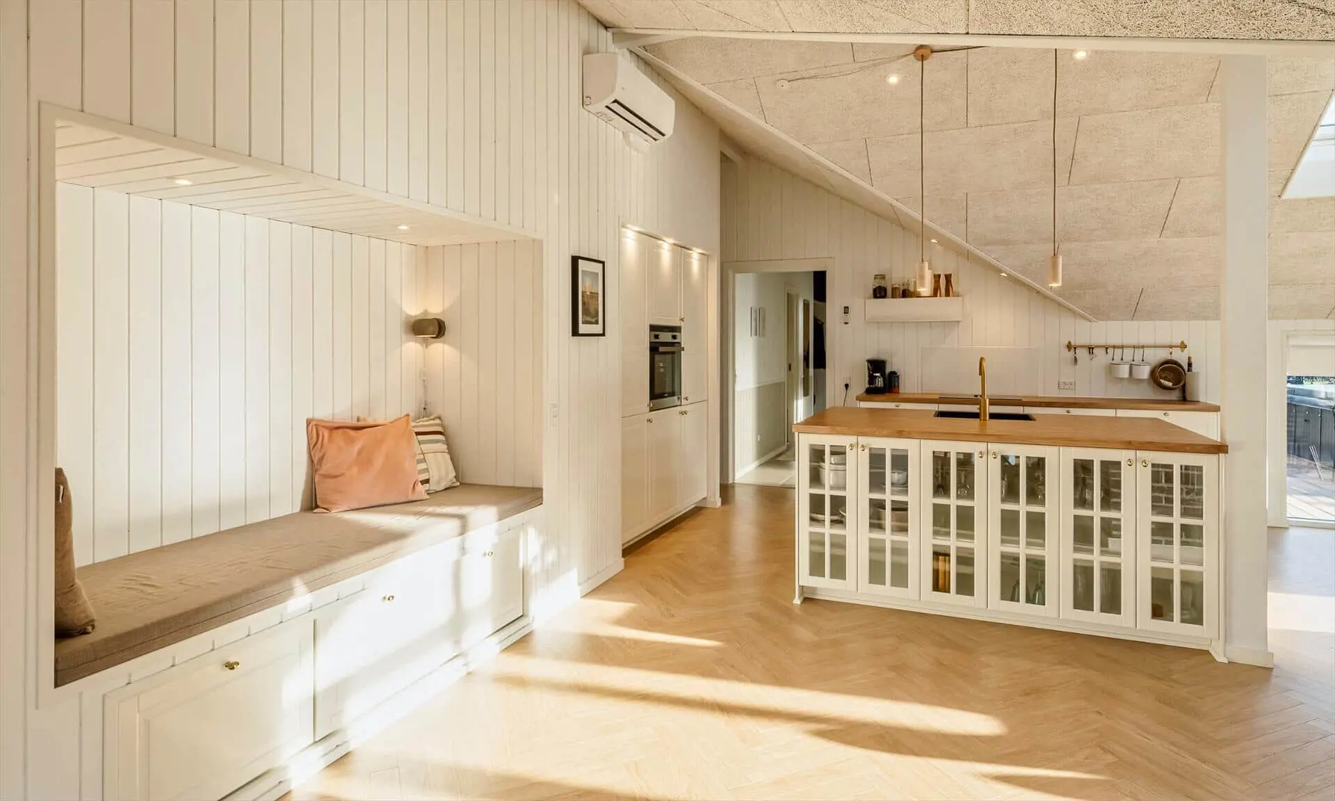 Das Haus hat eine eingeschossige Decke mit hohem Raumgefühl und einen fantastischen Lichteinfall. Fünf geräumige Schlafzimmer (4 x Doppelbett + 2 x Einzelbett) bieten viel Platz für die ganze Familie. Zwei schöne Badezimmer mit Dusche.