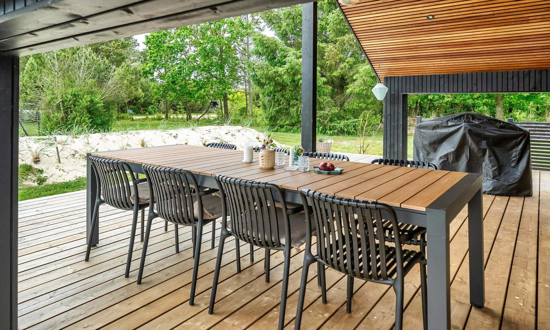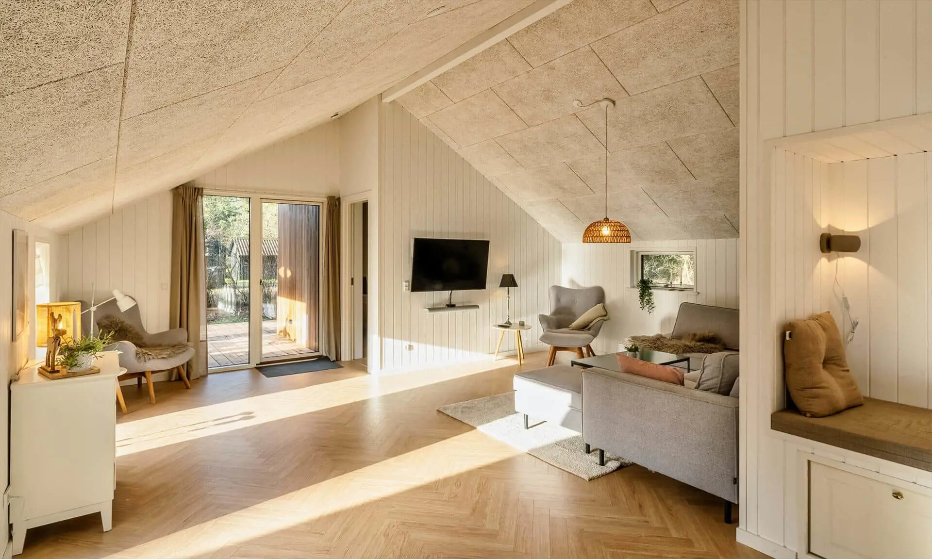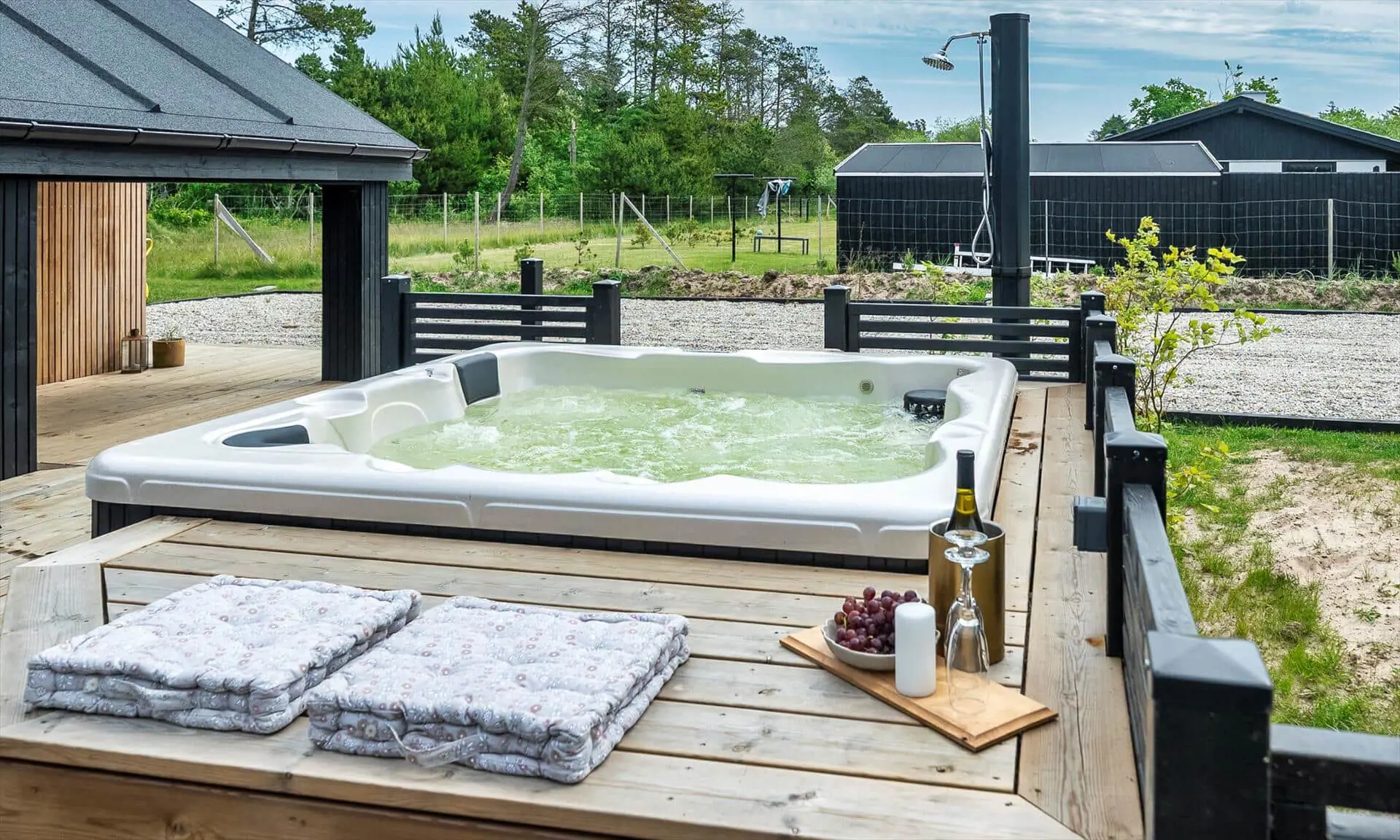Willkommen in diesem schönen und modernen Ferienhaus, das zeitgemäßen Komfort mit klassischem Ferienhauscharme verbindet. Das Haus ist in Holzbauweise mit Flachdach errichtet und verfügt über eine große, teilweise überdachte Holzterrasse, auf der Sie den Aufenthalt im Freien genießen und im herrlichen Außen-Whirlpool entspannen können.