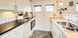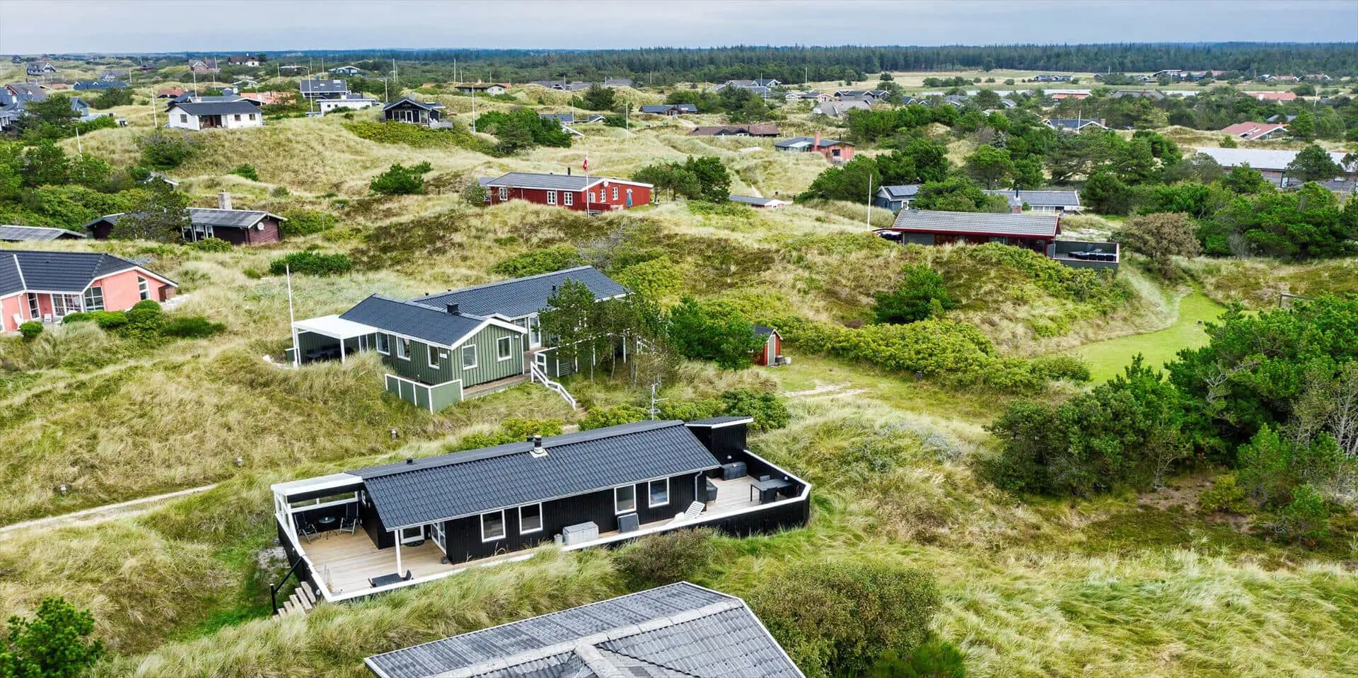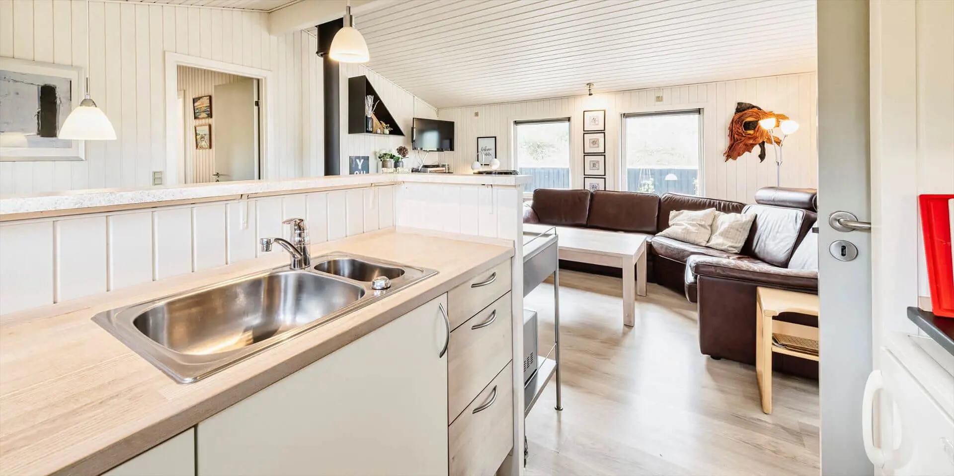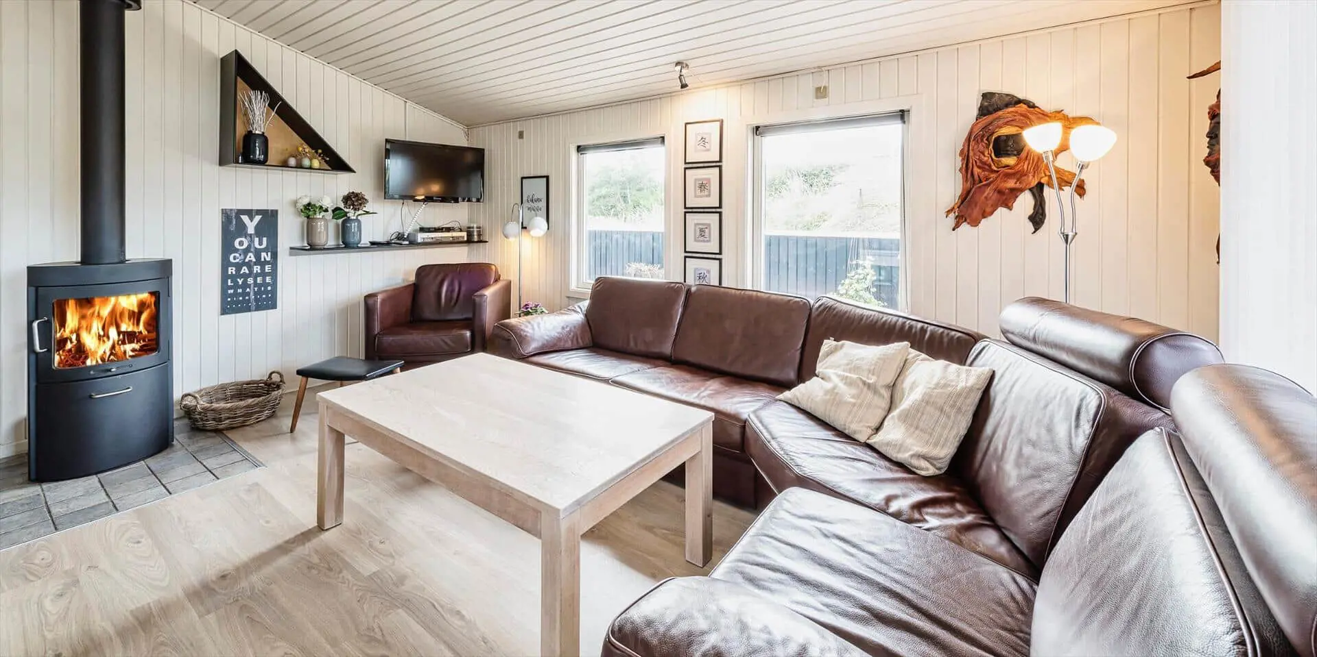 Dieses ansprechende Ferienhaus ist für 6 Personen ausgestattet und der Strand ist nur 400 Meter vom Haus entfernt. Der Wohnbereich ist mit dem Essbereich und der Küche offengehalten und mit einem hellen Laminatboden ausgelegt. Der Kamin steht in diesem Bereich und strahlt eine angenehme Wärme aus. Es befindet sich eine Wärmepumpe im Ferienhaus. Mit dieser Wärmepumpe haben sie die Möglichkeit die Stromkosten zu senken, denn die Wärmepumpe ist energiesparend. Das deutsche Fernsehprogramm empfangen Sie über eine Parabolantenne und Chrom Cast. Smart-Tv. Die Küche verfügt über einen Herd mit Cerankochfeld, einem Backofen, einer Mikrowelle, und einem Kühlschrank. In einem kleinen separaten Abstellraum befindet sich zusätzlich ein kleiner Gefrierschrank. Das Badezimmer ist mit einem WC, einem Handwaschbecken, einer Dusche und einer Sauna ausgestattet. Eine Waschmaschine steht Ihnen auch im Hause zur Benutzung zur Verfügung. Insgesamt gibt es drei Schlafzimmer im Ferienhaus. Zwei davon sind mit je einem Doppelbett ausgestattet und das Dritte verfügt über Etagenbetten. Das Ferienhaus verfügt über einen Internetanschluss (W-Lan). Es sind max. zwei Haustiere erlaubt. Für die Vierbeiner bietet sich die große geschlossene Terrasse gut an, denn hier können Sie mal Luft schnappen, ohne dass sie unbemerkt verschwinden können. Ein kleiner Bereich der Terrasse ist überdacht. Das Rauchen im Ferienhaus ist nicht erlaubt. Das Ferienhaus ist 1989 erbaut worden.