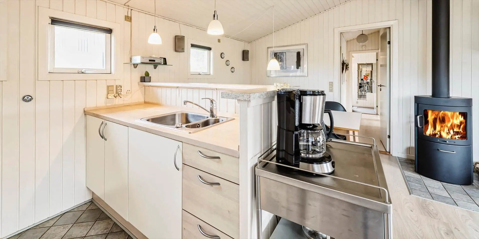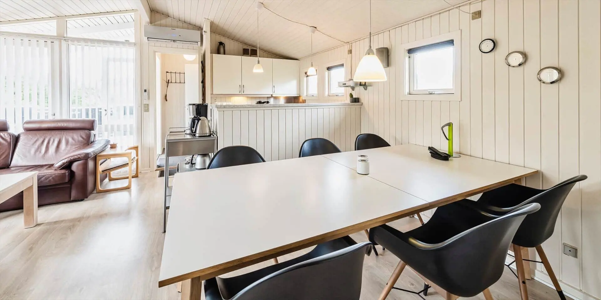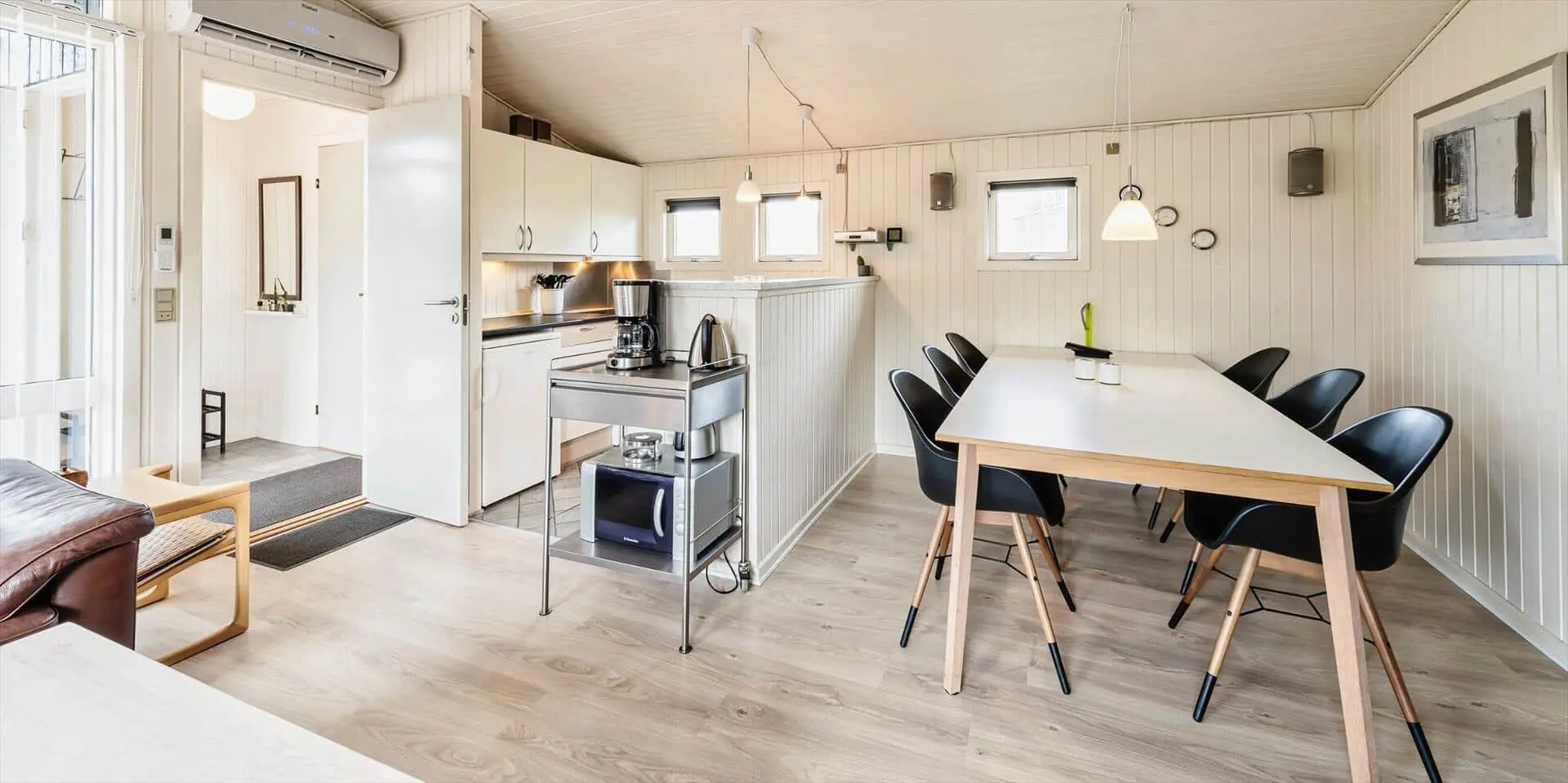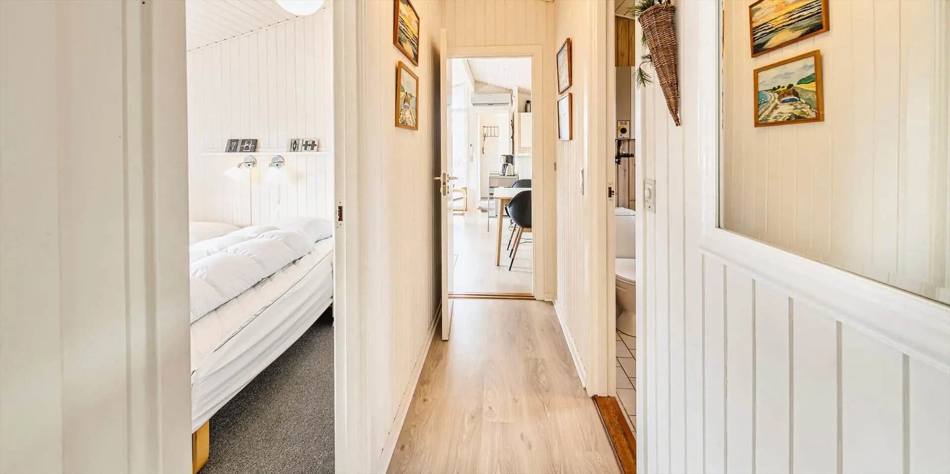 Dieses ansprechende Ferienhaus ist für 6 Personen ausgestattet und der Strand ist nur 400 Meter vom Haus entfernt. Der Wohnbereich ist mit dem Essbereich und der Küche offengehalten und mit einem hellen Laminatboden ausgelegt. Der Kamin steht in diesem Bereich und strahlt eine angenehme Wärme aus. Es befindet sich eine Wärmepumpe im Ferienhaus. Mit dieser Wärmepumpe haben sie die Möglichkeit die Stromkosten zu senken, denn die Wärmepumpe ist energiesparend. Das deutsche Fernsehprogramm empfangen Sie über eine Parabolantenne und Chrom Cast. Smart-Tv. Die Küche verfügt über einen Herd mit Cerankochfeld, einem Backofen, einer Mikrowelle, und einem Kühlschrank. In einem kleinen separaten Abstellraum befindet sich zusätzlich ein kleiner Gefrierschrank. Das Badezimmer ist mit einem WC, einem Handwaschbecken, einer Dusche und einer Sauna ausgestattet. Eine Waschmaschine steht Ihnen auch im Hause zur Benutzung zur Verfügung. Insgesamt gibt es drei Schlafzimmer im Ferienhaus. Zwei davon sind mit je einem Doppelbett ausgestattet und das Dritte verfügt über Etagenbetten. Das Ferienhaus verfügt über einen Internetanschluss (W-Lan). Es sind max. zwei Haustiere erlaubt. Für die Vierbeiner bietet sich die große geschlossene Terrasse gut an, denn hier können Sie mal Luft schnappen, ohne dass sie unbemerkt verschwinden können. Ein kleiner Bereich der Terrasse ist überdacht. Das Rauchen im Ferienhaus ist nicht erlaubt. Das Ferienhaus ist 1989 erbaut worden.