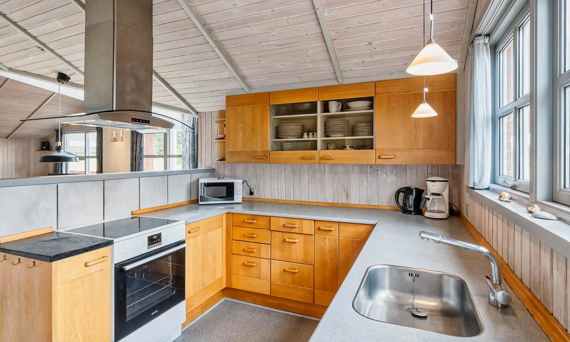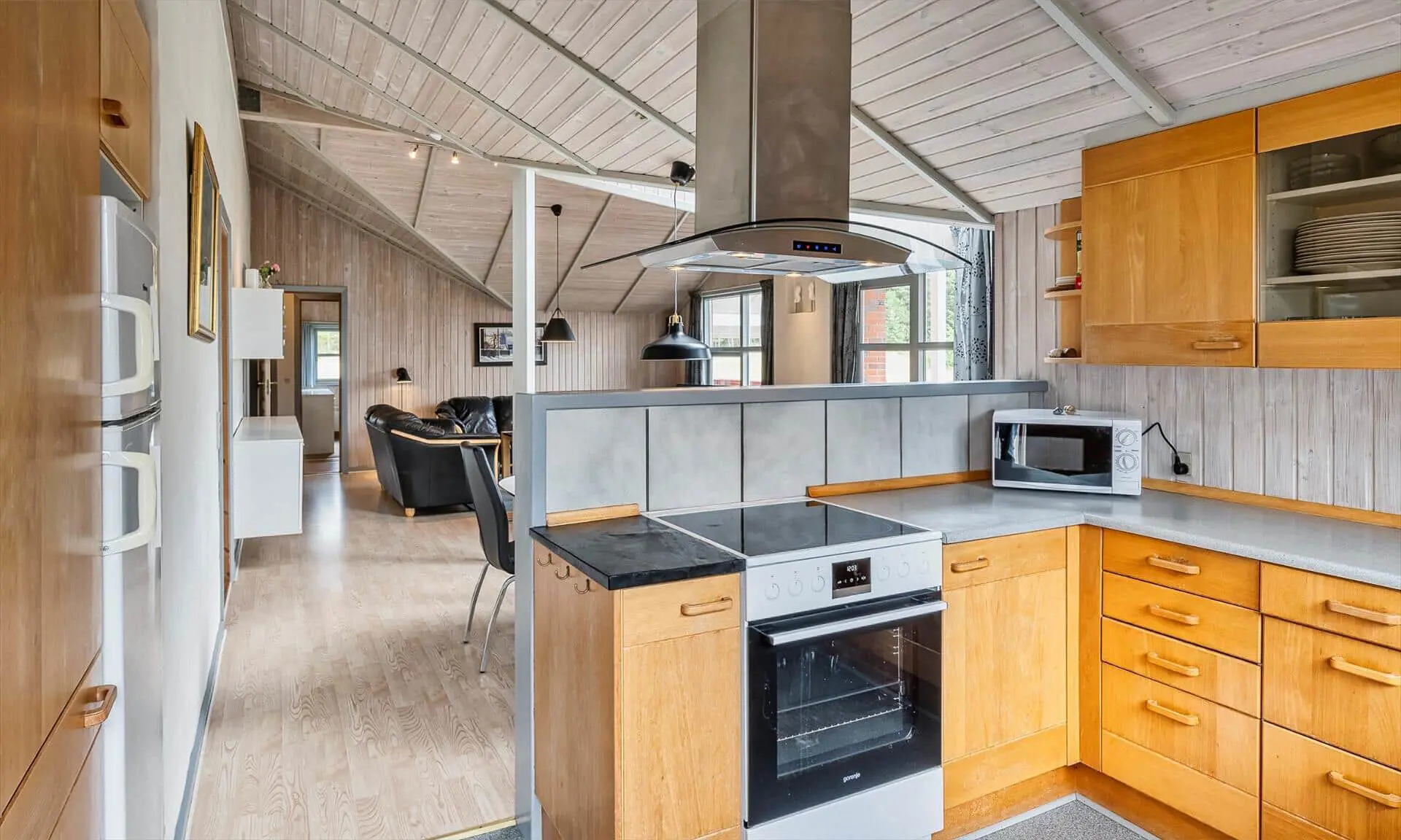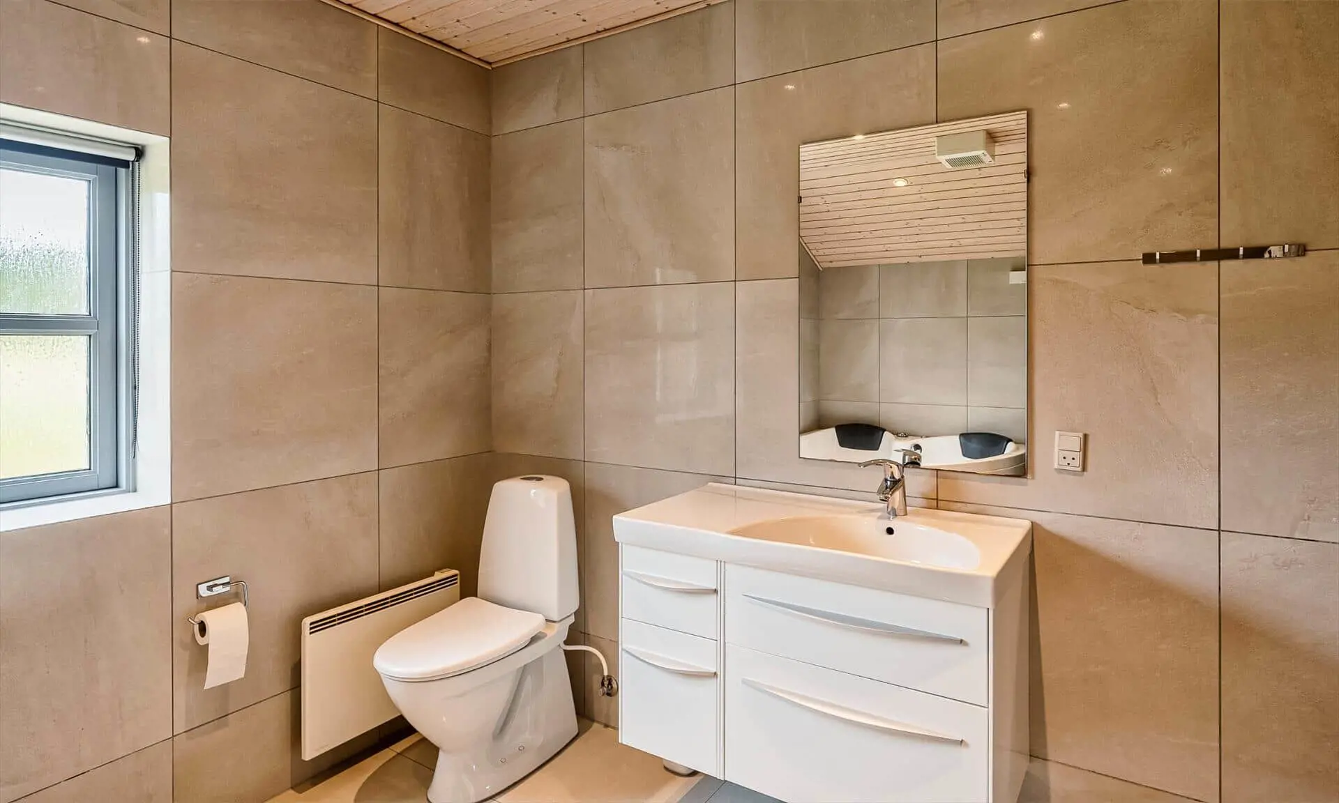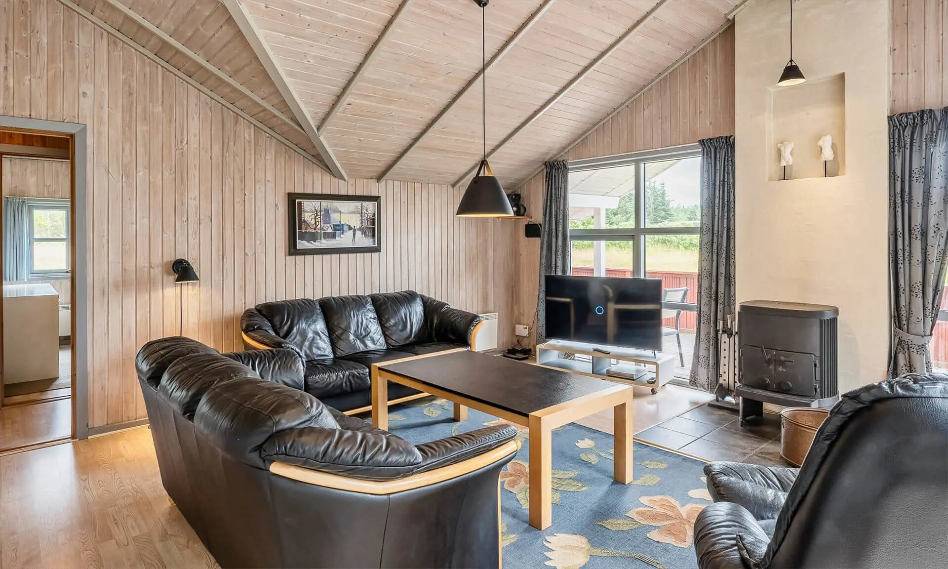 Auf diesem großen Naturgrundstück, am See vom Jafdalvej gelegen, liegt dieses für 8 Personen ausgestattete Steinhaus. Es liegt ca. 1 Km vom Strand entfernt. Hinter dem Ferienhaus befindet sich ein Fahrradweg, wo Sie ungestört auch zu Fuss nach Grærup gehen können. Es ist freundlich, durch die helle Holztäfelung und dem hübschen hellen Laminatfußboden, der übrigens im ganzen Ferienhaus, außer im Bad und Küche, verlegt ist. Das Bad ist gefliest und im Küchenbereich liegt Linoleum. Auf der großzügigen geschlossenen Terrasse können Ihre Vierbeiner zwischendurch mal Luft schnappen lassen, ohne das sie weglaufen können. Das Wohnzimmer ist mit einer gemütlichen 2er und 3er Sitzgruppe ausgestattet, direkt gegenüber dem Morsø-Kamin. Dieser gibt eine angenehme Wärme ab und macht die Abende recht hyggelich, so wie der Däne sagen würde.Smart TV und das deutsche Fernsehprogramm empfangen Sie über eine Parabol-Antenne. Am Esstisch ist genügend Platz für alle Bewohner vorhanden und durch das Oberlicht kommt viel Heiligkeit auf den Tisch. Die zum Essbereich offene Küche verfügt über eine Geschirrspülmaschine, einem Herd mit Cerankochfeld, einem Backofen, Mikrowelle und einer Kühl- und Gefrierkombination (2 Fächer). Die Küche ist auch gleich der Eingangsbereich, von dem der Hauswirtschaftsraum abzweigt. Hier ist die Waschmaschine und Trockner aufgestellt. Und es geht in das kleine Gäste WC, mit Handwaschbecken . Vom Wohn- und Essbereich gehen zwei Schlafzimmer und ein kleiner Flur ab. Vom Flur gelangen Sie dann weiter in ein großes Badezimmer und das dritte Schlafzimmer. Das Badezimmer ist neu und verfügt über ein WC, ein Handwaschbecken, eine Dusche, einem Whirlpool und der Sauna. Zwei der Schlafzimmer verfügen über Doppelbetten (2 x 90x200 Meter + 1 x 180x200 Meter) und das dritte Schlafzimmer hat 2 mal Etagenbetten, also insgesamt 4 Betten (mit je den Massen 90x200 Meter). Eine Sandkiste und ein Schaukelstativ stehen für Ihre Kinder zum Spielen bereit. Es sind max. 3 Haustiere erlaubt. Es befindet sich Internetanschluss (W-Lan) im Ferienhaus. Das Ferienhaus ist 1990 erbaut.