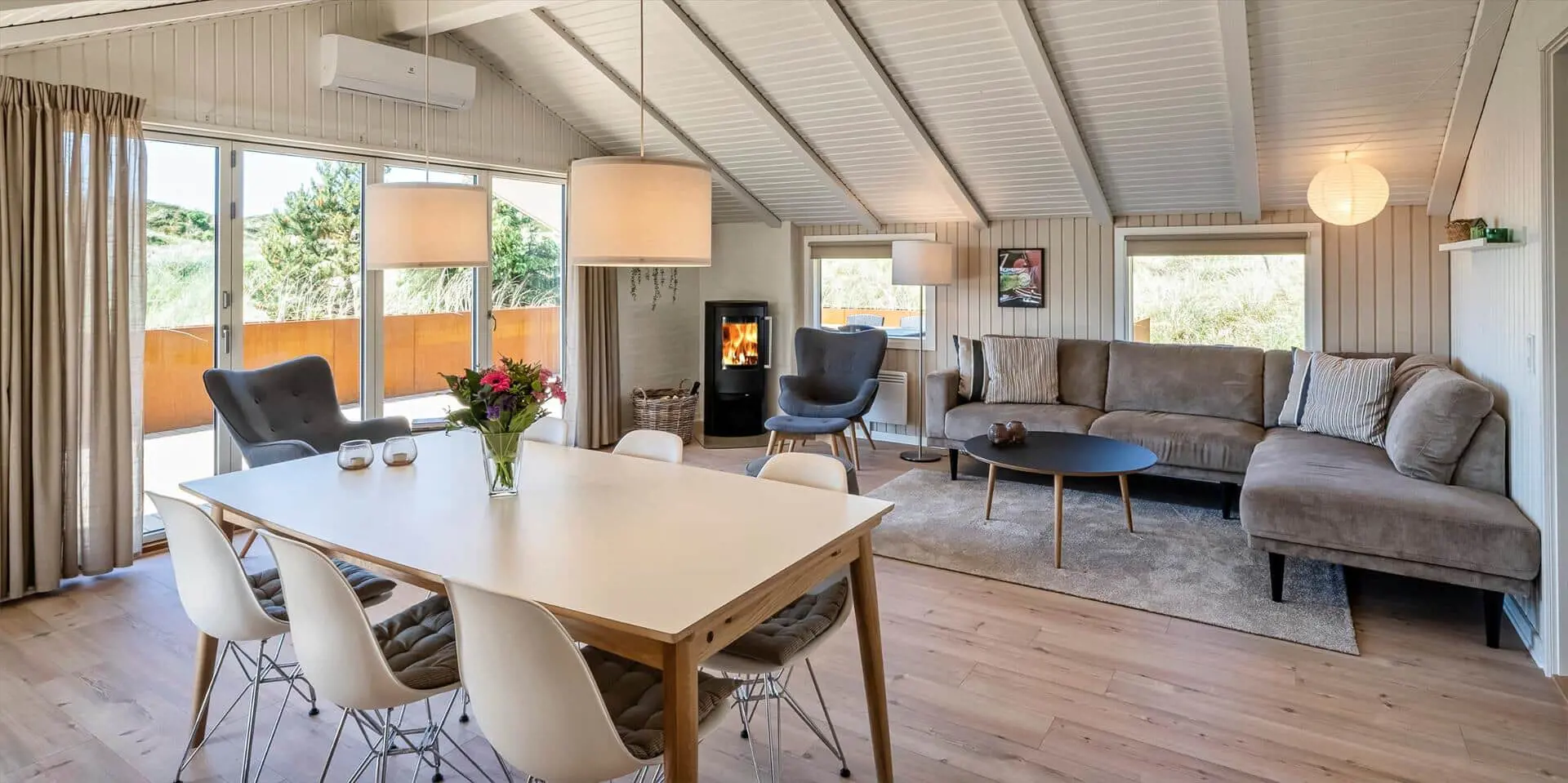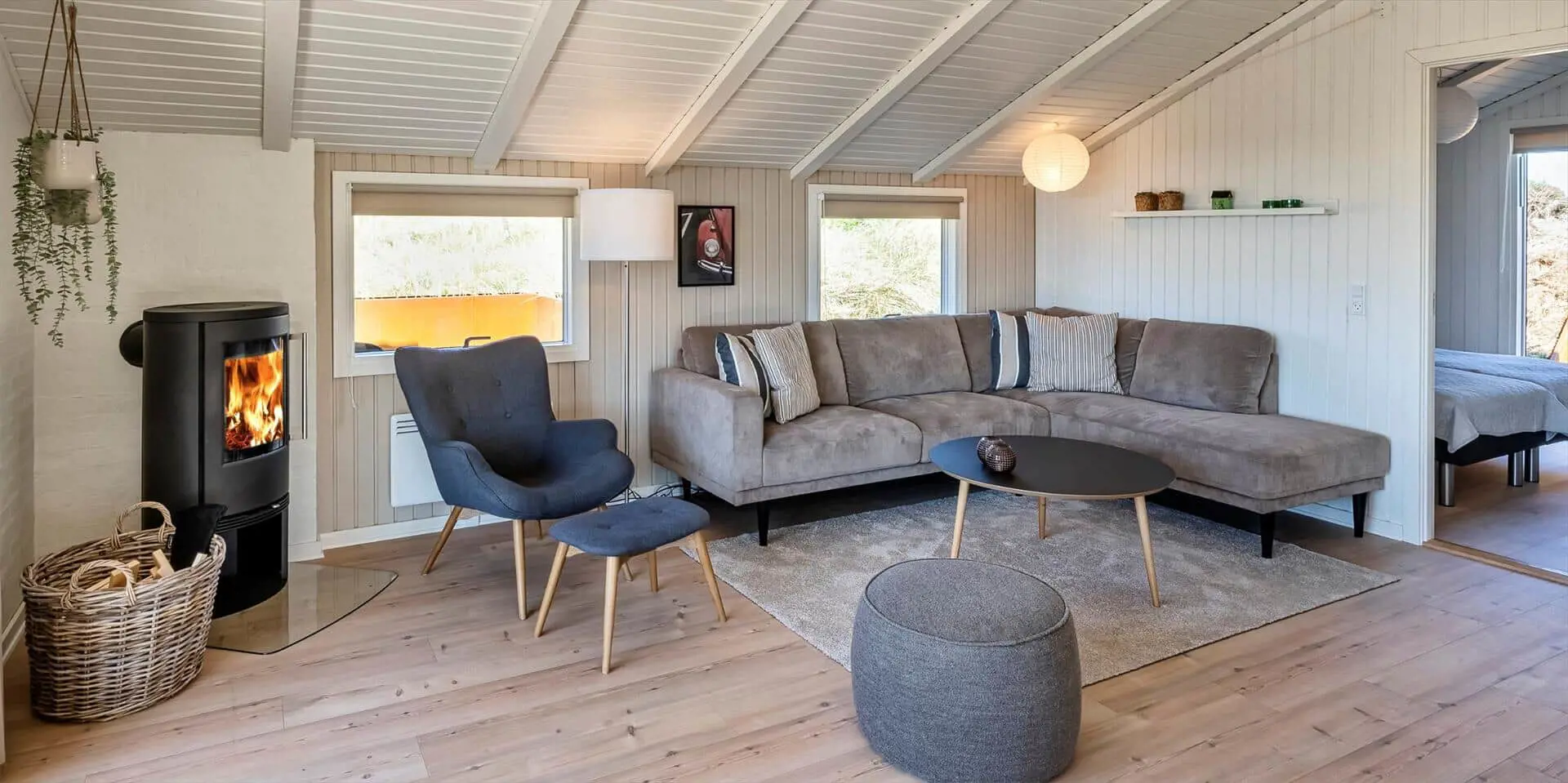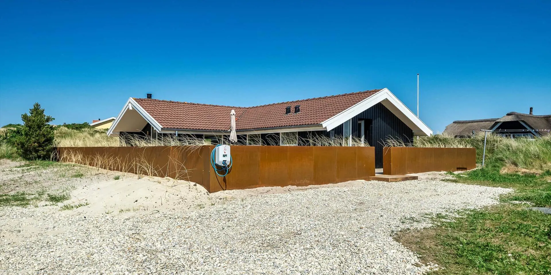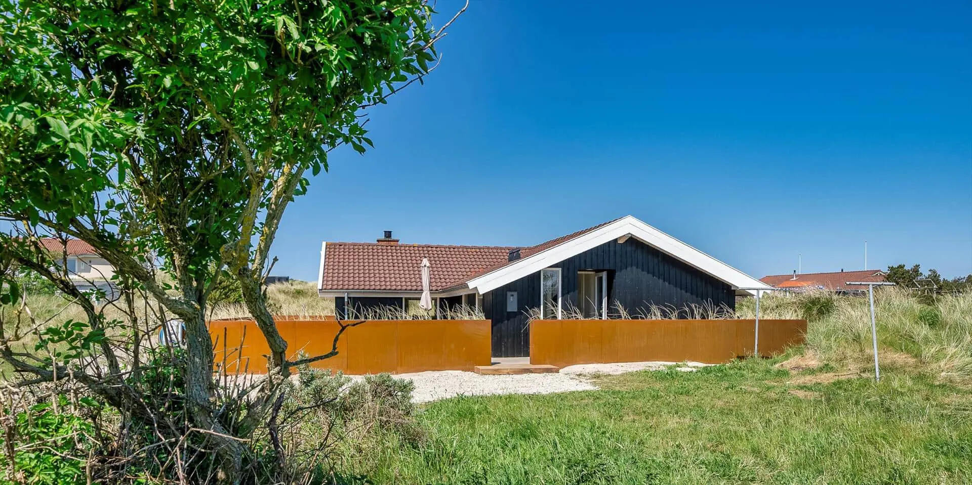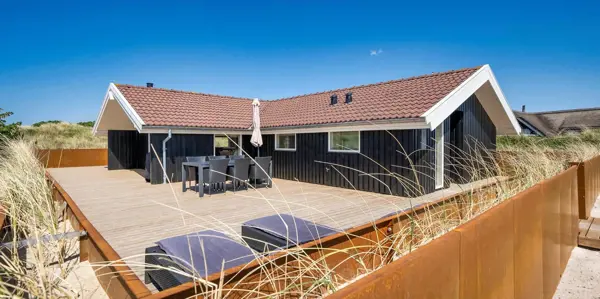 Schönes Ferienhaus auf einem Naturgrundstück und am Ende einer Sackgasse gelegen. Das Ferienhaus ist für 6 Personen ausgestattet und der Strand ist etwa 700 Meter vom Haus entfernt. Der Wohnbereich ist mit dem Essbereich und zum Küchenbereich hin offengehalten. In einer Ecke im Wohnbereich steht der Kamin. Das deutsche Fernsehprogramm empfangen Sie über Stofa. Die Küche ist einfach gehalten aber mit allem ausgestattet, was Sie brauchen; wie zum Beispiel einem Herd mit Cerankochfeld, einem Backofen, einer Geschirrspülmaschine, einer Mikrowelle und einer Kühl- und Gefrierkombination. Das Badezimmer ist mit einem WC, einem Handwaschbecken, einer Dusche, einer Sauna und einer Luxusbadewanne mit integrierter Lichttherapie und Spa-Air-Massage ausgestattet. Desweiteren gibt es eine Fußbodenheizung im Bad. Eine Waschmaschine steht im Hauswirtschaftsraum zur Benutzung bereit. Es stehen den Gästen insgesamt drei Schlafzimmer zur Verfügung. Drei Schlafzimmer mit guten Betten (DB + DB + 2EB). Ein Schlafzimmer mit zwei Einzelbetten und die beiden anderen Schlafzimmer mit je einem Doppelbett. Es befindet sich eine Wärmepumpe im Ferienhaus. Mit dieser Wärmepumpe haben Sie die Möglichkeit die Stromkosten zu senken, da sie energiesparend ist. Der schöne neue Terrassenbereich ist großzügig gehalten und geschlossen, mit tollen Blumenkästen umgeben und bietet gute windgeschützte Ecken. Es sind keine Haustiere erlaubt. Das Ferienhaus verfügt über einen Internetanschluss (W-Lan). Die Gäste müssen selber für Gas sorgen, wenn die Gasflasche für den Grill leer ist. Das Ferienhaus ist 1987 erbaut worden und in 2024 einer totalen Renovierung unterzogen worden.