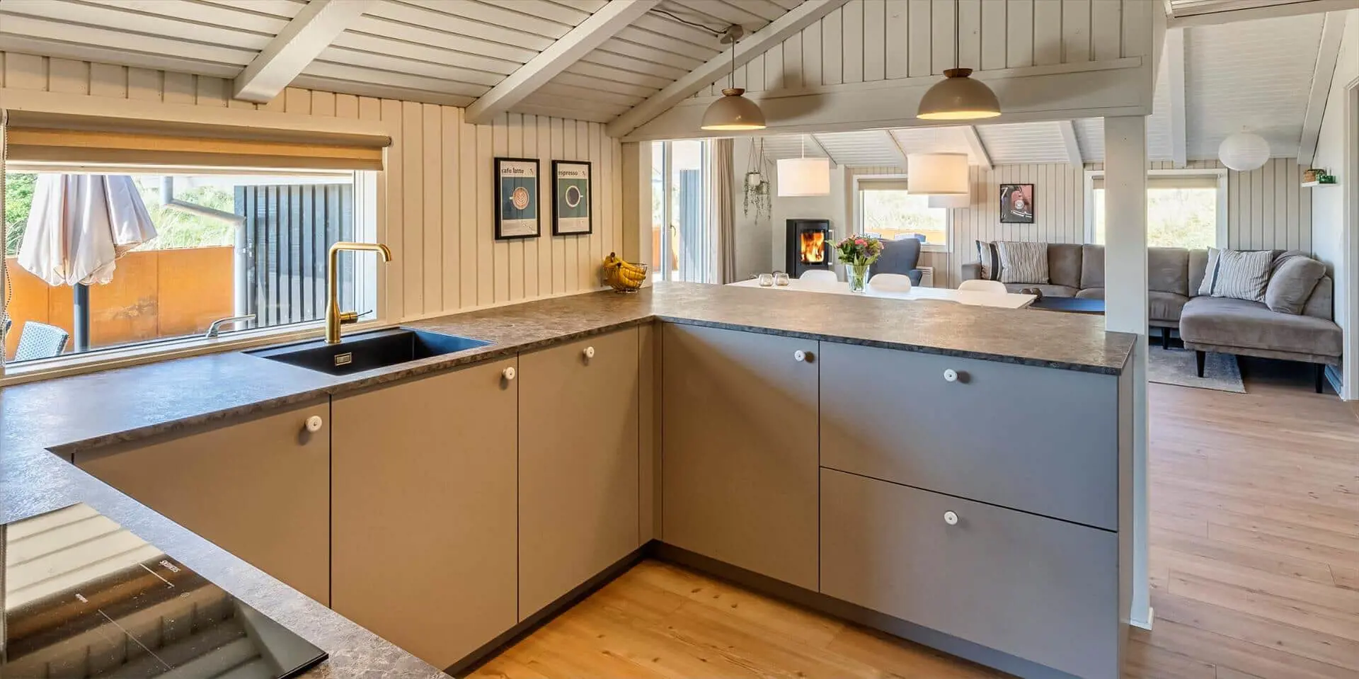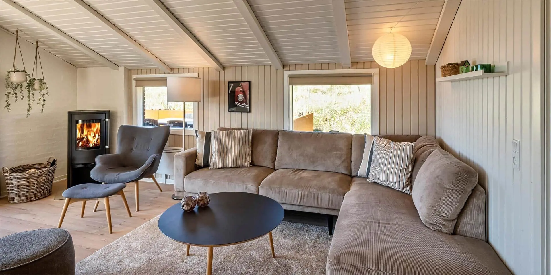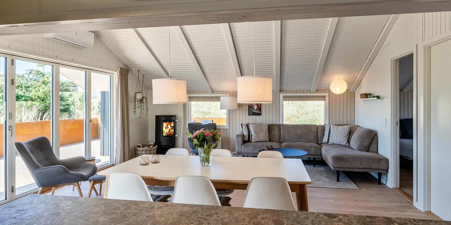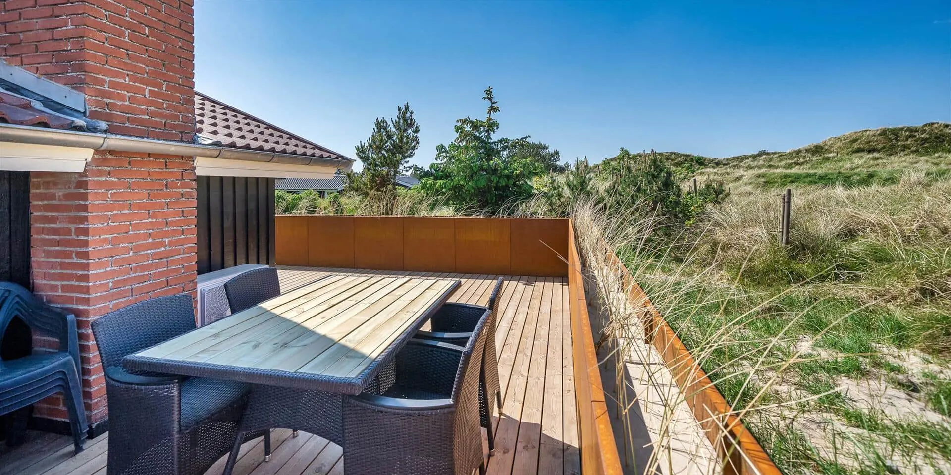 Schönes Ferienhaus auf einem Naturgrundstück und am Ende einer Sackgasse gelegen. Das Ferienhaus ist für 6 Personen ausgestattet und der Strand ist etwa 700 Meter vom Haus entfernt. Der Wohnbereich ist mit dem Essbereich und zum Küchenbereich hin offengehalten. In einer Ecke im Wohnbereich steht der Kamin. Das deutsche Fernsehprogramm empfangen Sie über Stofa. Die Küche ist einfach gehalten aber mit allem ausgestattet, was Sie brauchen; wie zum Beispiel einem Herd mit Cerankochfeld, einem Backofen, einer Geschirrspülmaschine, einer Mikrowelle und einer Kühl- und Gefrierkombination. Das Badezimmer ist mit einem WC, einem Handwaschbecken, einer Dusche, einer Sauna und einer Luxusbadewanne mit integrierter Lichttherapie und Spa-Air-Massage ausgestattet. Desweiteren gibt es eine Fußbodenheizung im Bad. Eine Waschmaschine steht im Hauswirtschaftsraum zur Benutzung bereit. Es stehen den Gästen insgesamt drei Schlafzimmer zur Verfügung. Drei Schlafzimmer mit guten Betten (DB + DB + 2EB). Ein Schlafzimmer mit zwei Einzelbetten und die beiden anderen Schlafzimmer mit je einem Doppelbett. Es befindet sich eine Wärmepumpe im Ferienhaus. Mit dieser Wärmepumpe haben Sie die Möglichkeit die Stromkosten zu senken, da sie energiesparend ist. Der schöne neue Terrassenbereich ist großzügig gehalten und geschlossen, mit tollen Blumenkästen umgeben und bietet gute windgeschützte Ecken. Es sind keine Haustiere erlaubt. Das Ferienhaus verfügt über einen Internetanschluss (W-Lan). Die Gäste müssen selber für Gas sorgen, wenn die Gasflasche für den Grill leer ist. Das Ferienhaus ist 1987 erbaut worden und in 2024 einer totalen Renovierung unterzogen worden.