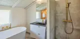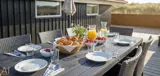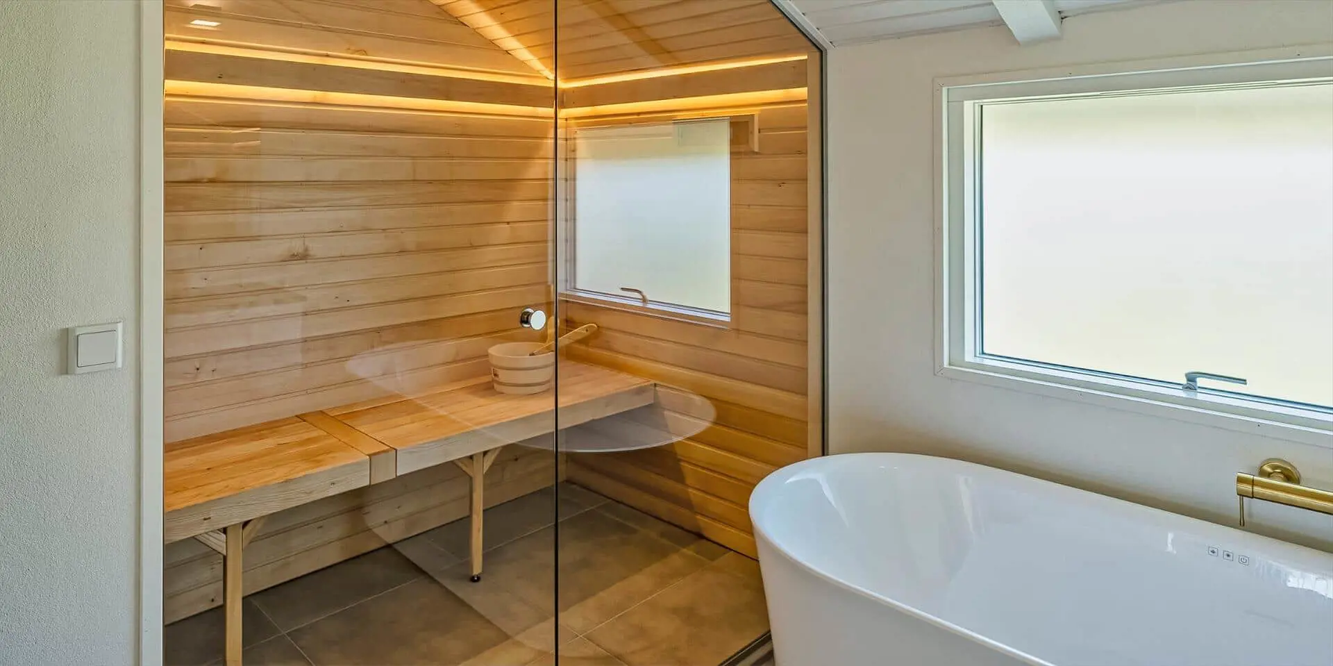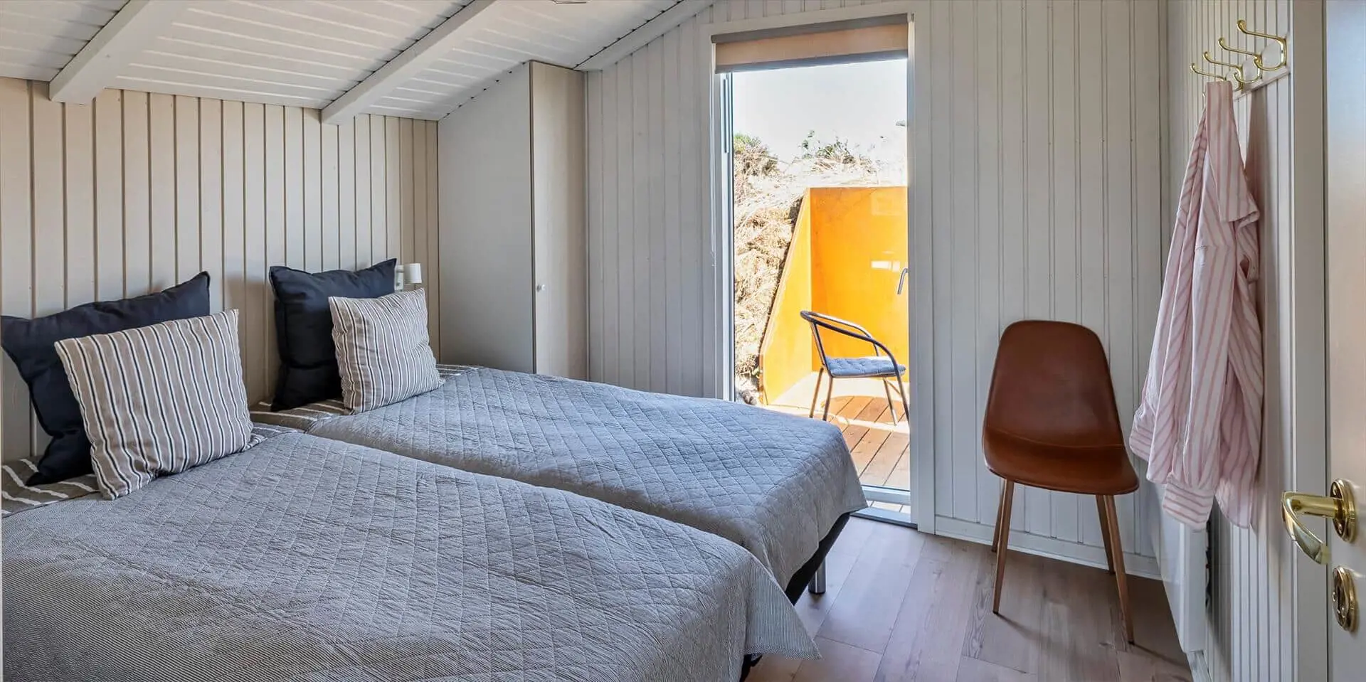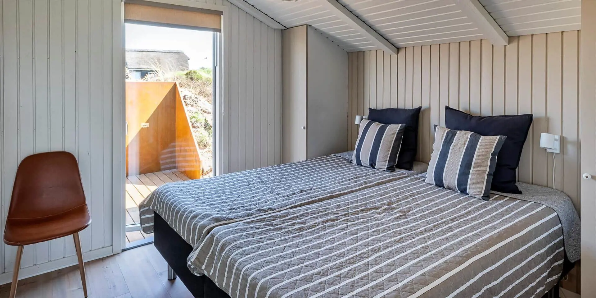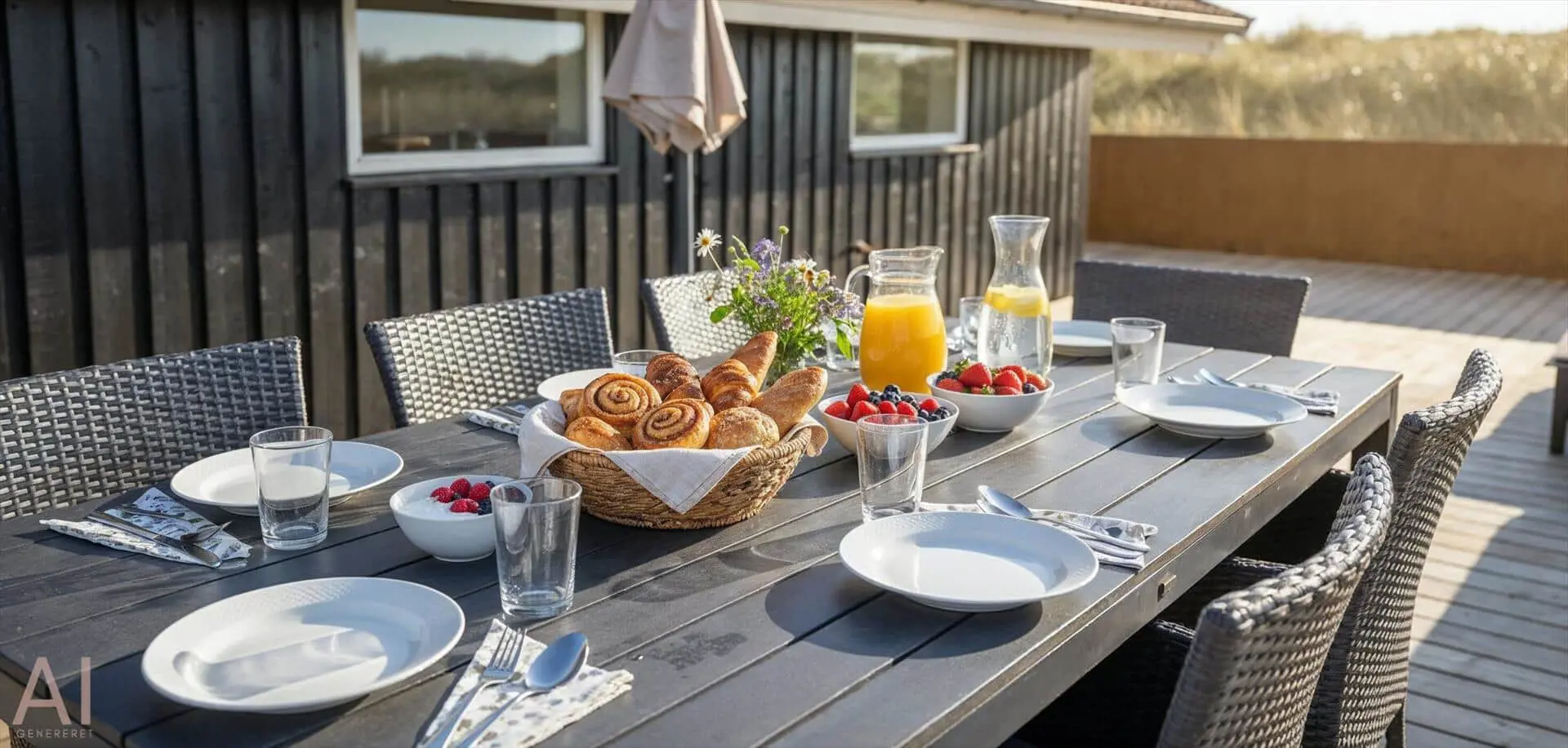Schönes Ferienhaus auf einem Naturgrundstück und am Ende einer Sackgasse gelegen. Das Ferienhaus ist für 6 Personen ausgestattet und der Strand ist etwa 700 Meter vom Haus entfernt. Der Wohnbereich ist mit dem Essbereich und zum Küchenbereich hin offengehalten. In einer Ecke im Wohnbereich steht der Kamin. Das deutsche Fernsehprogramm empfangen Sie über Stofa. Die Küche ist einfach gehalten aber mit allem ausgestattet, was Sie brauchen; wie zum Beispiel einem Herd mit Cerankochfeld, einem Backofen, einer Geschirrspülmaschine, einer Mikrowelle und einer Kühl- und Gefrierkombination. Das Badezimmer ist mit einem WC, einem Handwaschbecken, einer Dusche, einer Sauna und einer Luxusbadewanne mit integrierter Lichttherapie und Spa-Air-Massage ausgestattet. Desweiteren gibt es eine Fußbodenheizung im Bad. Eine Waschmaschine steht im Hauswirtschaftsraum zur Benutzung bereit. Es stehen den Gästen insgesamt drei Schlafzimmer zur Verfügung. Drei Schlafzimmer mit guten Betten (DB + DB + 2EB). Ein Schlafzimmer mit zwei Einzelbetten und die beiden anderen Schlafzimmer mit je einem Doppelbett. Es befindet sich eine Wärmepumpe im Ferienhaus. Mit dieser Wärmepumpe haben Sie die Möglichkeit die Stromkosten zu senken, da sie energiesparend ist. Der schöne neue Terrassenbereich ist großzügig gehalten und geschlossen, mit tollen Blumenkästen umgeben und bietet gute windgeschützte Ecken. Es sind keine Haustiere erlaubt. Das Ferienhaus verfügt über einen Internetanschluss (W-Lan). Die Gäste müssen selber für Gas sorgen, wenn die Gasflasche für den Grill leer ist. Das Ferienhaus ist 1987 erbaut worden und in 2024 einer totalen Renovierung unterzogen worden.