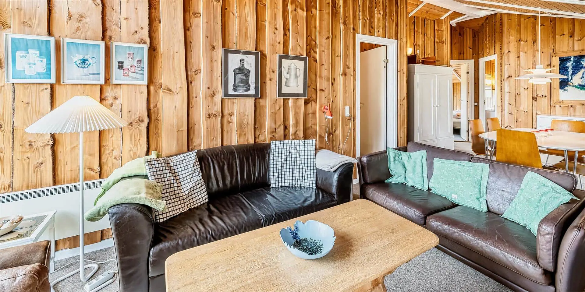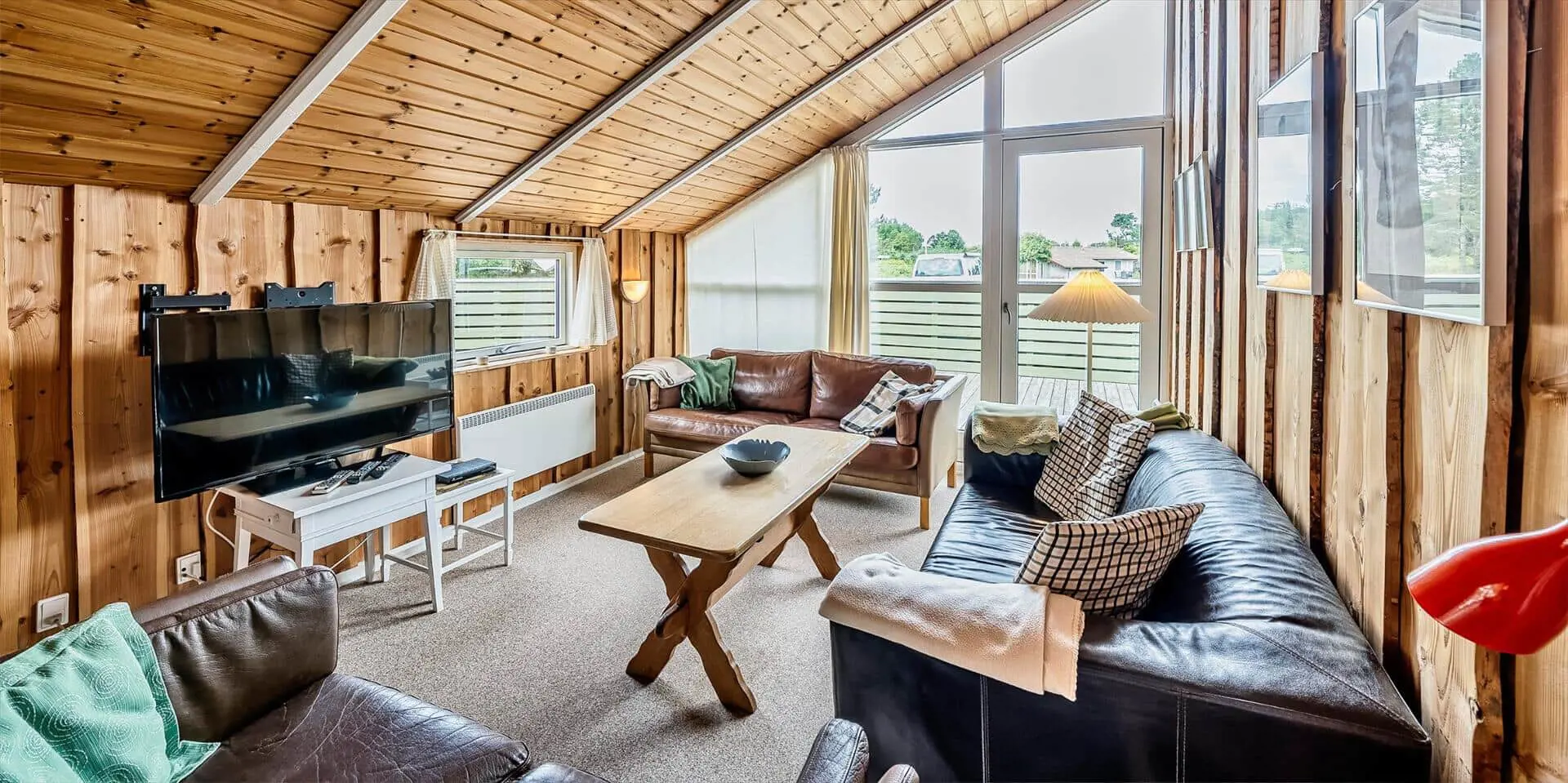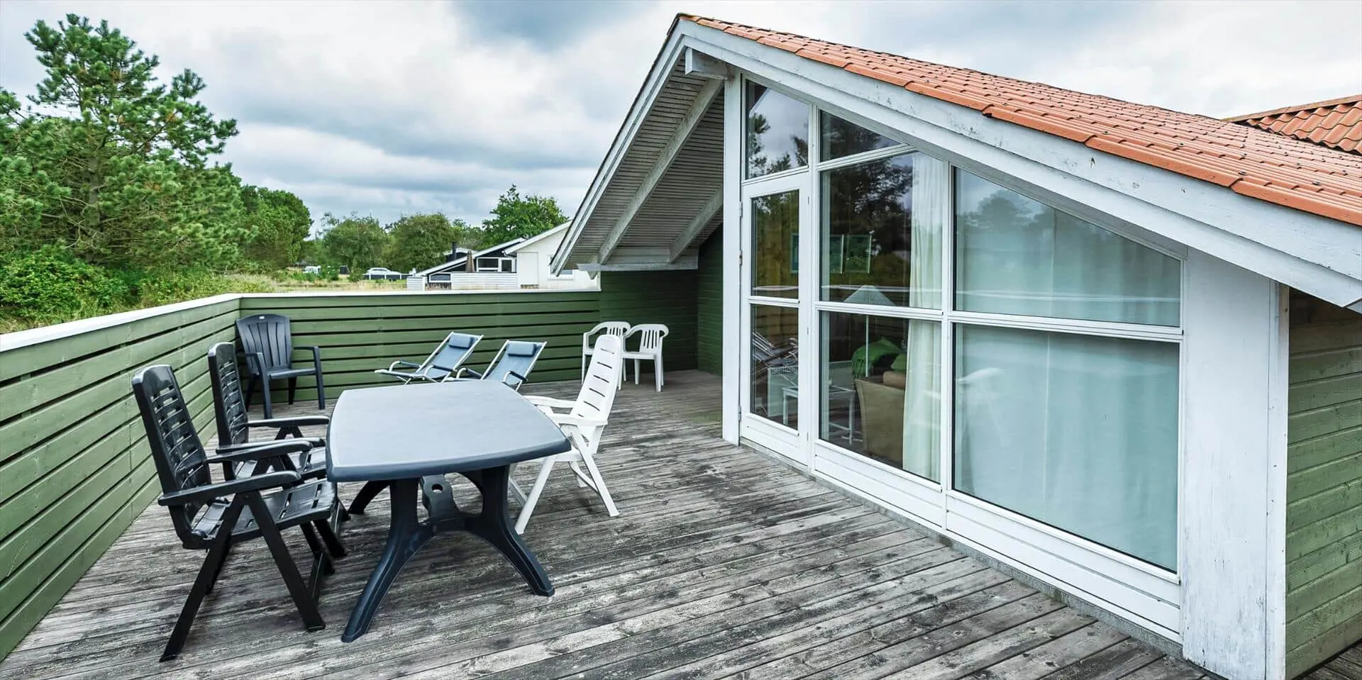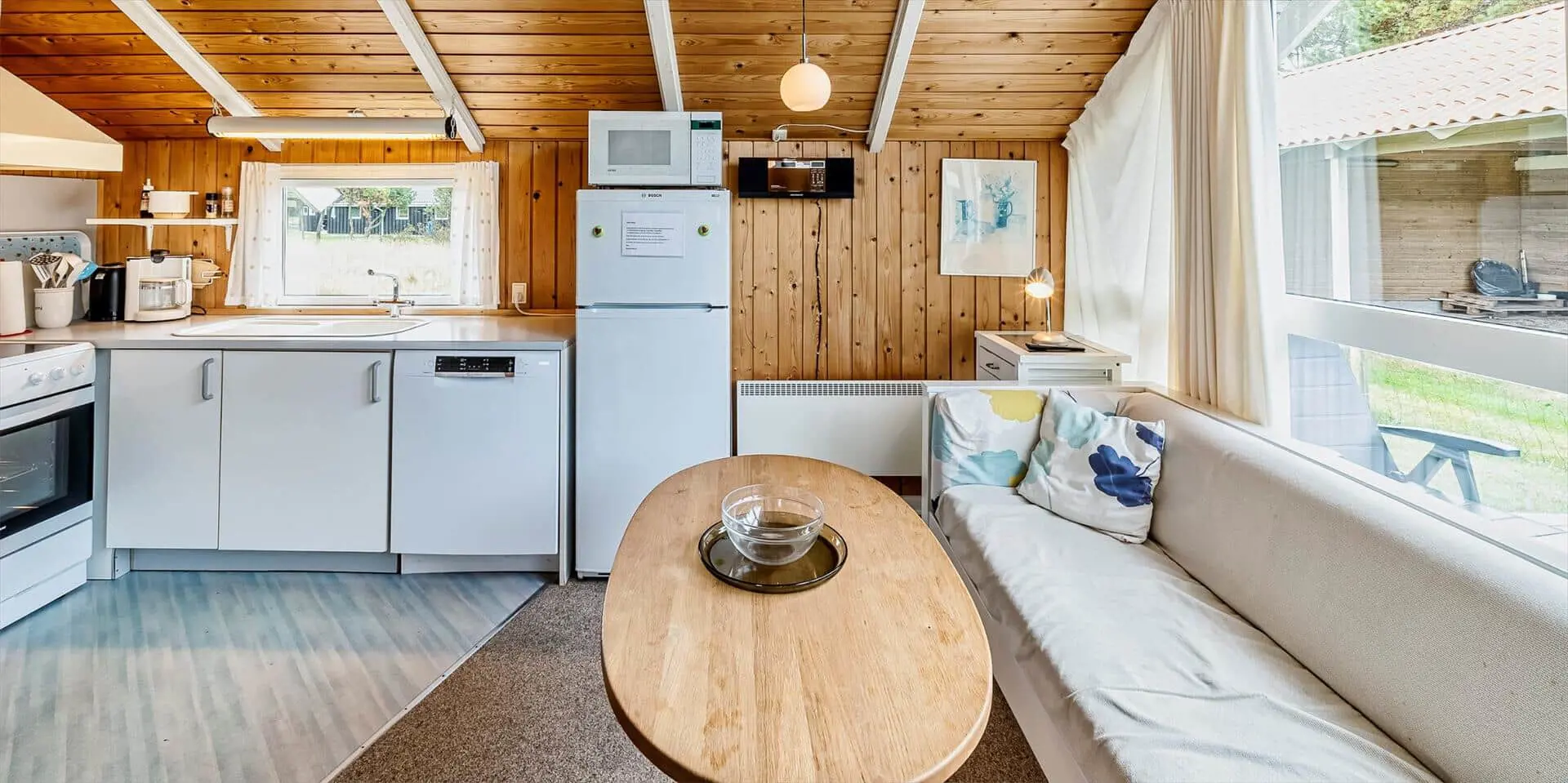 Dieses Ferienhaus liegt auf einem großen, offenen und naturbelassenem Rasengrundstück gelegen. Das Ferienhaus ist ausgestattet für 6 Personen und der Strand ist ca. 1,2 Km vom Haus entfernt. Der Wohnbereich verfügt über einen Kamin und in einer Ecke ist ein kleiner Alkoven, eine sogenannte Kuschelnische. Hier können sie sich zurückziehen und ein kleines Nickerchen halten. Das deutsche Fernsehprogramm empfangen Sie über eine Parabolantenne, Internetanschluss (W-Lan), DVD-Abspielgerät und Radio sind ebenfalls vorhanden. Die Küche ist zum Ess- und Wohnzimmer hin offen gehalten. Sie verfügt über einen Herd mit Kochplatten, einem Backofen, eine Mikrowelle, einer Geschirrspülmaschine und einer Kühl- und Gefrierkombination. Das Badezimmer ist mit einem WC, einem Handwaschbecken und einer Dusche ausgestattet. Eine Waschmaschine steht im Ferienhaus für die Gäste zur Verfügung. Es sind insgesamt drei Schlafzimmer vorhanden. Zwei davon sind mit je einem Doppelbett ausgestattet und das Dritte Schlafzimmer verfügt über ein 3/4 Doppelbett. Eine grosse Holzterrasse am Ferienhaus bietet genügend Platz für Ihr Sonnenbad oder für einen Grillabend an. Ihr Fahrzeug findet in dem Carport seinen Platz. Es sind keine Katze erlaubt. Rauchen ist nicht erlaubt. Ein kleiner Hund mit die Rückenhöhe von 30 cm ist erlaubt! Das Ferienhaus ist 1991 erbaut worden und in 2009 renoviert.