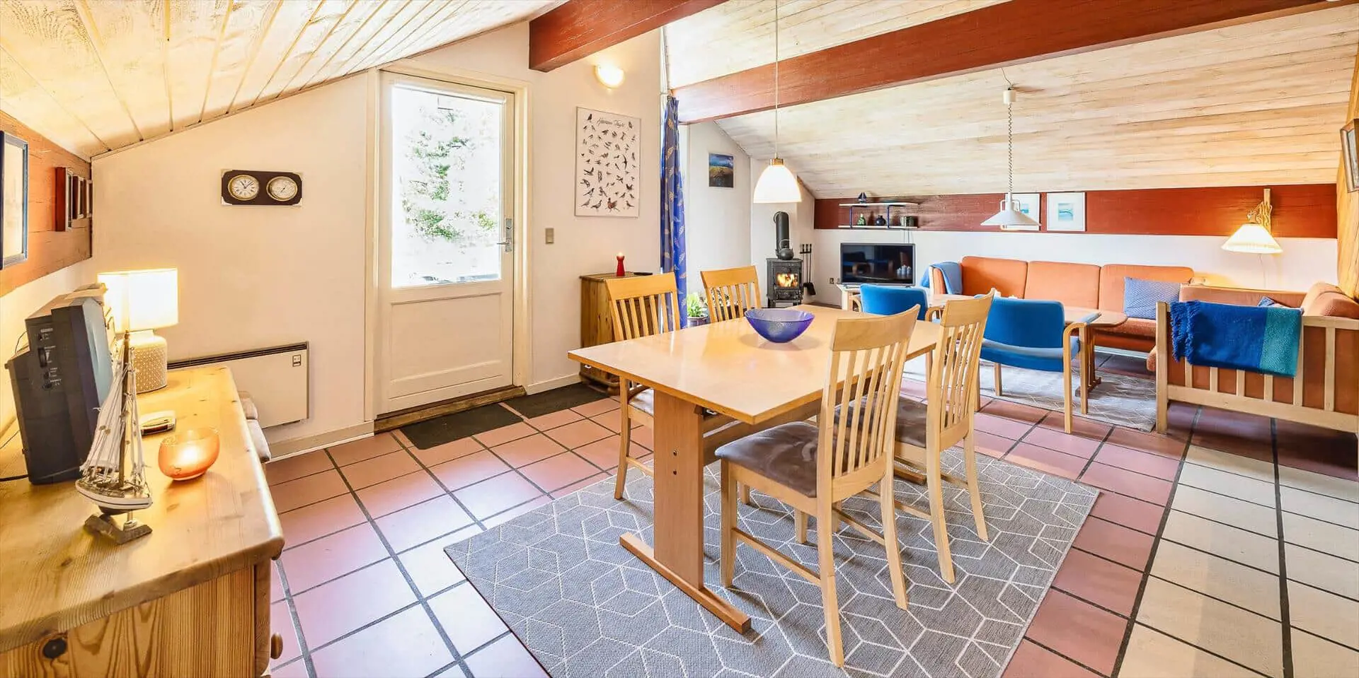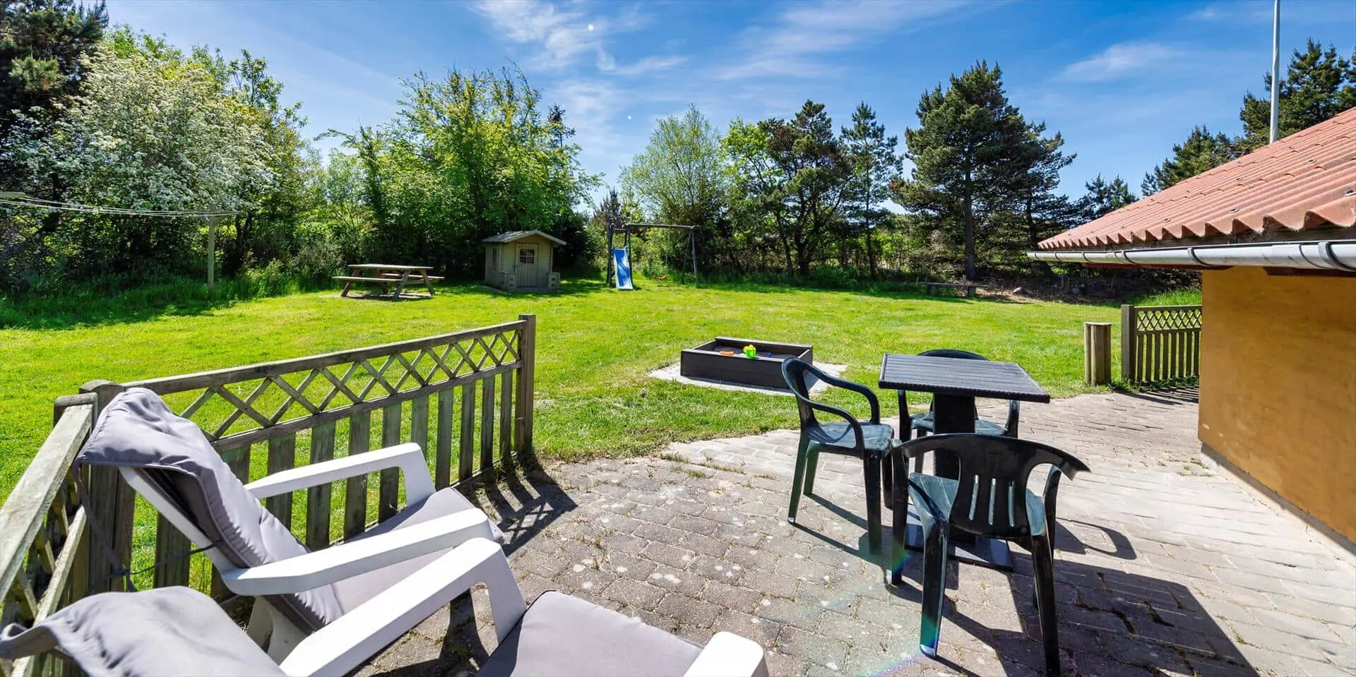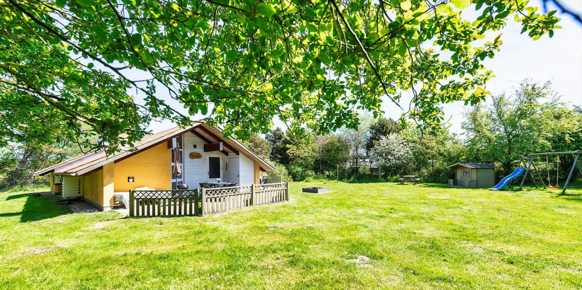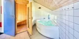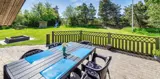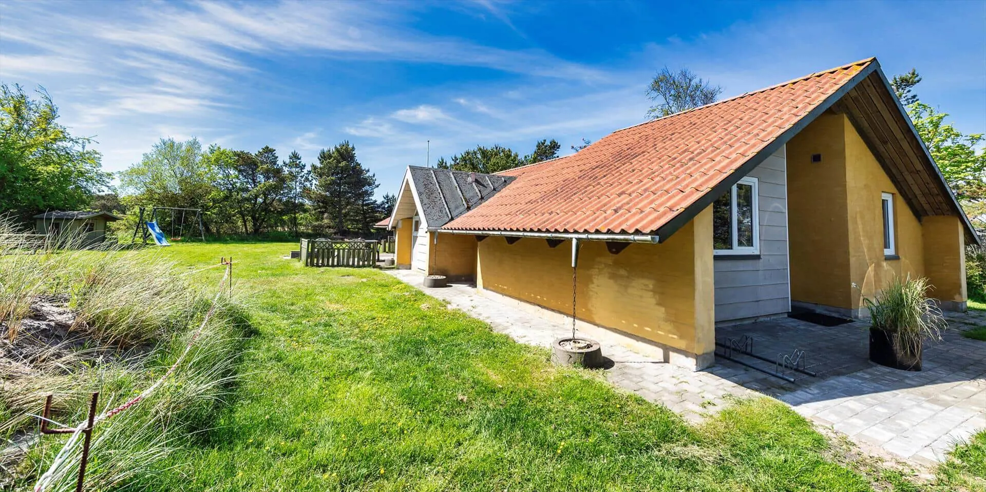 Modernes Ferienhaus für 6 Personen, etwa 1.000 Meter vom Strand entfernt, auf einem Naturgrundstück gelegen. Wohnzimmer mit Kaminofen und Fernseher. Das deutsche Fernsehprogramm empfangen Sie über Stofa, daher sind nur 5-8 deutsche Kanäle zu empfangen. Internetanschluss (W-Lan). Wohnküche mit Mikrowelle und Geschirrspülmaschine. Badezimmer mit Dusche, Whirlpool und Sauna. Toilette extra. 2 Schlafzimmer mit je 1 Doppelbett und 1 Schlafzimmer mit 1 Etagenbett und Zwischenboden. Warmepumpe, Terrasse, Schaukel und Sandkasten. Es ist 1 Haustier erlaubt. Das Rauchen ist nicht gestattet. Baujahr 1992, renoviert 1999.