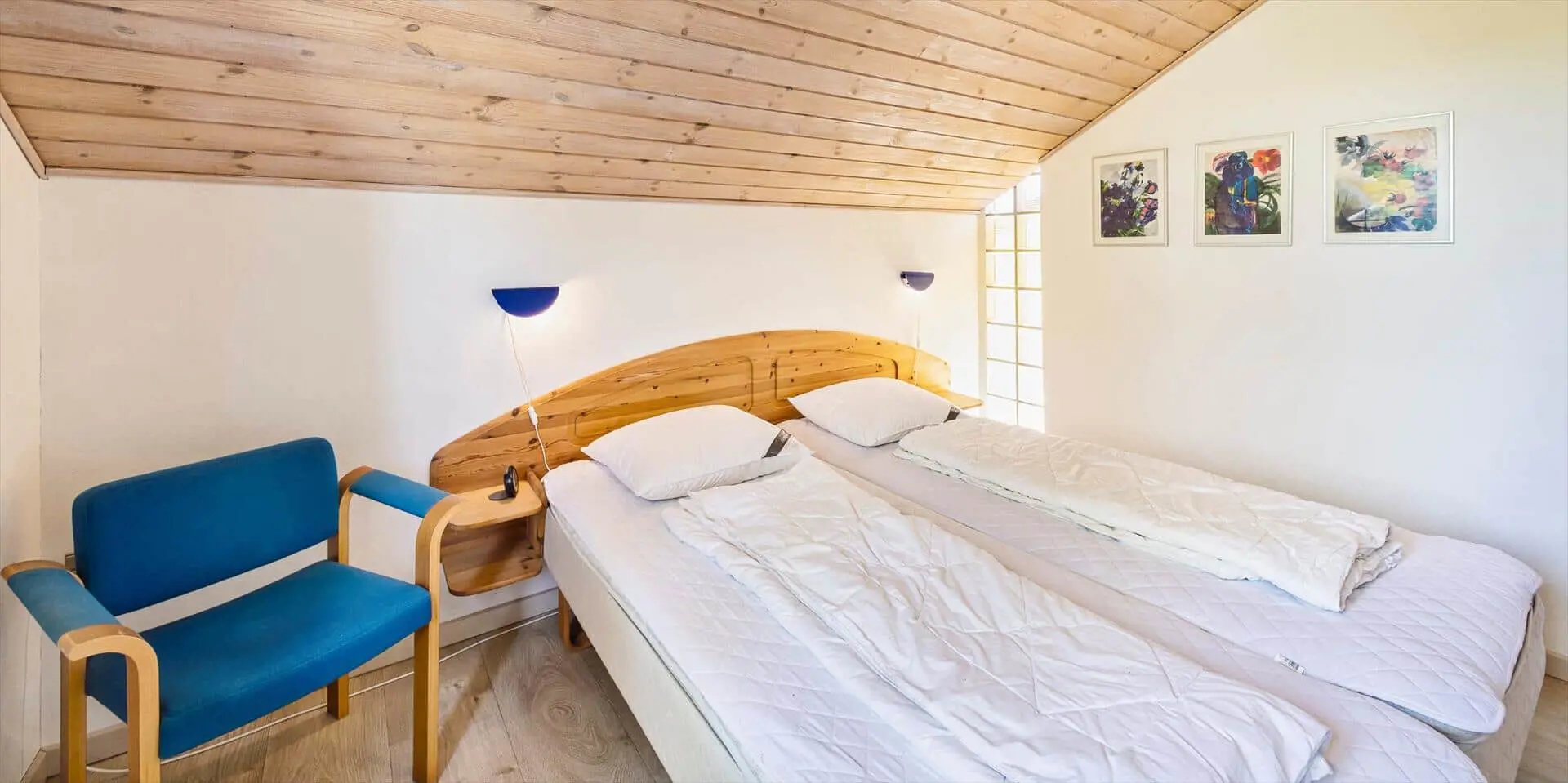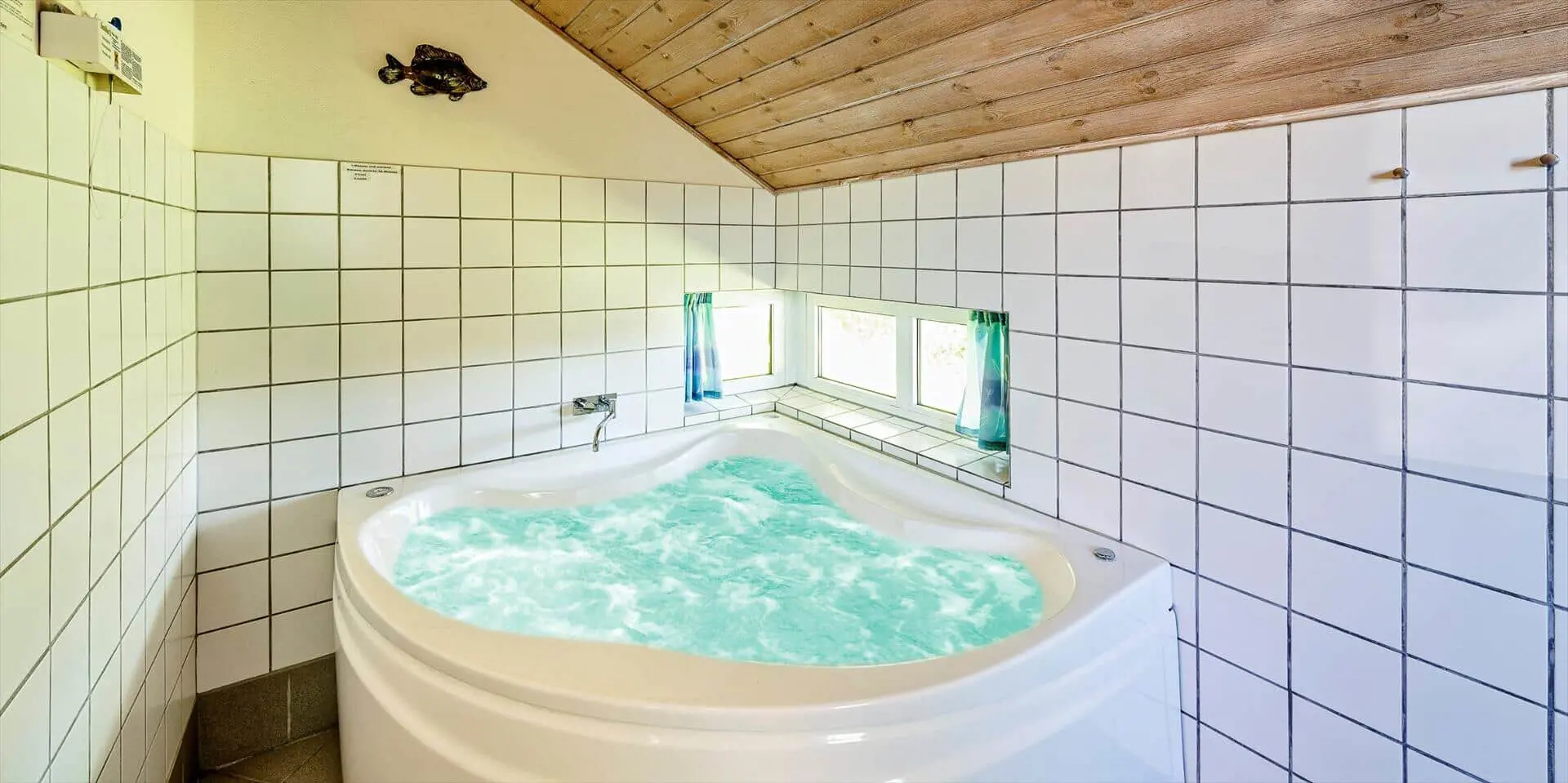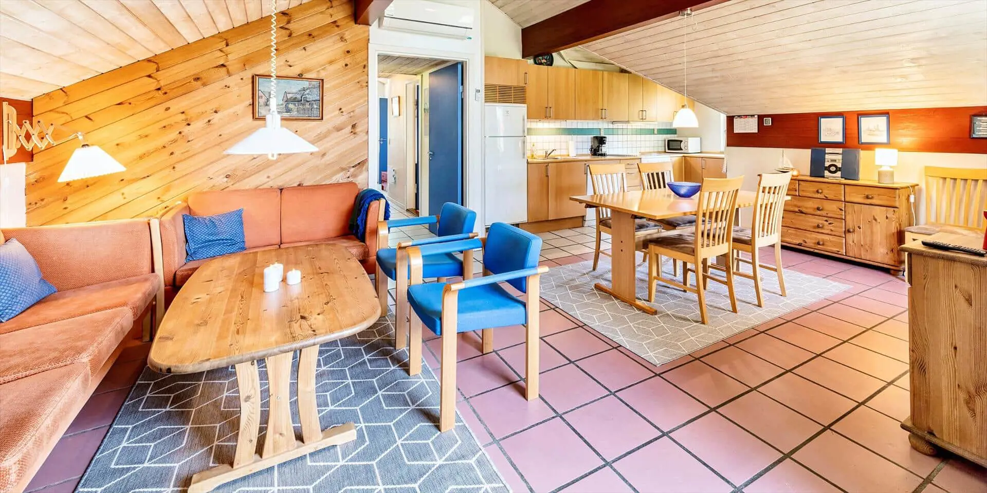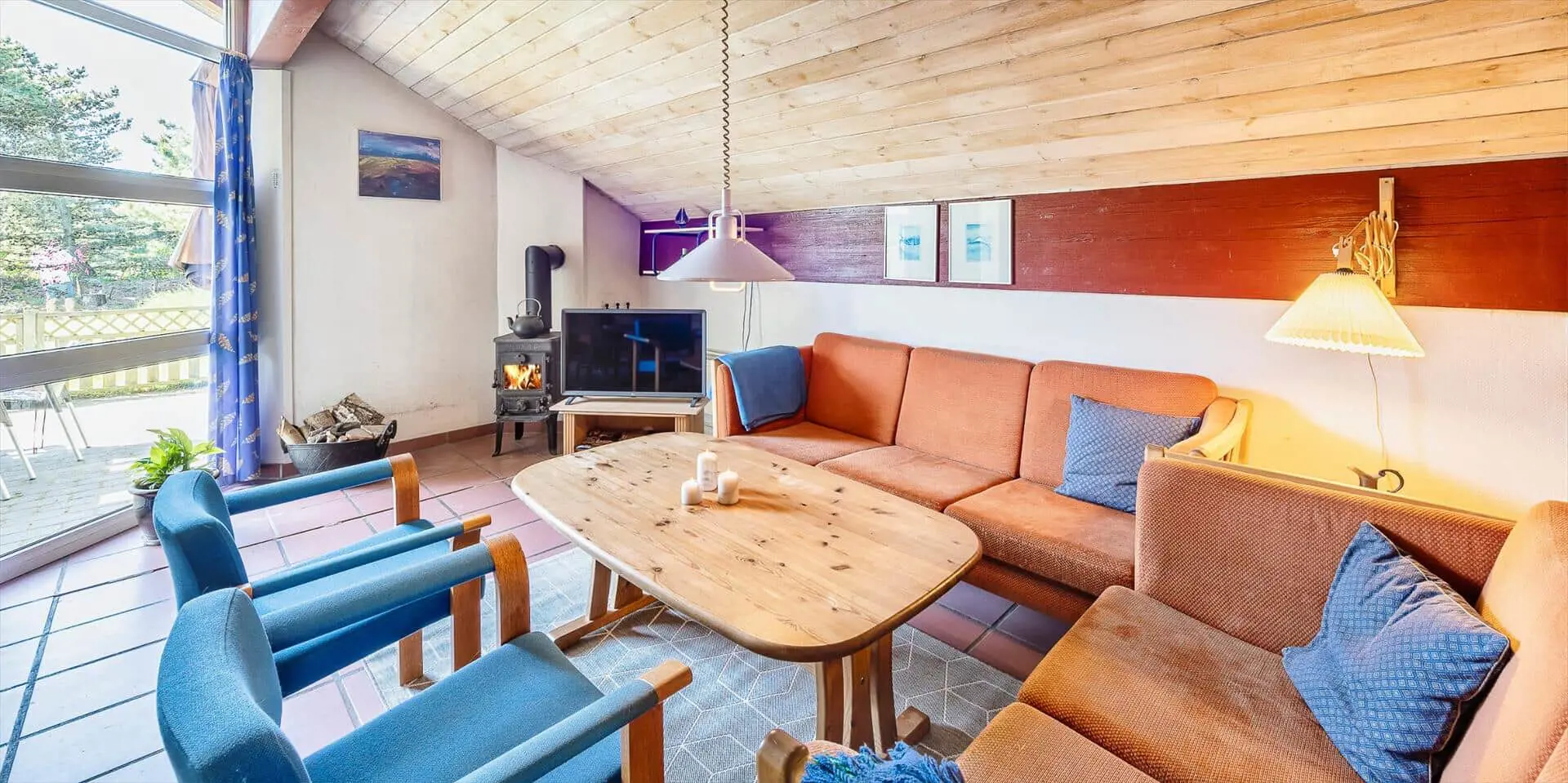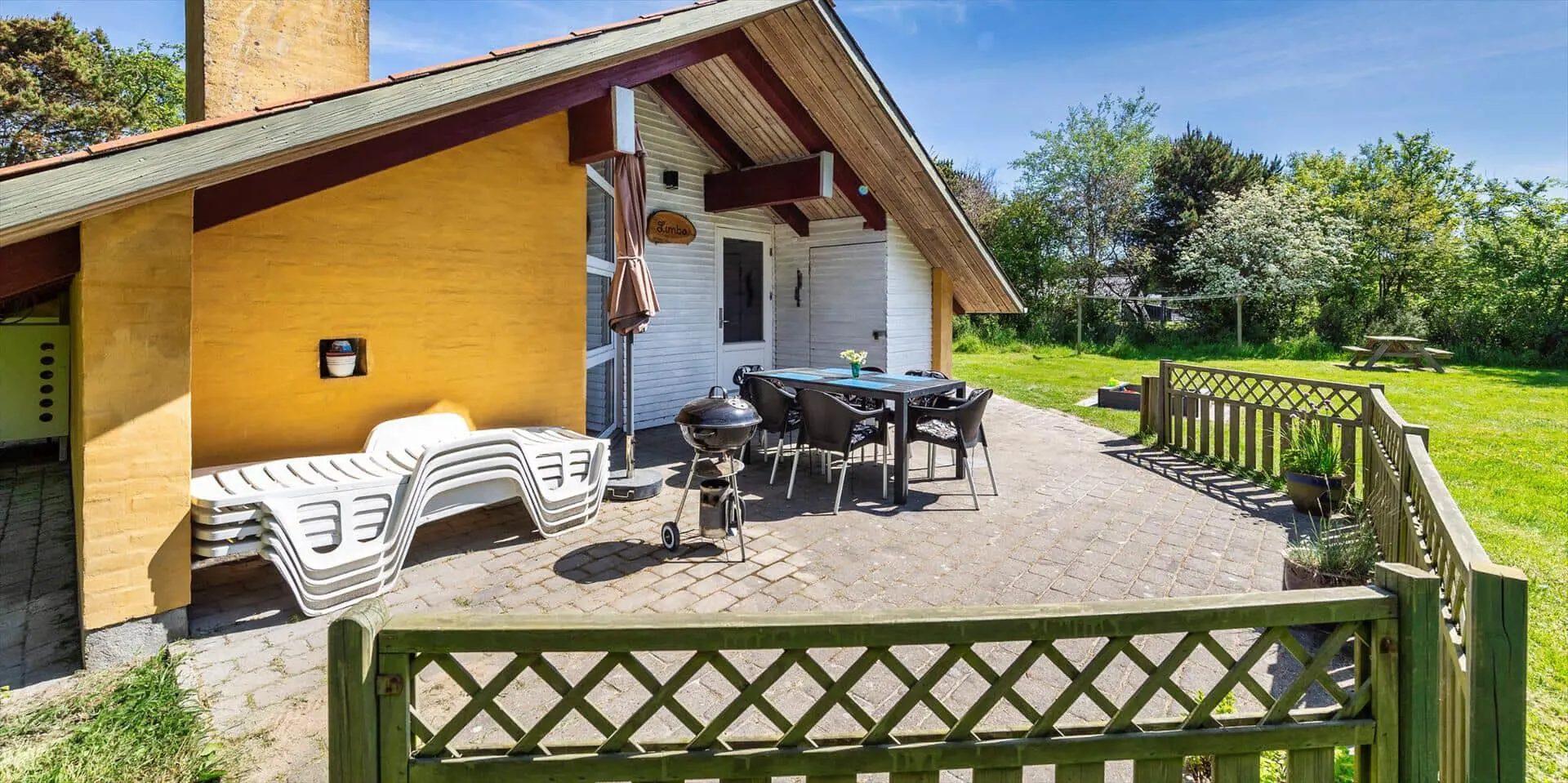 Modernes Ferienhaus für 6 Personen, etwa 1.000 Meter vom Strand entfernt, auf einem Naturgrundstück gelegen. Wohnzimmer mit Kaminofen und Fernseher. Das deutsche Fernsehprogramm empfangen Sie über Stofa, daher sind nur 5-8 deutsche Kanäle zu empfangen. Internetanschluss (W-Lan). Wohnküche mit Mikrowelle und Geschirrspülmaschine. Badezimmer mit Dusche, Whirlpool und Sauna. Toilette extra. 2 Schlafzimmer mit je 1 Doppelbett und 1 Schlafzimmer mit 1 Etagenbett und Zwischenboden. Warmepumpe, Terrasse, Schaukel und Sandkasten. Es ist 1 Haustier erlaubt. Das Rauchen ist nicht gestattet. Baujahr 1992, renoviert 1999.