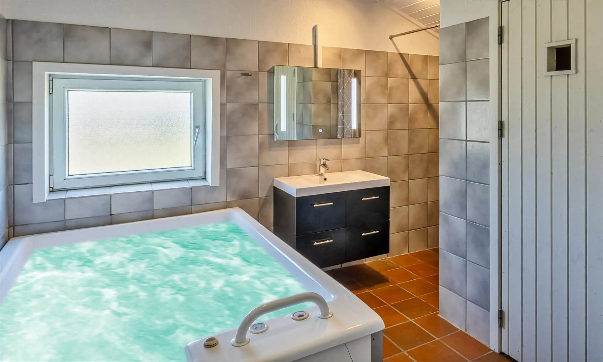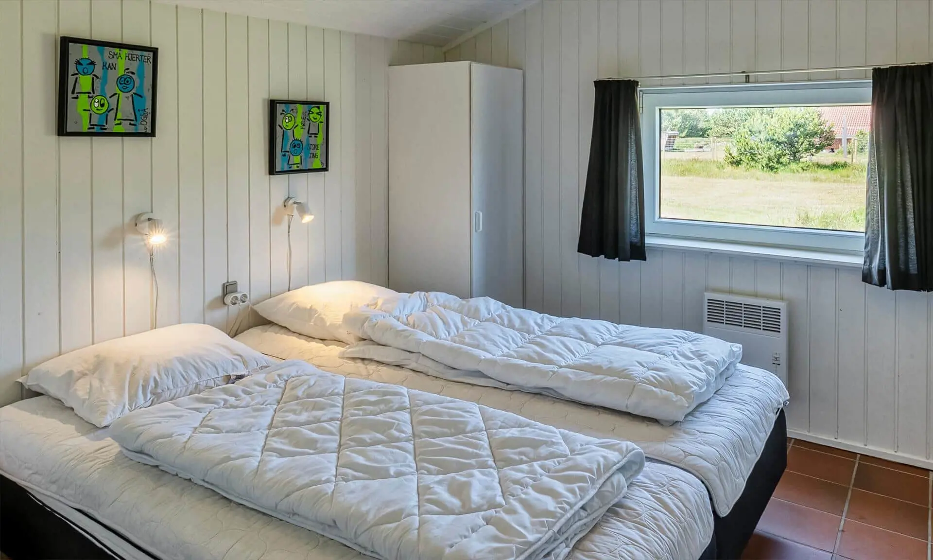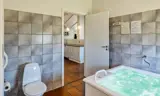 Das Haus verfügt über 4 gute Schlafzimmer: 2 mit Doppelbetten (DS + DS) und 2 mit jeweils zwei Einzelbetten (2S + 2S), ideal für Familien oder Freundesgruppen. Es gibt zwei Bäder mit Fußbodenheizung — eines mit Dusche, WC, Spa und Sauna, das andere mit WC und Dusche — sodass der Komfort auch bei mehreren Gästen hoch ist.