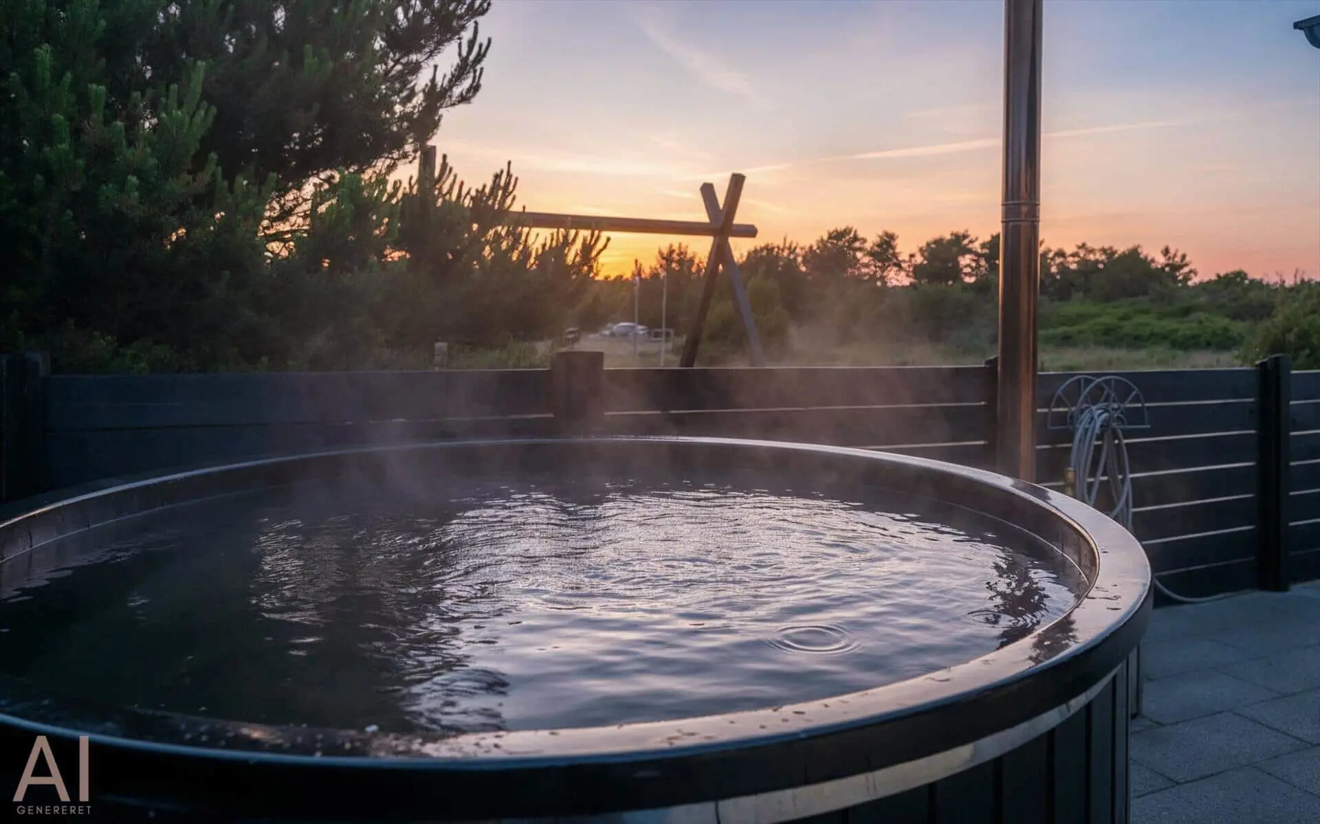 Draußen findest du eine schöne, geschützte Terrasse mit Zugang zu einem Wild‑Hot‑Tub, in dem ihr die Erlebnisse des Tages im warmen Wasser unter dem Sternenhimmel genießen könnt. Die große Rasenfläche bietet viel Platz zum Spielen und für Ballspiele, und für die Kleinen gibt es Schaukel und Sandkasten.
