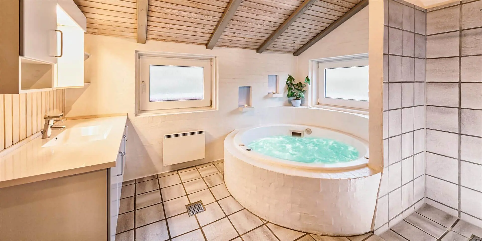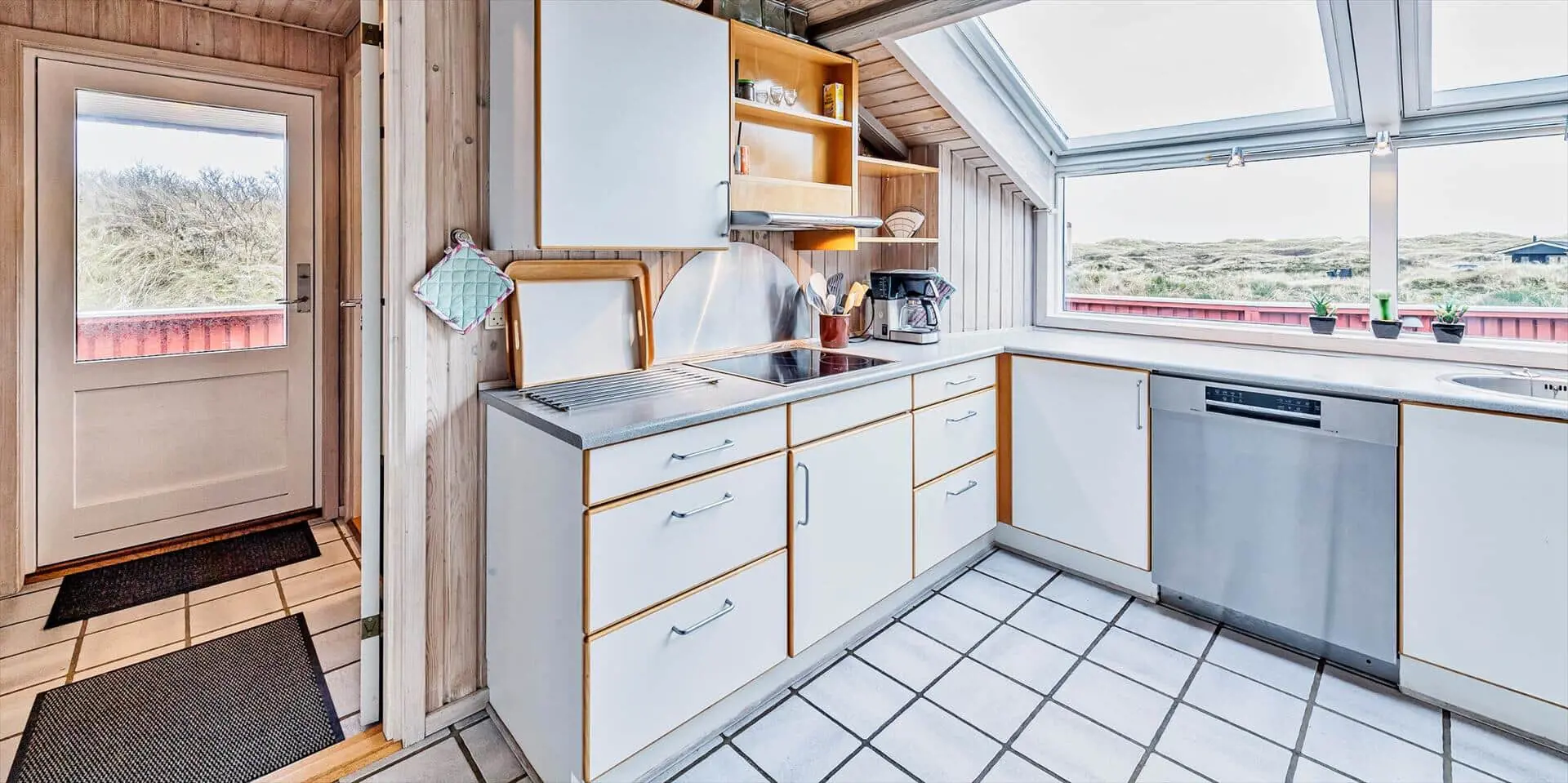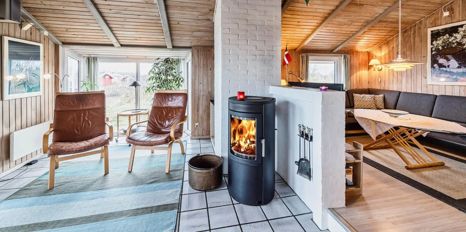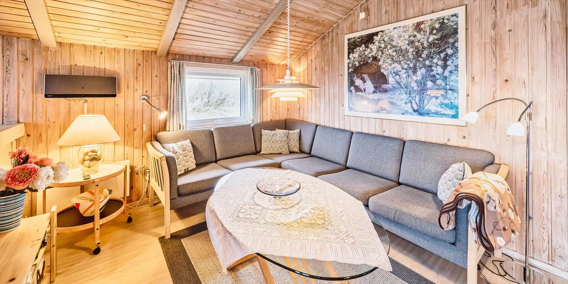 Schönes Ferienhaus auf einer Düne gelegen und in toller Umgebung. Über einen kleinen Treppenaufstieg gelangen Sie zum Ferienhaus. Das Ferienhaus ist für 8 Personen ausgestattet. Der Strand ist ca. 150 Meter vom Haus entfernt. Das Wohnzimmer ist gefliest und der Kamin ist in diesem Bereich aufgestellt. Das deutsche Fernsehprogramm empfangen Sie über eine Parabolantenne. Desweiteren gibt es Smart TV im Hause. Über eine kleine Stufe gelangen Sie in den Ess- und Küchenbereich. Die Küche verfügt über einen Herd mit Cerankochfeld, einem Backofen in Arbeitshöhe, einer Geschirrspülmaschine, einer Mikrowelle, und einer Kühl- und Gefrierkombination. Über dem Spülbecken befinden sich zwei Oberlichter. Von hier strahlt dann mehr Helligkeit in den Küchenbereich. Es gibt insgesamt zwei Bäder im Ferienhaus. Das kleine Gästebad verfügt über ein WC, ein Handwaschbecken und eine Dusche. Das große Badezimmer hat ein WC, ein Handwaschbecken, eine Dusche, eine Sauna und ein Standwasser-Whirlpool. Der Standwasser-Whirlpool steht ständig mit Wasser gefüllt und ist somit zu Ihrer Anreise sofort betriebsbereit. Es stehen insgesamt vier Schlafzimmer zur Verfügung. Zwei davon sind mit je einem Doppelbett ( 180 x 200), ein Schlafzimmer mit einem Doppelbett (140 x 200) und das Letzte mit zwei Einzelbetten ausgestattet. Eine Waschmaschine und ein Trockner sind in einem Hauswirtschaftsraum untergebracht. Das Ferienhaus verfügt über einen Internetanschluss (W-Lan). Des weiteren befindet sich eine Varmepumpe im Ferienhaus. Mit dieser Warmepumpe haben Sie die Möglichkeit die Stromkosten zu senken, da sie energiesparend ist. Der große Terrassenbereich ist geschlossen und eignet sich daher auch für Ihre Vierbeiner. Die können mal schnell raus und ein bisschen Luft schnappen, ohne das sie stiften gehen können und sie haben natürlich auch genügend Platz für Ihr Sonnenbad. Es sind max. zwei Haustiere erlaubt. Vom Terrassenbereich haben Sie ebenfalls einen tollen Panoramablick. Das Rauchen im Ferienhaus ist nicht erlaubt. Auf einer weiteren kleinen Düne ist eine kleine Sitzgruppe aufgestellt. Diesen Sitzplatz erreichen Sie über einen Treppenaufgang. Desweiteren steht zusätzlich ein Gartenpavillon auf dem Grundstück, dieser kann mit einer Elektroheizung beheizt werden. Hübsche Rattanmöbel schücken diesen Pavillon und der Fußboden ist mit Fliesen ausgelegt. Auch von hier haben Sie einen wundervollen Panoramablick auf das Ferienhausgebiet.Das Ferienhaus ist 1992 erbaut worden.