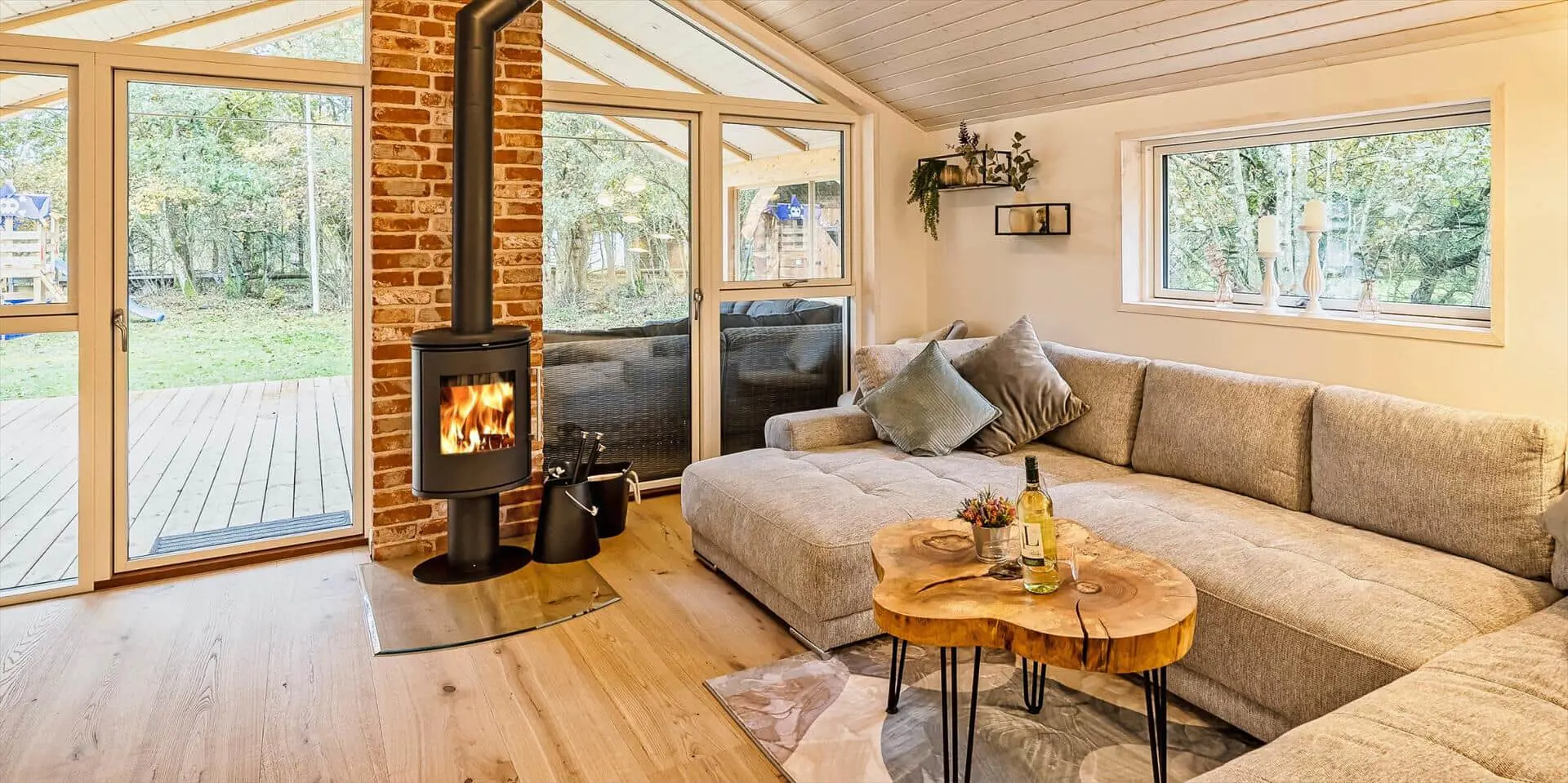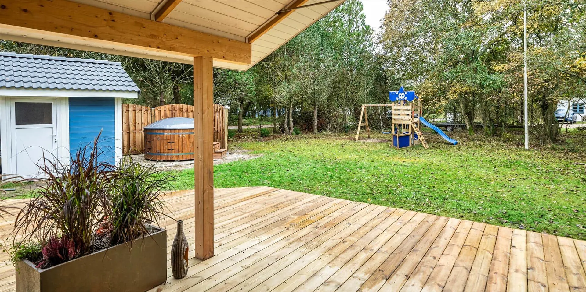 Diese Unterkunft hat eine Fläche von 76 m² und befindet sich auf einem 1.322 m² Grundstück, u.a. mit Schaukel und Sandkasten.