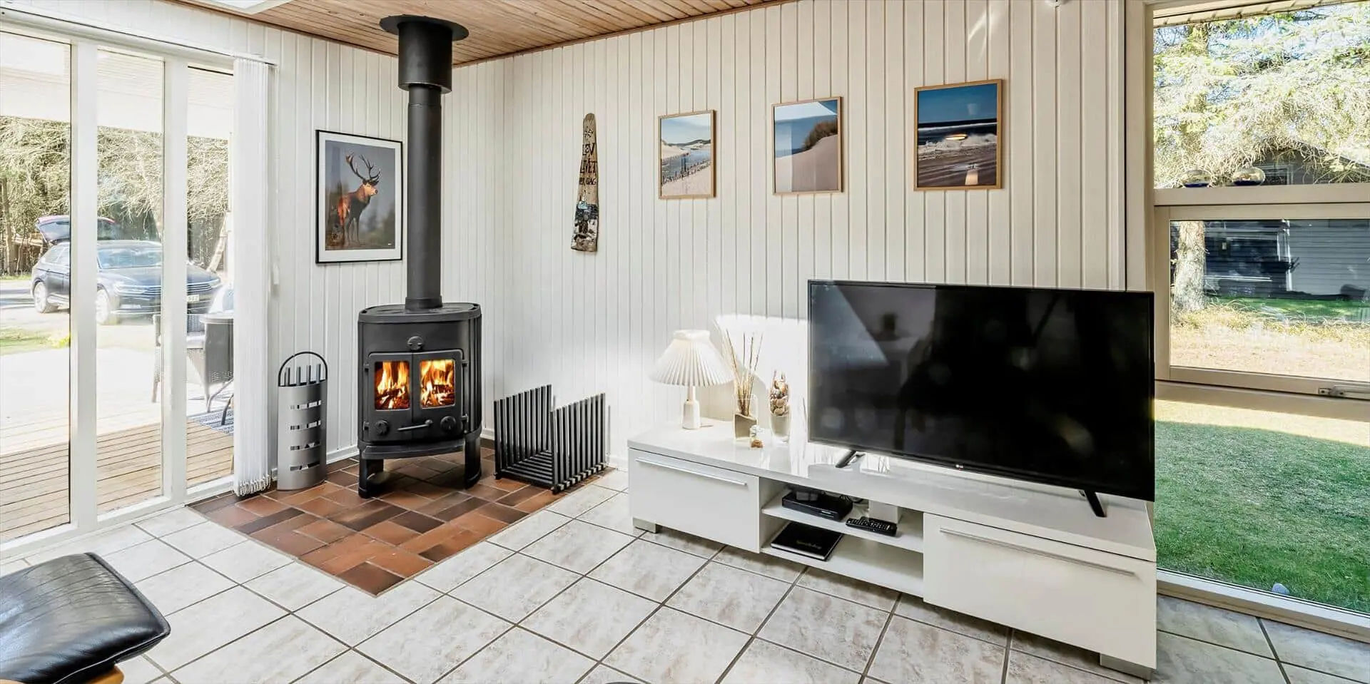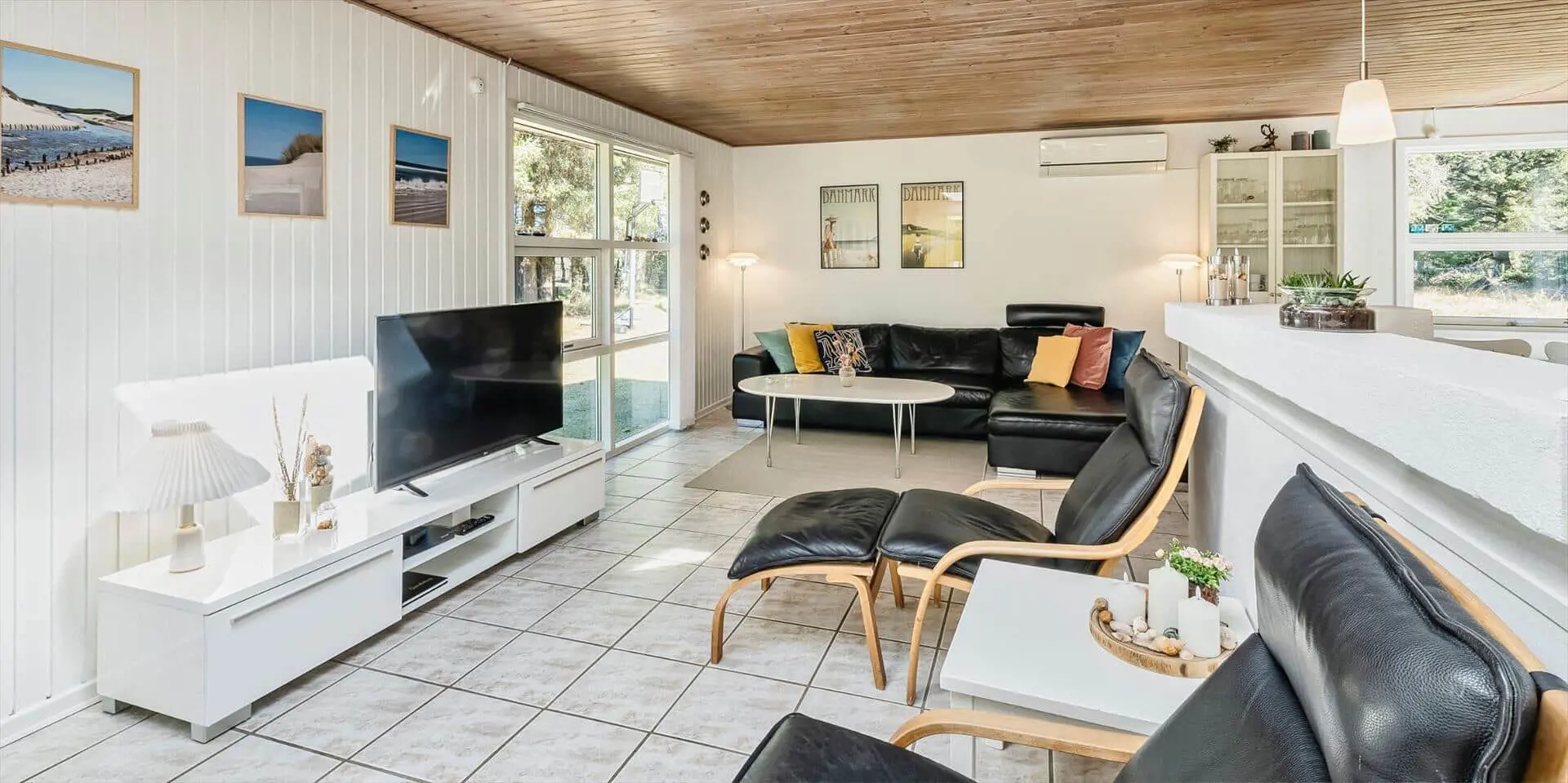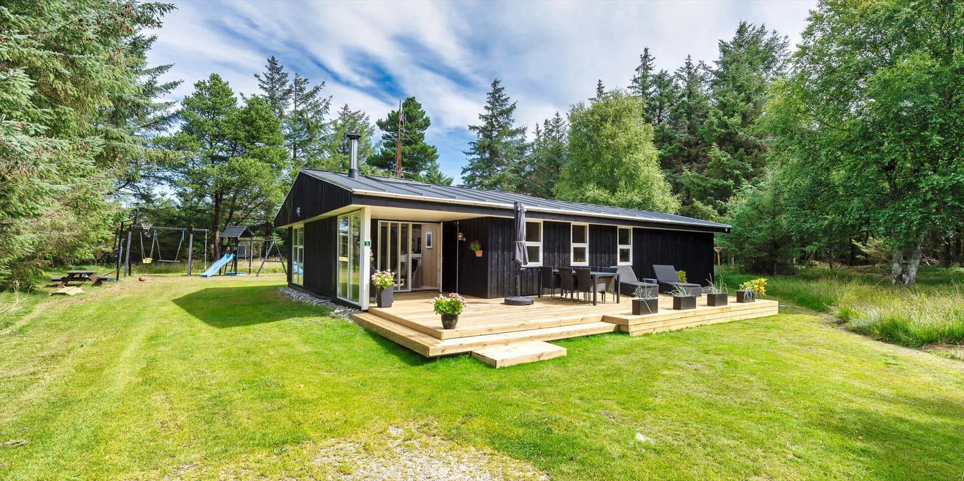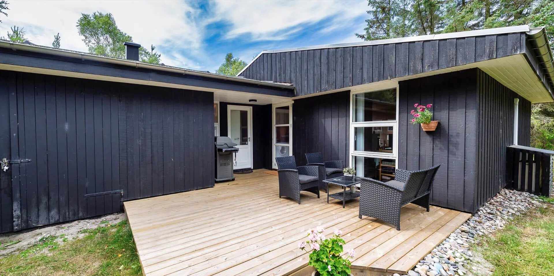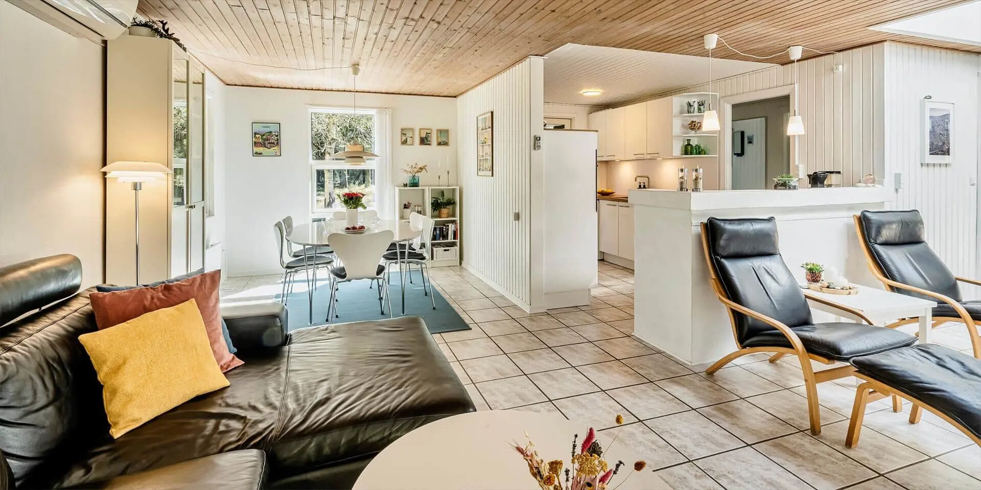 Schönes und gemütliches Ferienhaus mit Namen Kibbik auf einem nicht einsehbaren Grundstück gelegen. Das Ferienhaus ist für 6 Personen ausgestattet. Der Strand ist ca. 2 Km vom Haus entfernt. Der Wohnbereich ist mit dem Essbereich und der Küche offen gehalten. Dieser komplette Bereich ist gefliest. Der Eingangsbereich hat ein Oberlicht und ist daher sehr hell und freundlich. Desweiteren ist der Eingangsbereich von außen überdacht. Der im Wohnbereich aufgestellte Kamin spendet eine wohlige Wärme. Es befindet sich eine Warmepumpe im Ferienhaus. Mit dieser Warmepumpe haben sie die Möglichkeit die Stromkosten zu senken, denn die Warmepumpe ist energiesparend. Das deutsche Fernsehprogramm empfangen Sie über eine Parabolantenne sowie Stofa. Der offene moderne und neue Küchenbereich verfügt über einen Herd mit Cerankochfeld, einem Backofen in Arbeitshöhe, einer Geschirrspülmaschine, einer Mikrowelle und einer Kühl- und Gefrierkombination. Ausgang zum terrasse von den Küchenbereich. Das schöne neue Badezimmer ist mit einem WC, einem Handwaschbecken, einer Dusche und einer Sauna ausgestattet. Im Ferienhaus befindet sich eine kombinierte Waschmaschine/Trockner, die von den Gästen genutzt werden darf. Den Gästen stehen drei Schlafzimmer zur Verfügung. Ein Schlafzimmer hat ein Doppelbett, ein Schlafzimmer zwei Einzelbetten und das Dritte hat ein Ausziehbett. Das Ferienhaus verfügt über einen Internetanschluss (W-Lan 1000/1000 Mbit). Eine flotte Holzterrasse steht Ihnen am Ferienhaus auch zur Verfügung. Das Ferienhaus verfügt über ein Gas Grill, das Sie benutzen dürfen. Der Grill muss nach Gebrauch wieder gereinigt zurück gestellt werden. Auf dem Grundstück stehen steht ein Schelter. Das Rauchen im Ferienhaus ist nicht erlaubt sowie Katzen auch nicht. Es sind max. 1 Haustier erlaubt. Das Ferienhaus ist 1972 erbaut worden. 2022 teilweise renoviert.