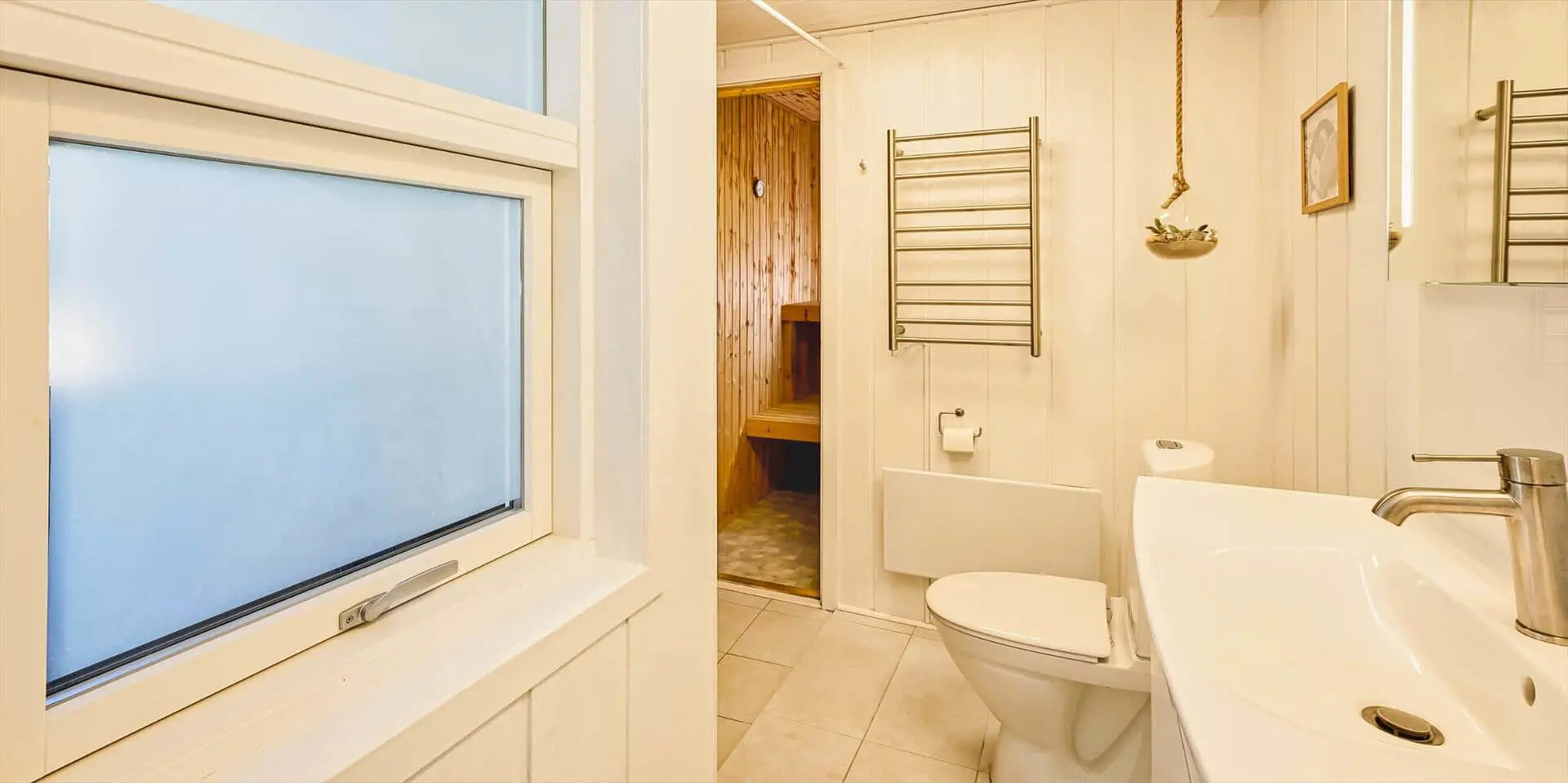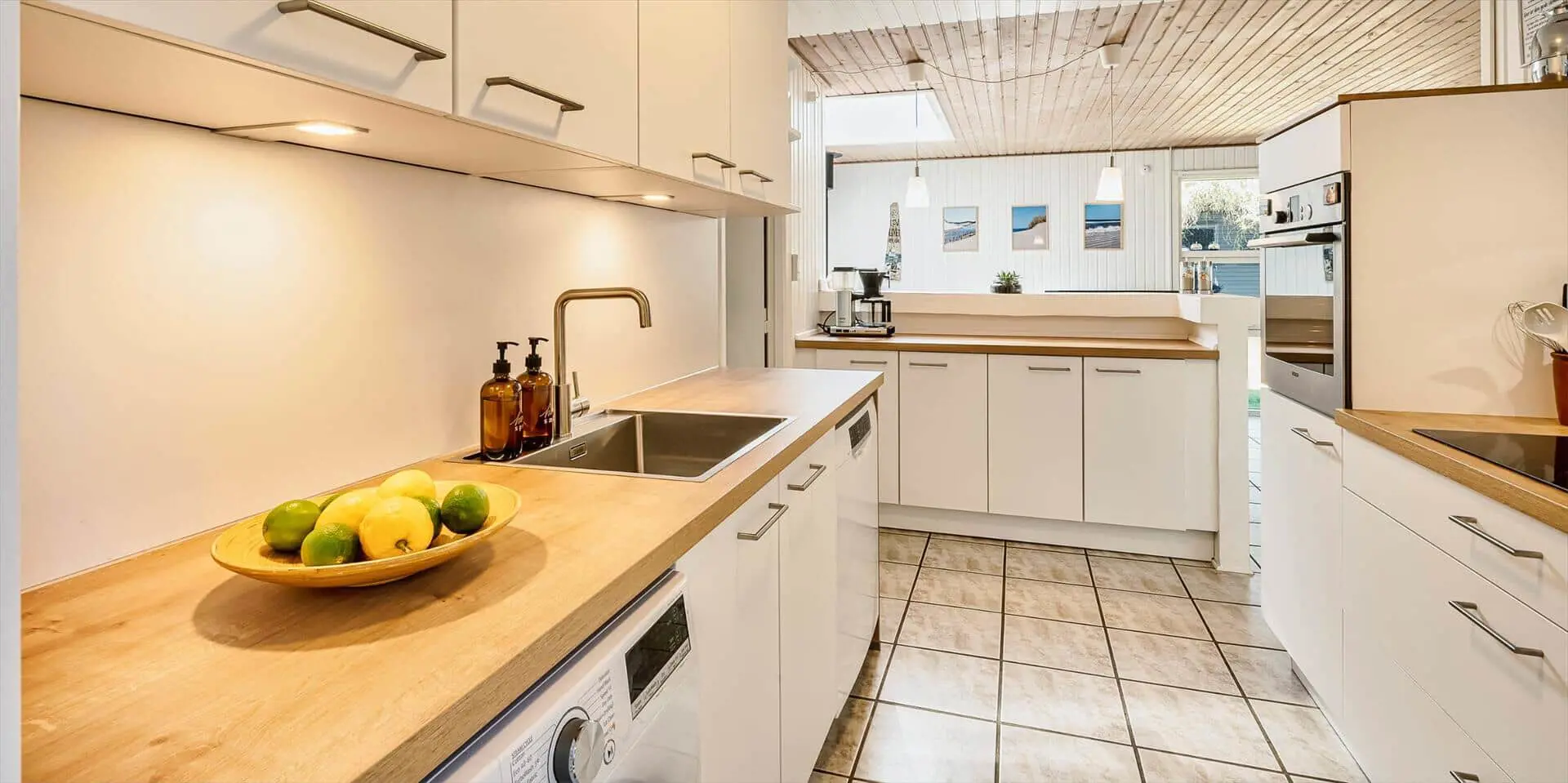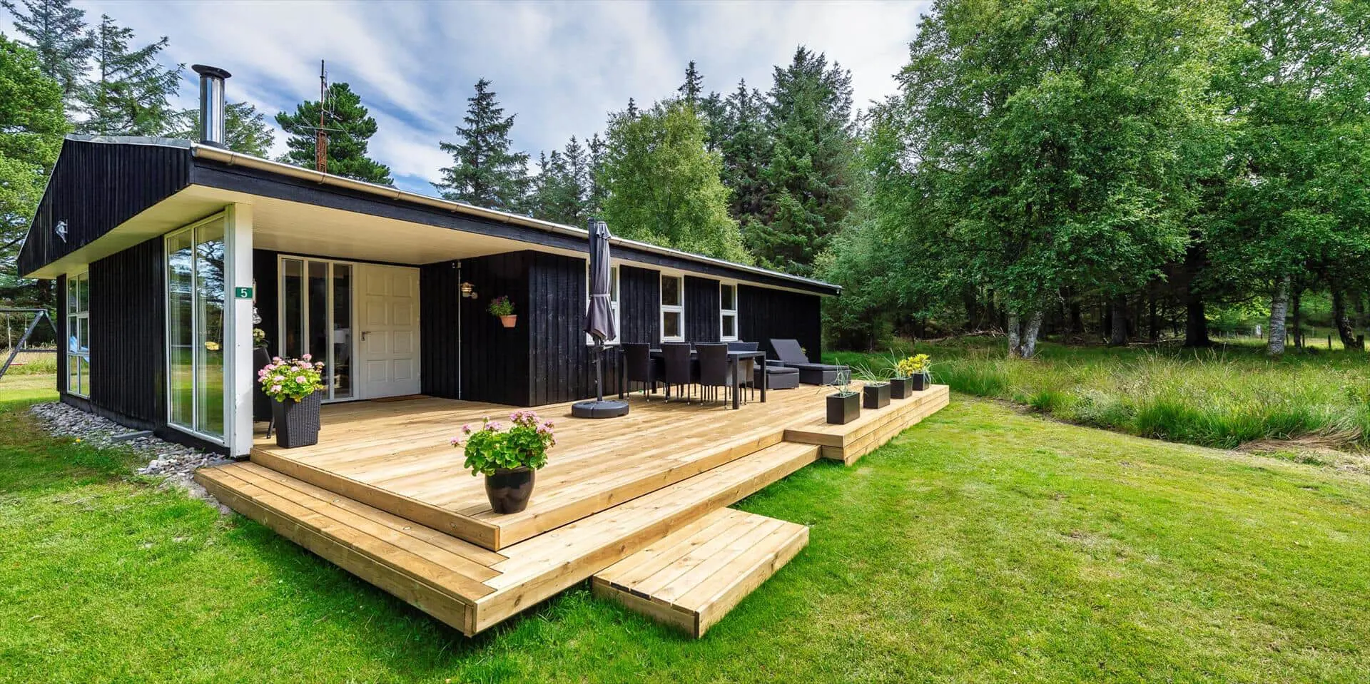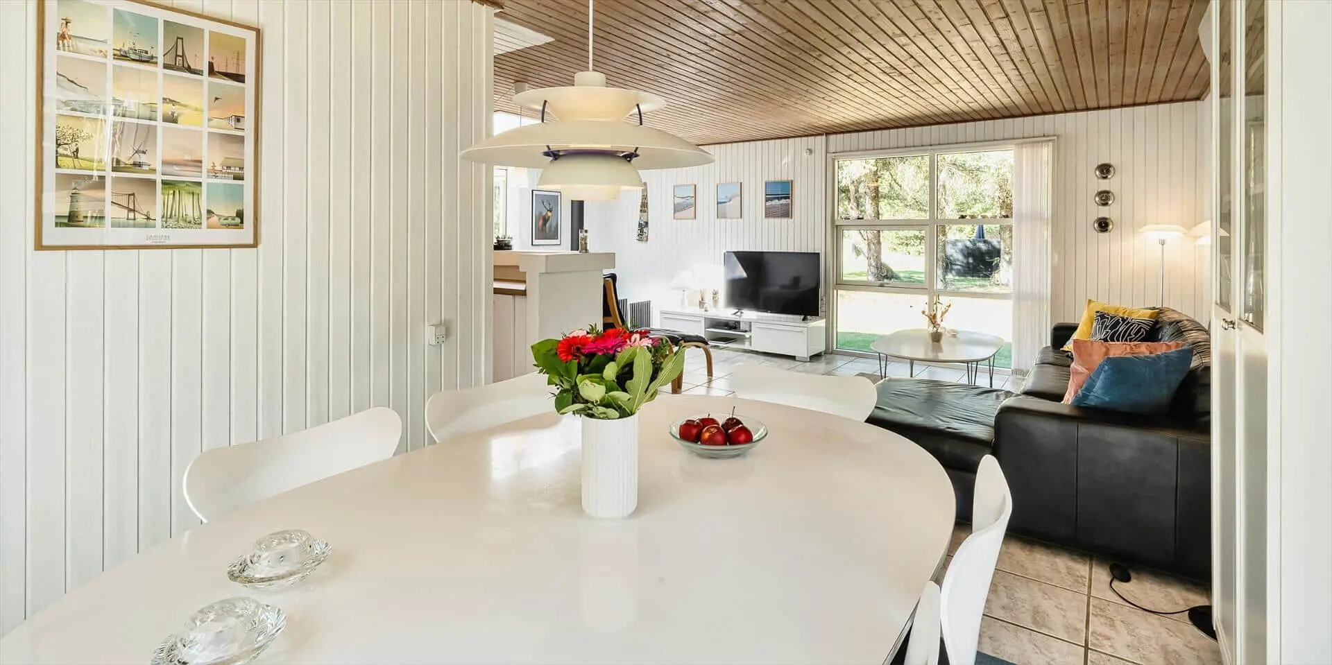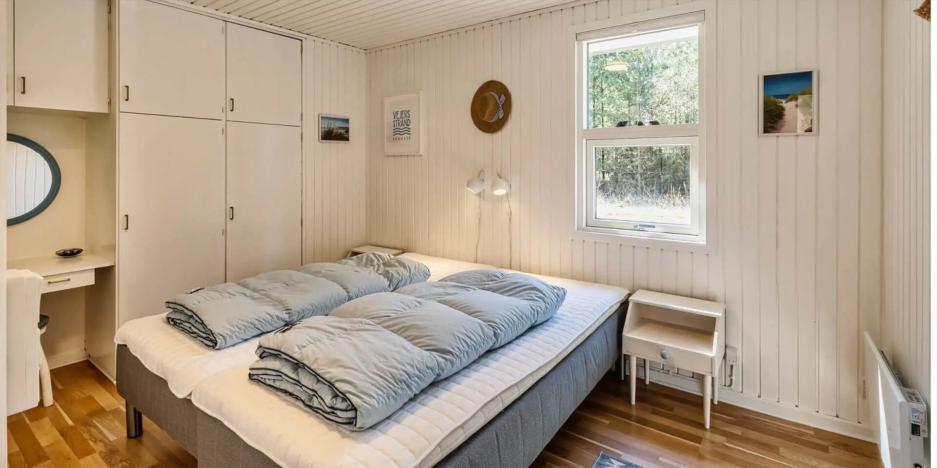 Schönes und gemütliches Ferienhaus mit Namen Kibbik auf einem nicht einsehbaren Grundstück gelegen. Das Ferienhaus ist für 6 Personen ausgestattet. Der Strand ist ca. 2 Km vom Haus entfernt. Der Wohnbereich ist mit dem Essbereich und der Küche offen gehalten. Dieser komplette Bereich ist gefliest. Der Eingangsbereich hat ein Oberlicht und ist daher sehr hell und freundlich. Desweiteren ist der Eingangsbereich von außen überdacht. Der im Wohnbereich aufgestellte Kamin spendet eine wohlige Wärme. Es befindet sich eine Warmepumpe im Ferienhaus. Mit dieser Warmepumpe haben sie die Möglichkeit die Stromkosten zu senken, denn die Warmepumpe ist energiesparend. Das deutsche Fernsehprogramm empfangen Sie über eine Parabolantenne sowie Stofa. Der offene moderne und neue Küchenbereich verfügt über einen Herd mit Cerankochfeld, einem Backofen in Arbeitshöhe, einer Geschirrspülmaschine, einer Mikrowelle und einer Kühl- und Gefrierkombination. Ausgang zum terrasse von den Küchenbereich. Das schöne neue Badezimmer ist mit einem WC, einem Handwaschbecken, einer Dusche und einer Sauna ausgestattet. Im Ferienhaus befindet sich eine kombinierte Waschmaschine/Trockner, die von den Gästen genutzt werden darf. Den Gästen stehen drei Schlafzimmer zur Verfügung. Ein Schlafzimmer hat ein Doppelbett, ein Schlafzimmer zwei Einzelbetten und das Dritte hat ein Ausziehbett. Das Ferienhaus verfügt über einen Internetanschluss (W-Lan 1000/1000 Mbit). Eine flotte Holzterrasse steht Ihnen am Ferienhaus auch zur Verfügung. Das Ferienhaus verfügt über ein Gas Grill, das Sie benutzen dürfen. Der Grill muss nach Gebrauch wieder gereinigt zurück gestellt werden. Auf dem Grundstück stehen steht ein Schelter. Das Rauchen im Ferienhaus ist nicht erlaubt sowie Katzen auch nicht. Es sind max. 1 Haustier erlaubt. Das Ferienhaus ist 1972 erbaut worden. 2022 teilweise renoviert.