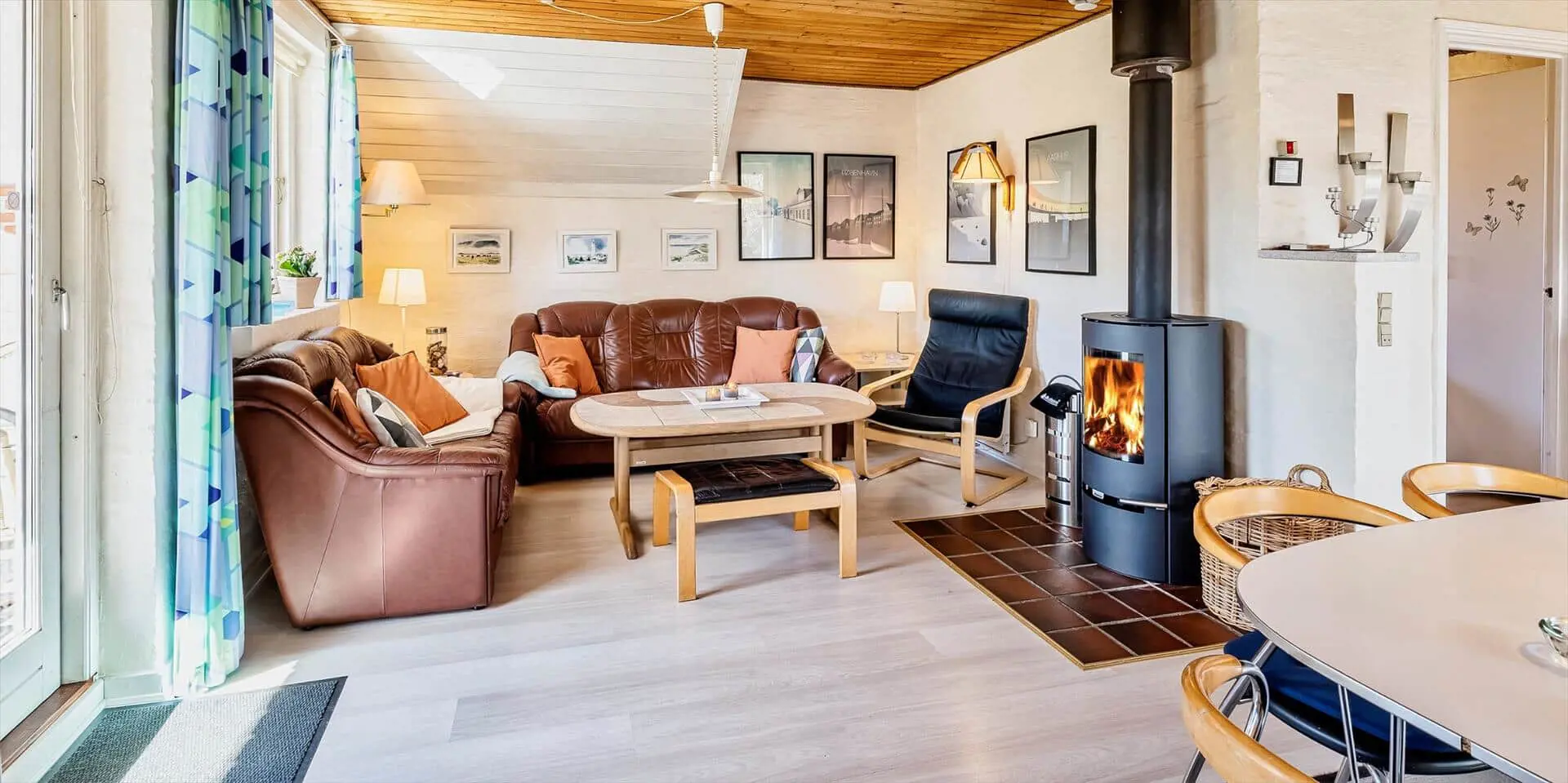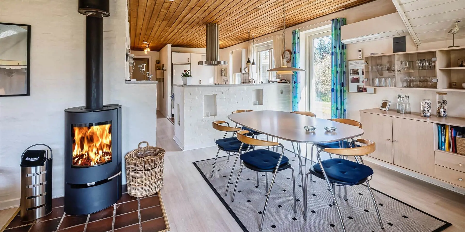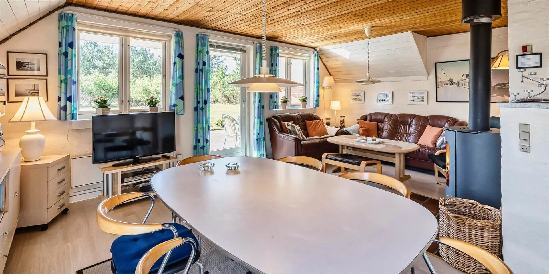Geschmackvolles Ferienhaus für 6 Personen, rund 2.000 Meter vom Strand entfernt, auf großem Grundstück gelegen. Wohnzimmer mit Kaminofen, Sat-Tv, Chromecast und DVD-Spieler. Wohnküche mit Geschirrspülmaschine und Mikrowelle. 2 Schlafzimmer mit je 1 Doppelbett und 1 Schlafzimmer mit 2 Einzelbetten. Badezimmer mit Du/Wc und Sauna. Waschmaschine und Trockner. Warmepumpe. Internetanschluss (W-Lan). Terrasse und Carport. Sandkasten und Schaukel. Es sind max. drei Haustiere erlaubt. Das Rauchen ist nicht gestattet. Baujahr 1986.