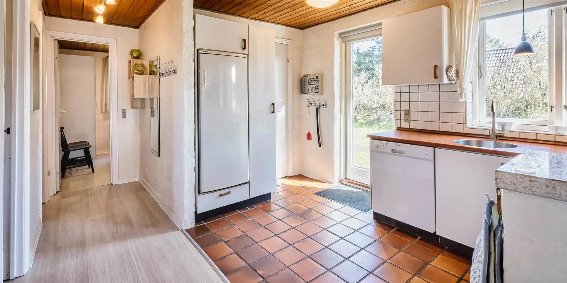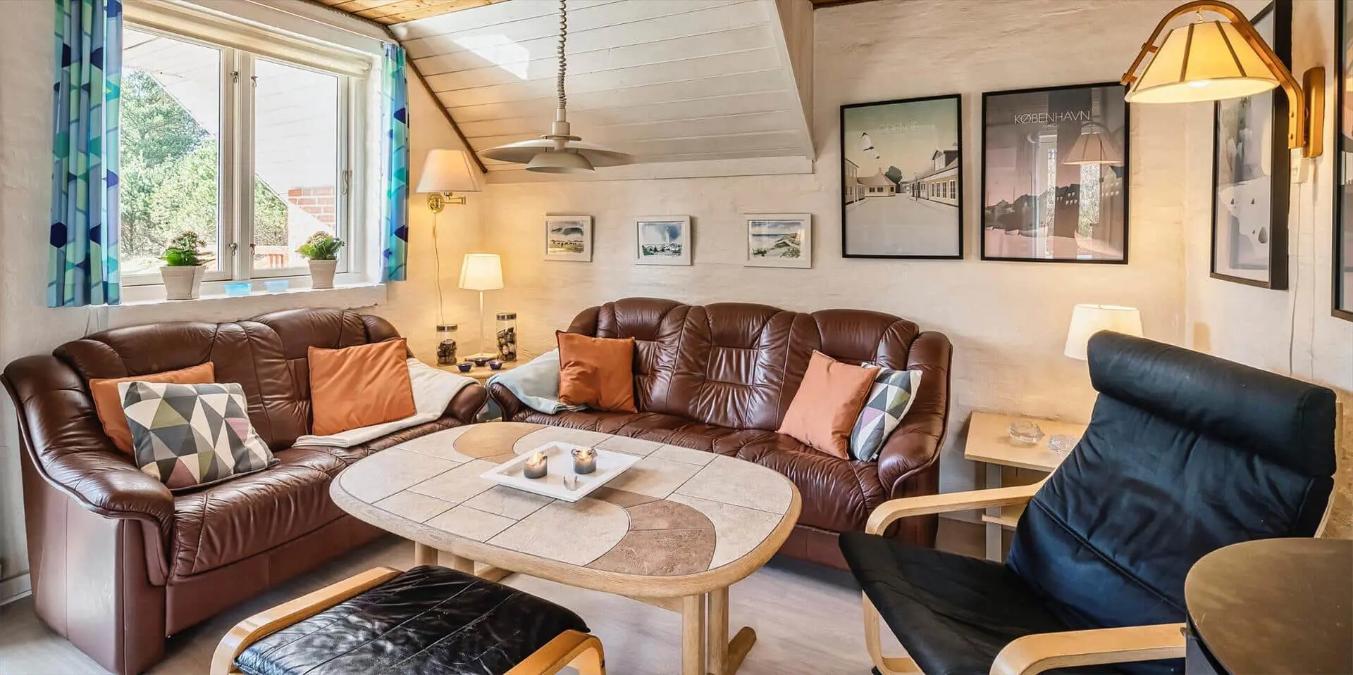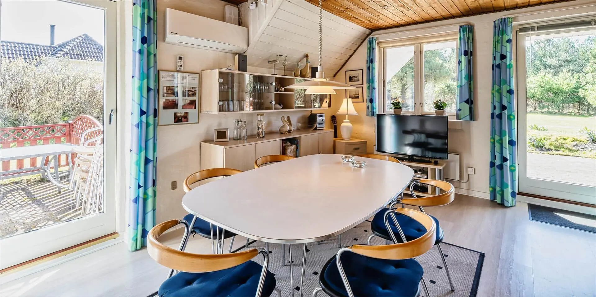 Geschmackvolles Ferienhaus für 6 Personen, rund 2.000 Meter vom Strand entfernt, auf großem Grundstück gelegen. Wohnzimmer mit Kaminofen, Sat-Tv, Chromecast und DVD-Spieler. Wohnküche mit Geschirrspülmaschine und Mikrowelle. 2 Schlafzimmer mit je 1 Doppelbett und 1 Schlafzimmer mit 2 Einzelbetten. Badezimmer mit Du/Wc und Sauna. Waschmaschine und Trockner. Warmepumpe. Internetanschluss (W-Lan). Terrasse und Carport. Sandkasten und Schaukel. Es sind max. drei Haustiere erlaubt. Das Rauchen ist nicht gestattet. Baujahr 1986.