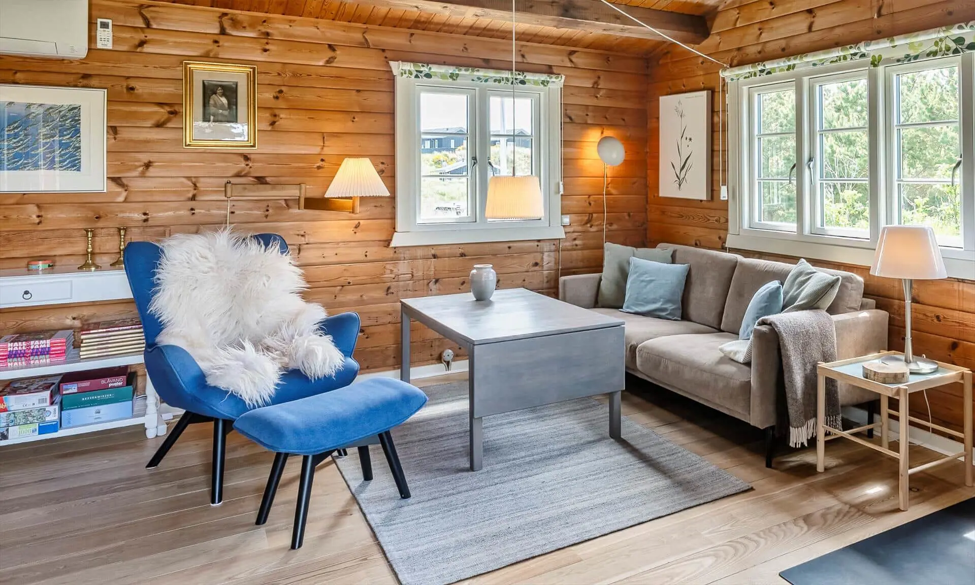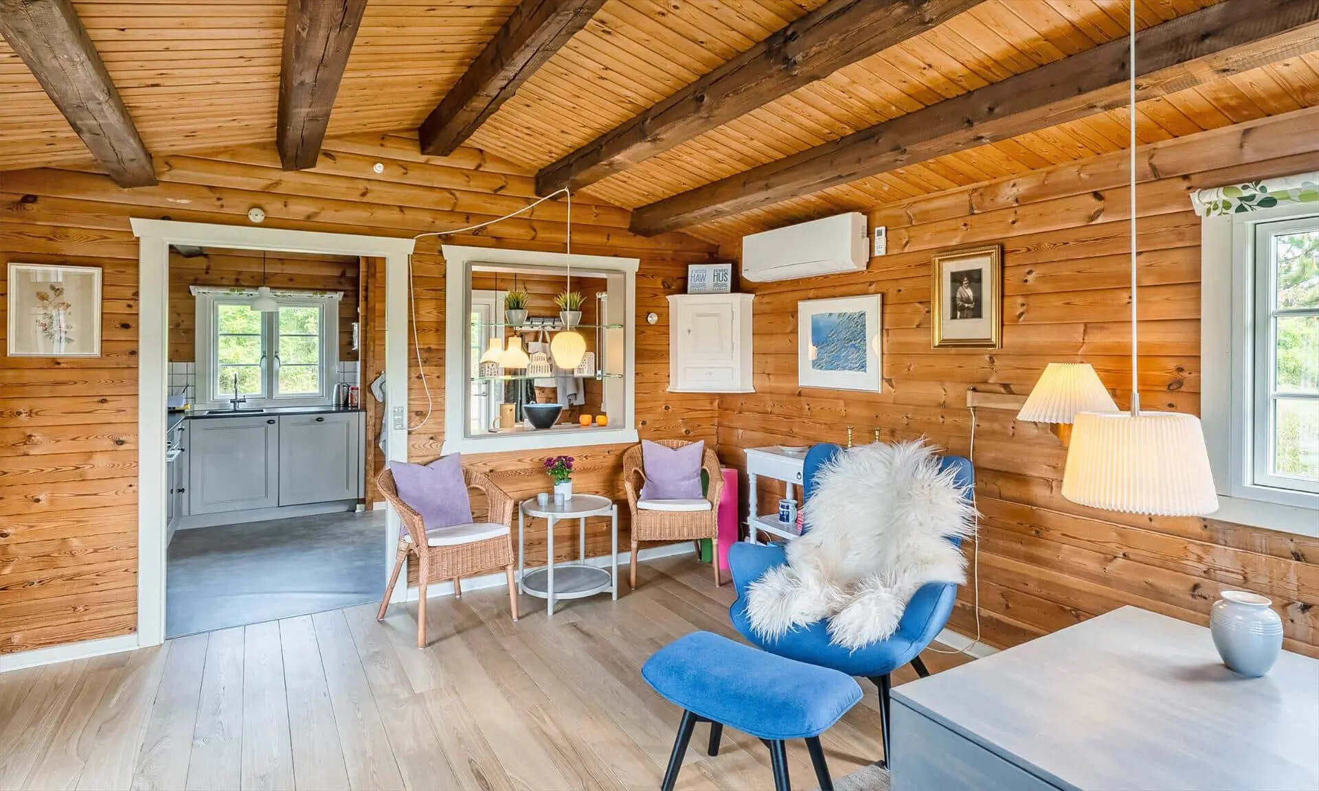 Dieses Blockhaus befindet sich auf einem großen, hügeligen und landschaftlich reizvollen Grundstück. Dieses gemütliche Blockhaus bietet Platz für 4 Personen. Der Strand ist ca. 500 Meter vom Ferienhaus entfernt. Die Wohnfläche beträgt 54 qm. Das Wohnzimmer mit einer gemütlichen Sofaecke ausgestattet verfügt über einen Kamin und direktem Blick auf die Terrasse hat. Ein Radio, ein TV-Gerät stehen den Gästen bereit. Deutsche Programme können über die Yousee App empfangen werden, das sind allerdings nur die Programme, ARD, ZDF, NDR und RTLDie dänischen Programme können über die Yousee App und Google Chrome Cast angesehen werden. Das Wohnzimmer verfügt zusätzlich über eine Wärmepumpe. Mit dieser Wärmepumpe haben Sie die Möglichkeit die Stromkosten zu senden, dass sie energiesparend ist. Die Küche ist modern und verfügt über einen Herd mit Cerankochfeld, einer Geschirrspülmaschine und einer Kühl- und Gefrierkombination. Die moderne Landhausküche ist im Jagr 2019 aufgebaut worden. Des Weiteren befindet sich hier in der Küche auch der Speiseplatz. Vom Wohnzimmer aus betreten Sie einen Korridor mit Zugang zu 2 Schlafzimmern mit je 2 Einzelbetten (DB + 2B). Das Badezimmer ist mit einer Dusche, einem WC und einem Handwaschbecken ausgestattet. Im ganzen Haus sind Holzböden verlegt, nur das Badezimmer ist gefliest. Freche, sonnige und gefliester Terrassenbereich laden zum Verweilen ein. Die Terrasse ist teilweise geschlossen. Das Rauchen im Hause ist verboten. 1 kleiner Hund ist erlaubt mit einer maximale Rückenhöhe von 30 cm. Das Ferienhaus verfügt über W-Lan (200/200 Mbit). Das Ferienhaus wurde im Jahr 1976 erbaut und laufend gewartet und renoviert
