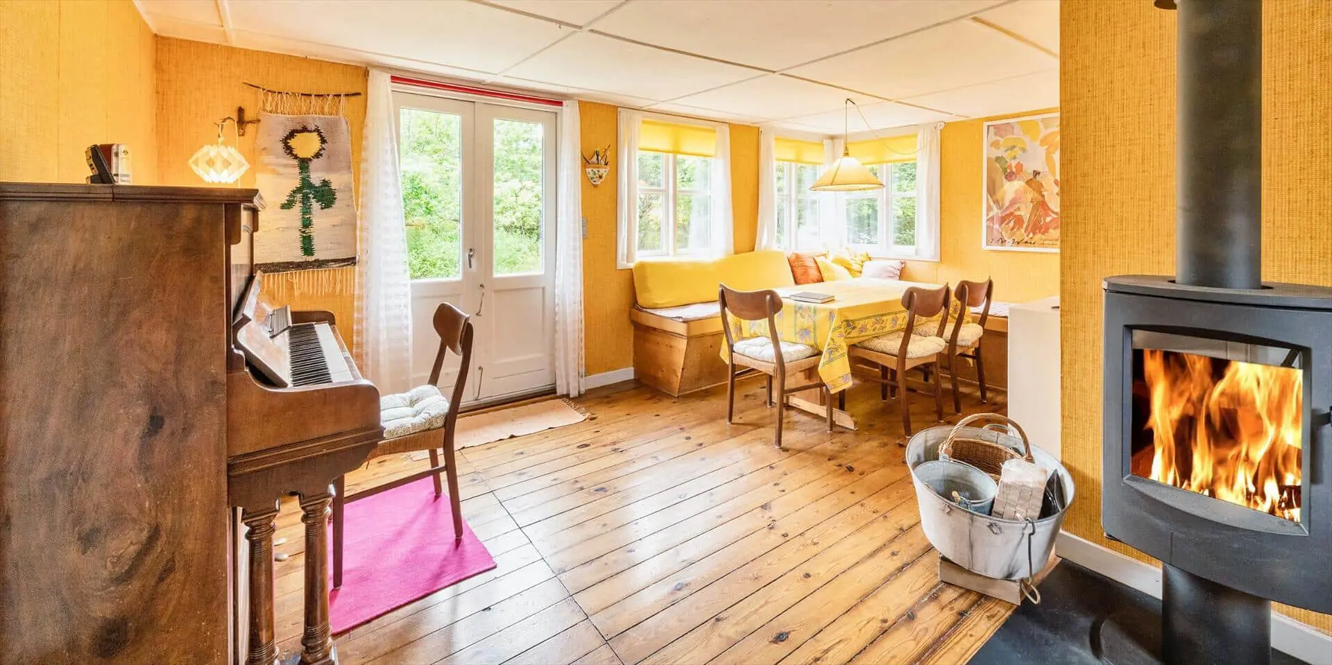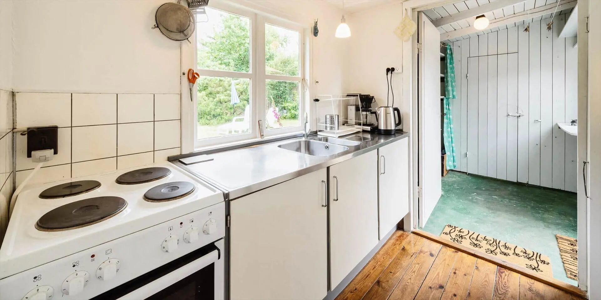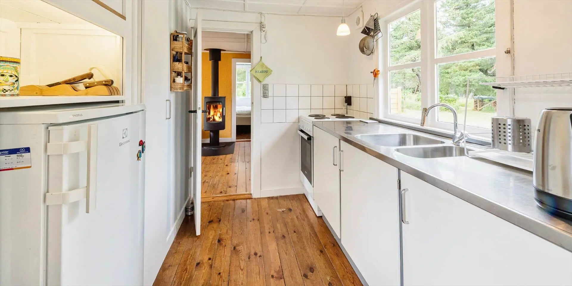 Das Ferienhaus trägt den Namen 'Solsikke' und ist für naturverbundene Gäste gedacht, da es in der Ausstattung primitiv und sehr einfach gehalten ist. Das Naturgrundstück ist ca. 2700 qm gross und bietet Ihnen gelegentlich ein nichteinsehbares Grundstück durch die grosszügige Bepflanzung von Bäumen und Büschen. Es liegt am Ende einer Sackgasse. Der Strand ist ca. 2 Km vom Ferienhaus entfernt. Das ganze Ferienhaus, ausser dem Bad und dem Eingangsbereich, ist mit einem Holzfussboden ausgestattet. Im Wohnbereich steht eine Ecktischgruppe mit einem alten Holztisch, ein grosses Klavier, interessant für Musiker, denn das Klavier ist funktionstücktig und einem Kamin. Das Ferienhaus hat kein Fernsehgerät, aber es verfügt über einen Internetanschluss (W-Lan 500/500 Mbit und SafeSurf). Der Kamin ist die Wärmeversorgung im Ferienhaus. Es gibt zwei kleine Schlafbereiche: DB + 3B - mit jeweils einem ¾ Dobbelbett. Ein von die Doppelbetten hat eine zusätzliche Länge von 220 cm. In dem einem Schlafzimmer befindet siche auch zusätzlich ein Etagenbett. Vom Eingangsbereich, gelangen Sie zur linken Seite in die Durchgangsküche. Der Küchenbereich verfügt über einen Herd mit Backofen und einem Kochfeld mit Platten und einem Kühlschrank, der ein kleines Gefrierfach enthält. Eine Kaffemaschine ist auch vorhanden, allerdings gibts hier im Küchenbereich kein warmes Wasser. Zur rechten Seite des Eingangsberiches kommen Sie in das Badezimmer. Badezimmer mit Dusche und Eingangsbereich wurde 2023 renoviert. Die Heizkörper sind elektrische Ölheizkörper. Angrenzend an dem Naturgrundstück haben Sie zwei Zugänge zu dem Fahrrad- und Fussweg von Vejers Strand nach Grærup Strand. Hier fahren keine Autos. Es ist nur ein Wanderweg für Fahrräder und Fussgänger, ideal um die Natur- und Tierwelt auf Ihrem Spaziergang zu beobachten. Auf dem Naturgrundstück befindet sich ein kleiner Schuppen (der ist privat) aber, der einen überdachten Vorbau hat. Hier können Sie geschützt die Sonne und die Ruhe geniessen. Einfach Erholung pur. Der Holzofen dient als Wärmequelle im Ferienhaus, ergänzt durch einen elektrischen Ölradiator. Das Badezimmer mit Dusche und Hauswirtschaftsraum wurden im Jahr 2023 renoviert und mit Luftsolarkollektoren ausgestattet. Es sind keine Haustiere erlaubt. Es stehen Ihnen 2 Parkplätze am Anfang des Grundstückes zur Verfügung. Beim Eingangsbereich befindet sich ein kleiner Terrassenbereich, der auch etwas geschützt durch einen Holzzaun ist. Das Ferienhaus ist 1960 erbaut worden und hat immernoch den Standdart aus diesem Jahr.