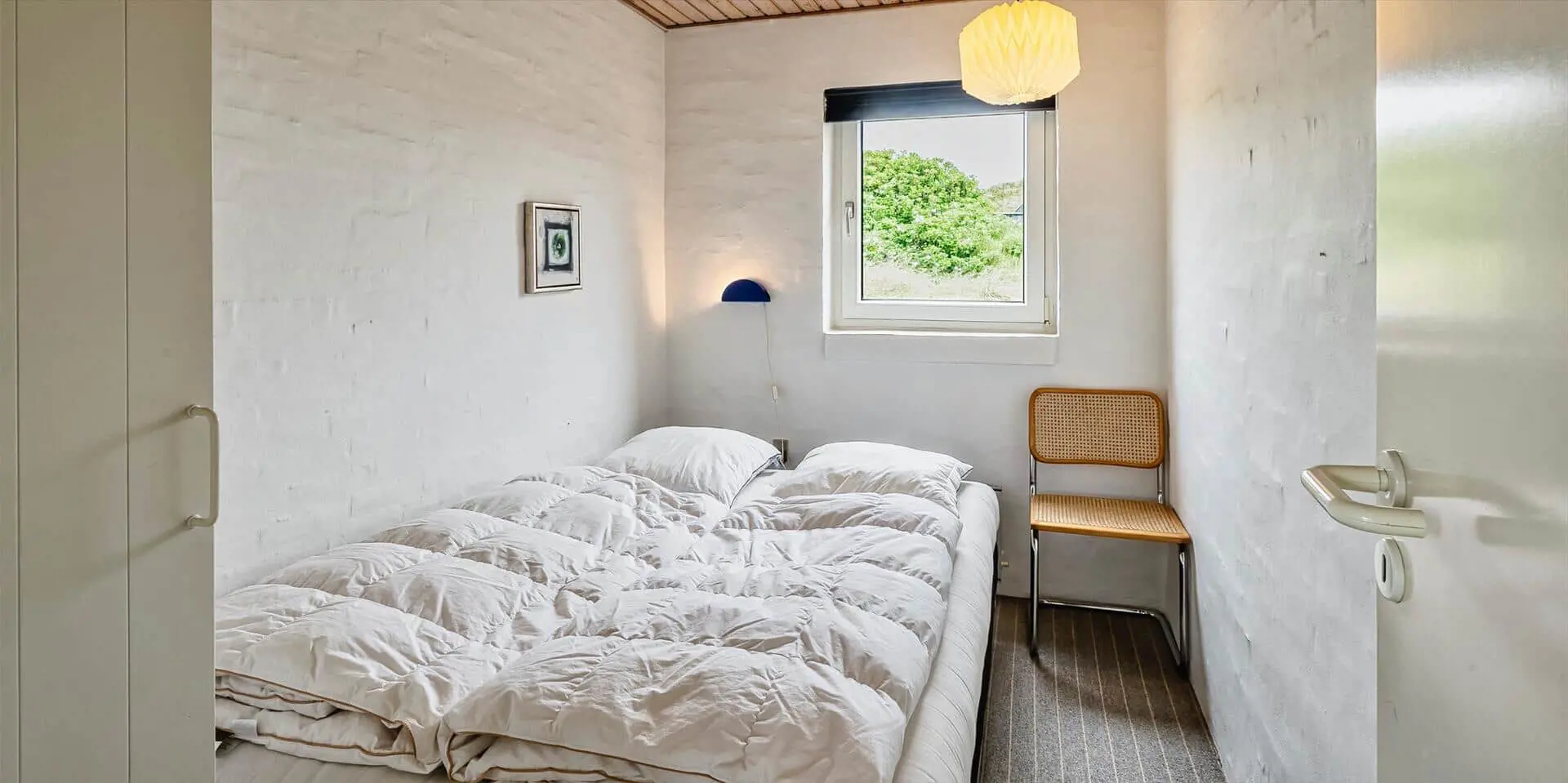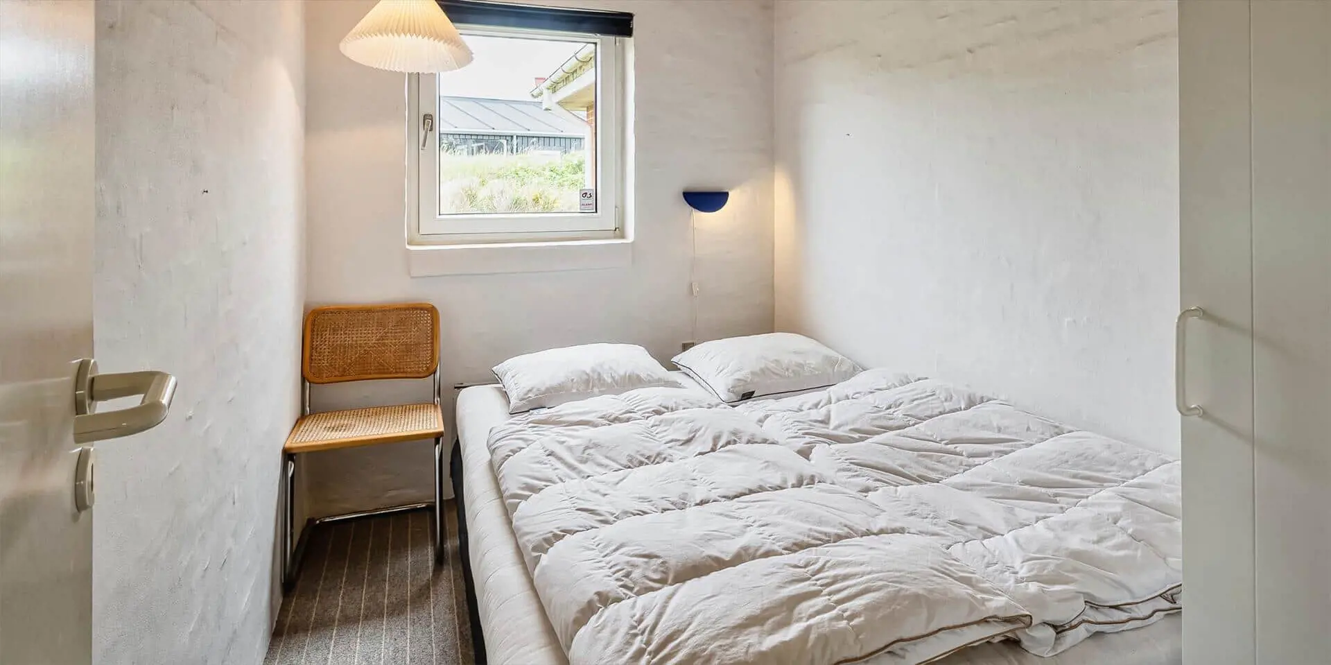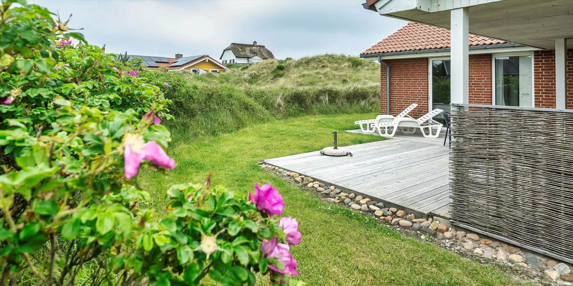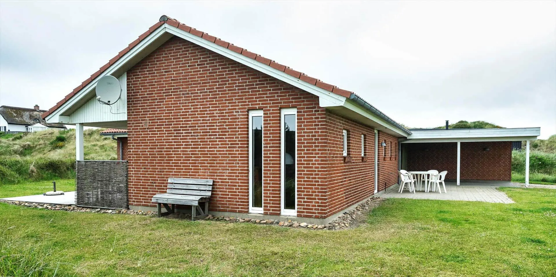 Schönes Ferienhaus für 4 Personen, gelegen auf einem naturschönen Dünengrundstück, ca. 200 Meter vom Strand entfernt. Wohnzimmer mit Kamin, Fernseher und Satellit (DR‑Programme) sowie offene Küche mit Geschirrspüler. Drahtloser Internetzugang. Badezimmer mit Dusche/WC. Waschmaschine. 3 Schlafzimmer: DB + DB + DB. Ein Schlafzimmer mit Doppelbett und zwei Schlafzimmer jeweils mit Futonbett. Wärmepumpe. Carport. Für weitere Informationen wenden Sie sich bitte an unser Büro. Kostenloser Eintritt zum Badeland und Bowling in Varde im Jahr 2026. Rauchen ist nicht gestattet. Baujahr 1988.