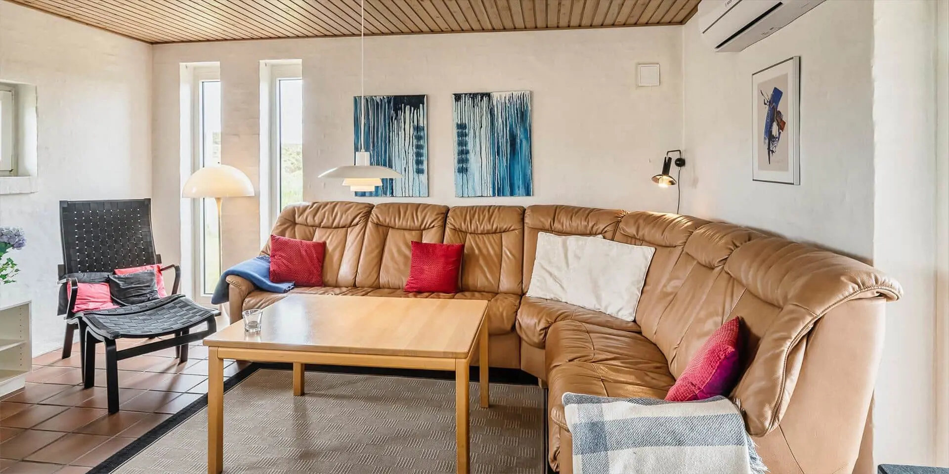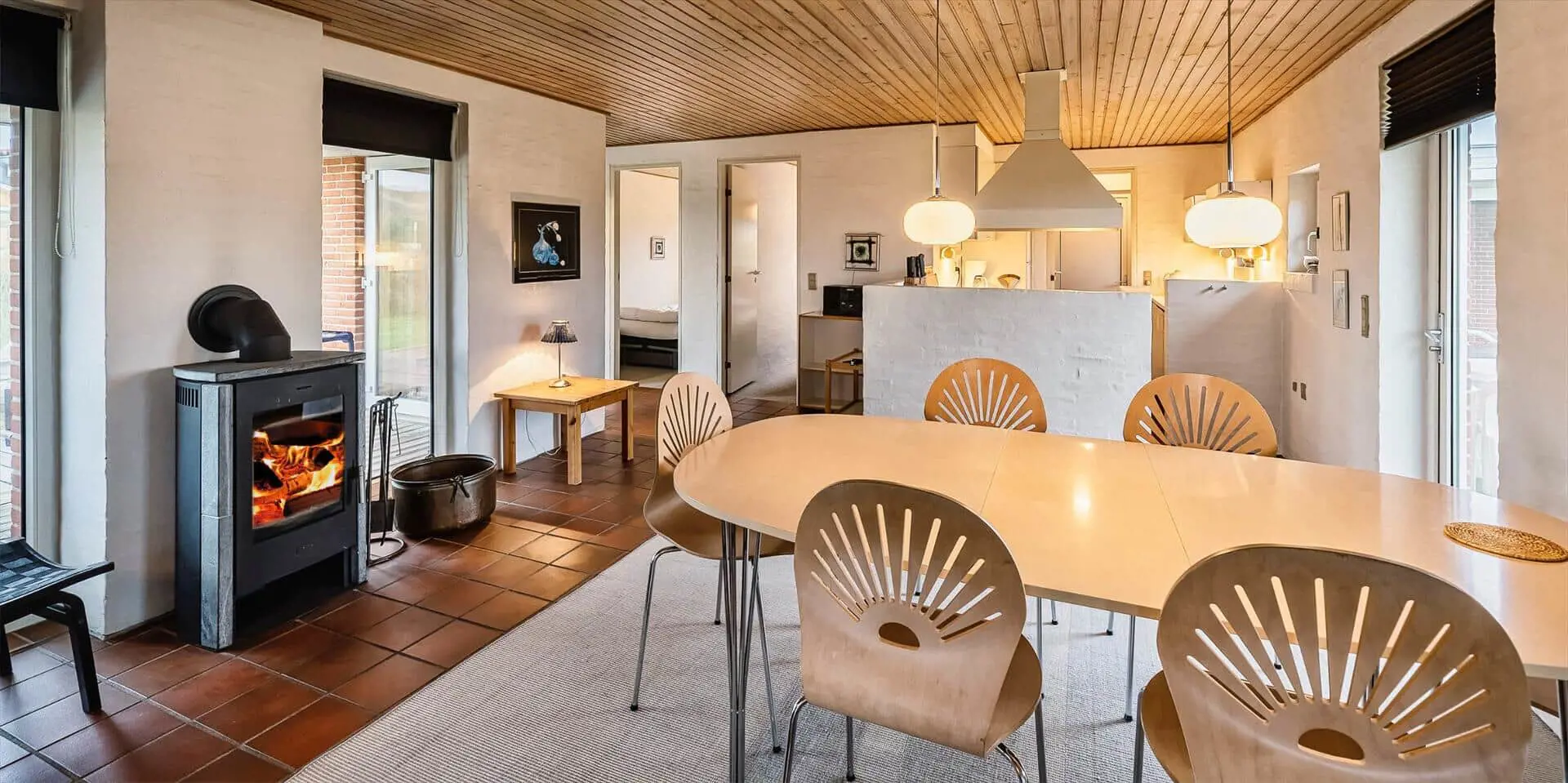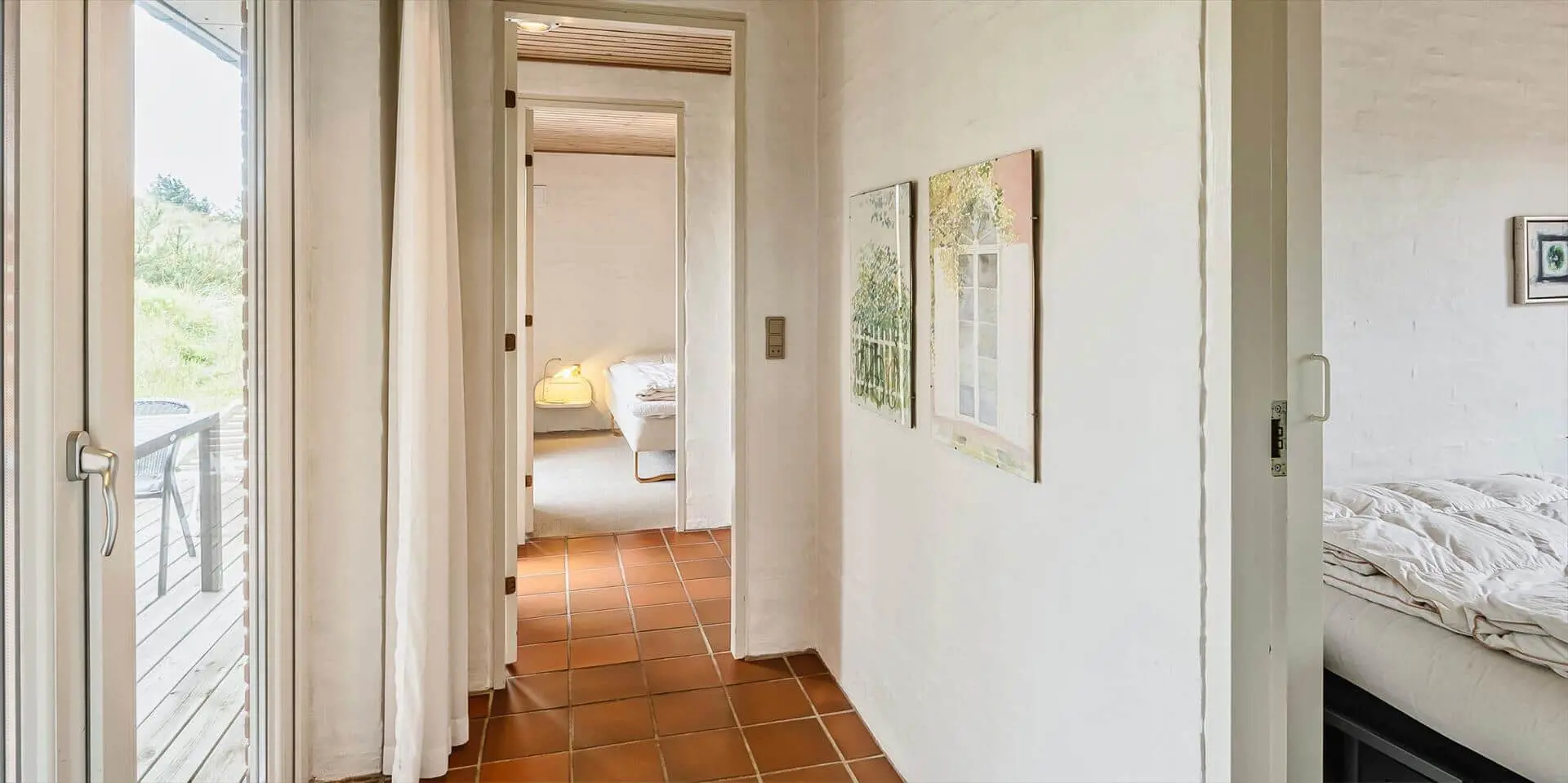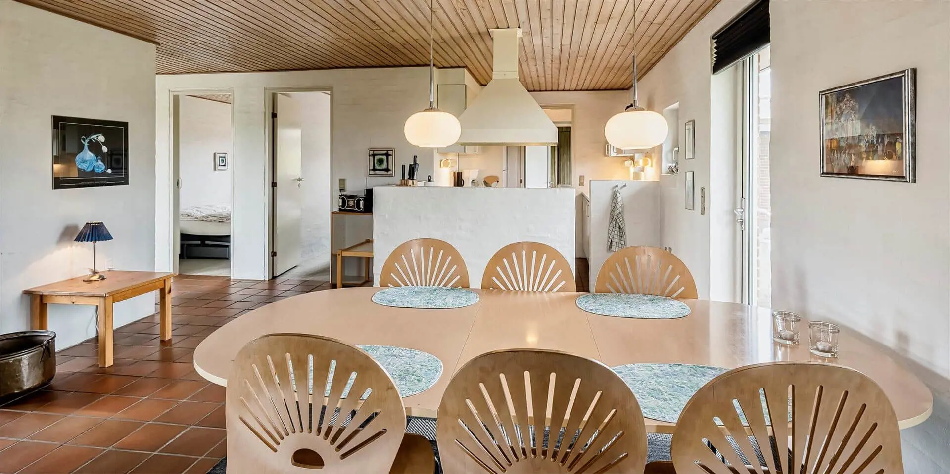 Schönes Ferienhaus für 4 Personen, gelegen auf einem naturschönen Dünengrundstück, ca. 200 Meter vom Strand entfernt. Wohnzimmer mit Kamin, Fernseher und Satellit (DR‑Programme) sowie offene Küche mit Geschirrspüler. Drahtloser Internetzugang. Badezimmer mit Dusche/WC. Waschmaschine. 3 Schlafzimmer: DB + DB + DB. Ein Schlafzimmer mit Doppelbett und zwei Schlafzimmer jeweils mit Futonbett. Wärmepumpe. Carport. Für weitere Informationen wenden Sie sich bitte an unser Büro. Kostenloser Eintritt zum Badeland und Bowling in Varde im Jahr 2026. Rauchen ist nicht gestattet. Baujahr 1988.