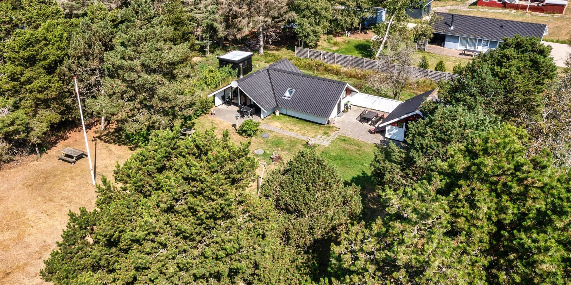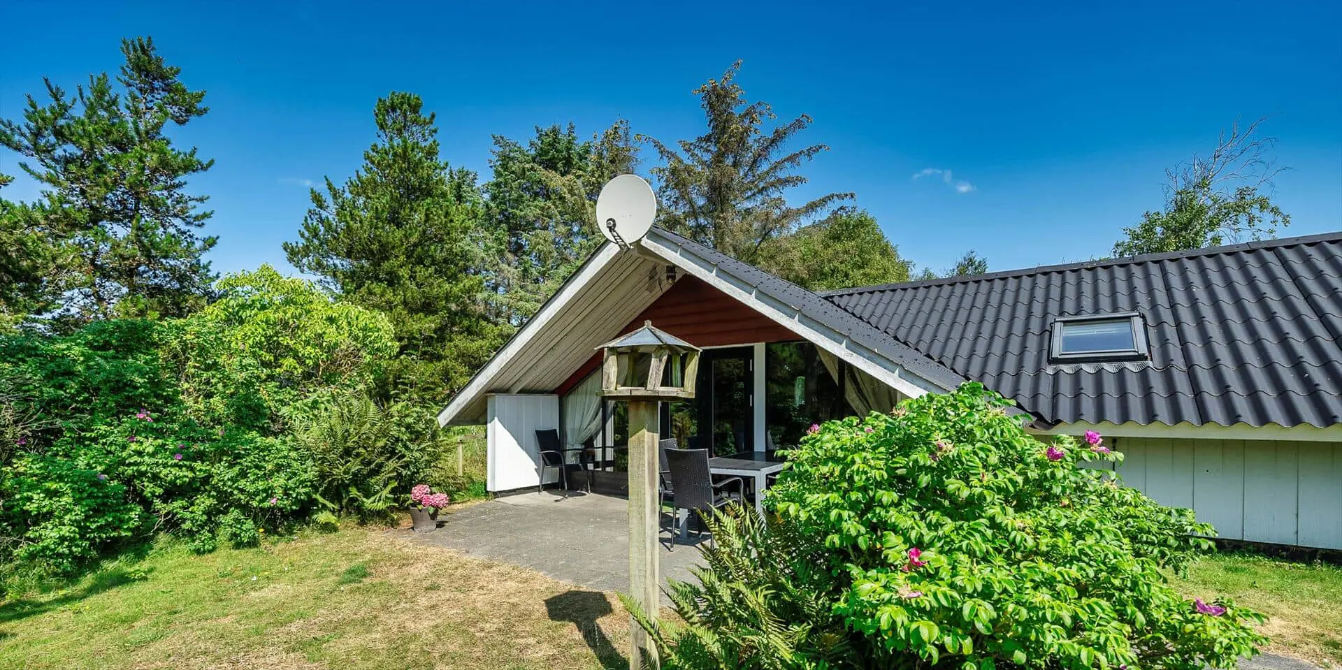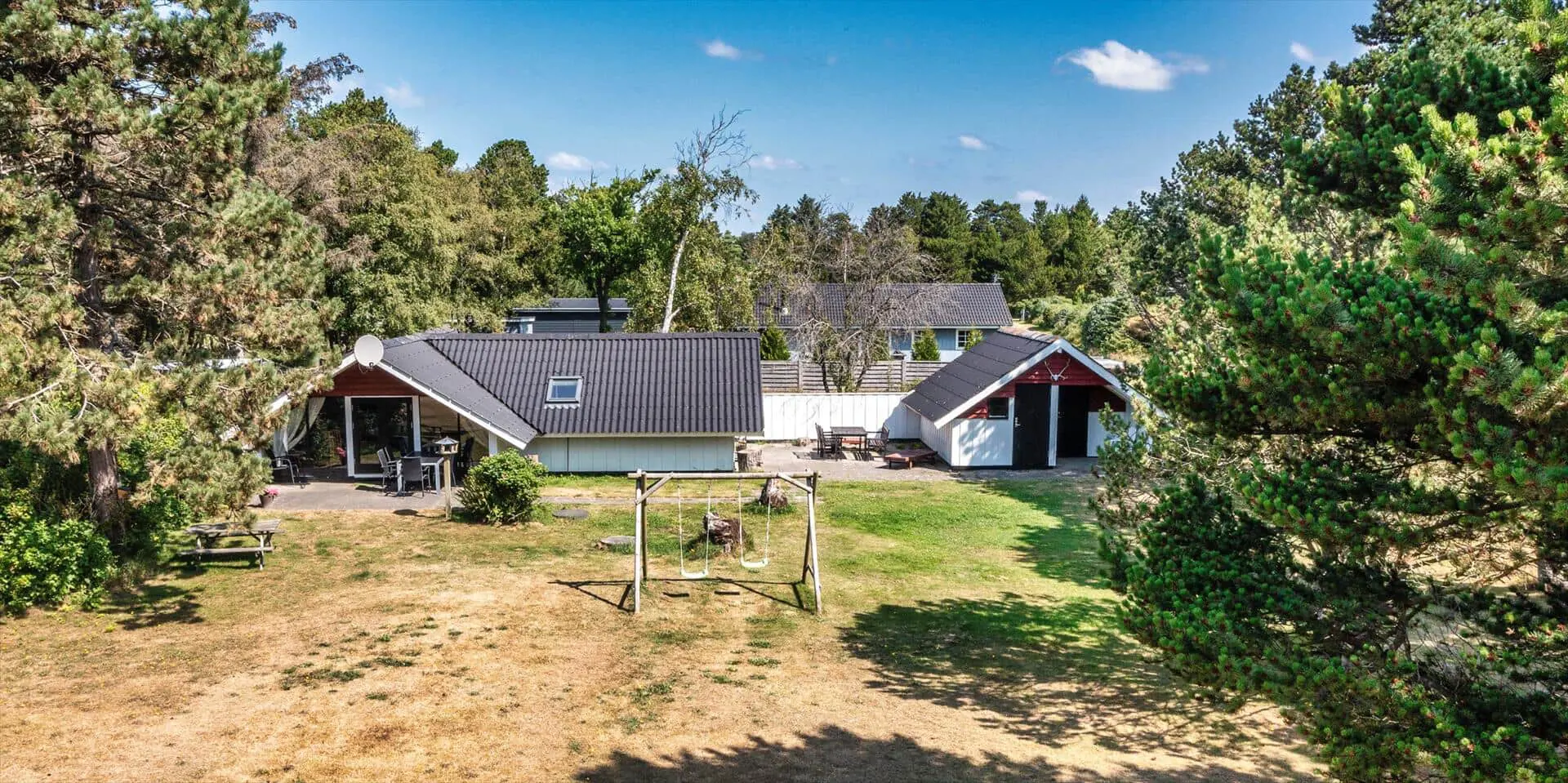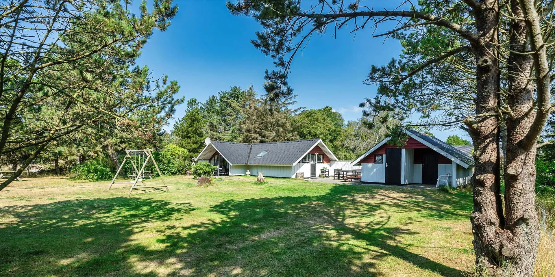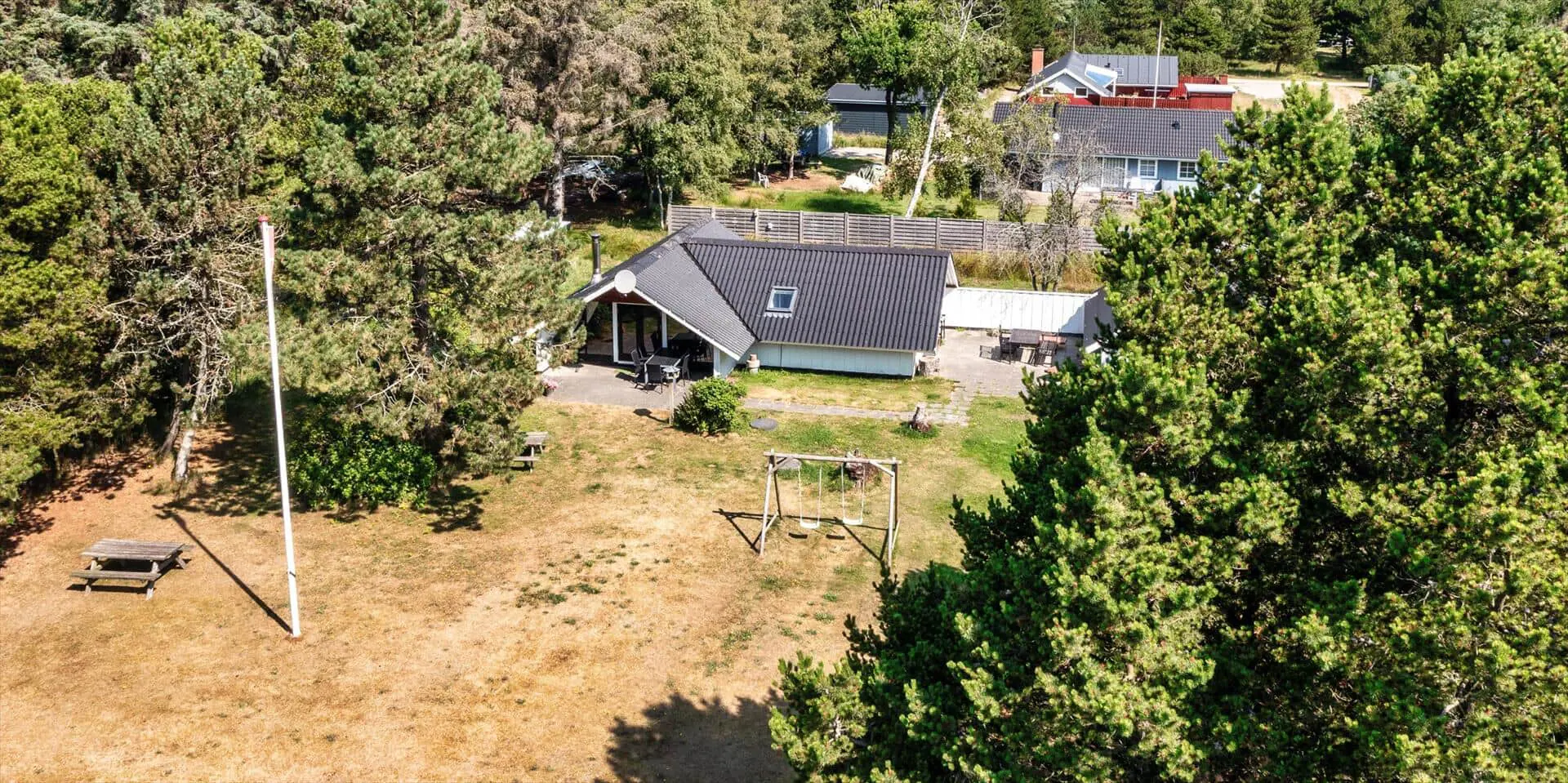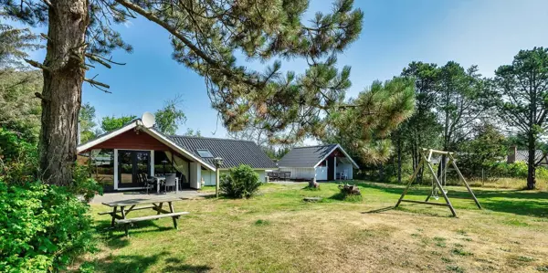 Einfaches älteres Ferienhaus auf einem großen geschlossenem Naturgrundstück gelegen. Das Ferienhaus ist für 6 Personen ausgestattet. Der Strand ist ca. 1,6 Km vom Haus entfernt. Das Wohnzimmer ist mit dem Essplatz zusammen und offen zum Küchenbereich. Im Wohn- und Essbereich ist ein Kamin aufgestellt sowie eine Wärmepumpe. Das deutsche Fernsehprogramm empfangen sie über eine Parabolantenne, ausserdem gibt es auch Smart TV. Die Küche ist einfach in der Ausstattung und verfügt über einen Herd mit Kochplatten, einem Backofen, einer Mikrowelle und einer Kühl- und Gefrierkombination. Das Badezimmer verfügt über ein WC, ein Handwaschbecken und eine Dusche. Es gibt insgesamt drei Schlafzimmer im Ferienhaus. Ein Schlafzimmer hat zwei Einzelbetten und die beiden anderen verfügen über je ein Etagenbett. Zwei Terrassenbereiche am Haus laden zum entspannen ein. Das besondere bei diesem Ferienhaus ist, das das Grundstück komplett eingezäunt ist. Hier haben Ihre Vierbeiner Platz zum Toben und spielen ohne, das sie stiften gehen können. Auch die Kleinen Gäste haben genügend Platz zum Spielen. Das Grundstück ist eingezäunt. Das Ferienhaus verfügt über einen Internetanschluss (W-Lan). Das Rauchen im Ferienhaus ist nicht erlaubt. Es sind max. drei Haustiere erlaubt. Das Ferienhaus wurde 1977 erbaut.