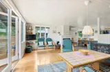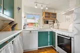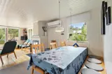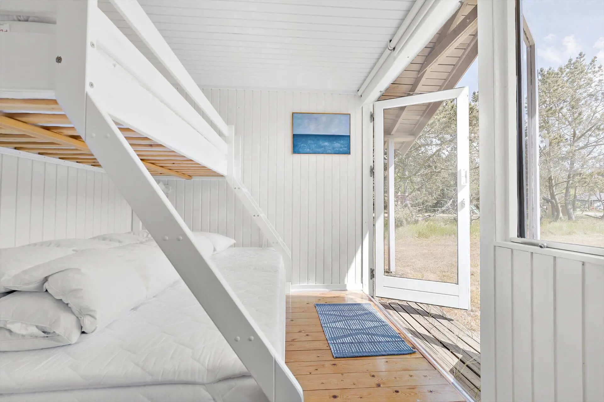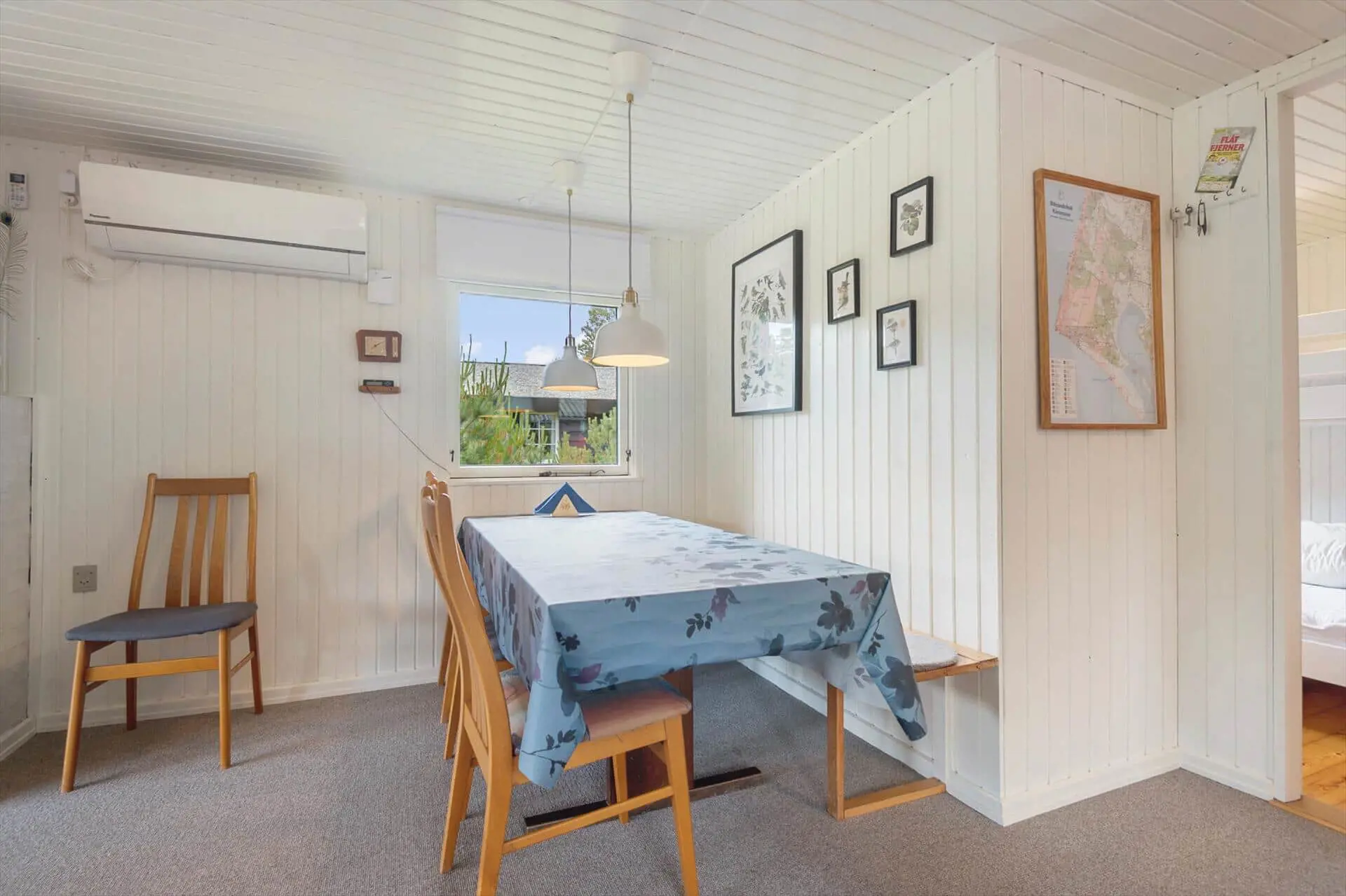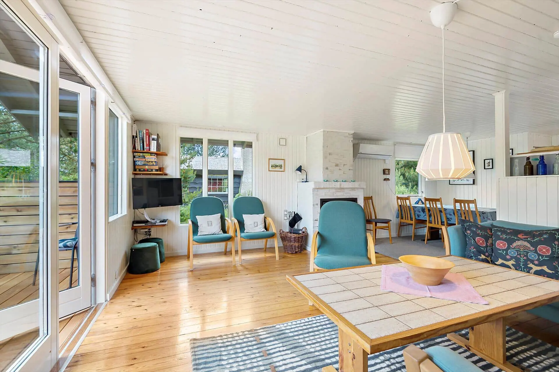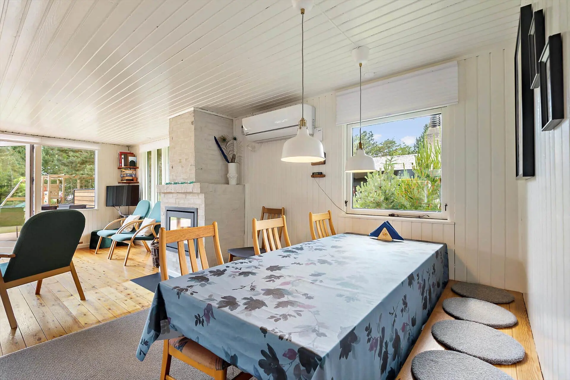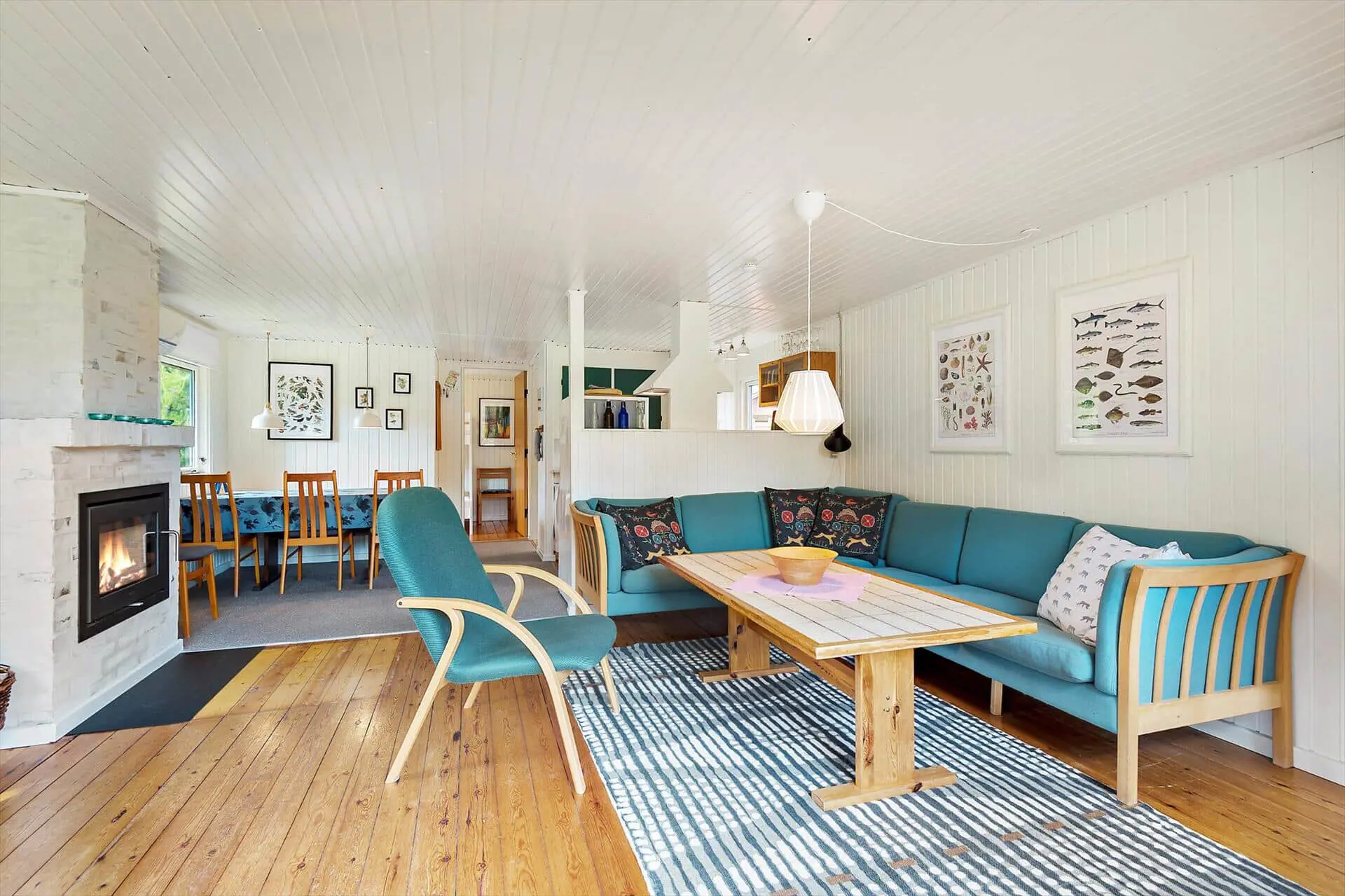 Seitlich am Haus befindet sich das Nebengebäude, sodass Ihnen insgesamt 85 m² Wohnfläche zur Verfügung stehen. Die beiden Gebäude verfügen über zwei Bäder und vier Schlafzimmer, es ist also genügend Platz für bis zu acht Personen vorhanden. Im Haupthaus ist der Wohnbereich der ideale Sammlungspunkt, mit seiner stimmungsvollen Atmosphäre, den holzverkleideten Wänden und dem Kaminofen. Hier können Sie am Esstisch gesellige Spieleabende verleben, aber auch ganz entspannt ein gutes Buch lesen oder einen Film im Fernsehen anschauen. Die Küche ist auf funktionale Weise in das Wohnzimmer integriert, so dass Sie auch beim Kochen “mittendrin” sind.